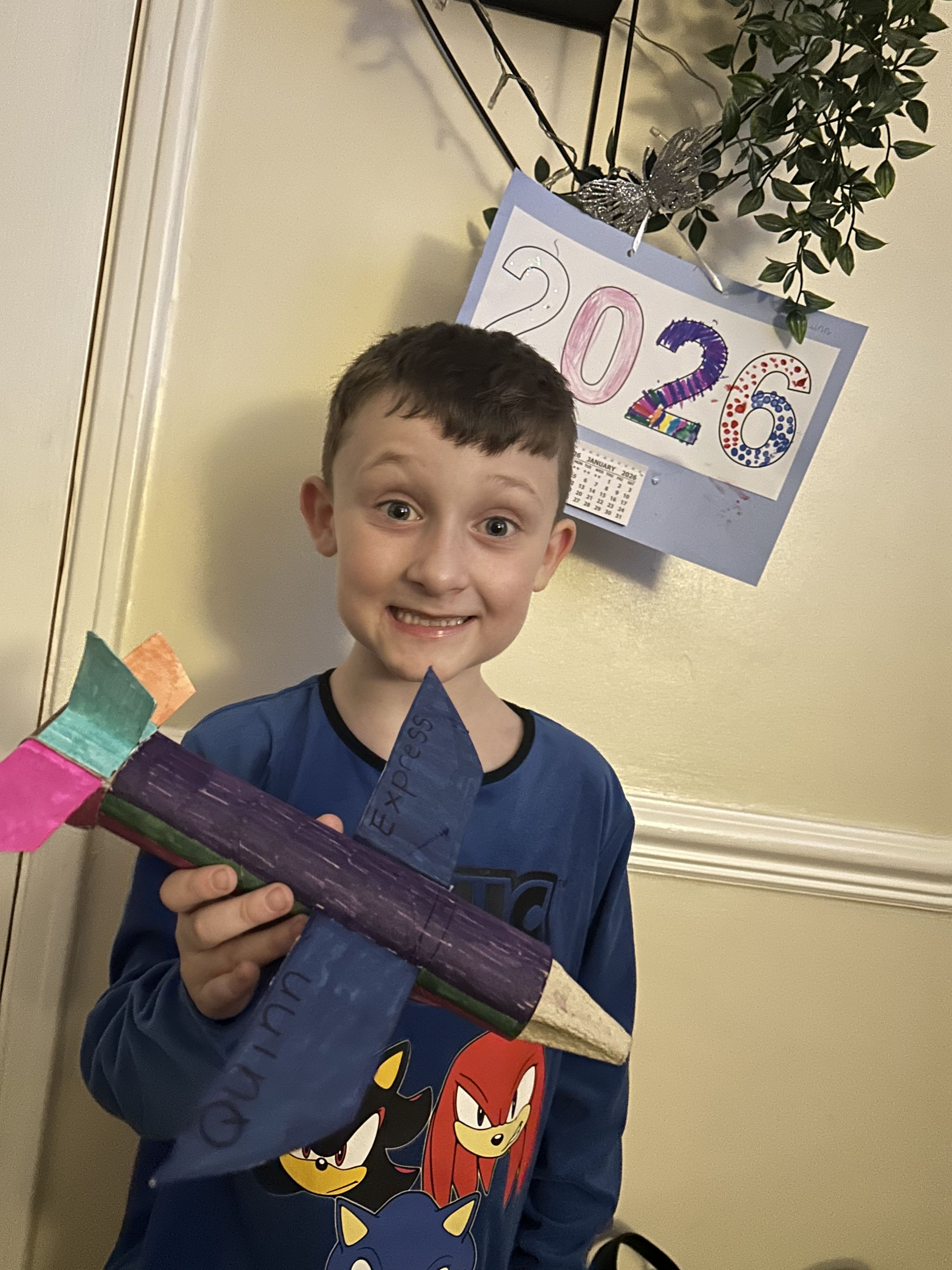 Quinn has been measuring and made a fantastic rocket out of recycled material.