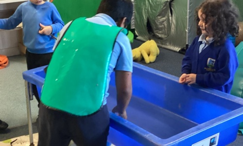 The children set up their own obstacle course in P.E and enjoyed taking turns using it.