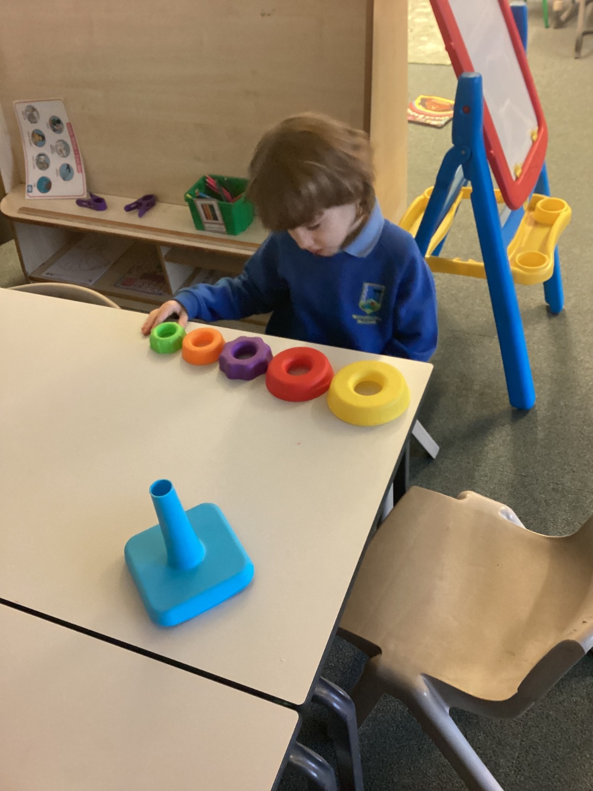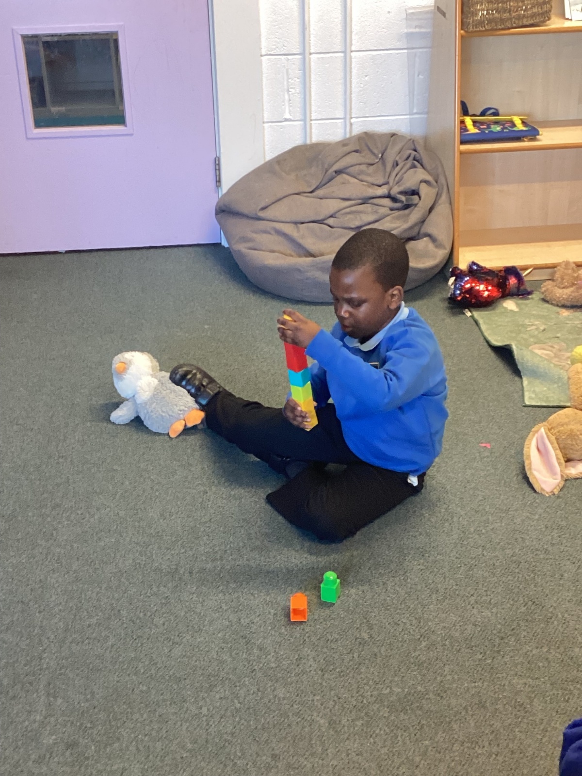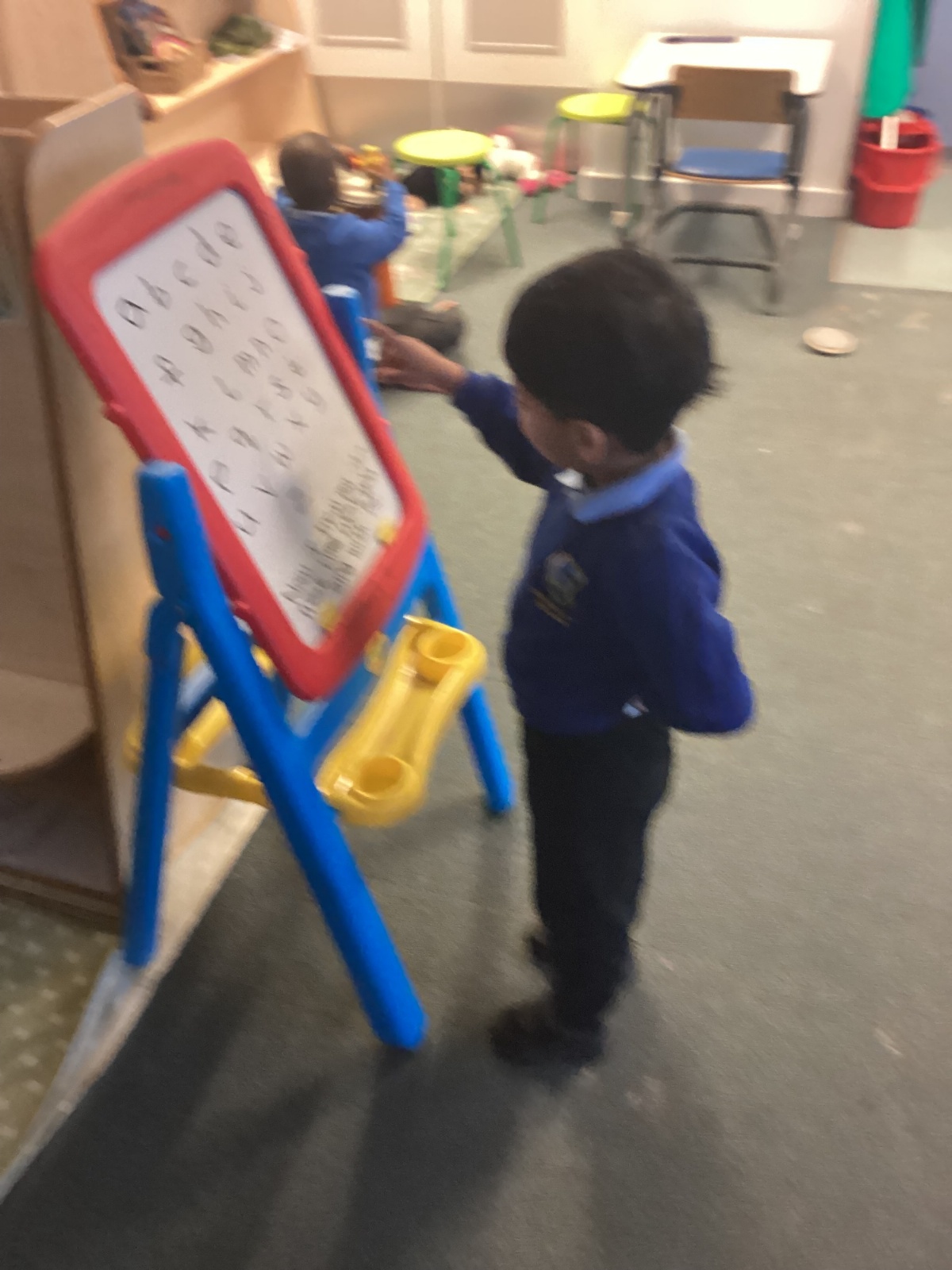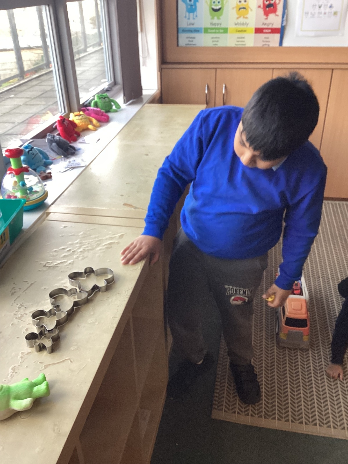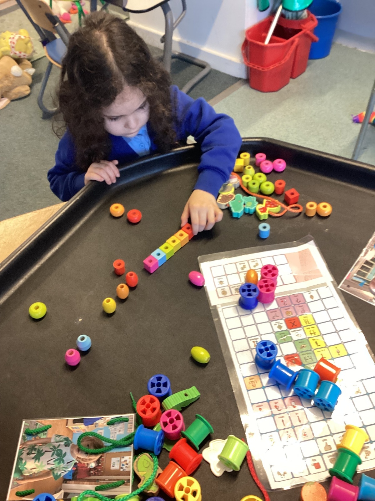 We have been organising different resources in The Beach and enjoying lining them up. We have also been using different areas of provision. Our adults are really proud of us.