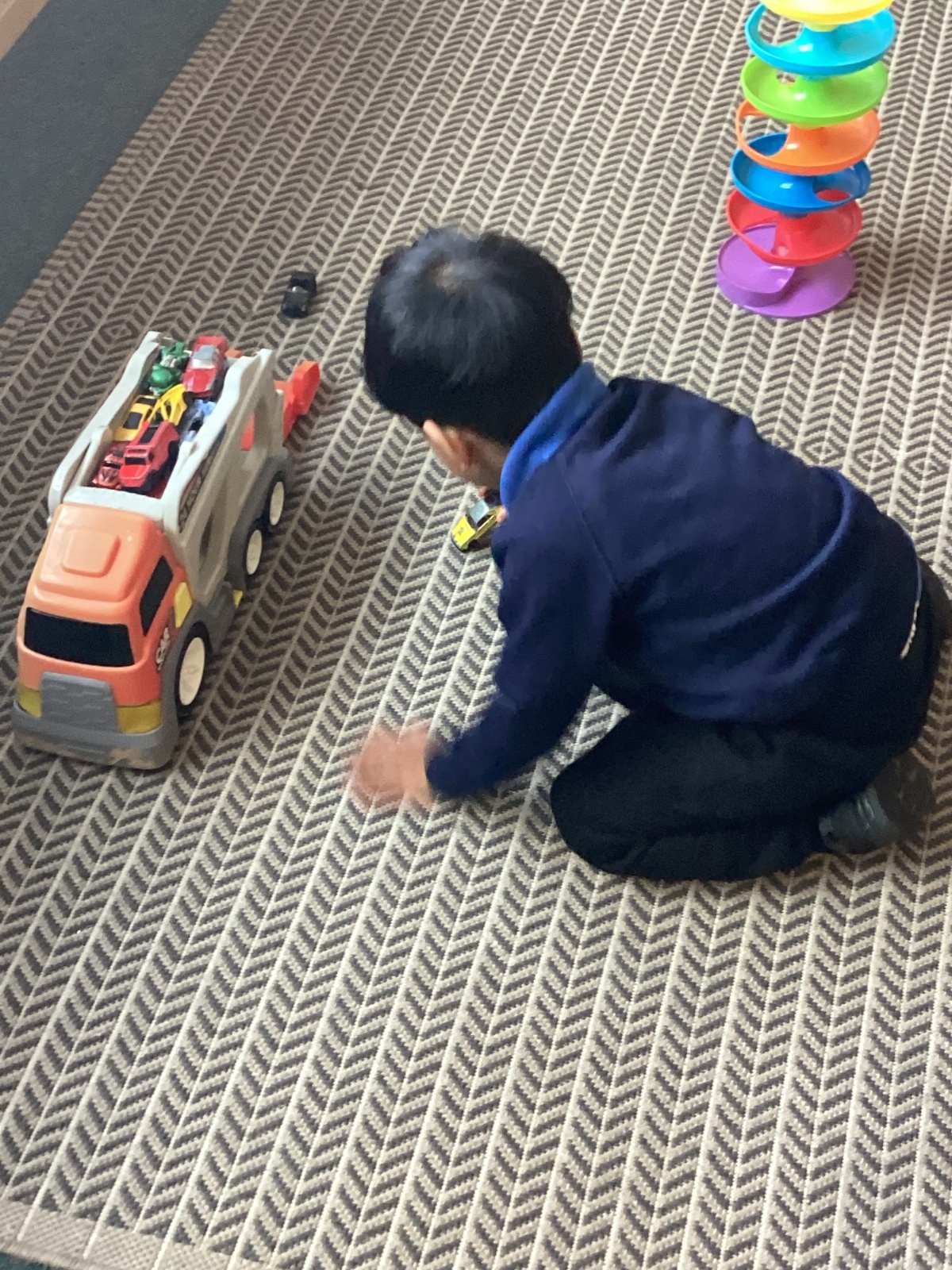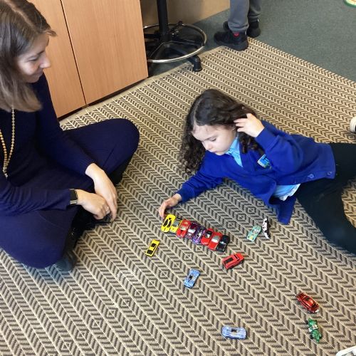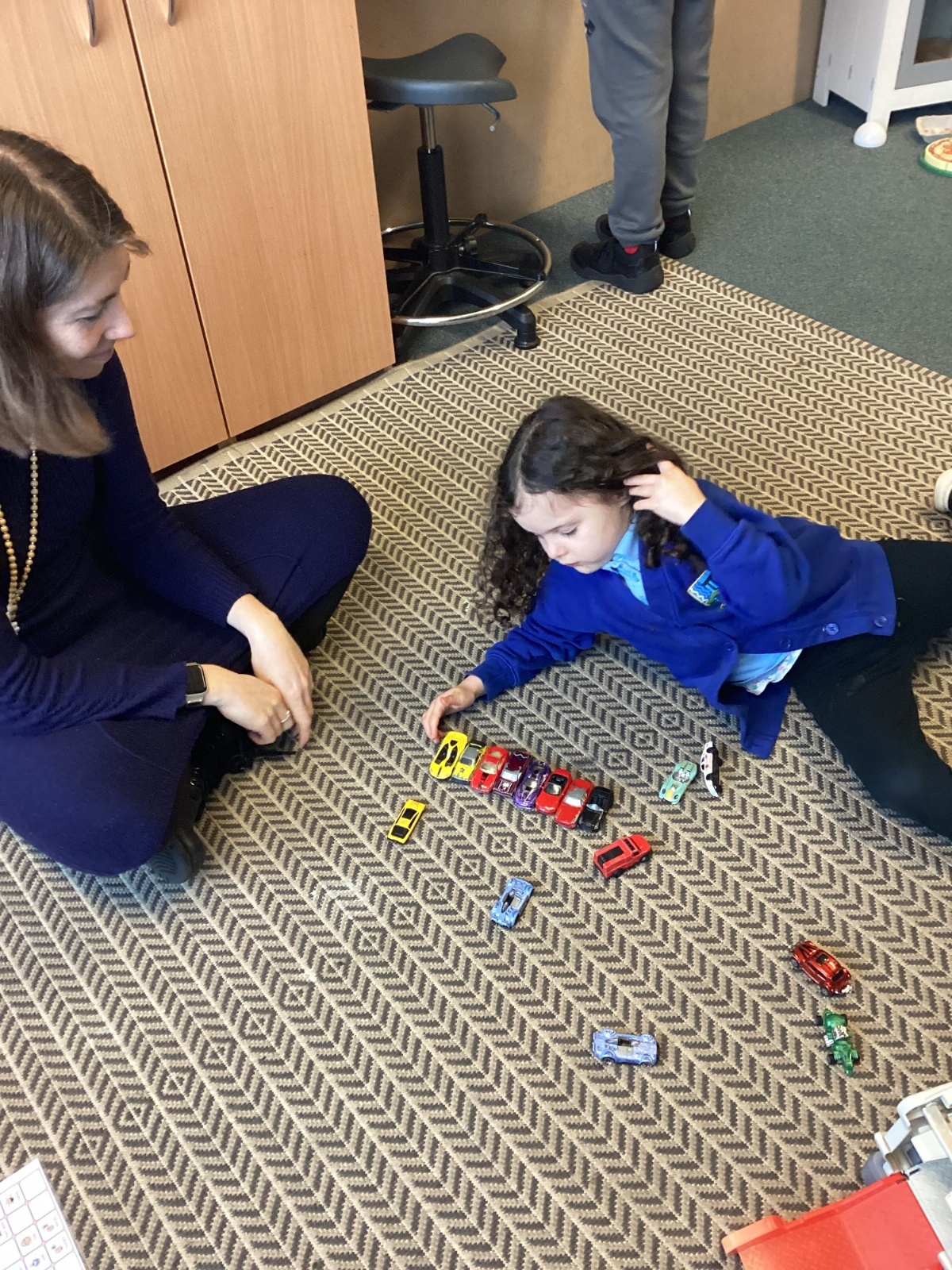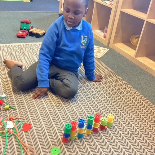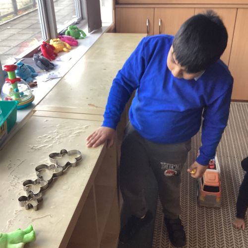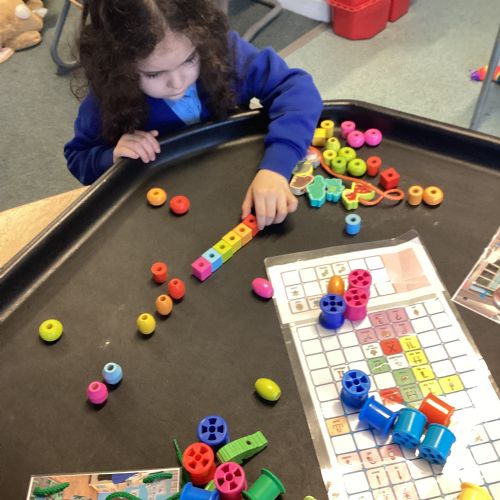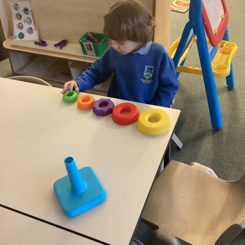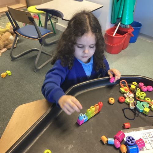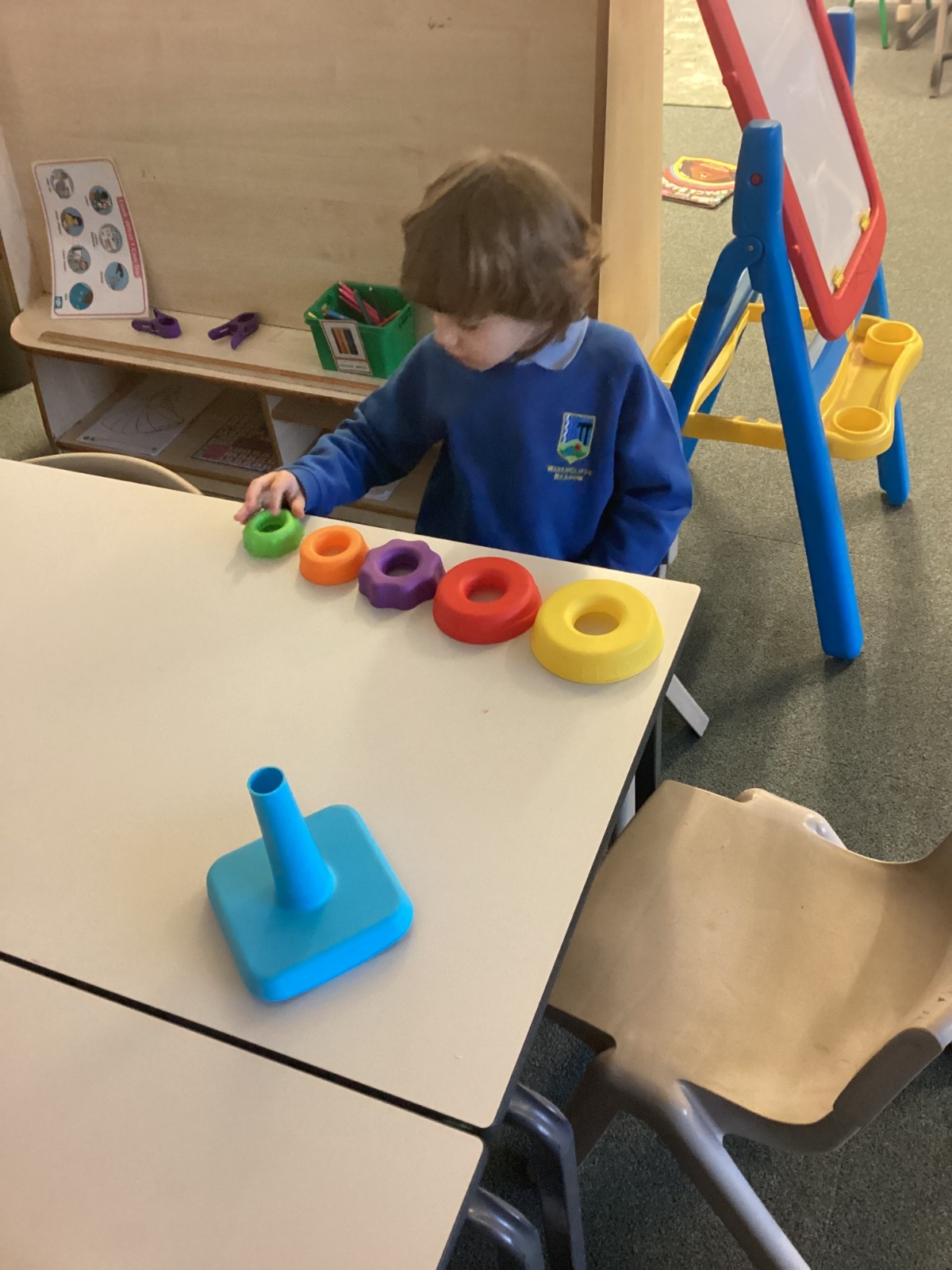 We have been organising different resources in The Beach and enjoying lining them up. We have also been using different areas of provision. Our adults are really proud of us.