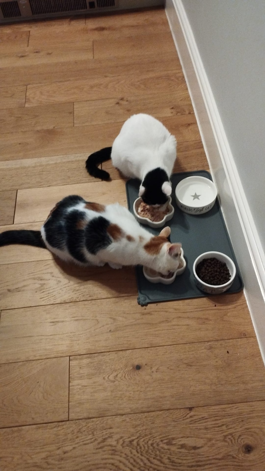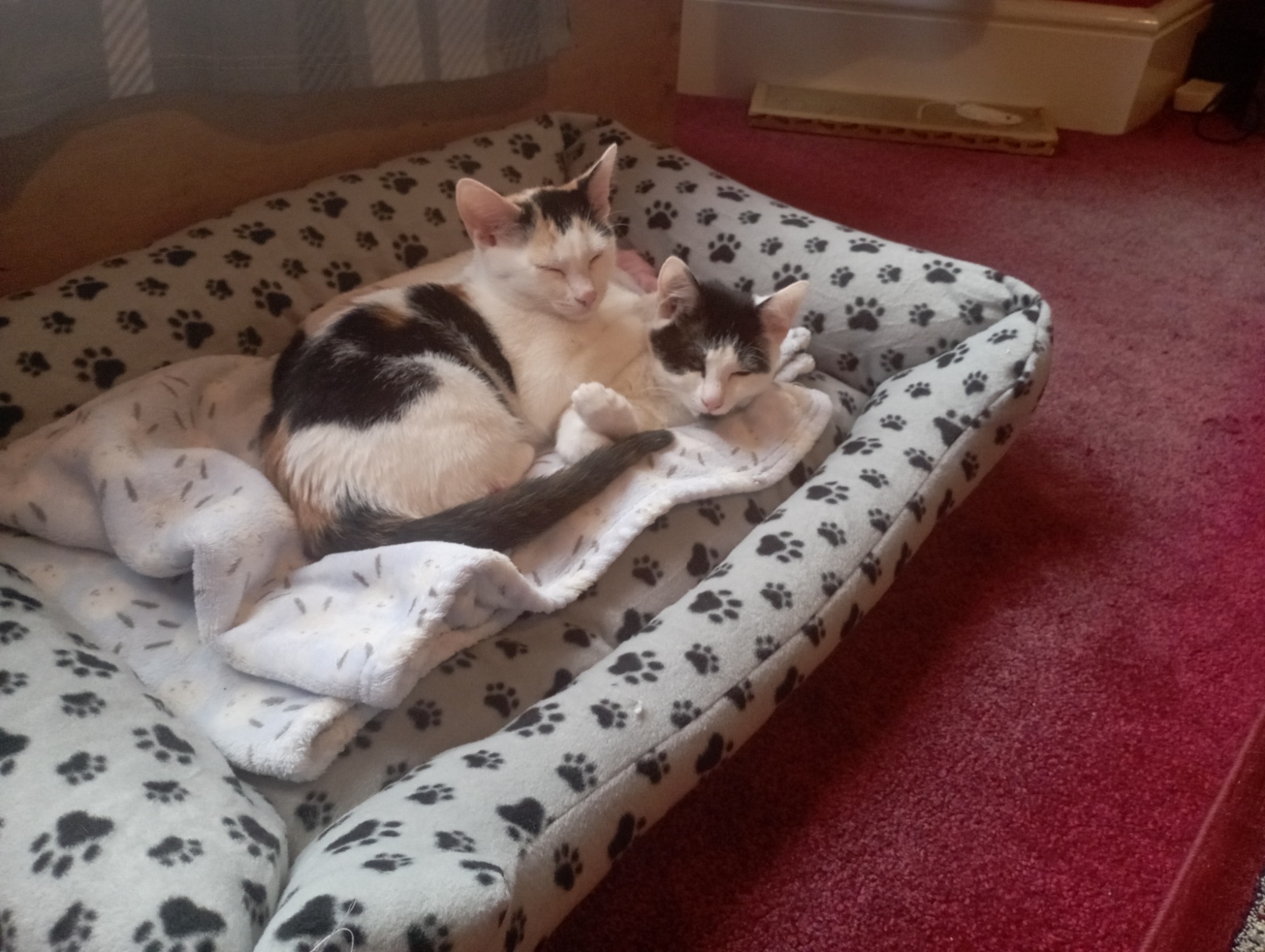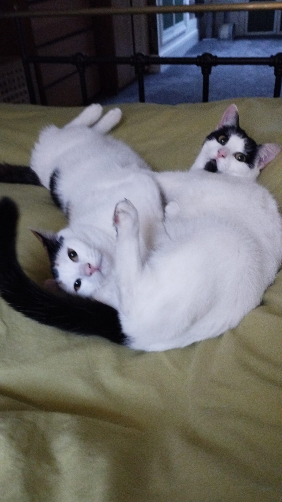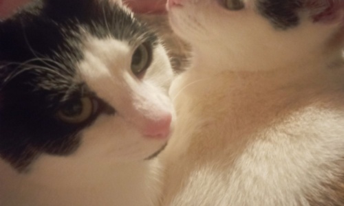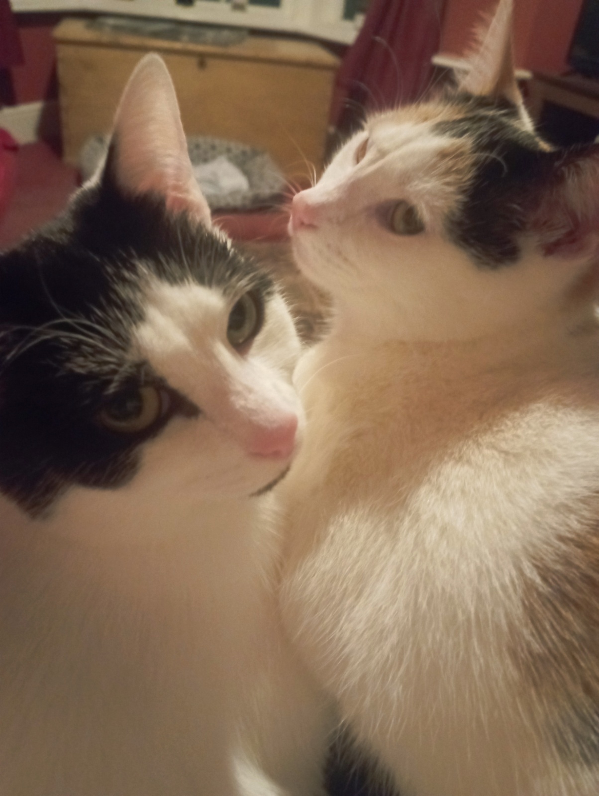 These are Mr Boynton's two cats, Frida and Florence. They are two sisters, one and a half years old. Most of the time, they love each other very much, although at the moment they both have scratches on their noses from 2am fighting hour!