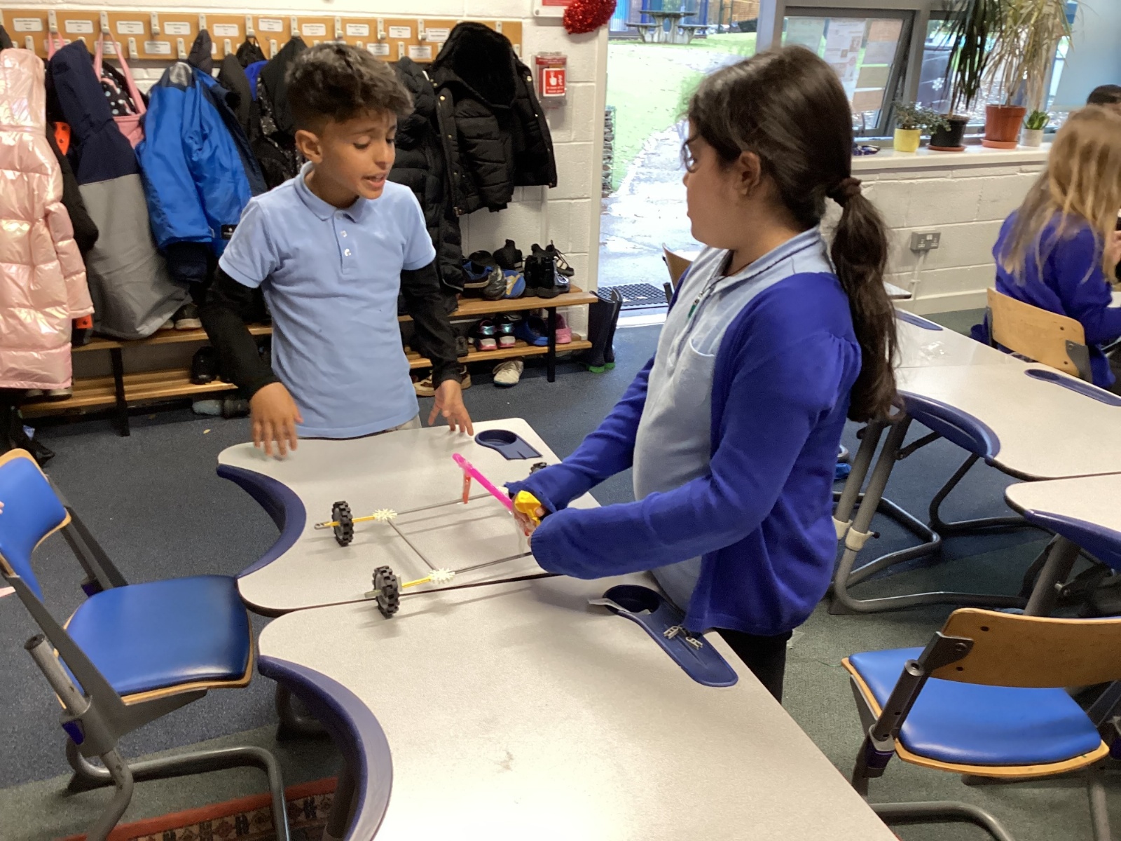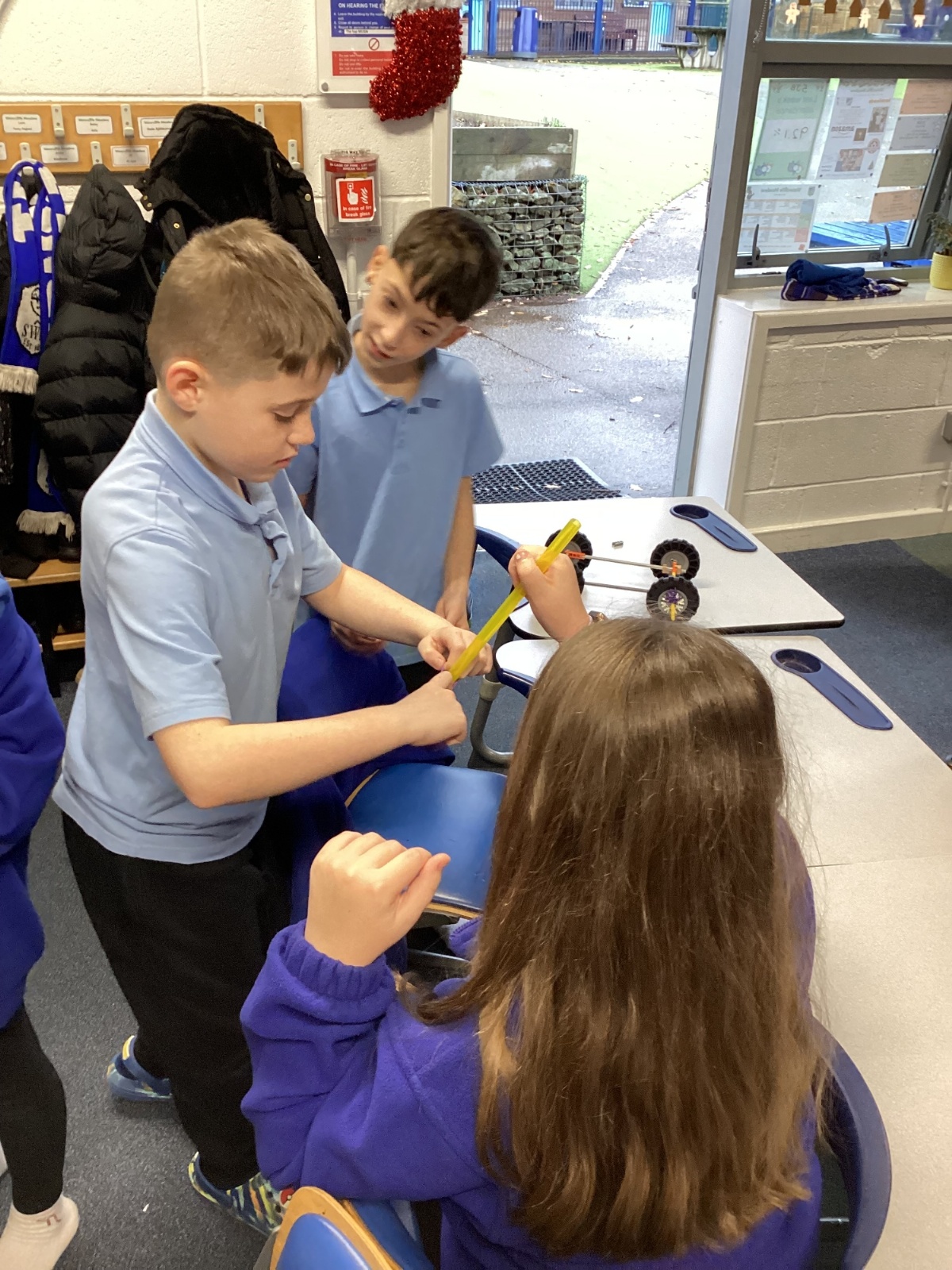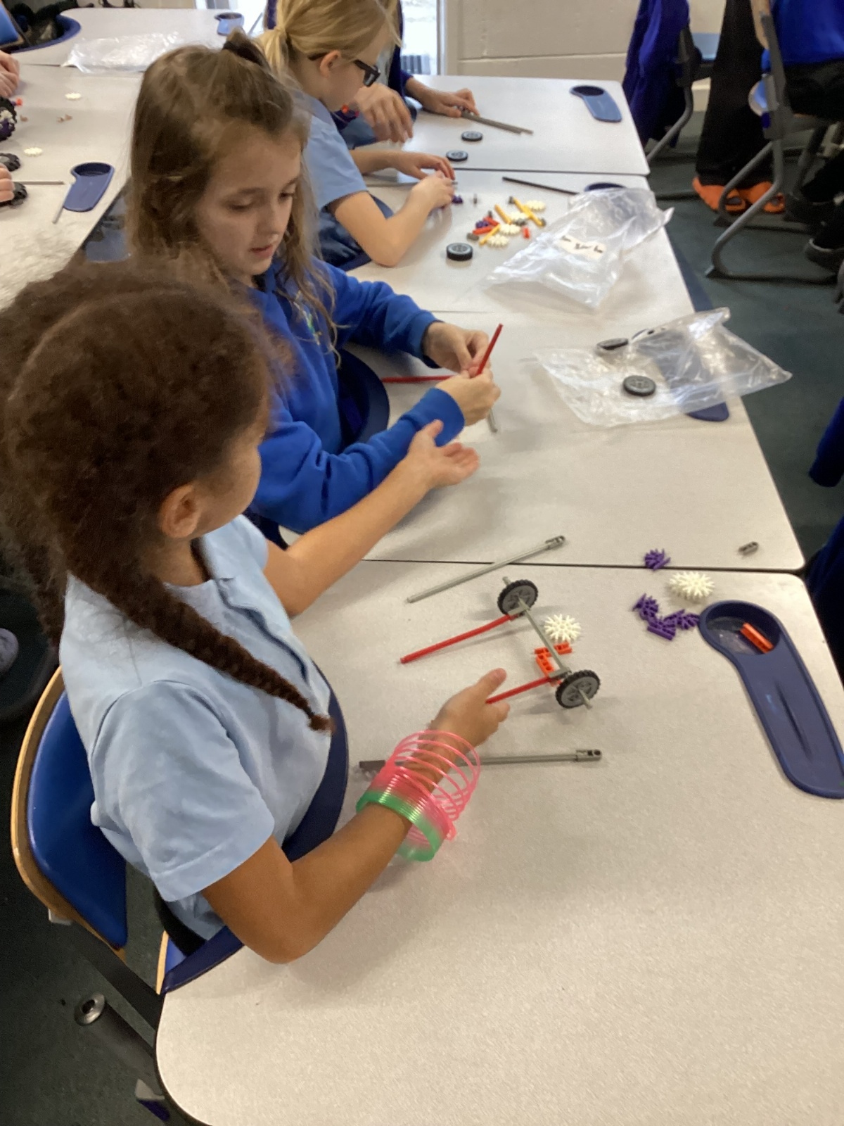 In D&T, we started to think about creating chassis and axles to create a car. Then, we had to put our problem-solving skills to the test, being given a straw and a balloon and trying to get our car to move independently. The learning was amazing with so many different solutions found. We had very proud teachers in both classes!