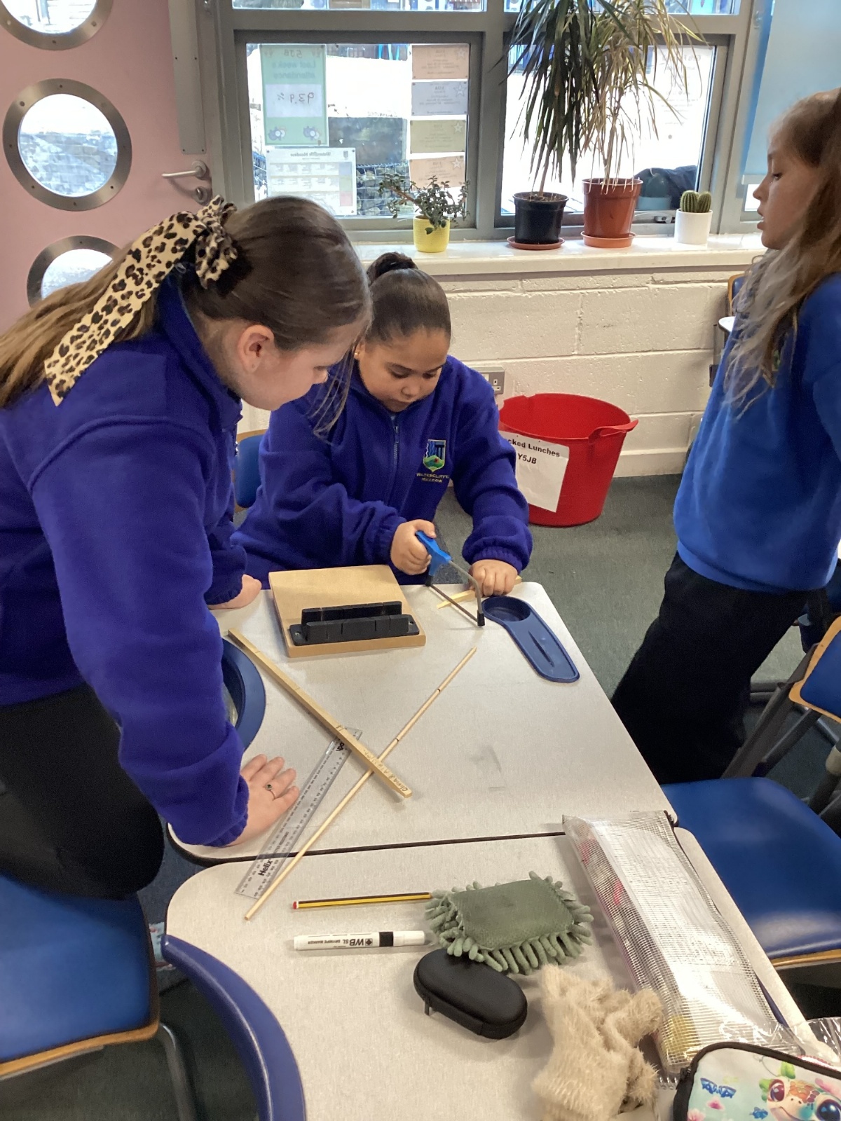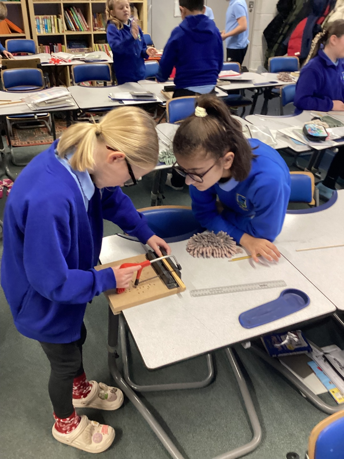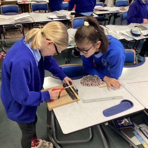 In D&T, we have continued work on creating our cars, carefully measuring (measure twice, cut once!) out the chassis and axles and then using junior hacksaws to cut our wood.