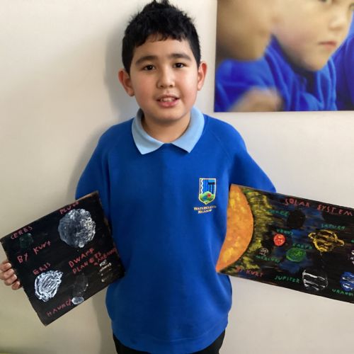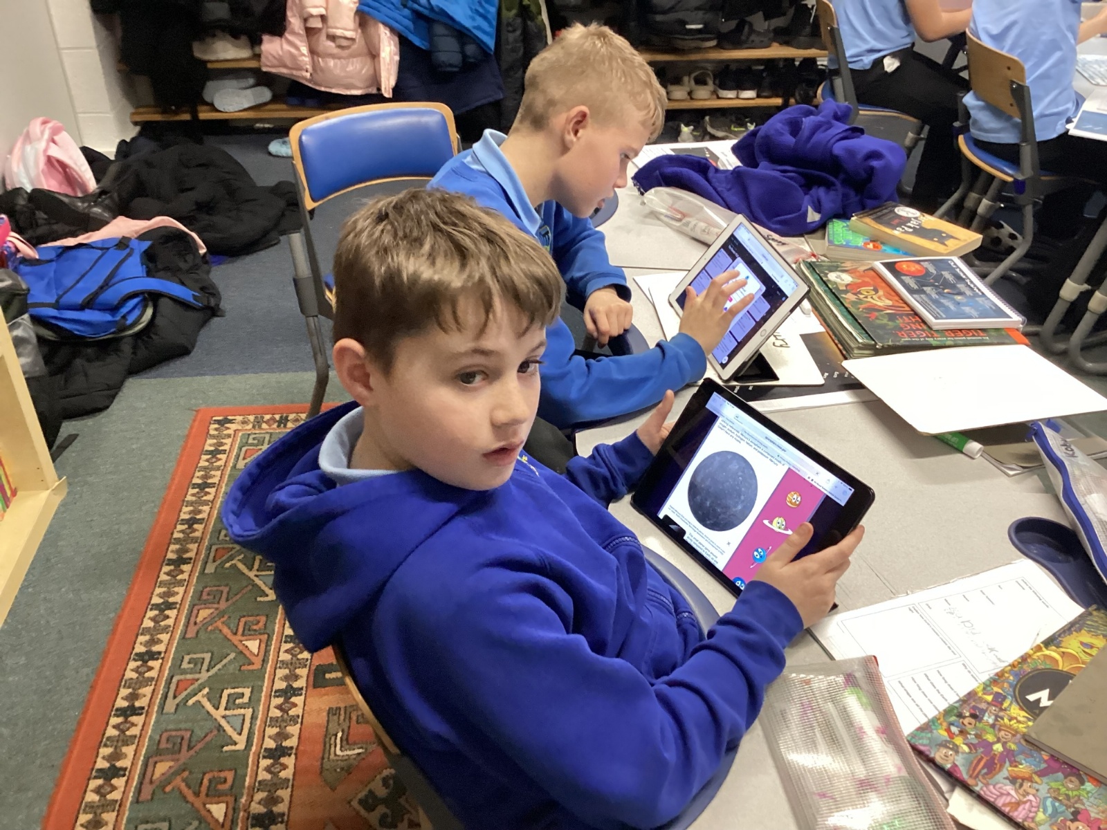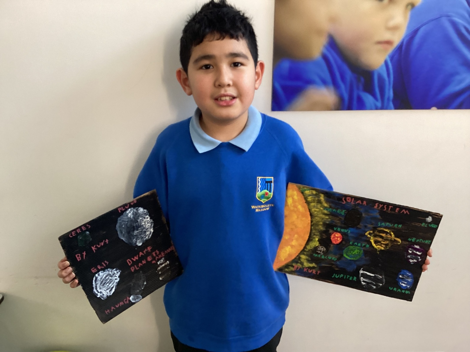 In Science, we have begun learning all about Space. We found out about the size of the different planets and learnt about the different lengths of orbits and how this affects how long a year is on these planets. We also had our first piece of space home learning from Kurt!