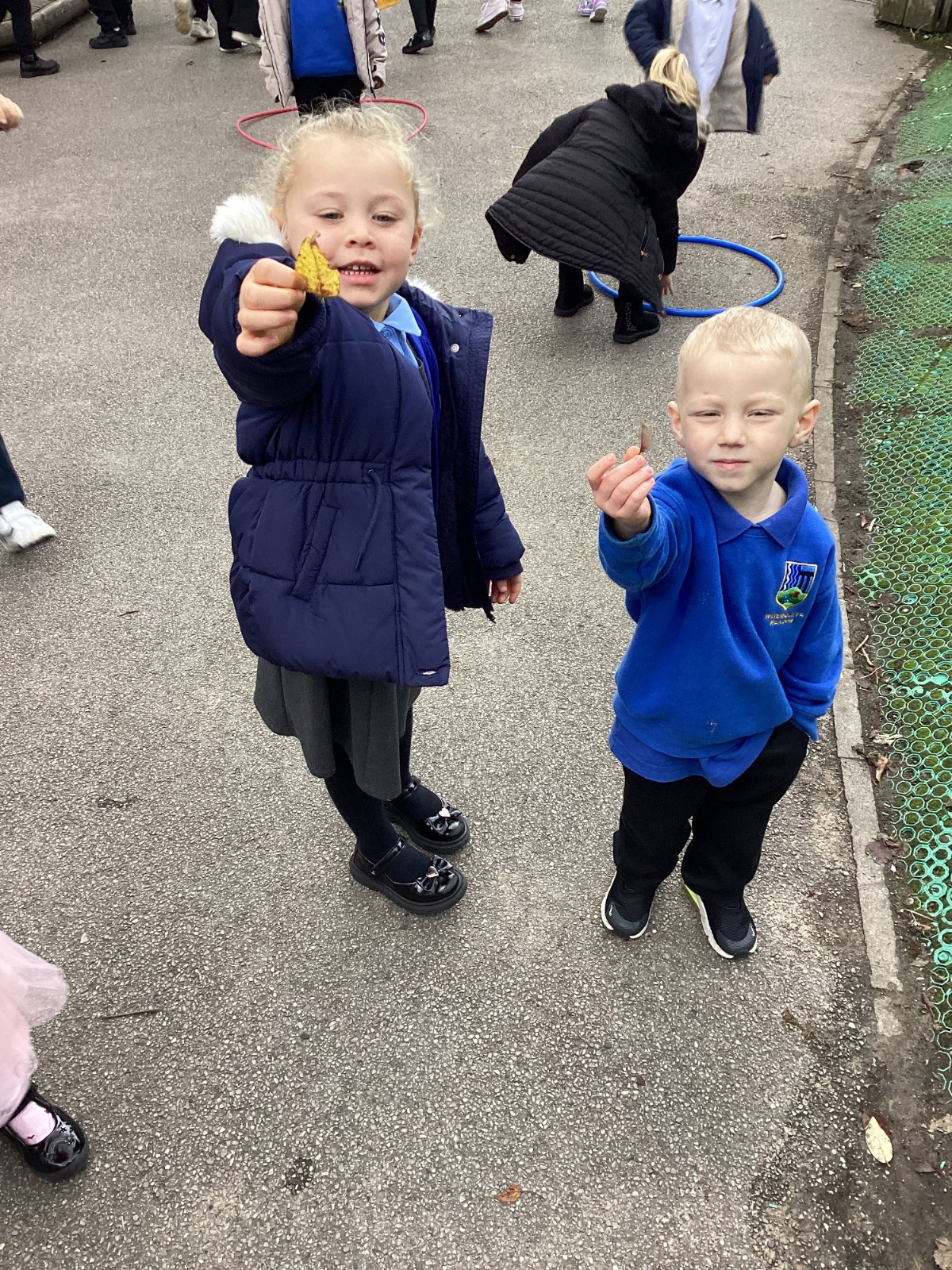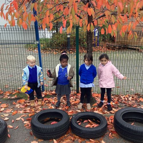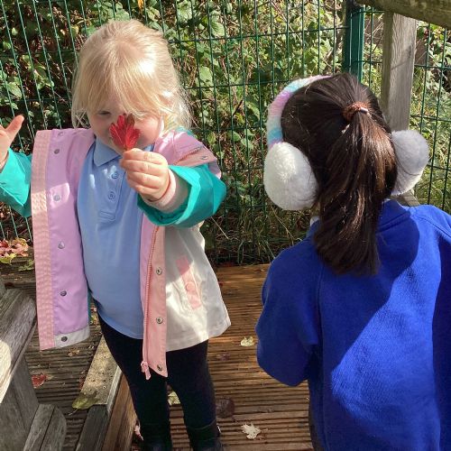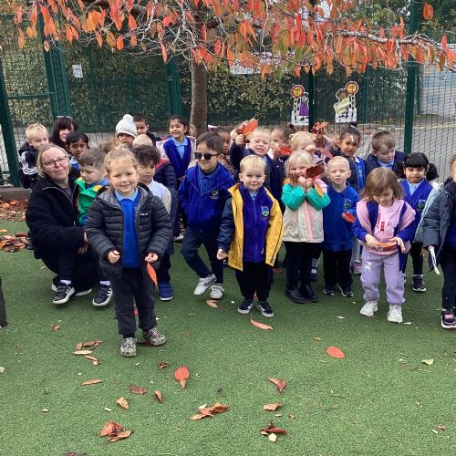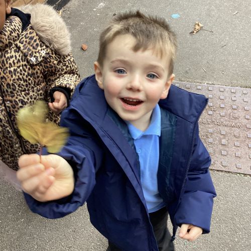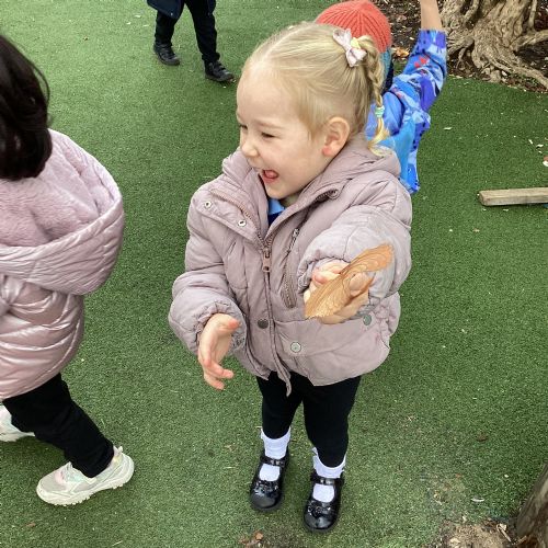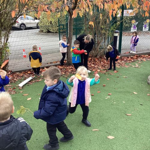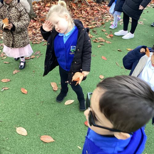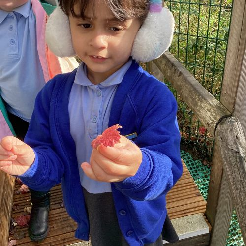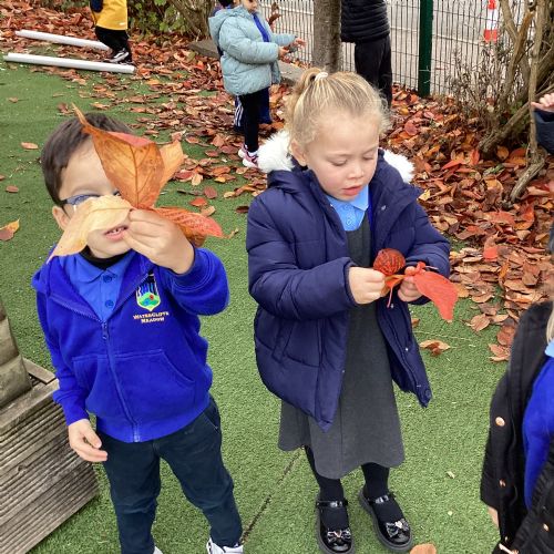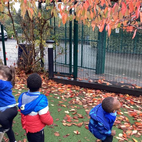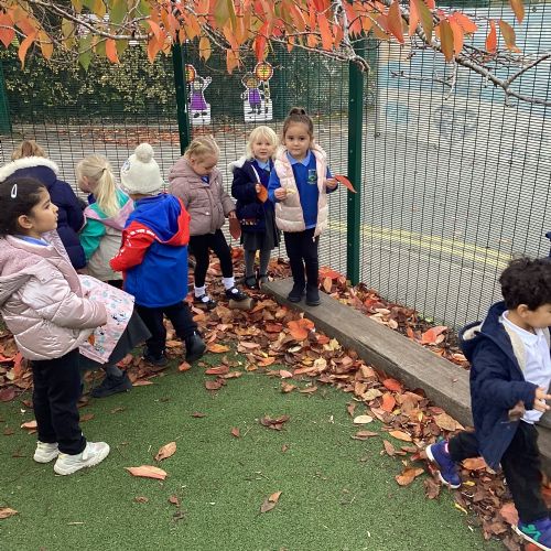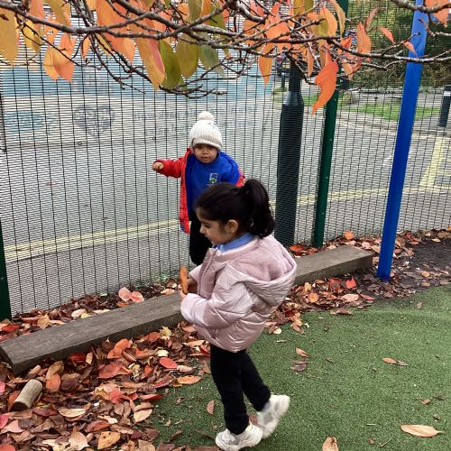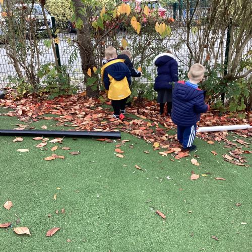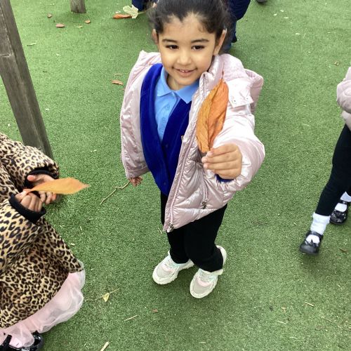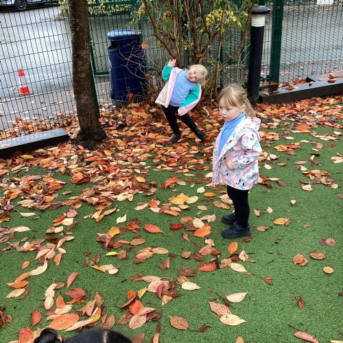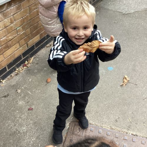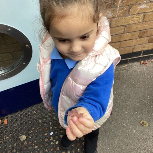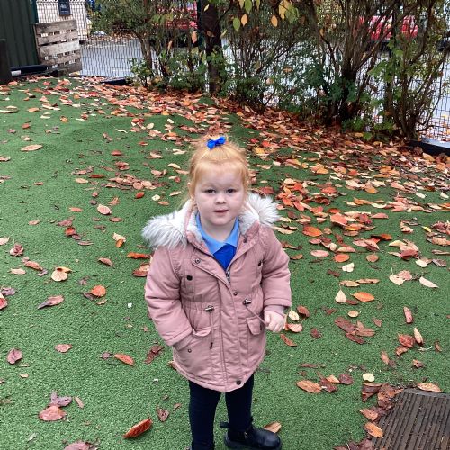 This week we have been talking about the changes that we have been able to see outside. We found out that the leaves have changed colour and have started falling off the trees. We discovered that the weather has turned a little colder and we have needed warmer coats. We went for a walk outside in the nursery yard and found lots of lovely leaves. We even collected some and used them on our collage pictures.