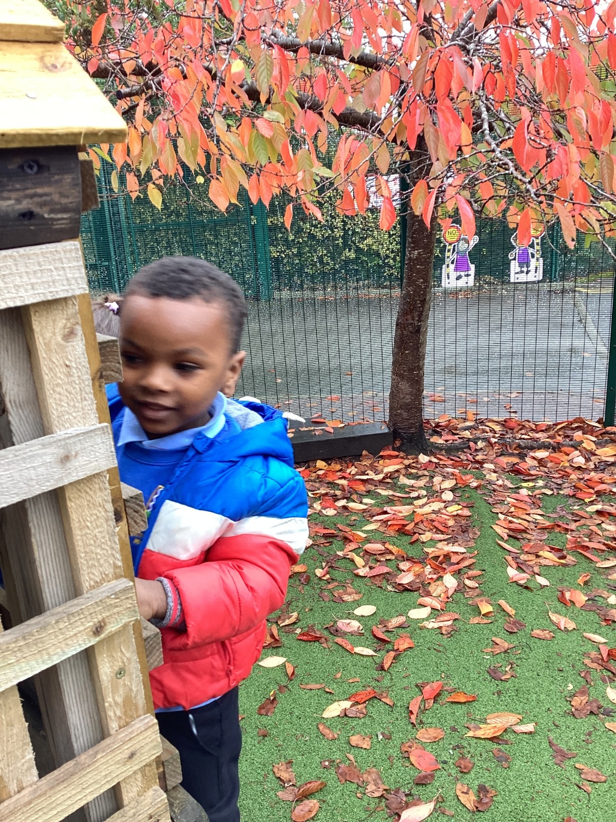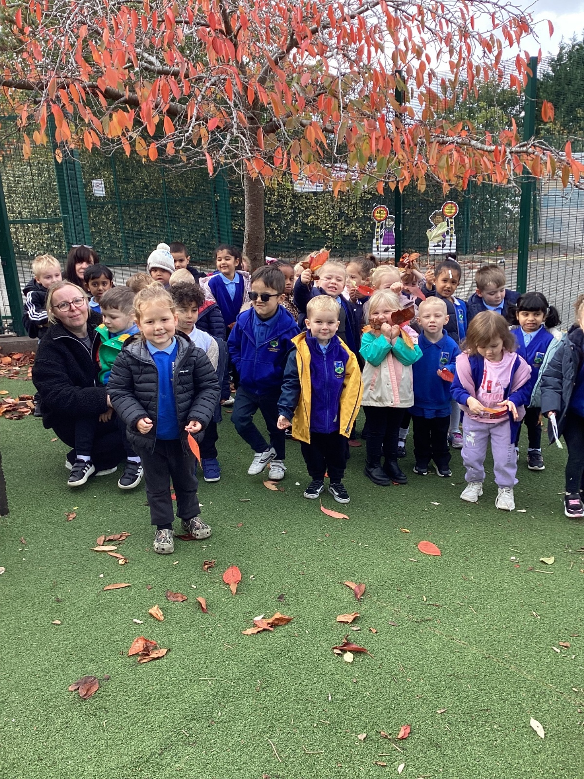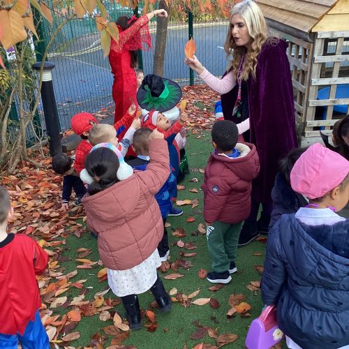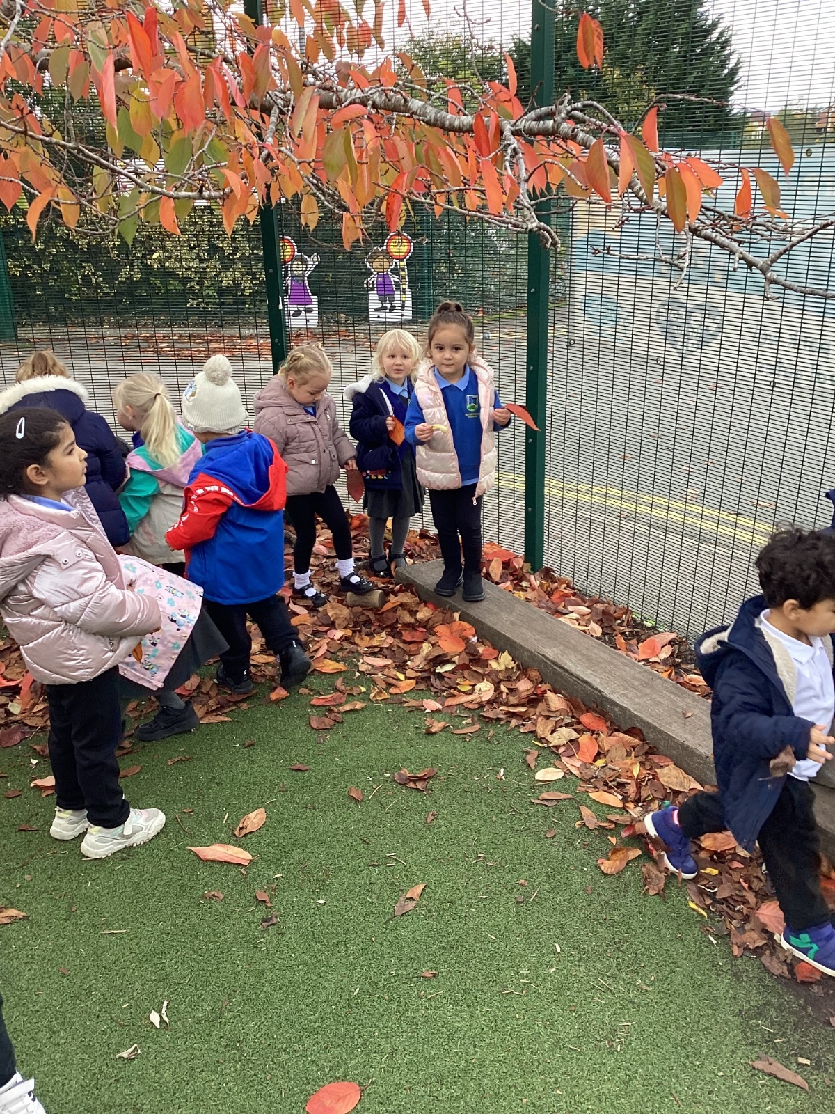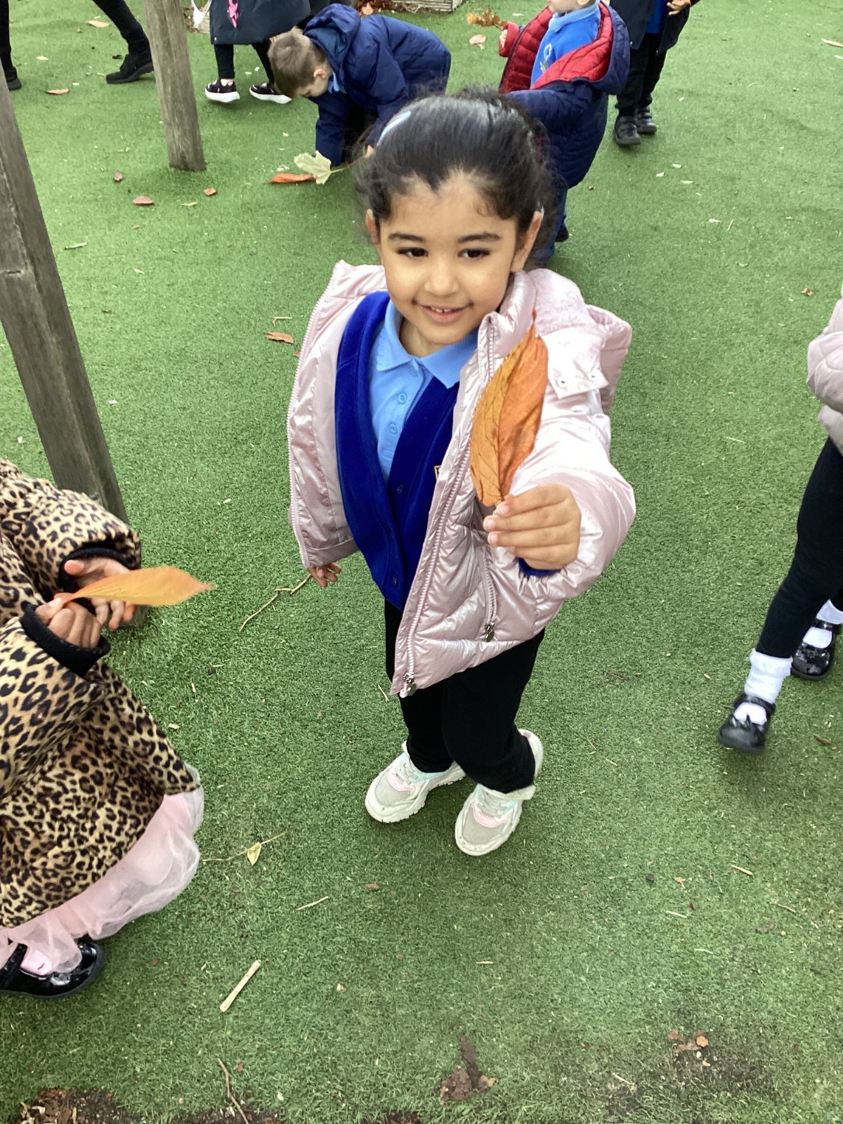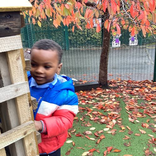 This week we have been talking about the changes that we have been able to see outside. We found out that the leaves have changed colour and have started falling off the trees. We discovered that the weather has turned a little colder and we have needed warmer coats. We went for a walk outside in the nursery yard and found lots of lovely leaves. We even collected some and used them on our collage pictures.