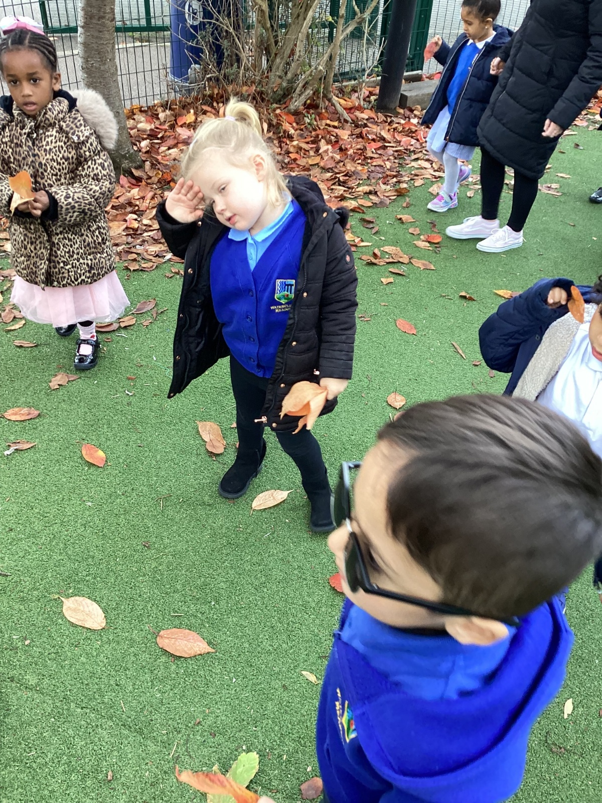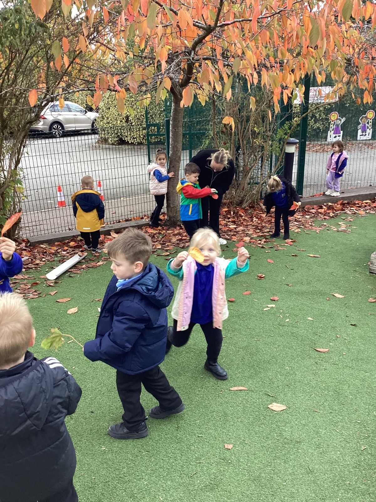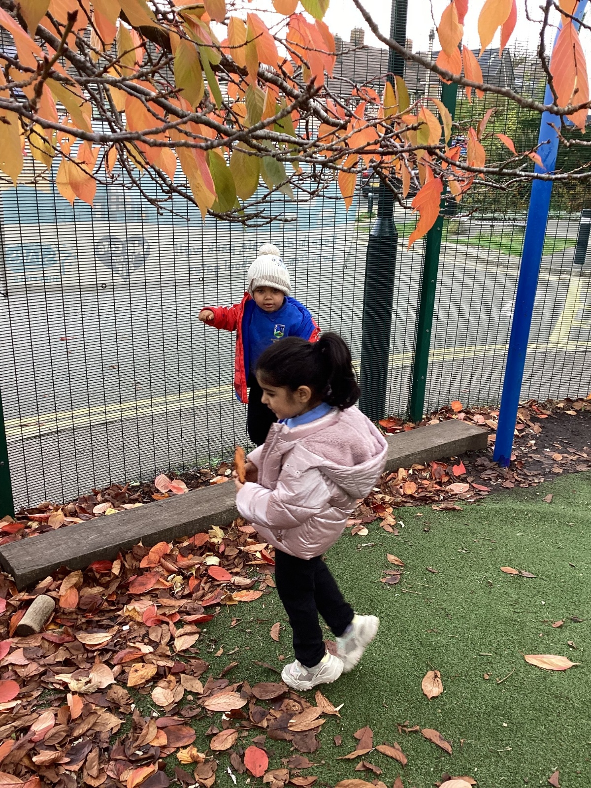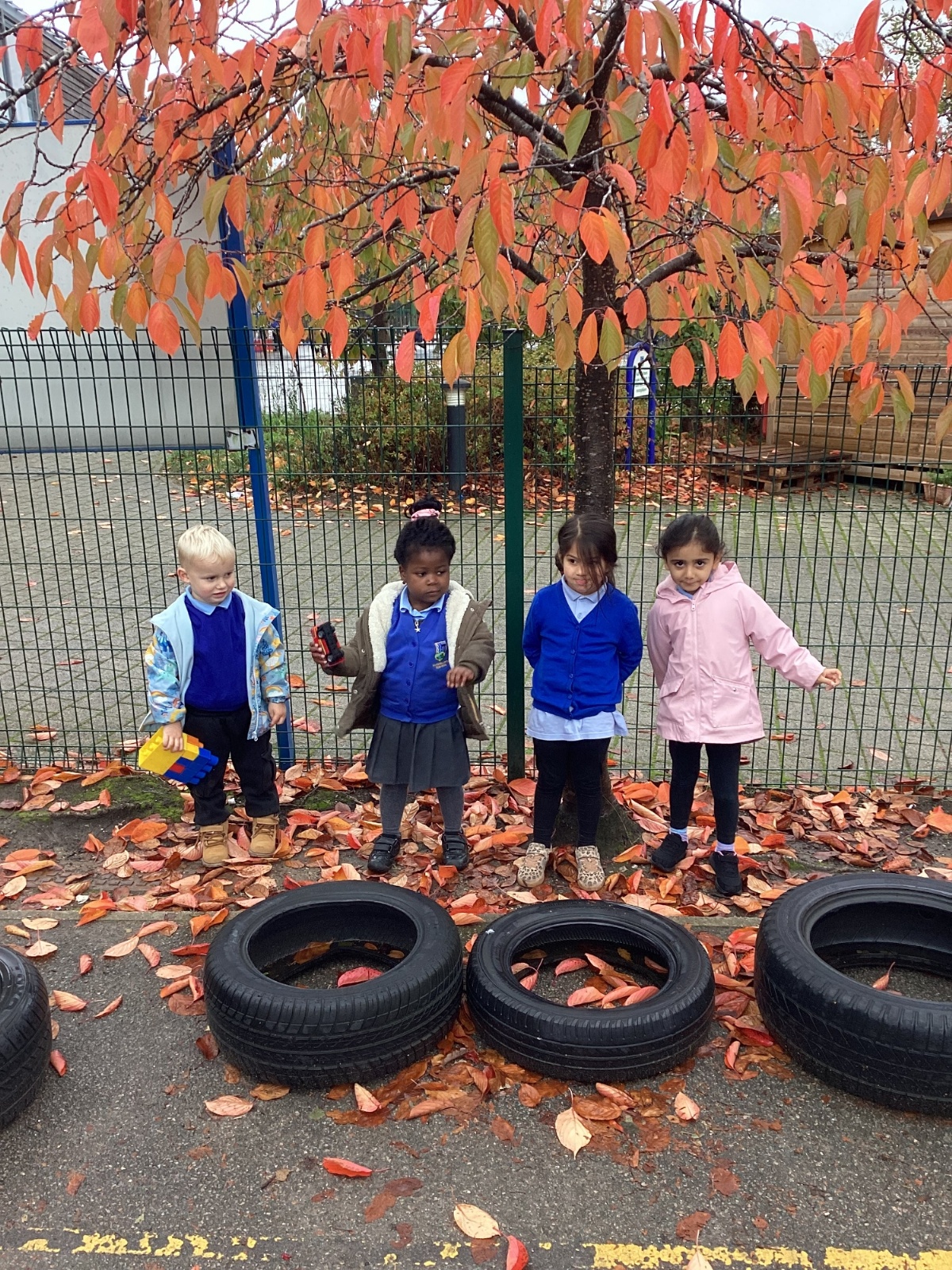 This week we have been talking about the changes that we have been able to see outside. We found out that the leaves have changed colour and have started falling off the trees. We discovered that the weather has turned a little colder and we have needed warmer coats. We went for a walk outside in the nursery yard and found lots of lovely leaves. We even collected some and used them on our collage pictures.