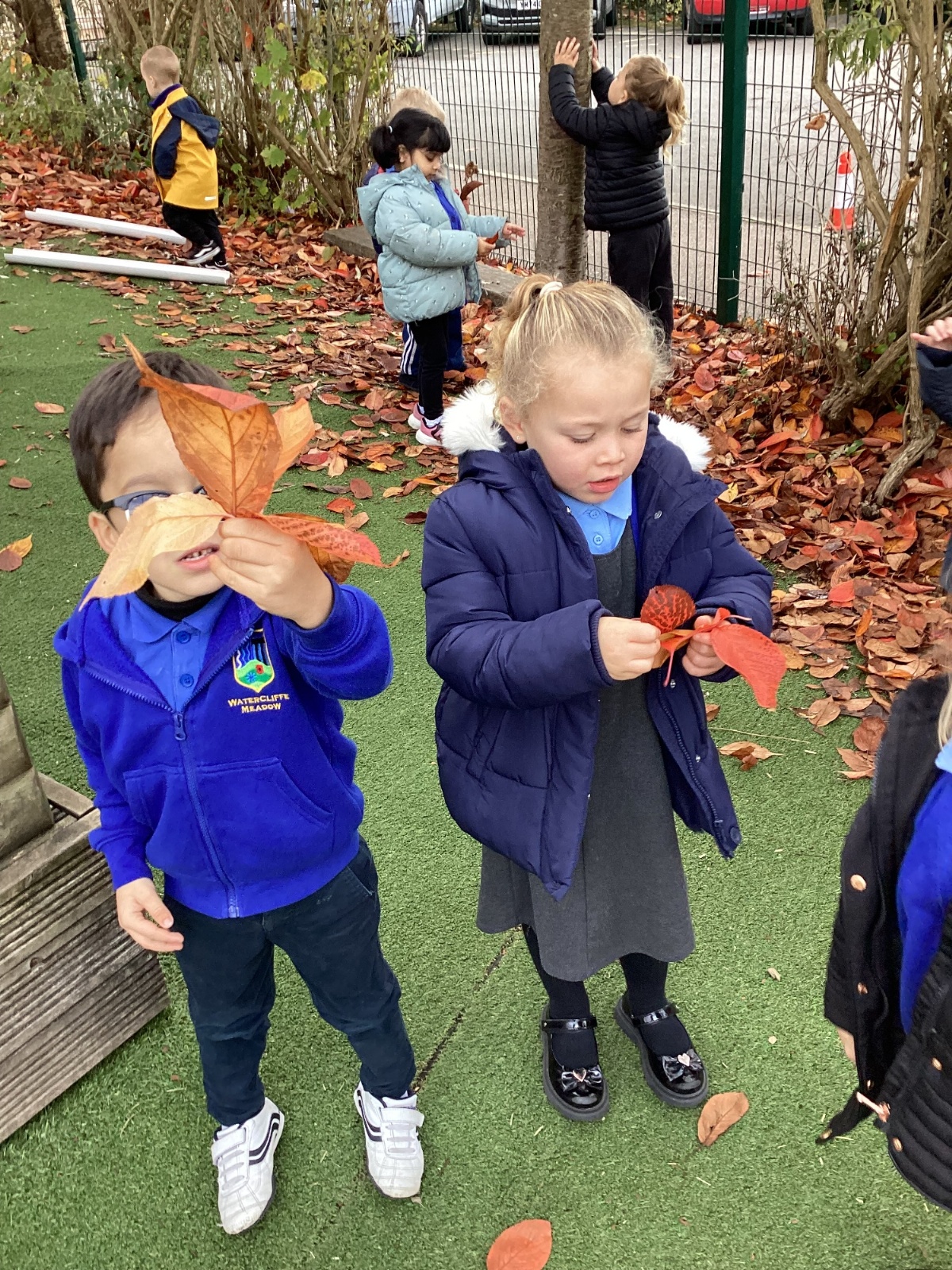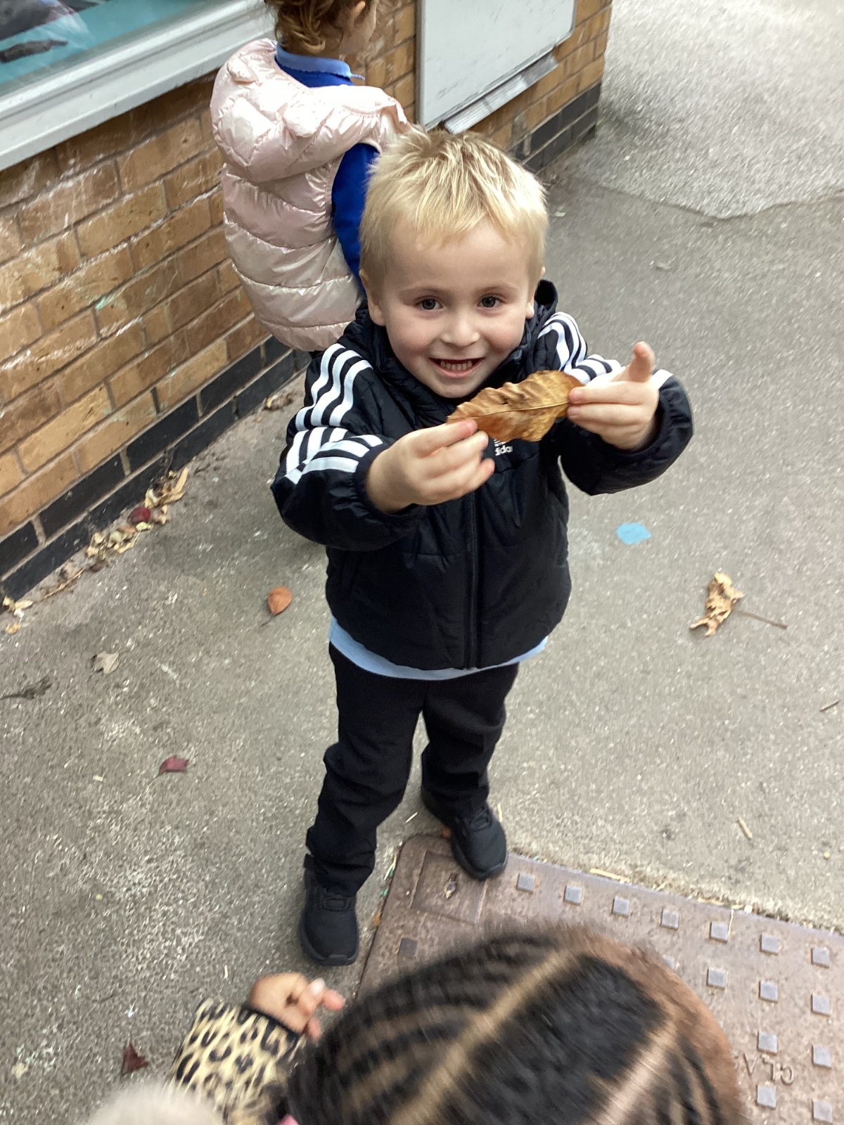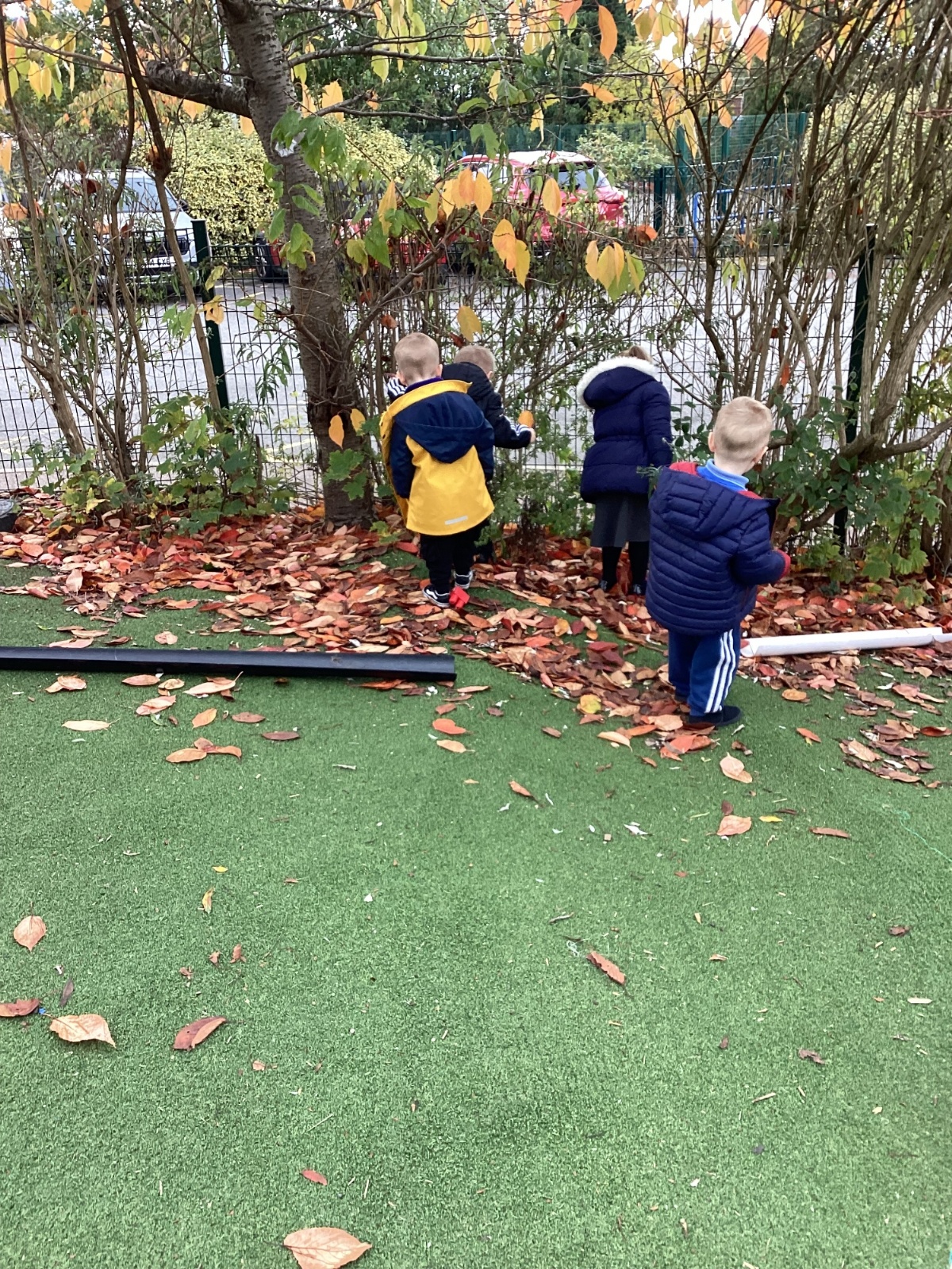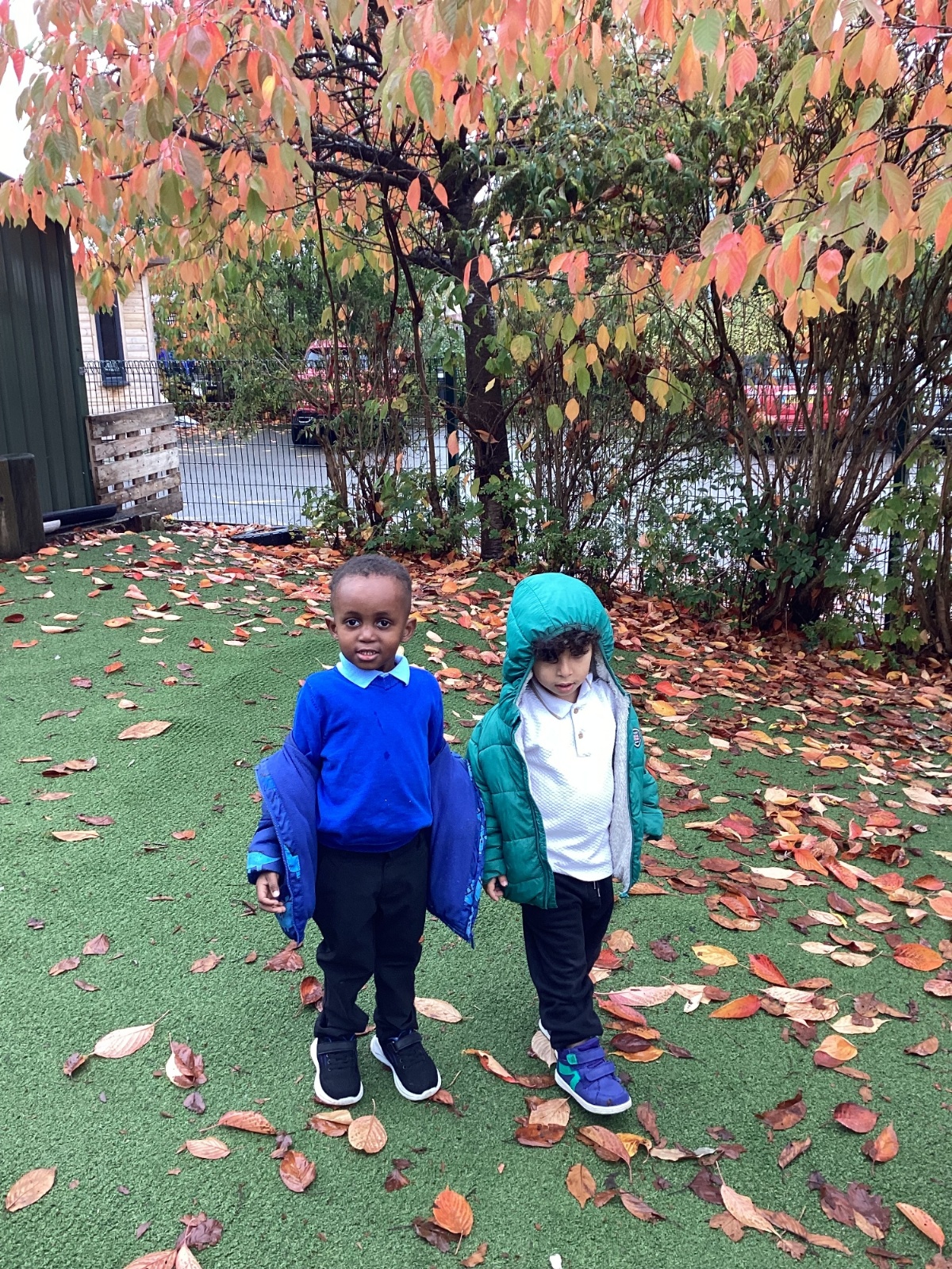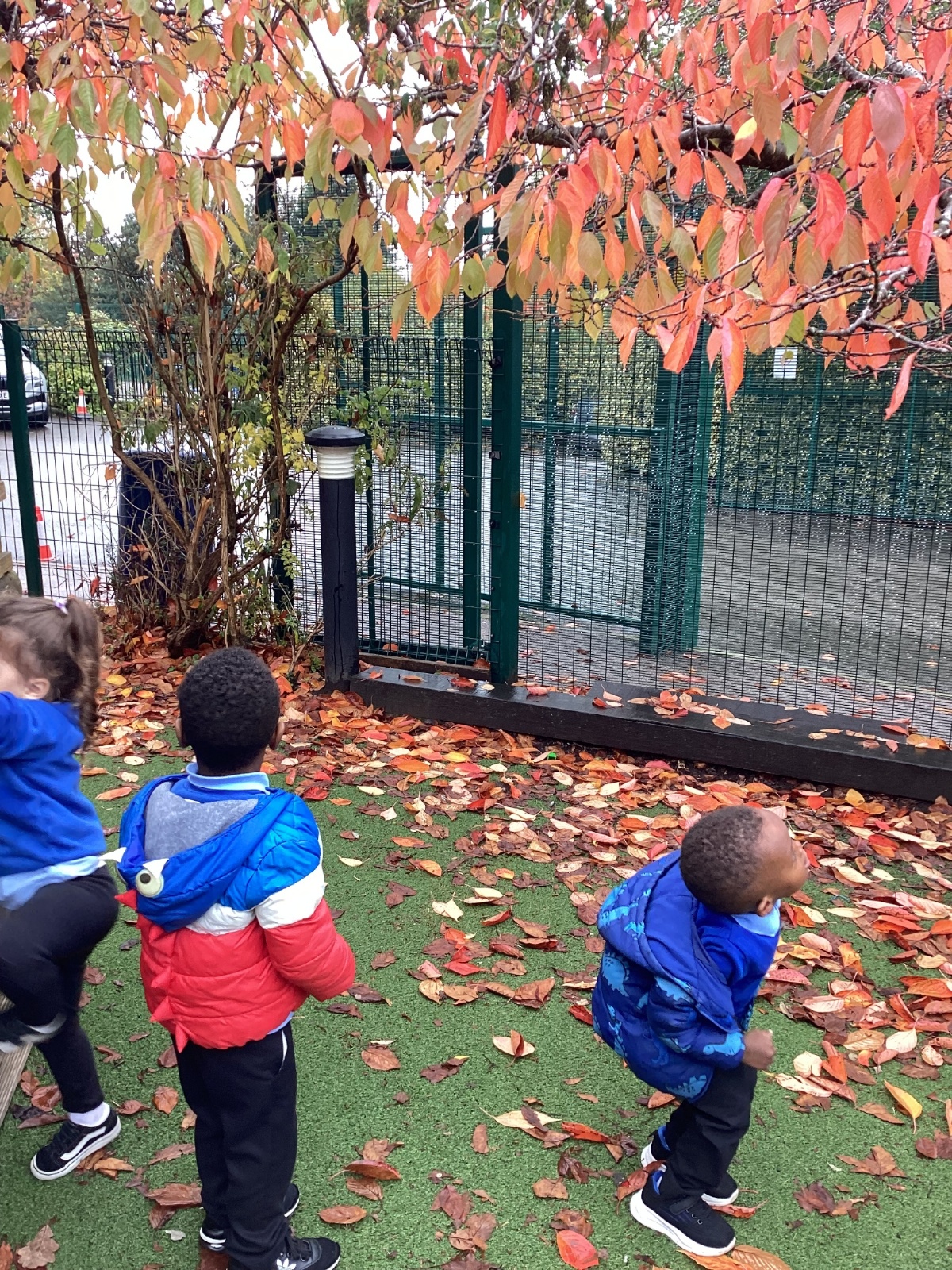 This week we have been talking about the changes that we have been able to see outside. We found out that the leaves have changed colour and have started falling off the trees. We discovered that the weather has turned a little colder and we have needed warmer coats. We went for a walk outside in the nursery yard and found lots of lovely leaves. We even collected some and used them on our collage pictures.