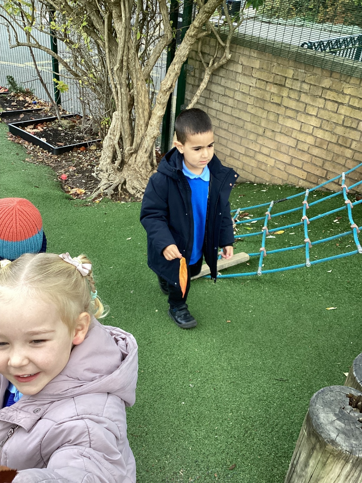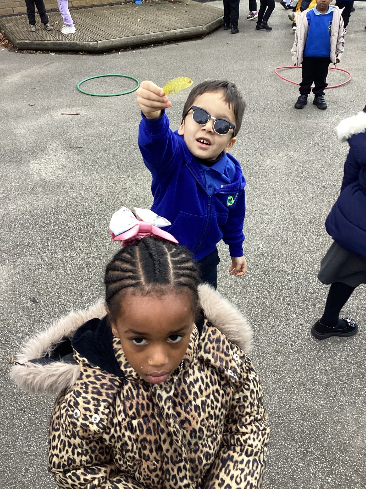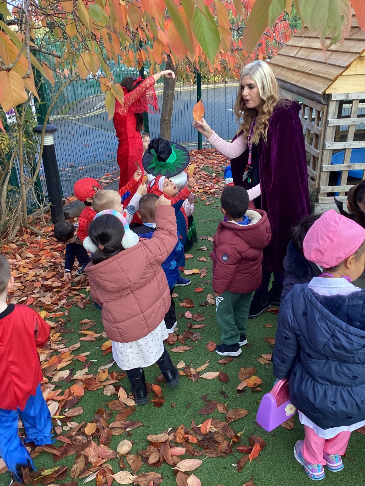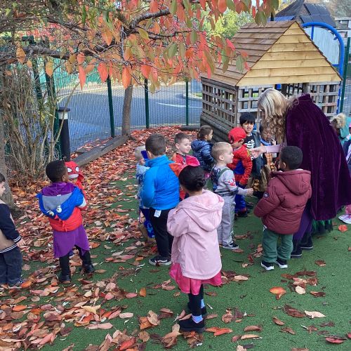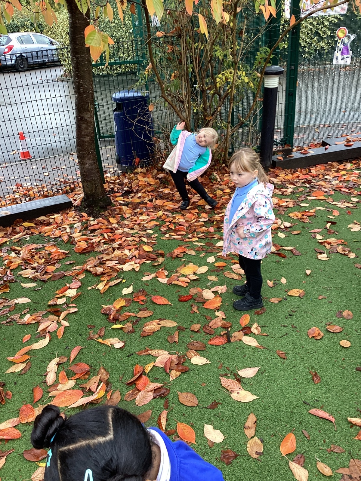 This week we have been talking about the changes that we have been able to see outside. We found out that the leaves have changed colour and have started falling off the trees. We discovered that the weather has turned a little colder and we have needed warmer coats. We went for a walk outside in the nursery yard and found lots of lovely leaves. We even collected some and used them on our collage pictures.