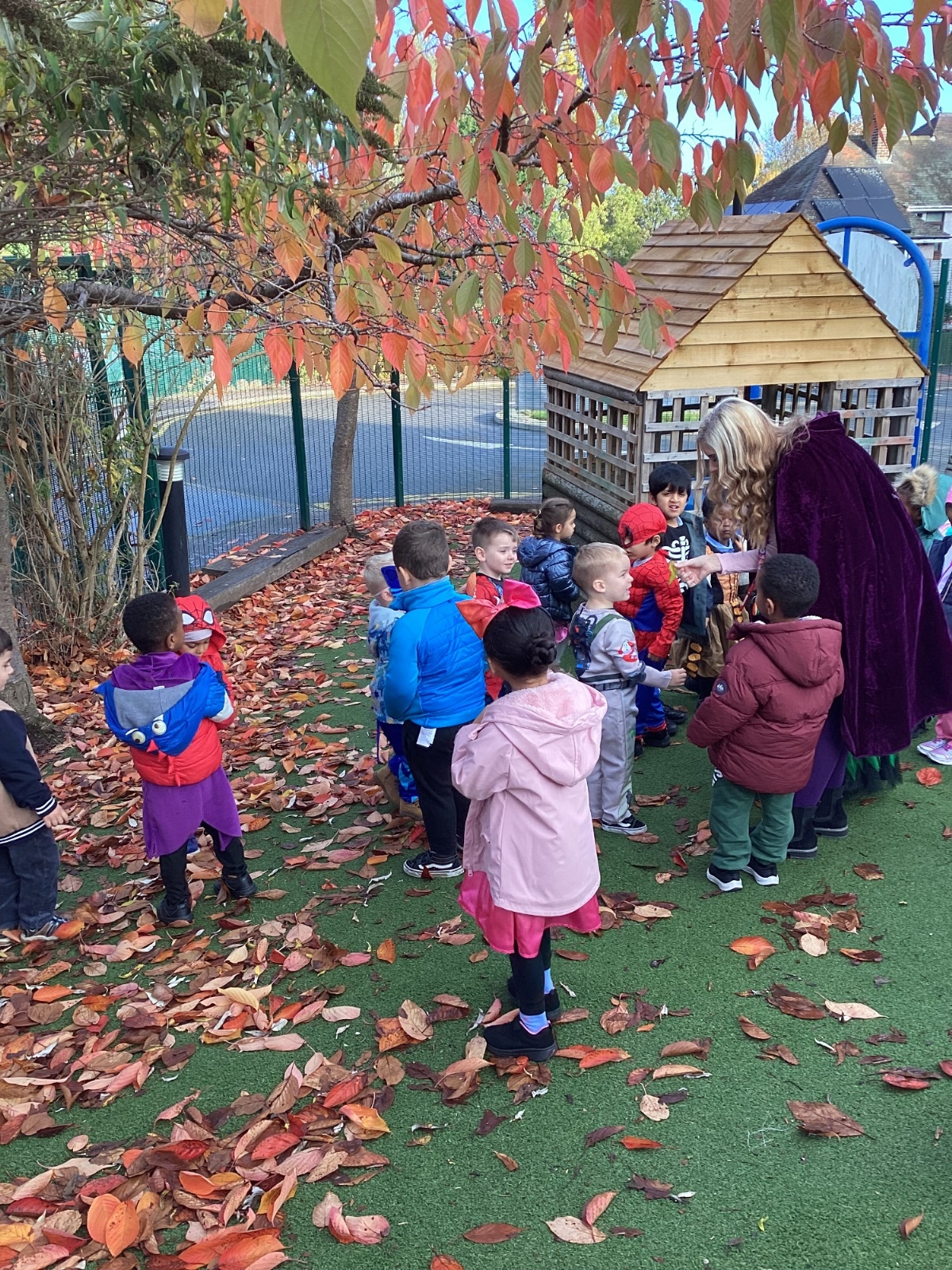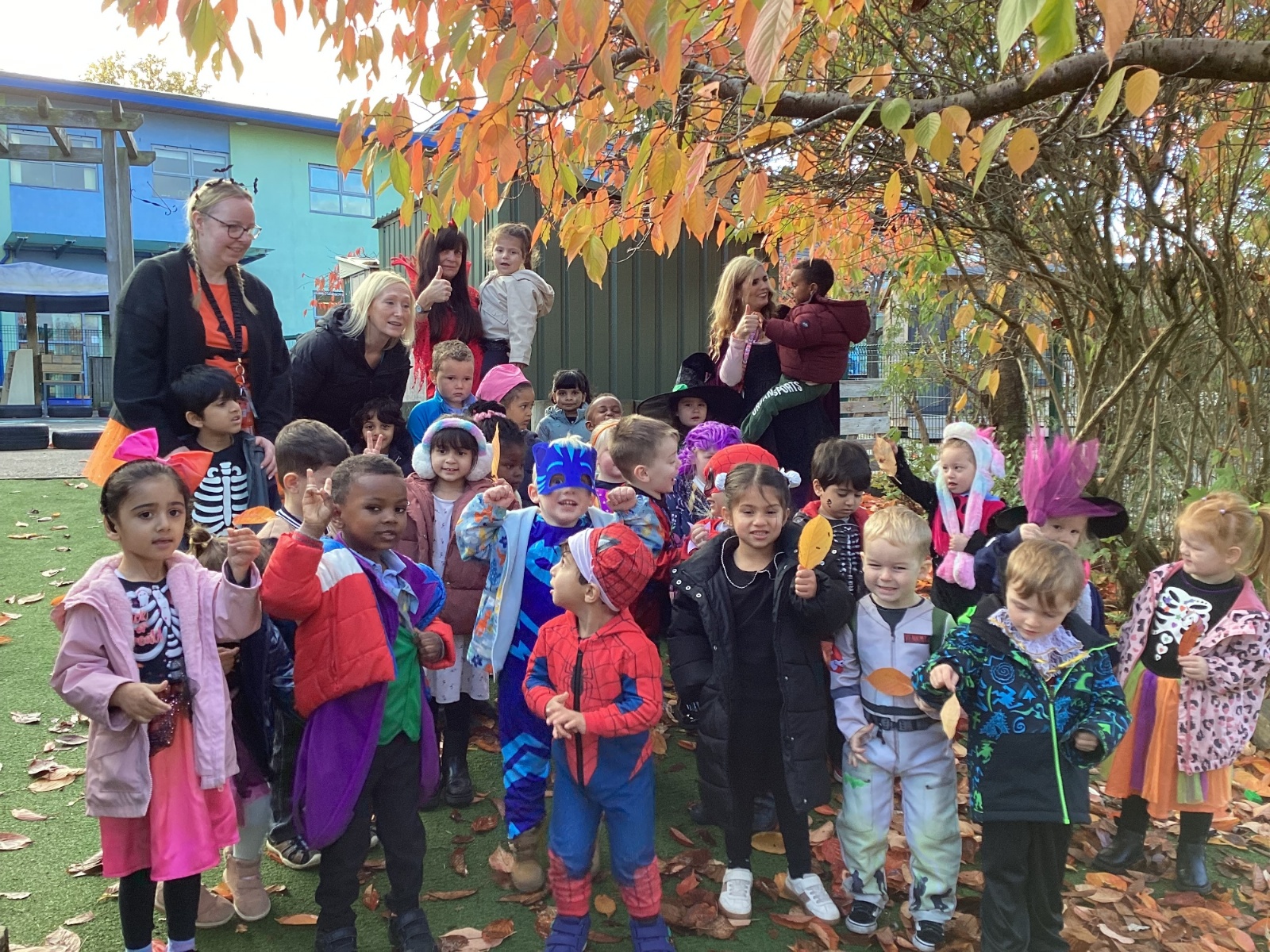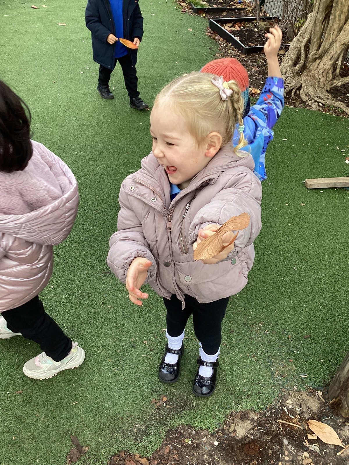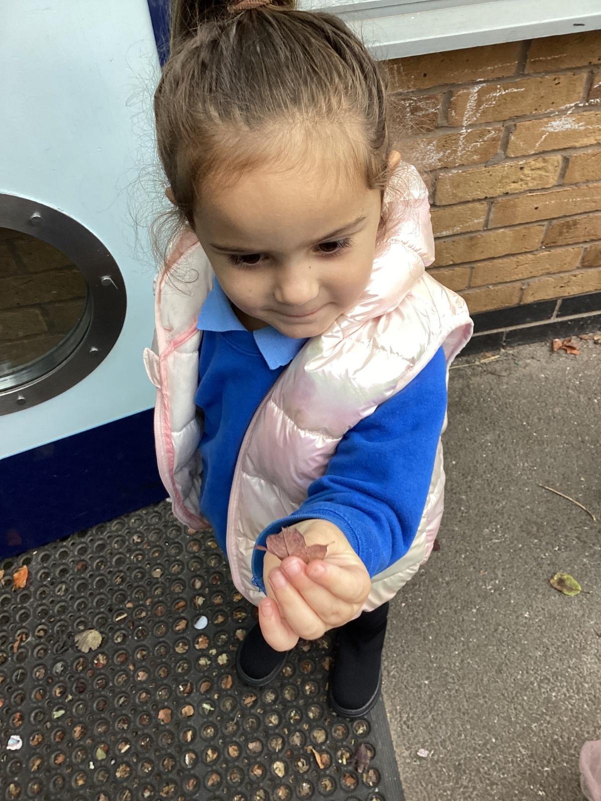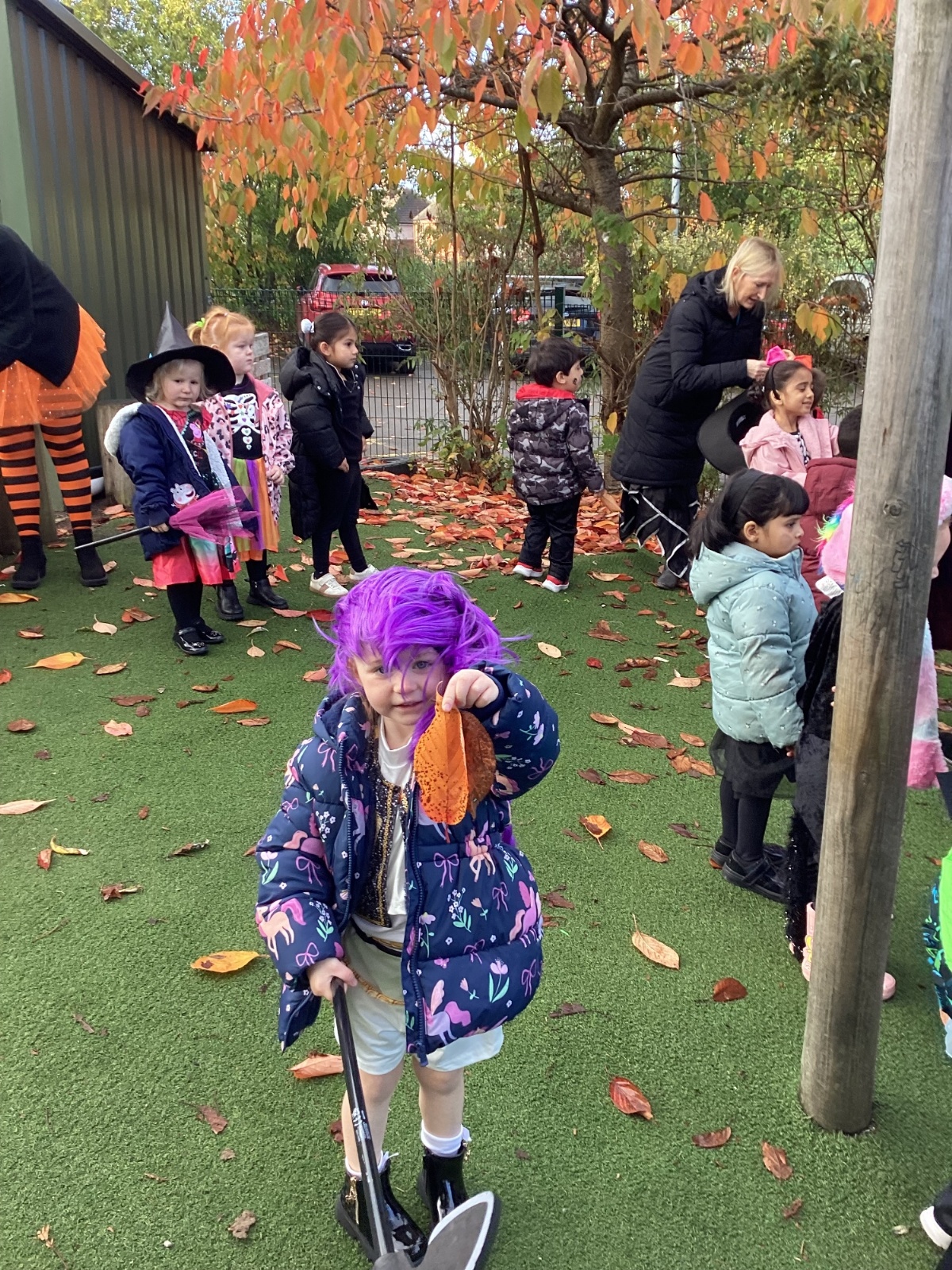 This week we have been talking about the changes that we have been able to see outside. We found out that the leaves have changed colour and have started falling off the trees. We discovered that the weather has turned a little colder and we have needed warmer coats. We went for a walk outside in the nursery yard and found lots of lovely leaves. We even collected some and used them on our collage pictures.