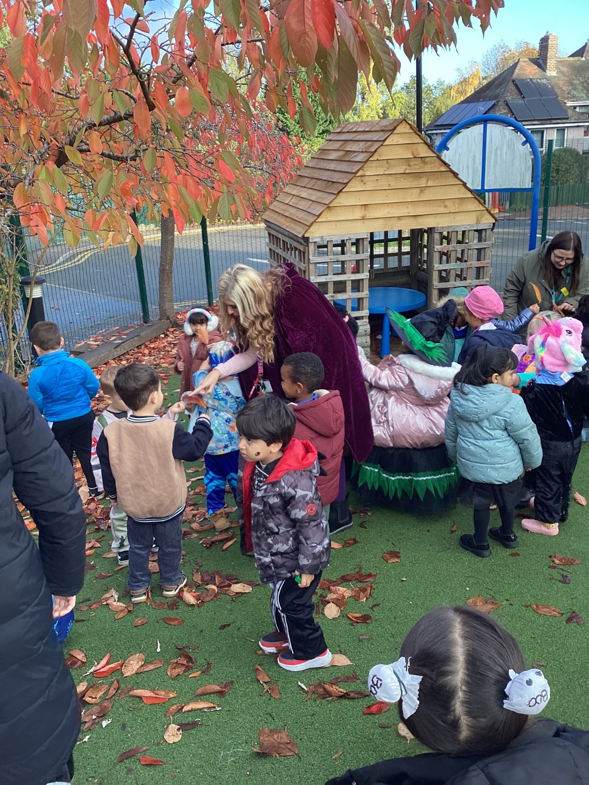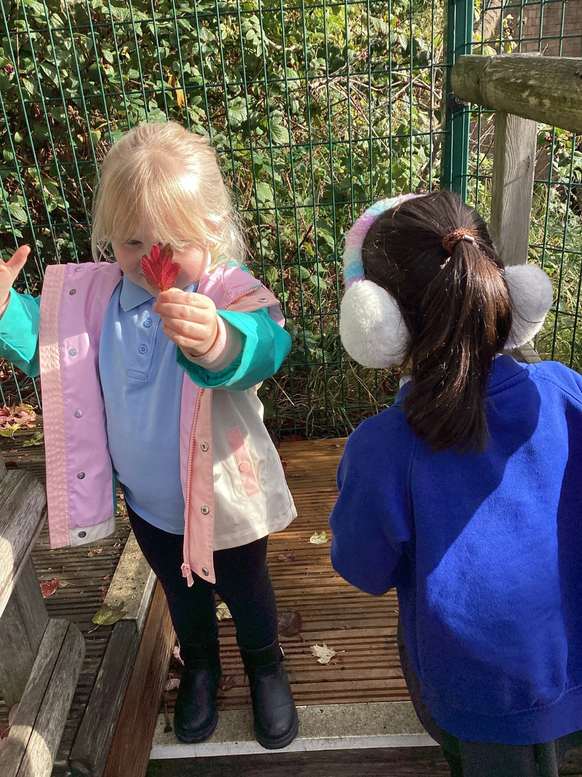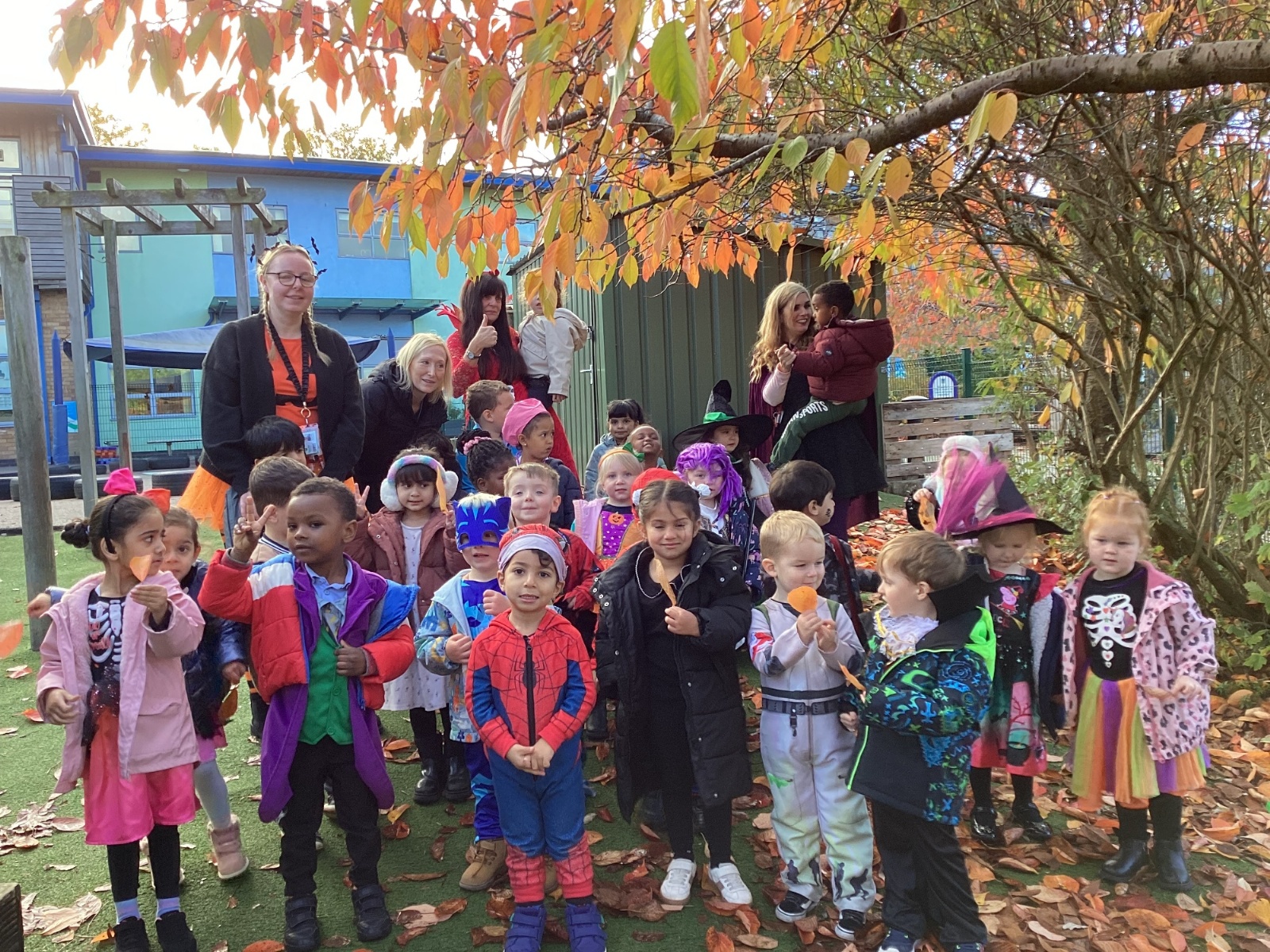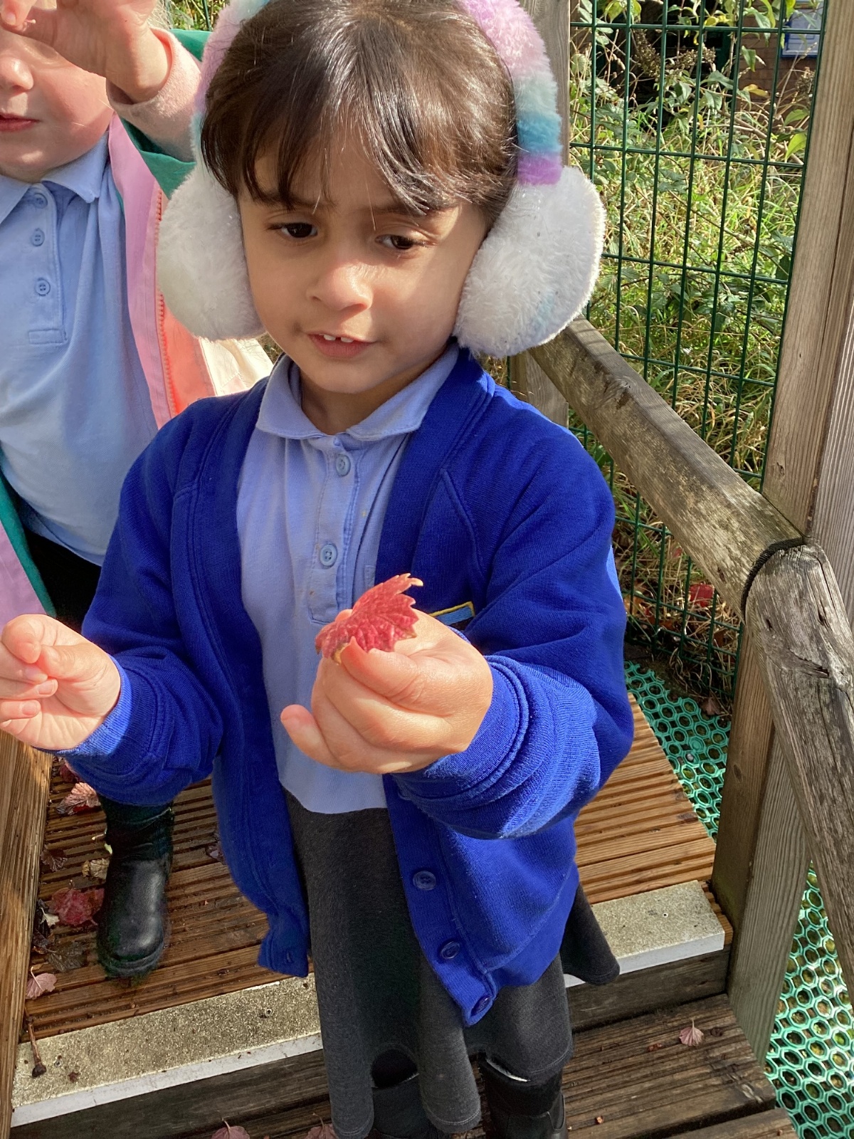 This week we have been talking about the changes that we have been able to see outside. We found out that the leaves have changed colour and have started falling off the trees. We discovered that the weather has turned a little colder and we have needed warmer coats. We went for a walk outside in the nursery yard and found lots of lovely leaves. We even collected some and used them on our collage pictures.