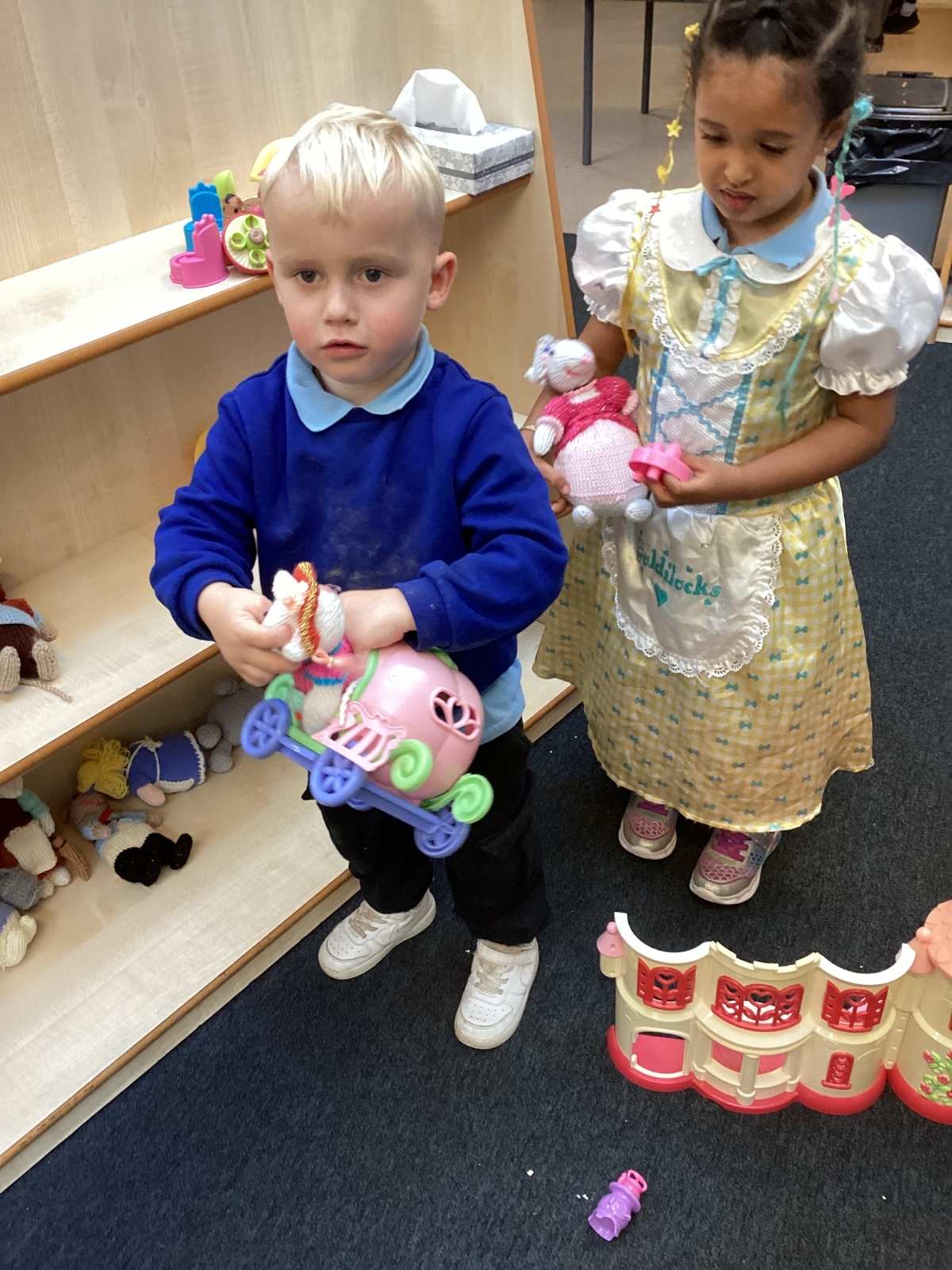 We have had some new home made fairytale characters join us in nursery this week! We have really enjoyed re-enacting lots of traditional fairytales together and making up some very interesting new ones!