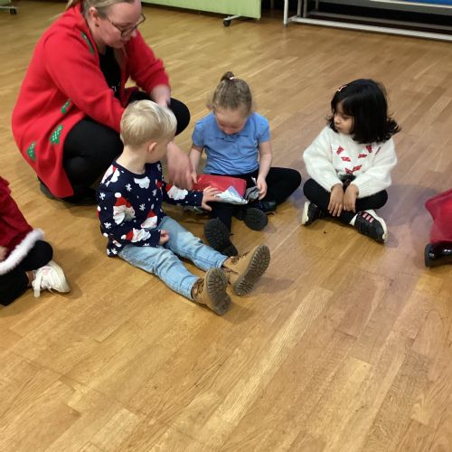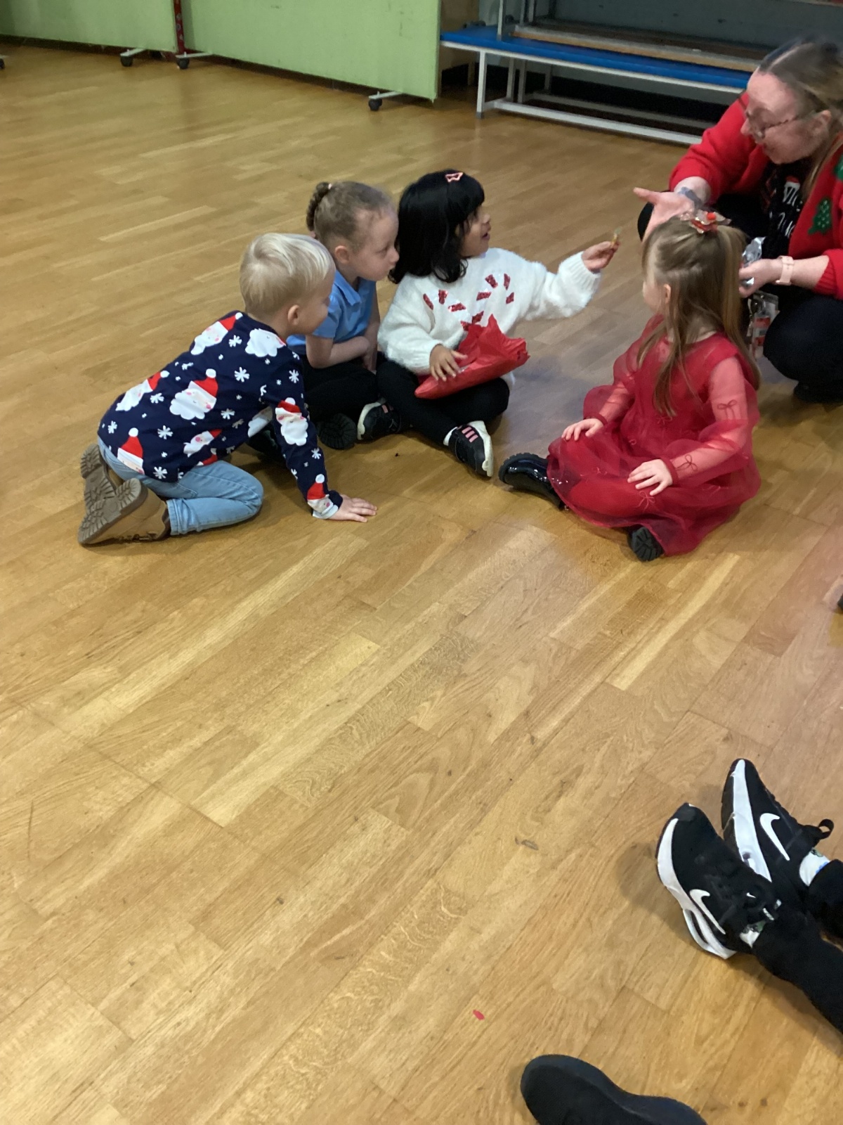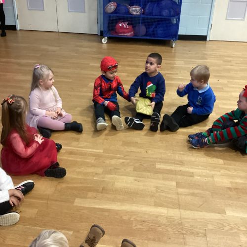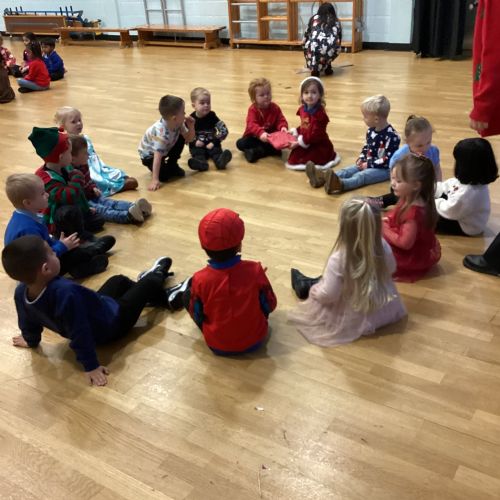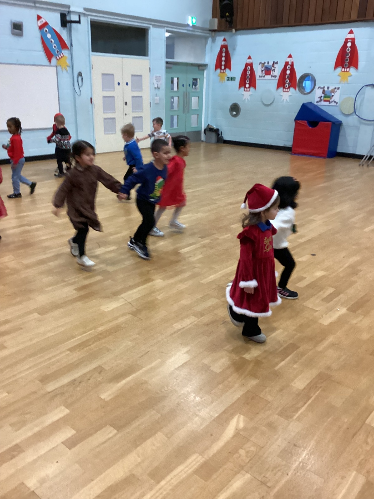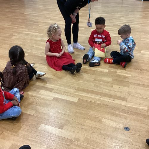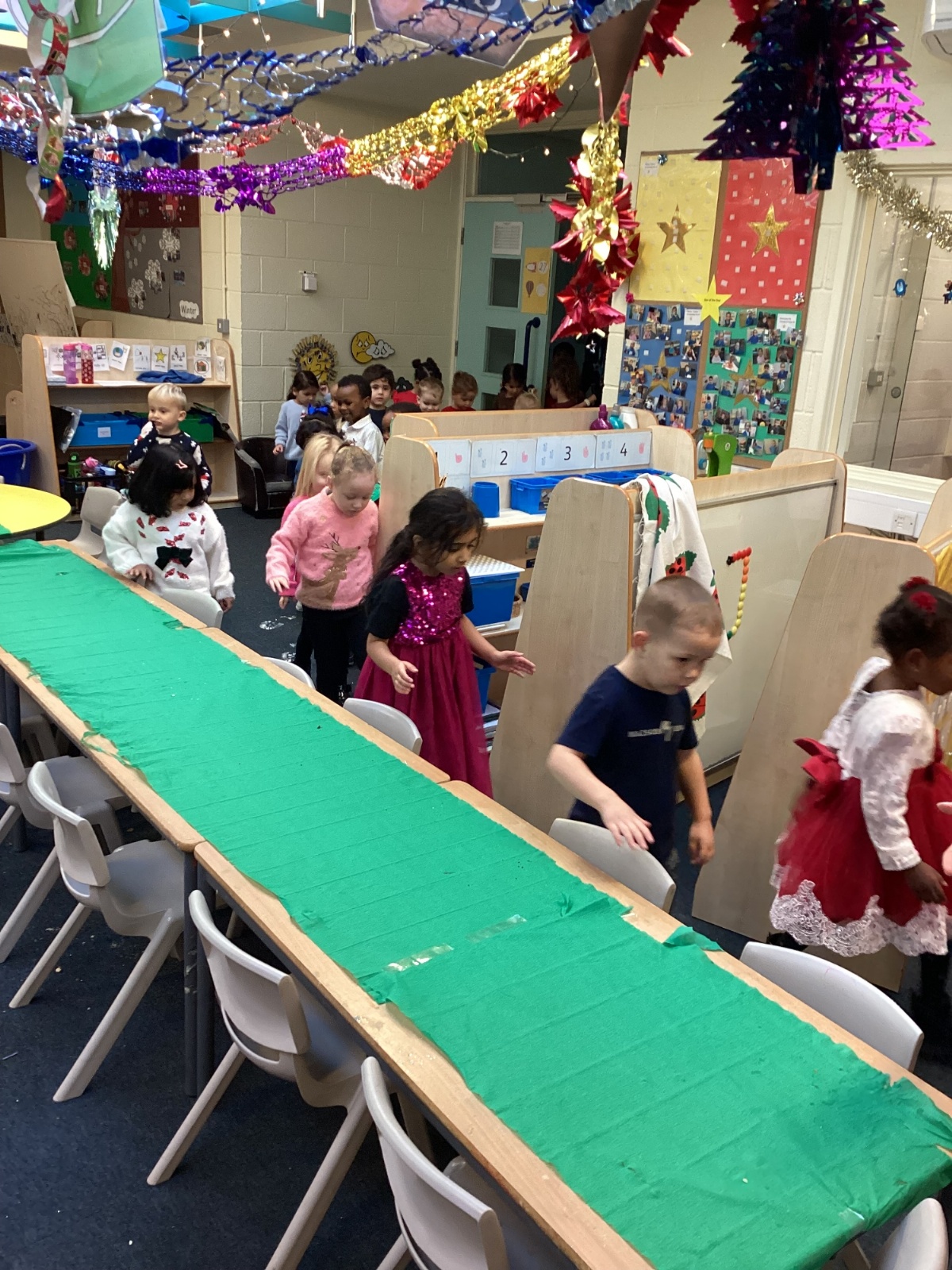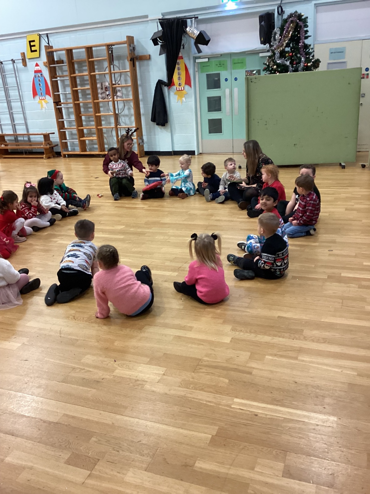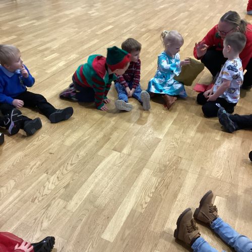 Yesterday was our Nursery Christmas Party and we had a fantastic day! We played pass the parcel, musical bumps and had a disco. We ate some party food all together. The best thing was a surprise visit from Father Christmas who brought us all a present while we were in the hall having fun! He made a bit of a mess in nursery with his snowy footprints, but the teachers didn't mind! What a fun time we had!