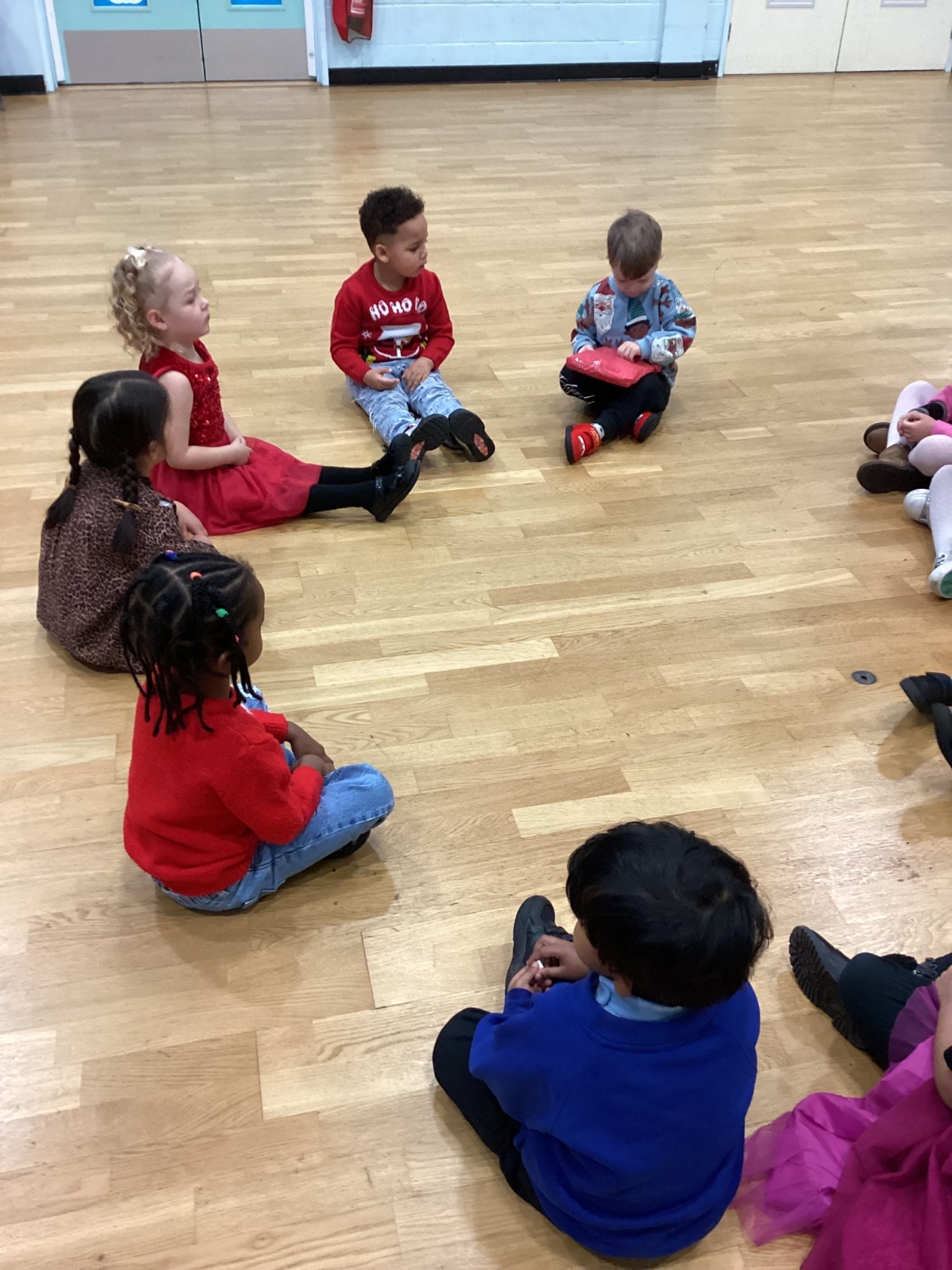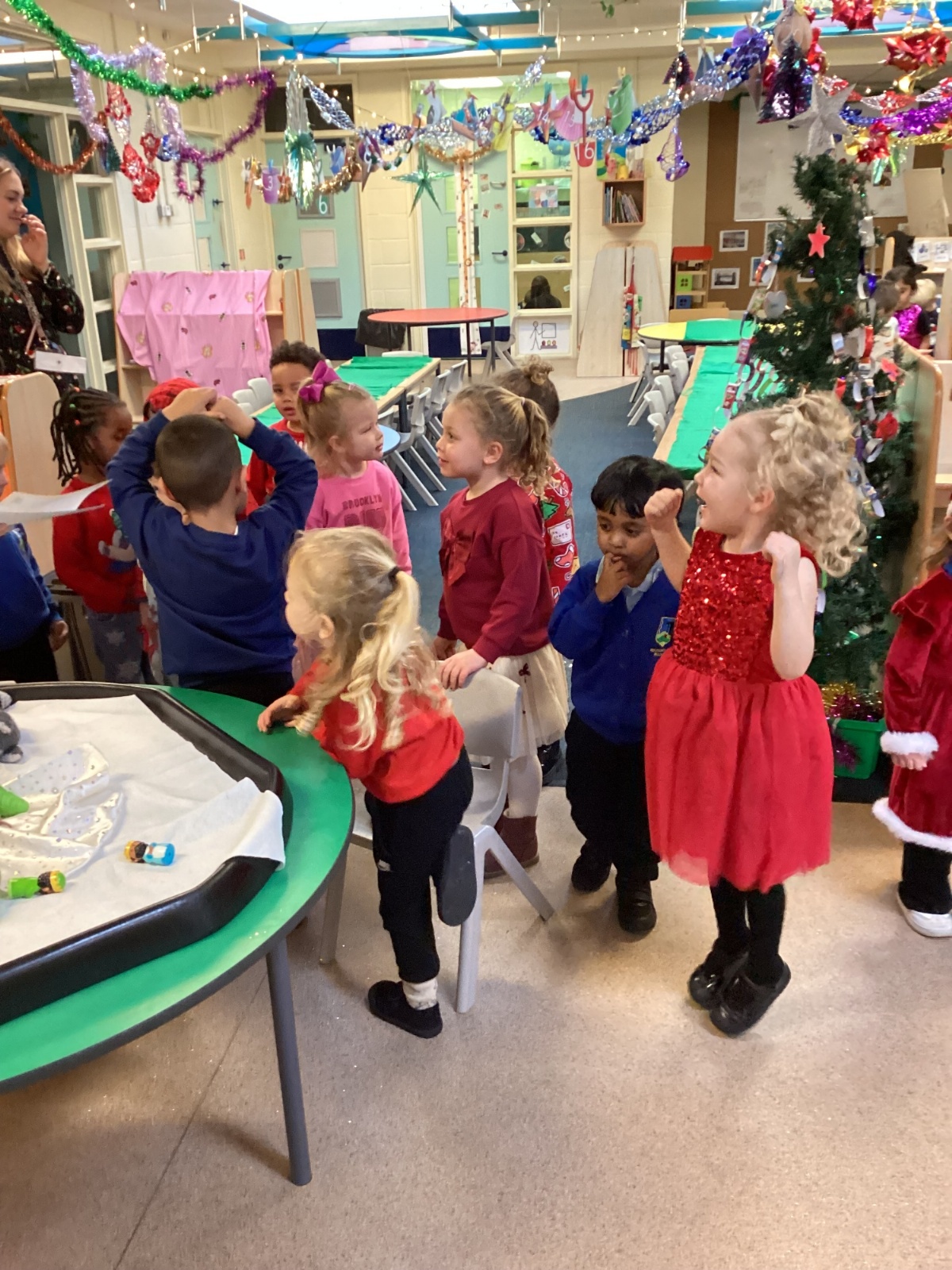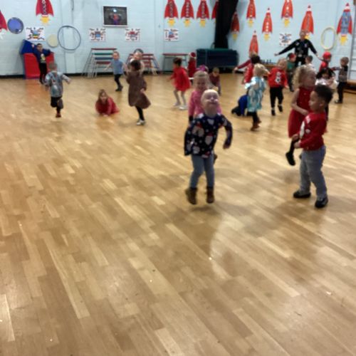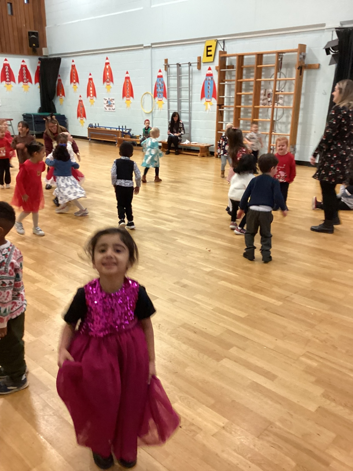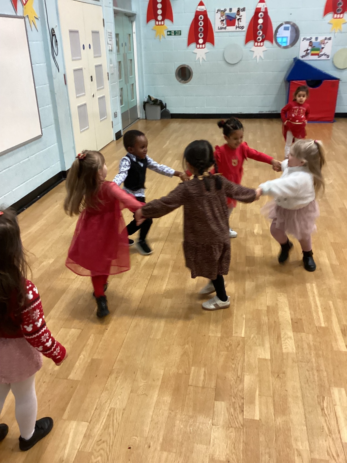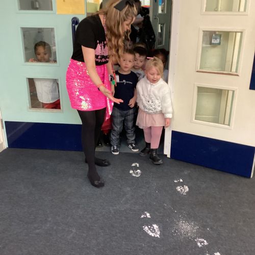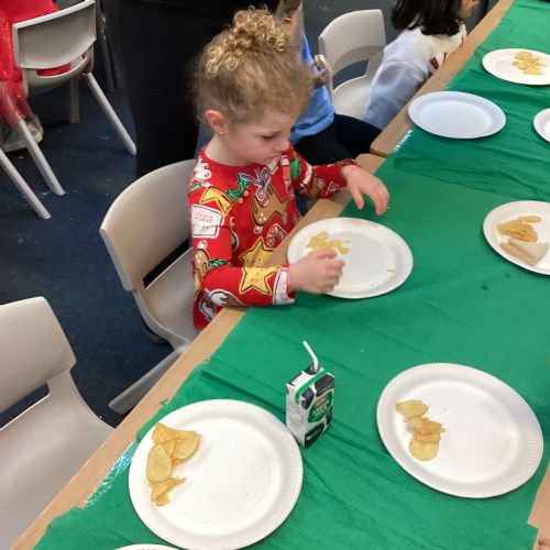 Yesterday was our Nursery Christmas Party and we had a fantastic day! We played pass the parcel, musical bumps and had a disco. We ate some party food all together. The best thing was a surprise visit from Father Christmas who brought us all a present while we were in the hall having fun! He made a bit of a mess in nursery with his snowy footprints, but the teachers didn't mind! What a fun time we had!