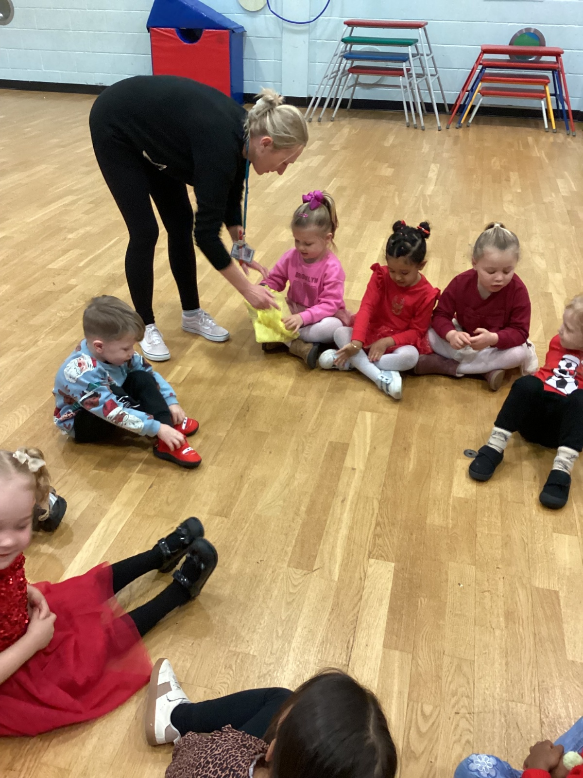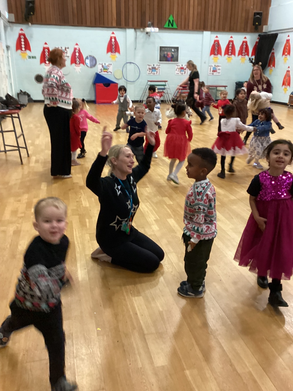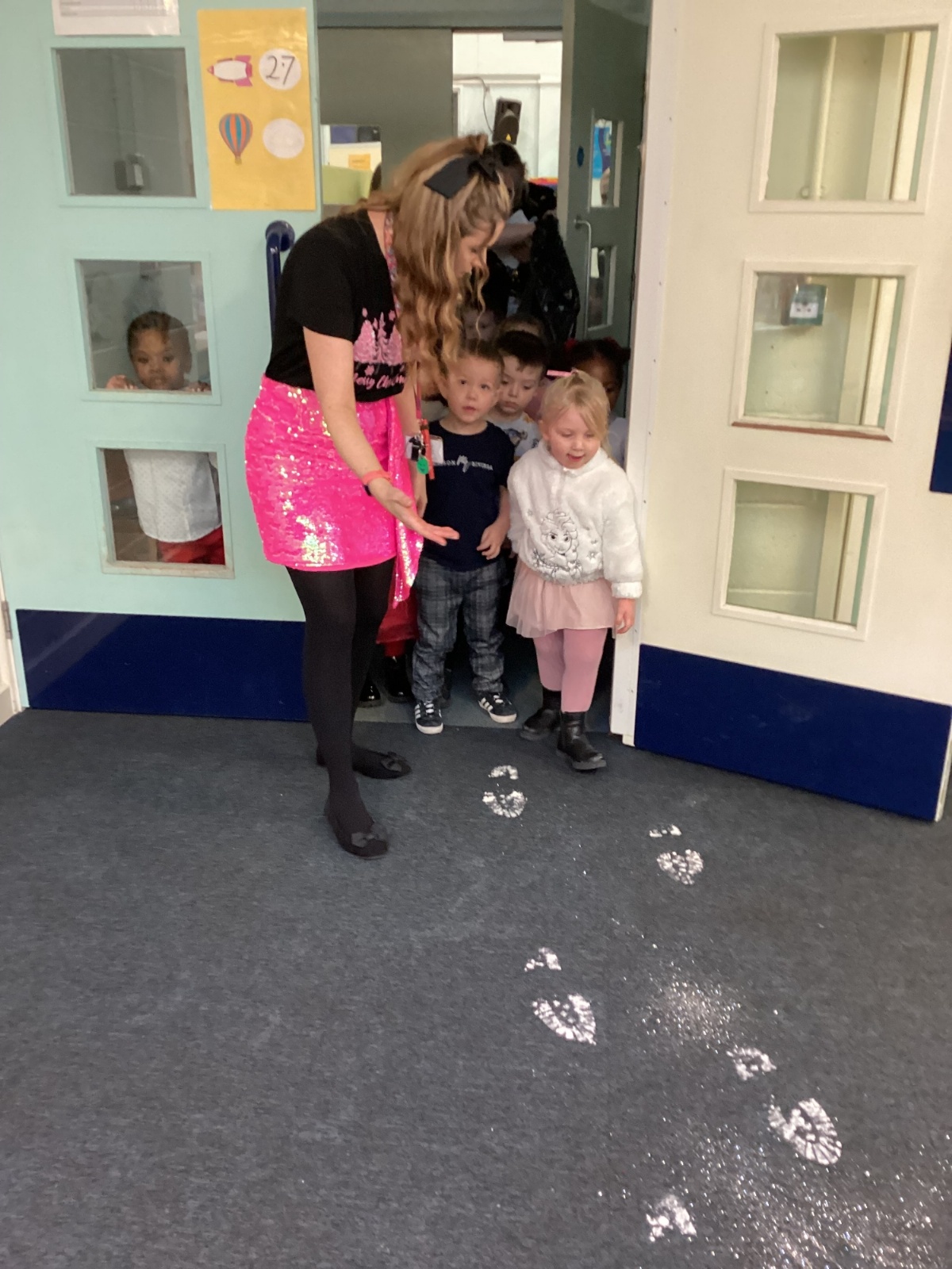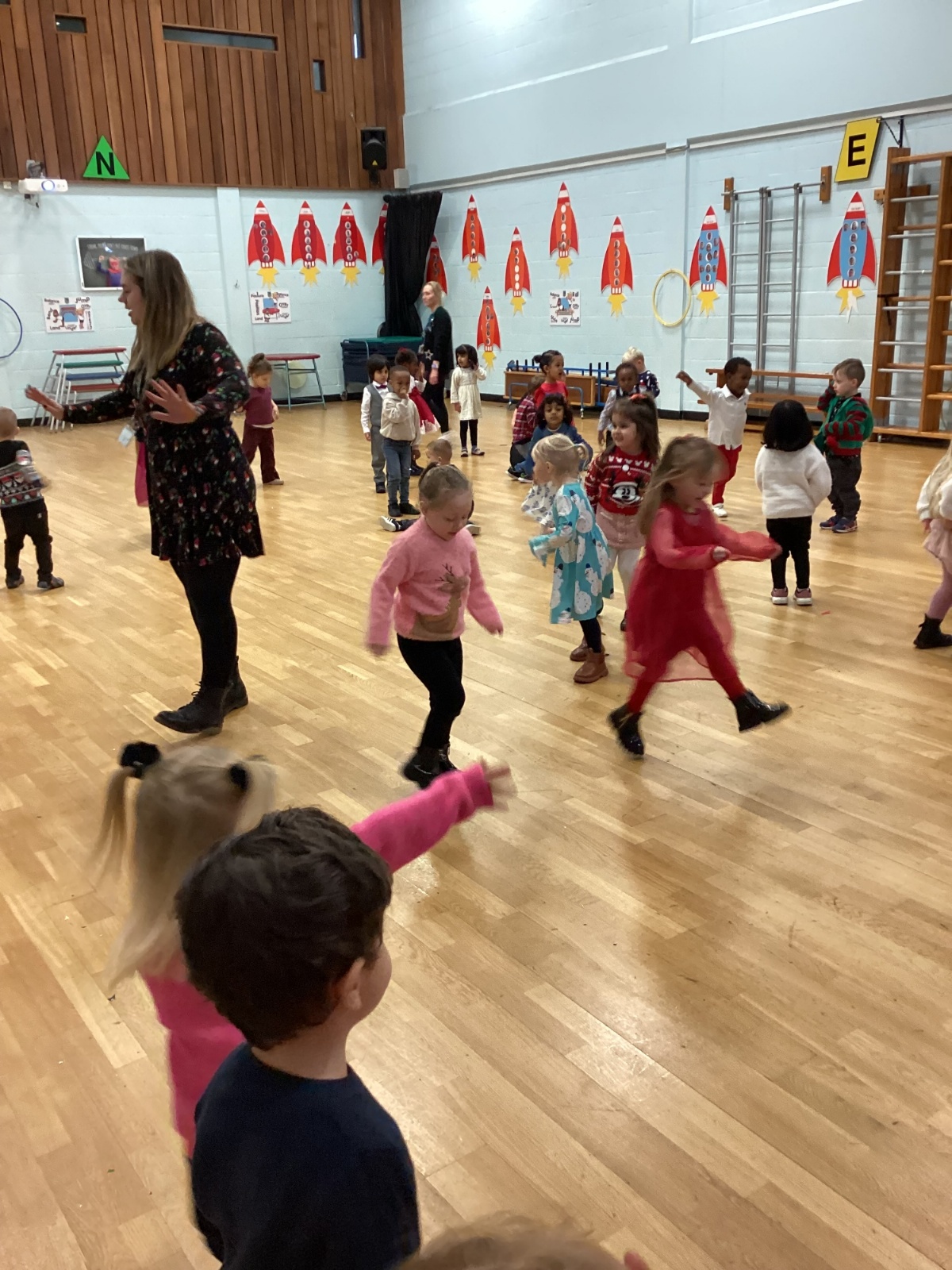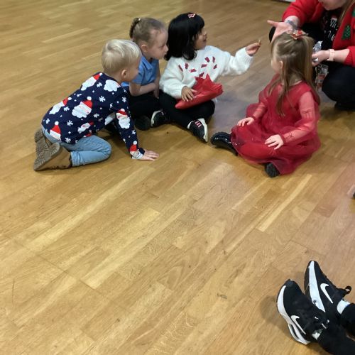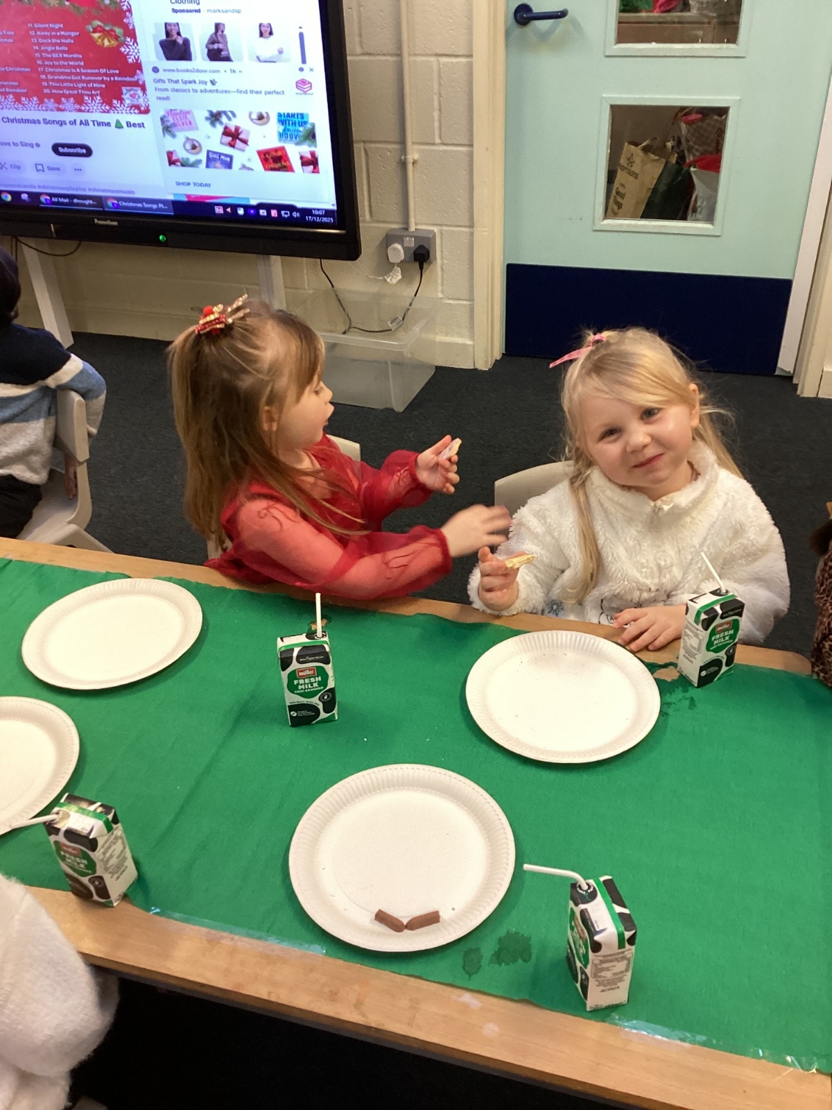 Yesterday was our Nursery Christmas Party and we had a fantastic day! We played pass the parcel, musical bumps and had a disco. We ate some party food all together. The best thing was a surprise visit from Father Christmas who brought us all a present while we were in the hall having fun! He made a bit of a mess in nursery with his snowy footprints, but the teachers didn't mind! What a fun time we had!
