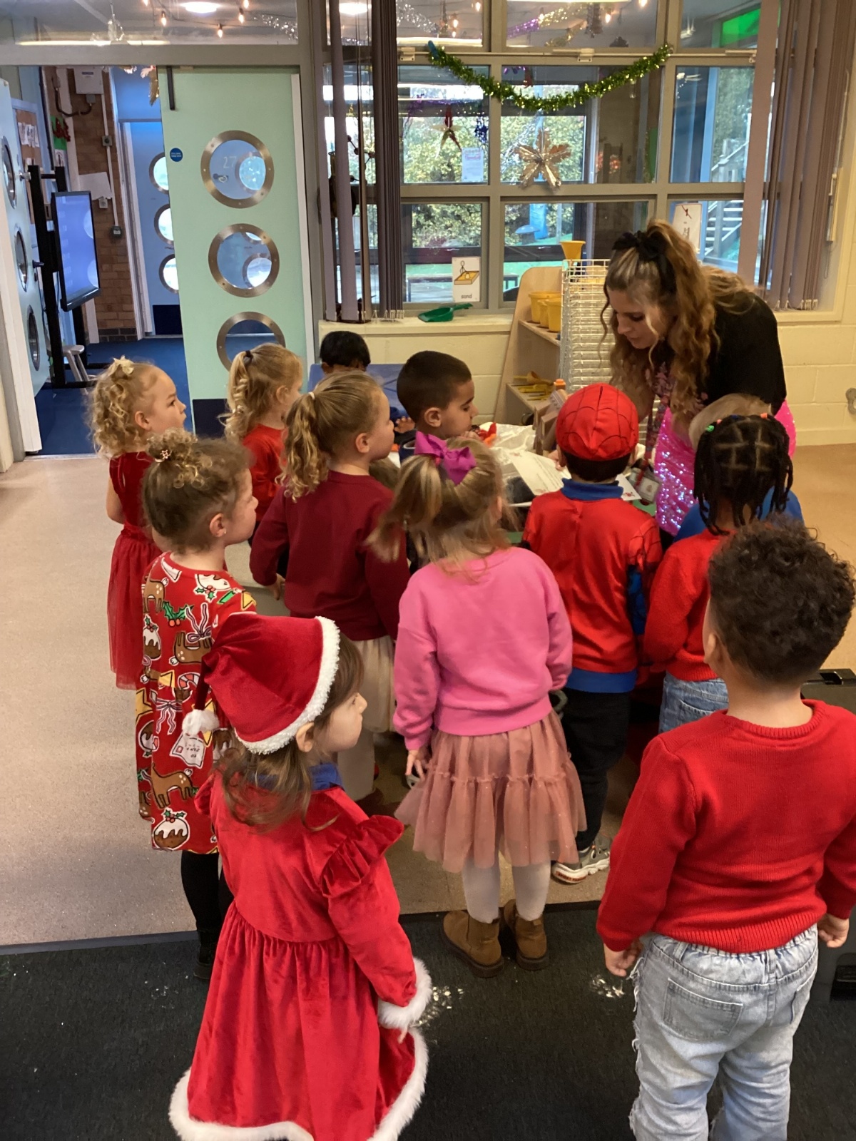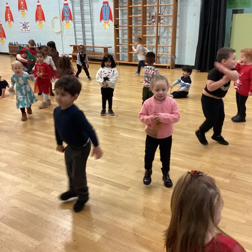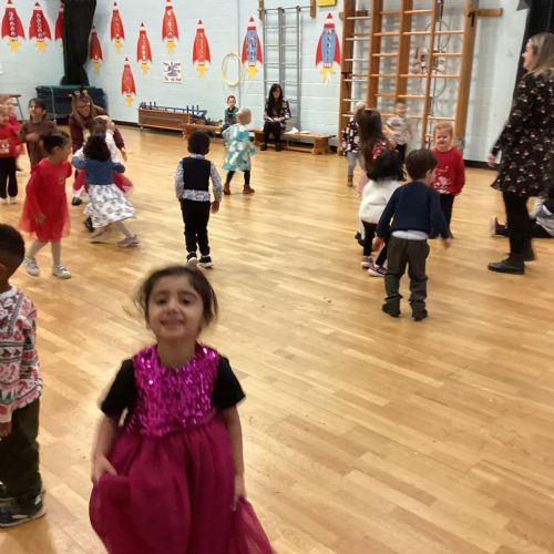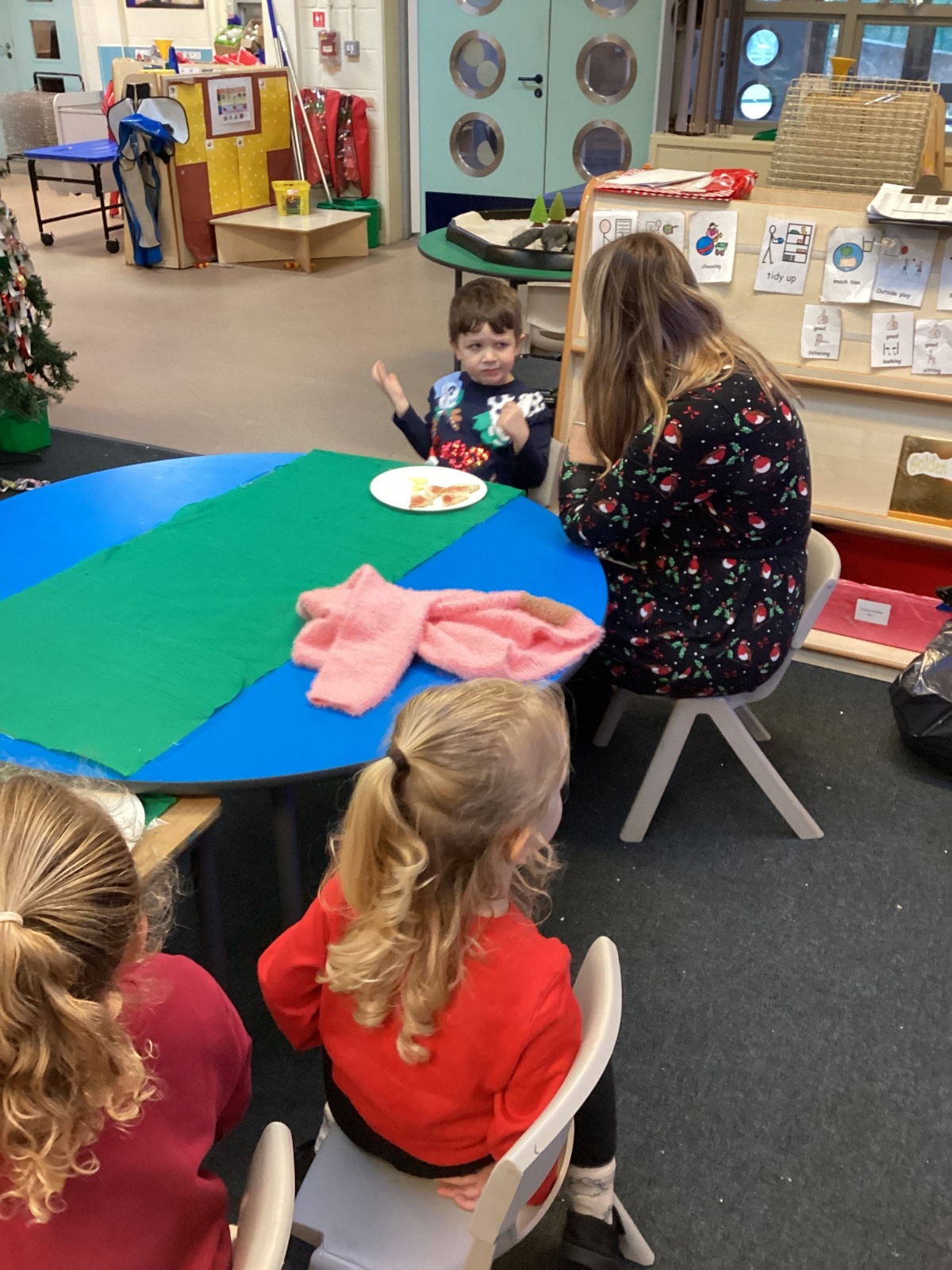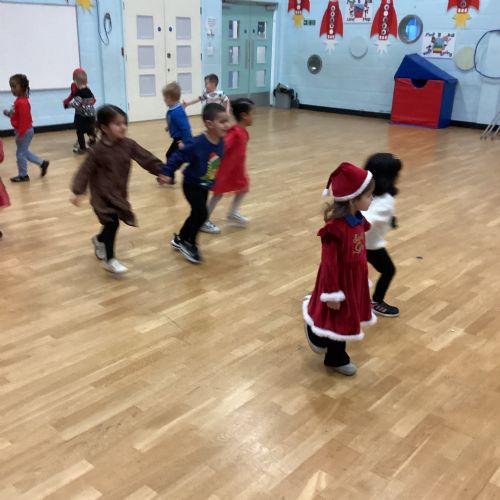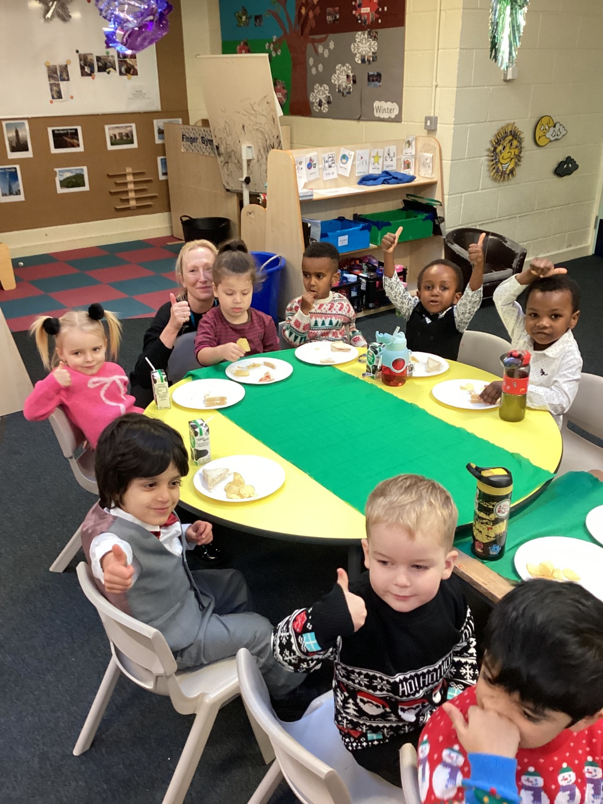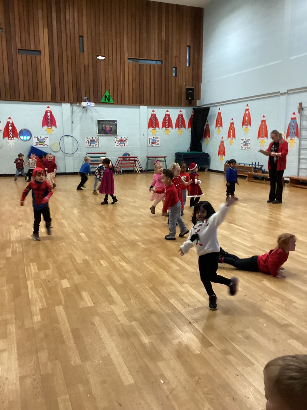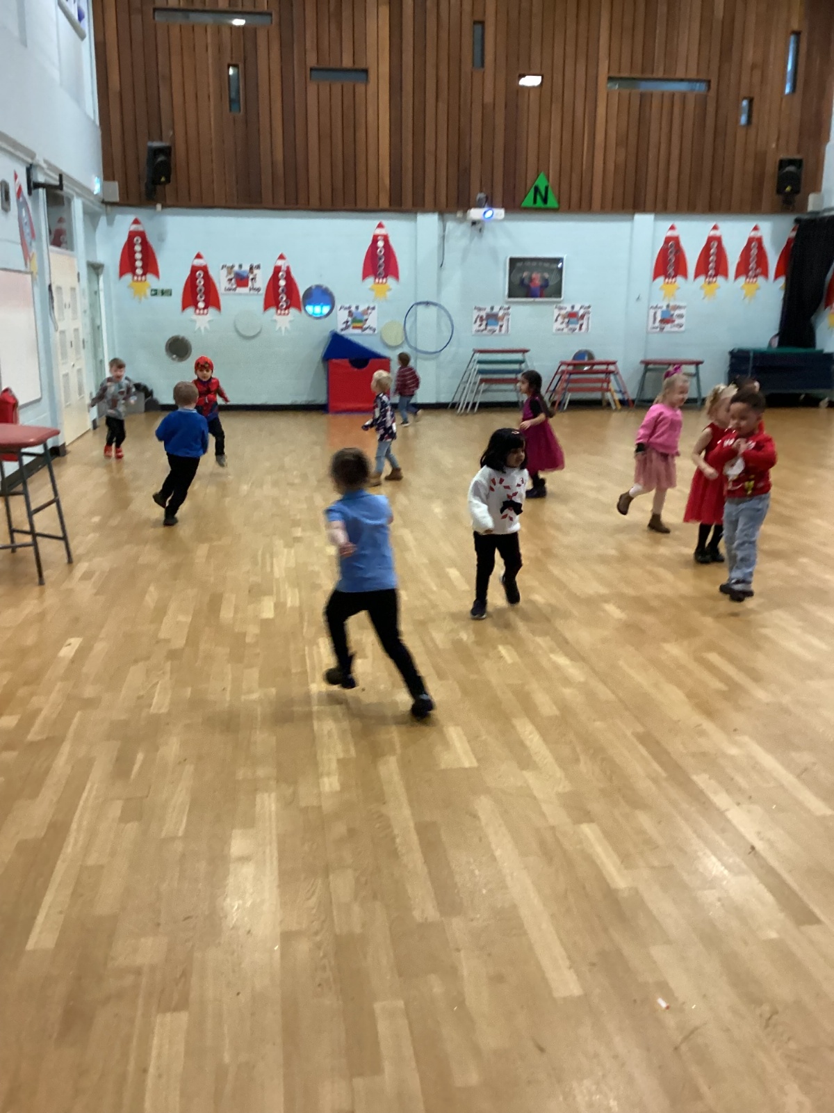 Yesterday was our Nursery Christmas Party and we had a fantastic day! We played pass the parcel, musical bumps and had a disco. We ate some party food all together. The best thing was a surprise visit from Father Christmas who brought us all a present while we were in the hall having fun! He made a bit of a mess in nursery with his snowy footprints, but the teachers didn't mind! What a fun time we had!