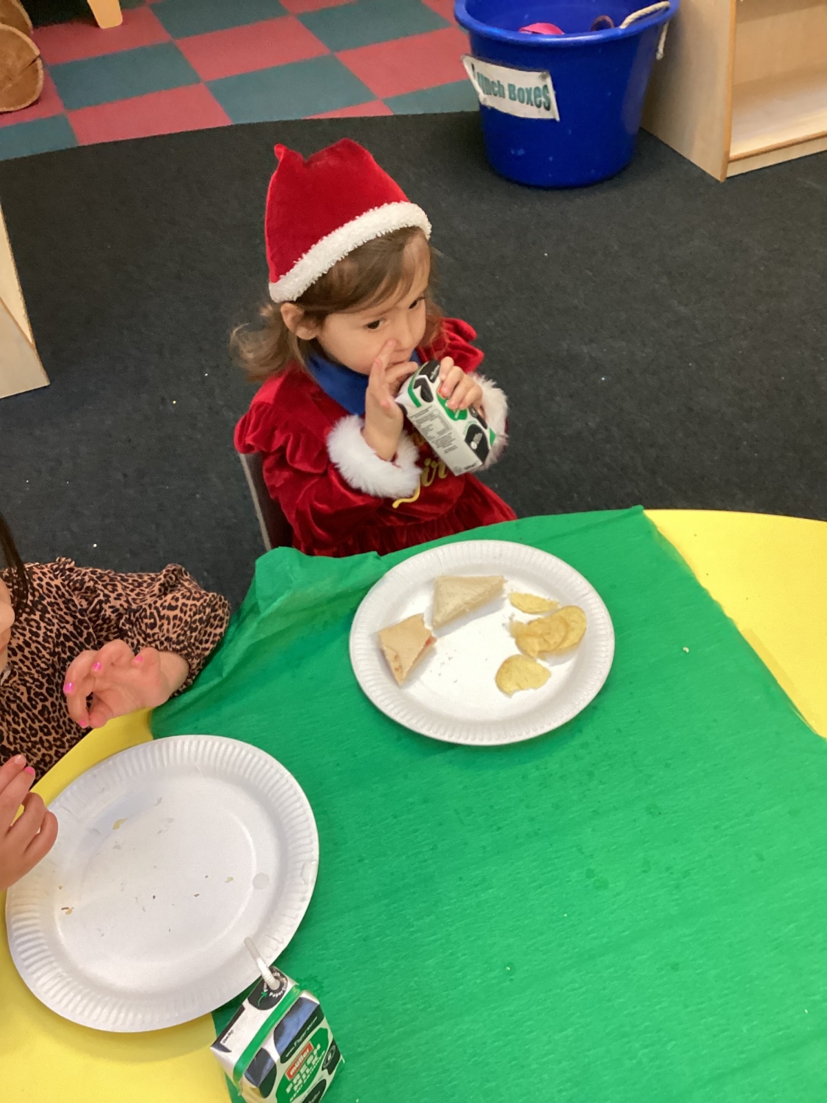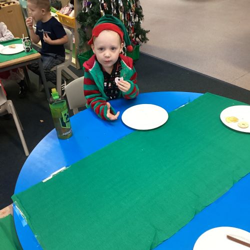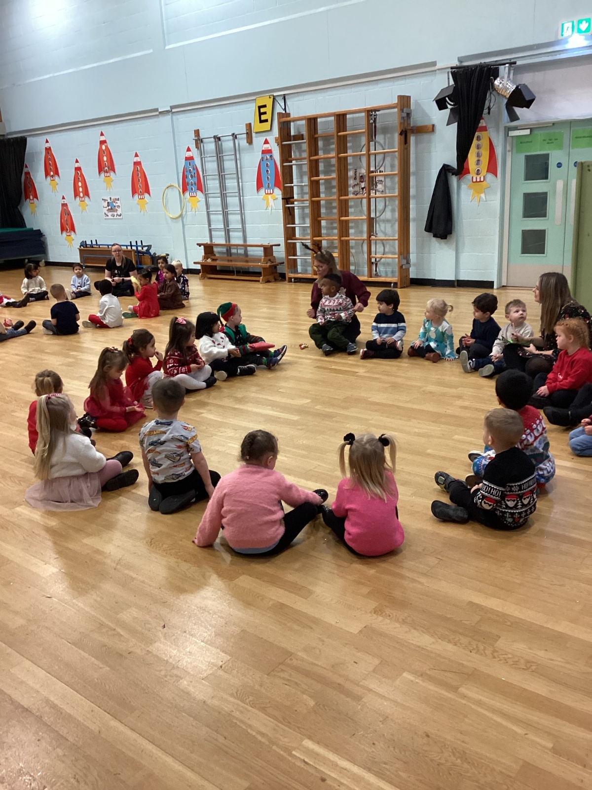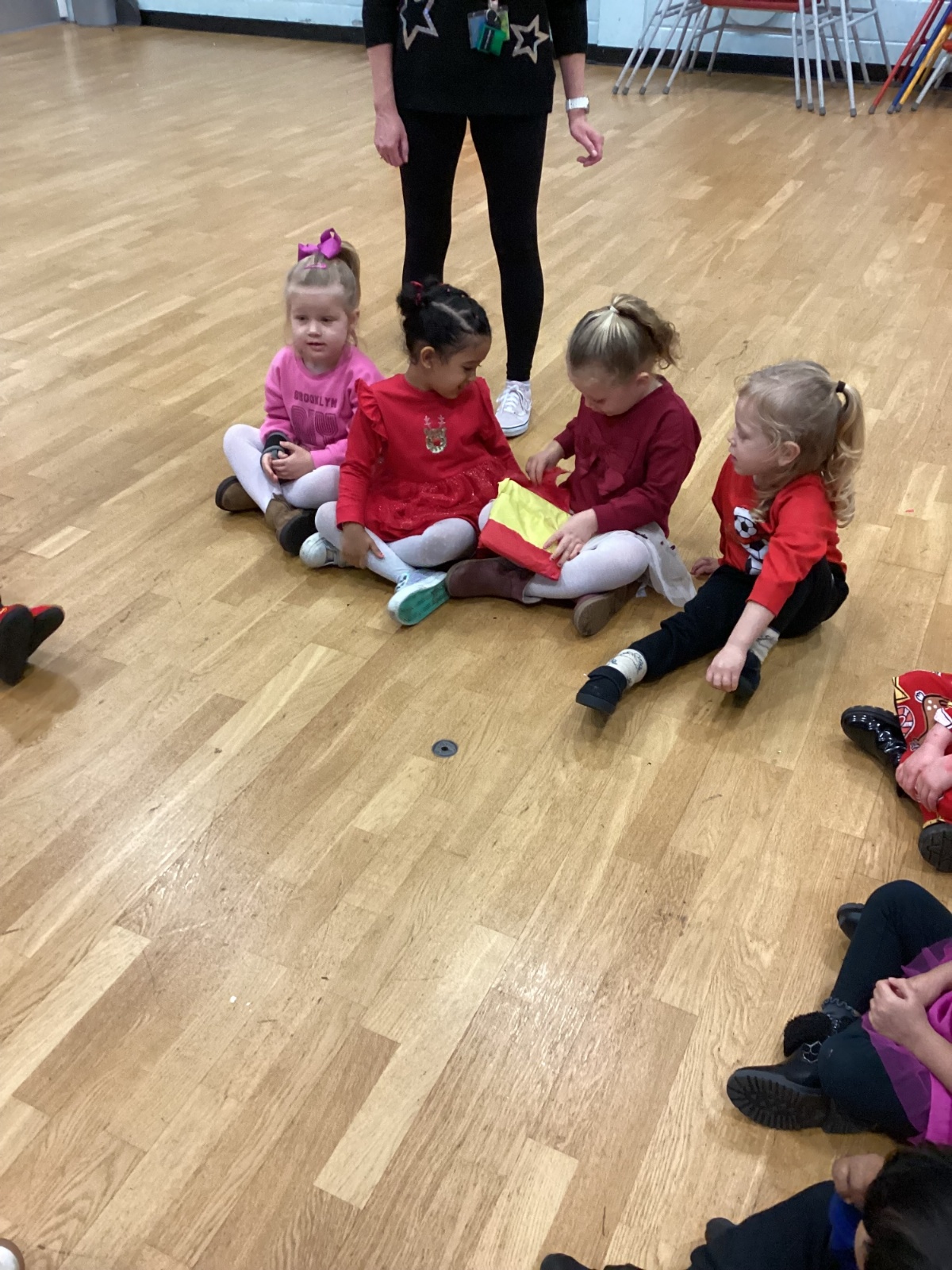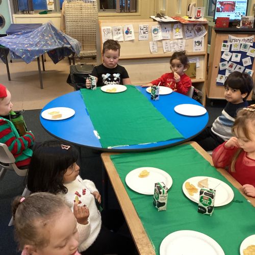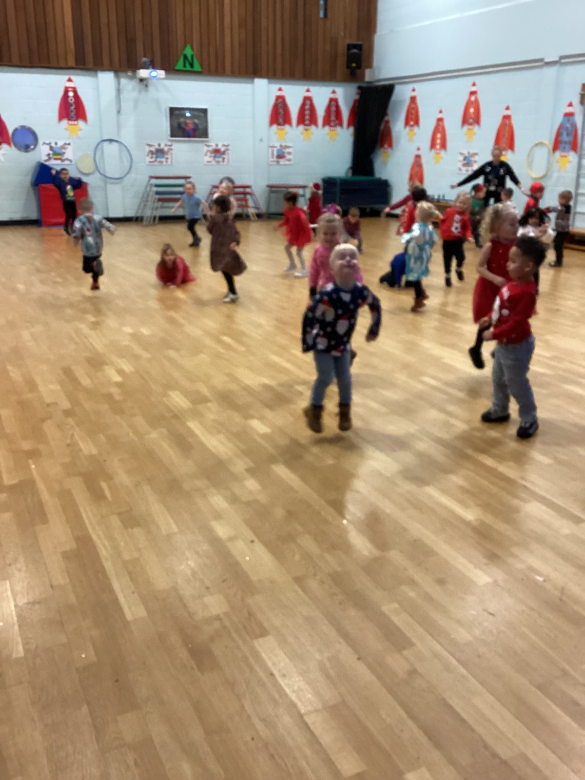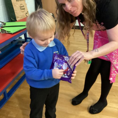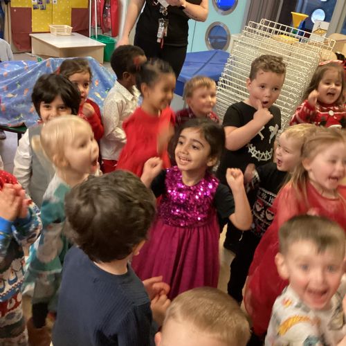 Yesterday was our Nursery Christmas Party and we had a fantastic day! We played pass the parcel, musical bumps and had a disco. We ate some party food all together. The best thing was a surprise visit from Father Christmas who brought us all a present while we were in the hall having fun! He made a bit of a mess in nursery with his snowy footprints, but the teachers didn't mind! What a fun time we had!