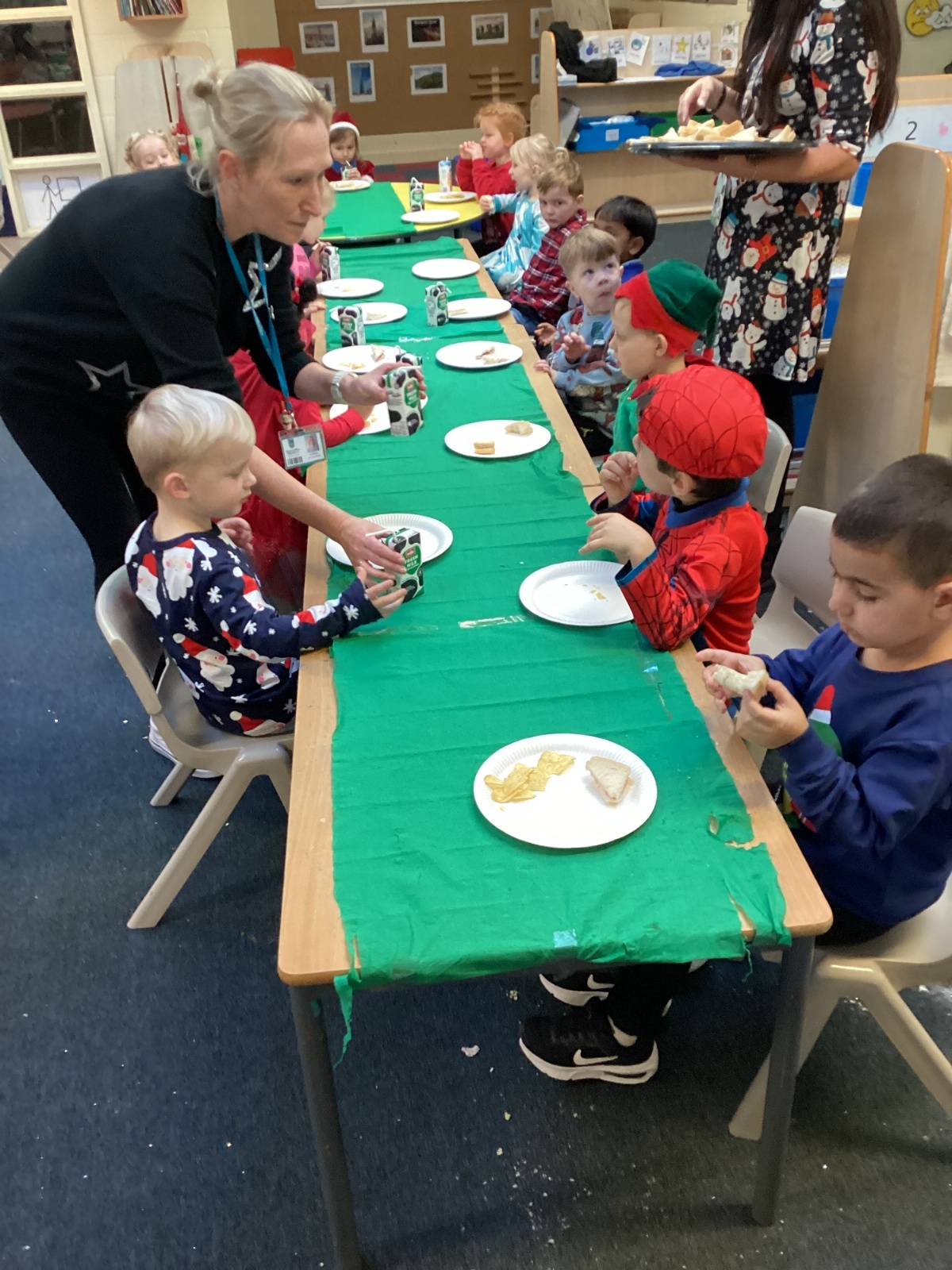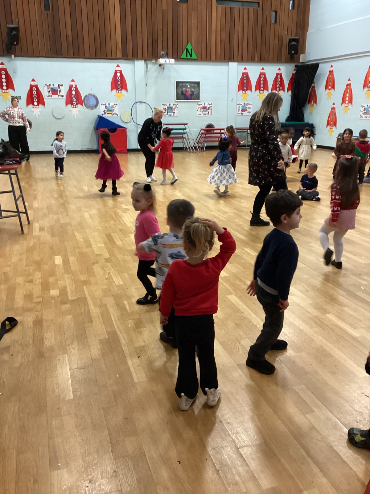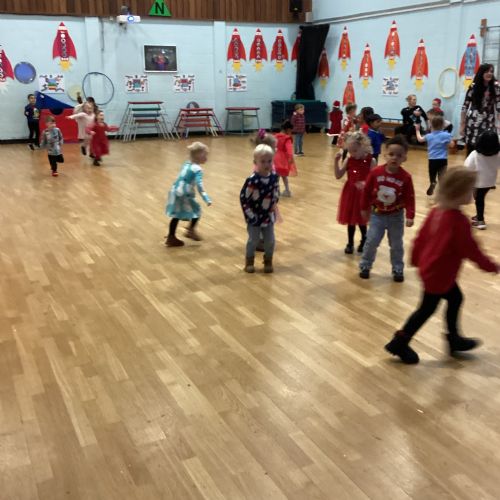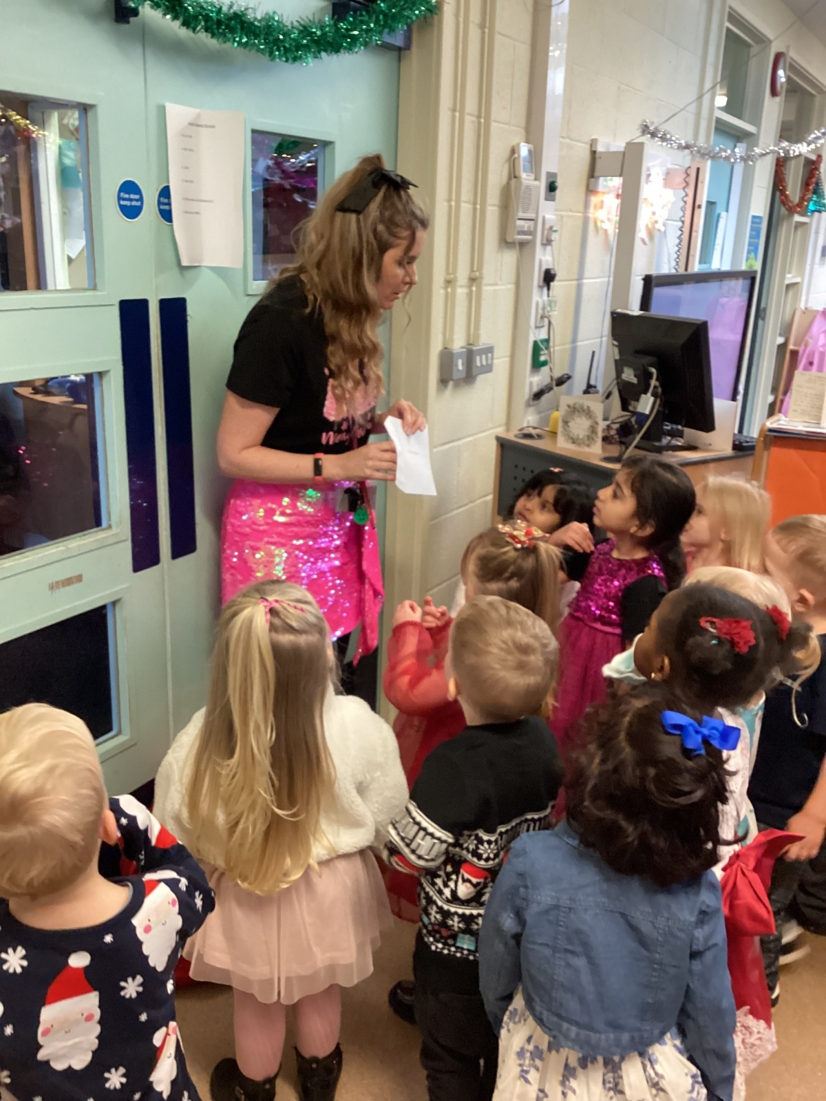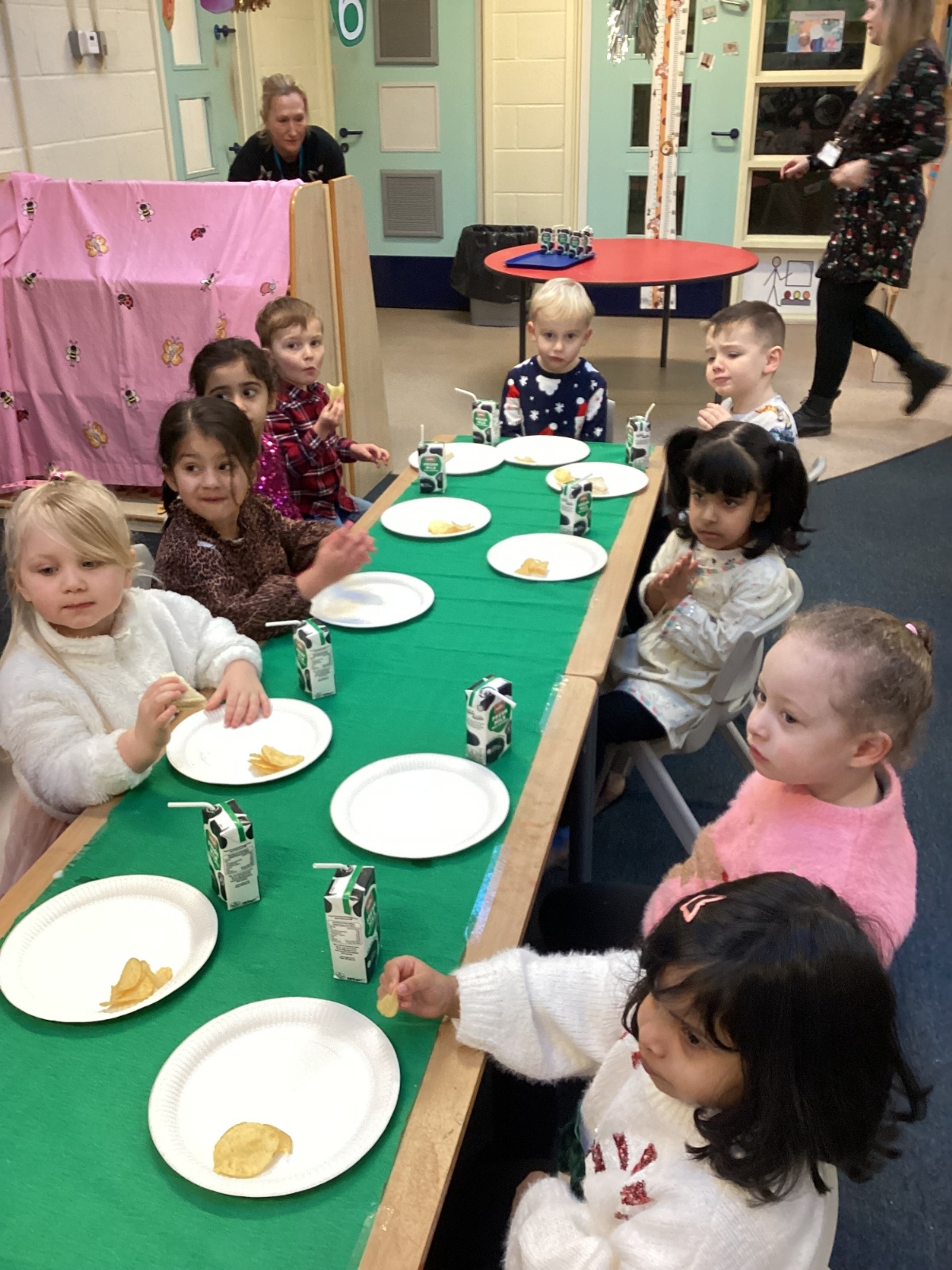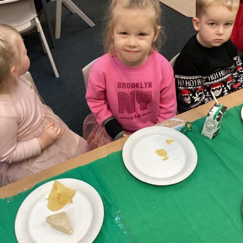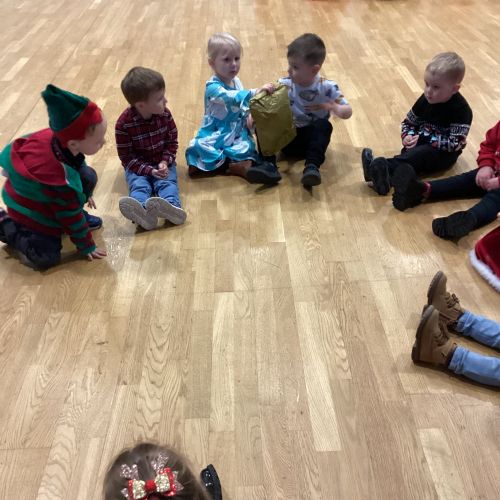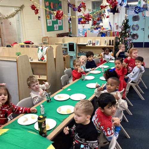 Yesterday was our Nursery Christmas Party and we had a fantastic day! We played pass the parcel, musical bumps and had a disco. We ate some party food all together. The best thing was a surprise visit from Father Christmas who brought us all a present while we were in the hall having fun! He made a bit of a mess in nursery with his snowy footprints, but the teachers didn't mind! What a fun time we had!