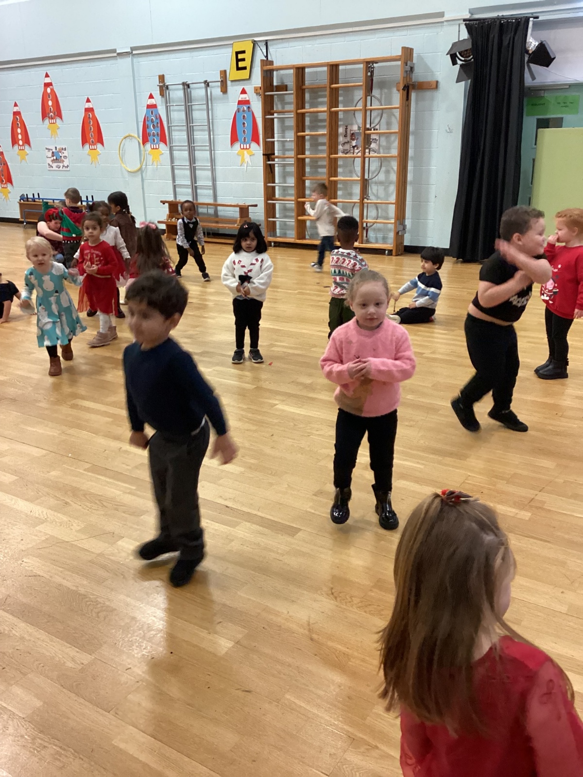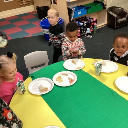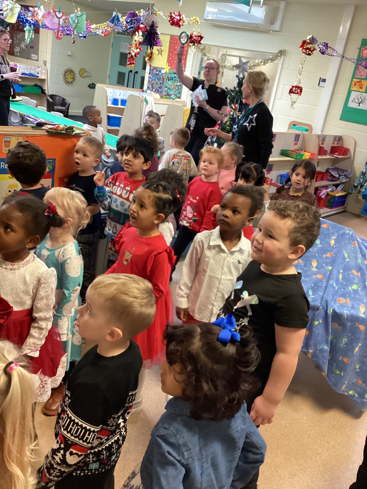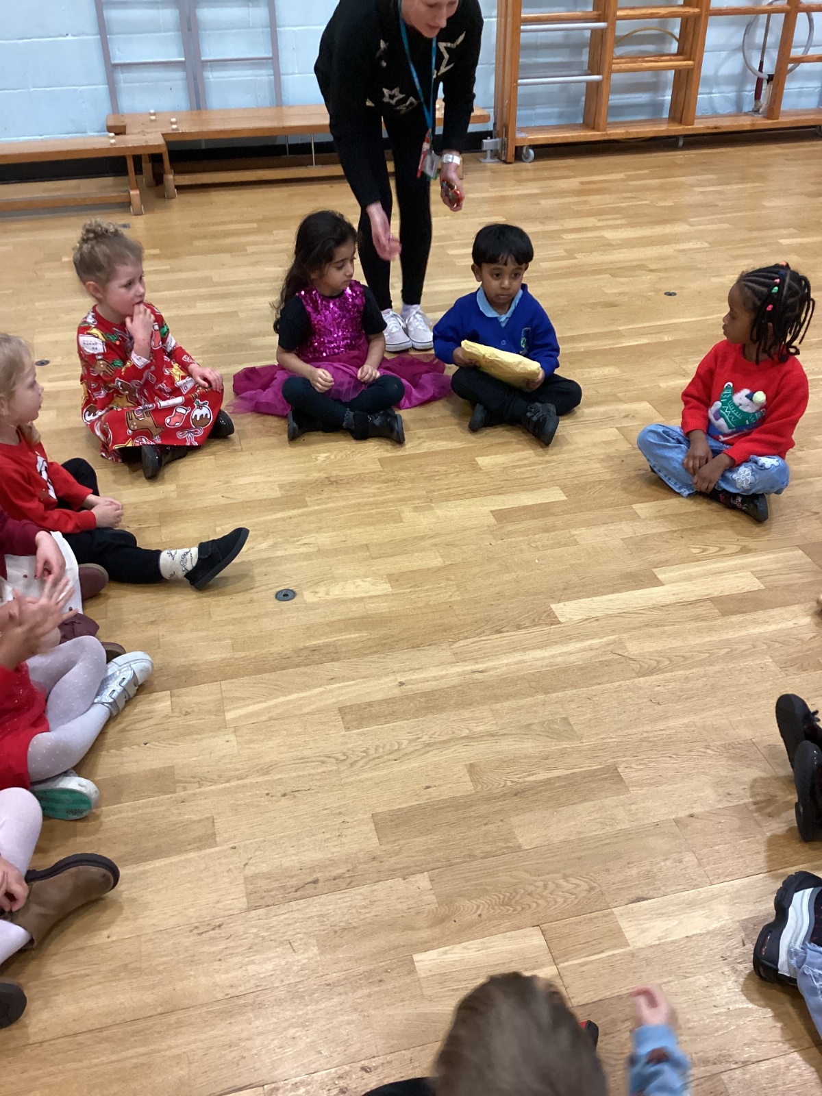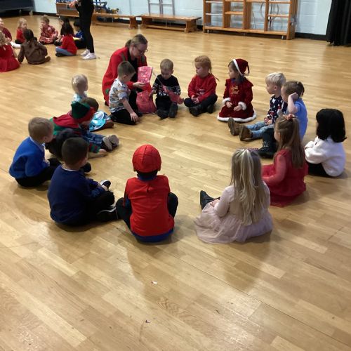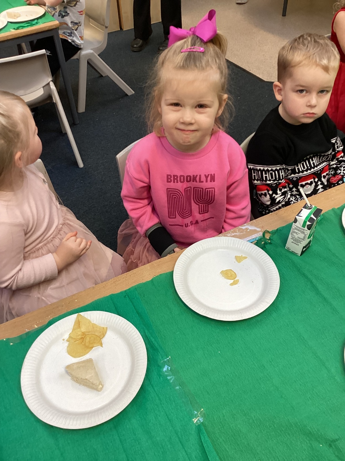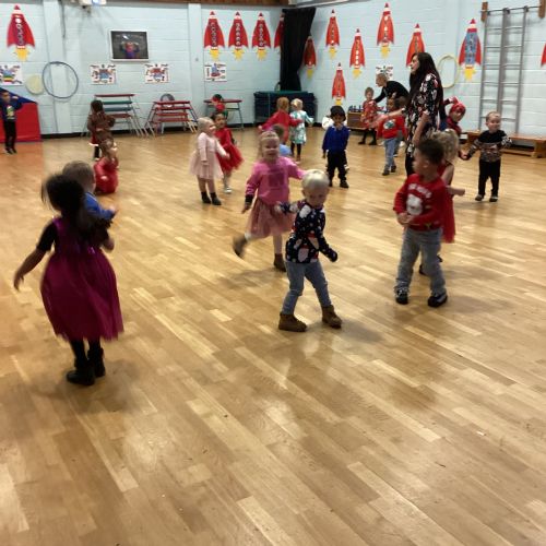 Yesterday was our Nursery Christmas Party and we had a fantastic day! We played pass the parcel, musical bumps and had a disco. We ate some party food all together. The best thing was a surprise visit from Father Christmas who brought us all a present while we were in the hall having fun! He made a bit of a mess in nursery with his snowy footprints, but the teachers didn't mind! What a fun time we had!
