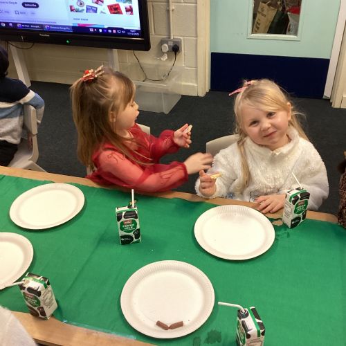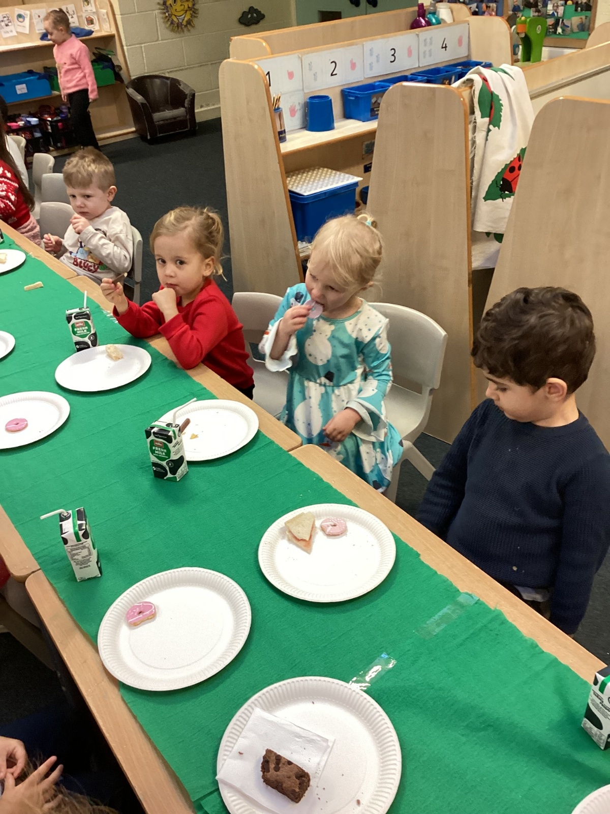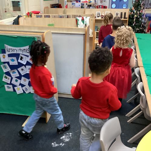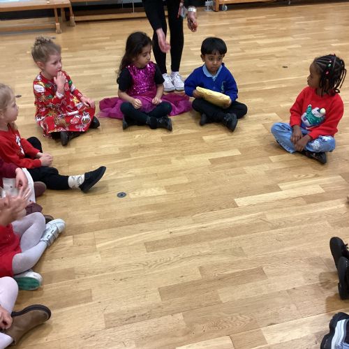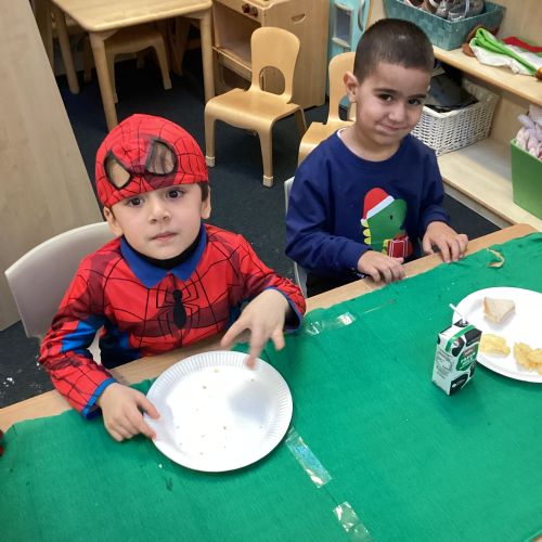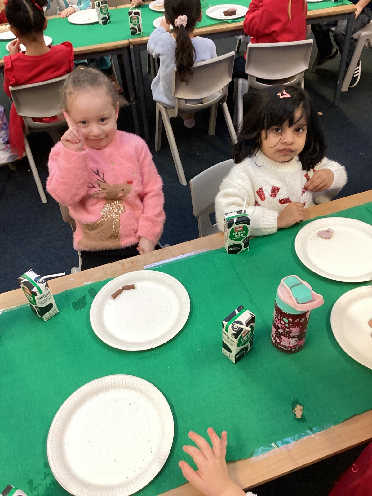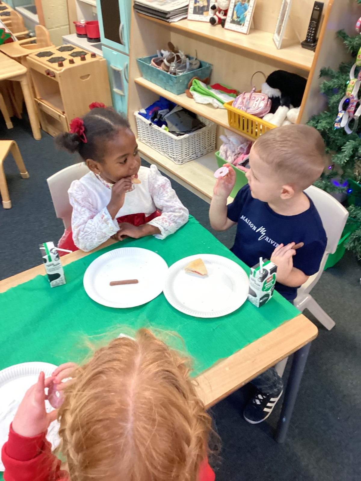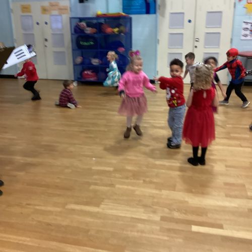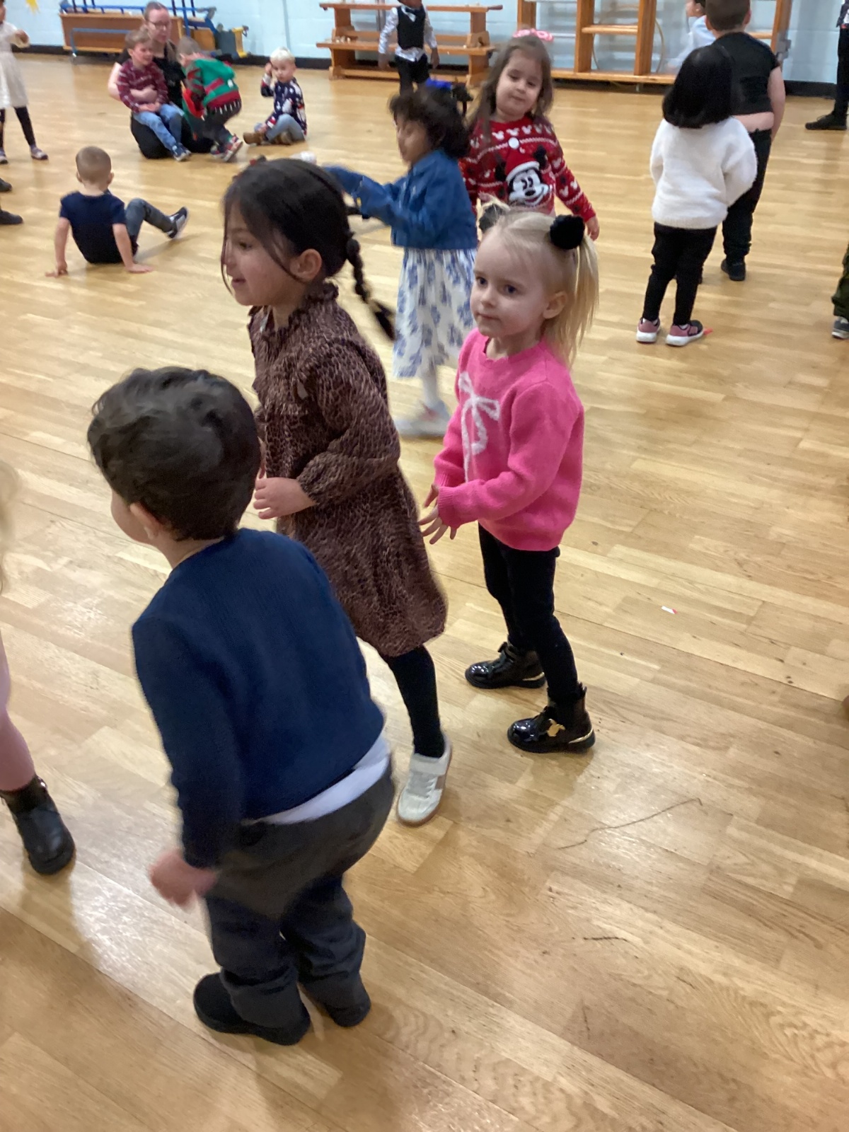 Yesterday was our Nursery Christmas Party and we had a fantastic day! We played pass the parcel, musical bumps and had a disco. We ate some party food all together. The best thing was a surprise visit from Father Christmas who brought us all a present while we were in the hall having fun! He made a bit of a mess in nursery with his snowy footprints, but the teachers didn't mind! What a fun time we had!