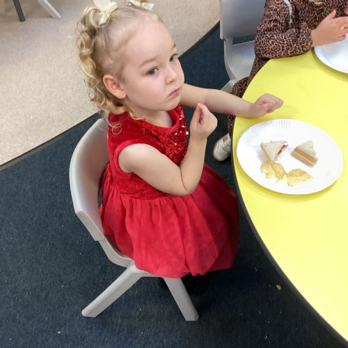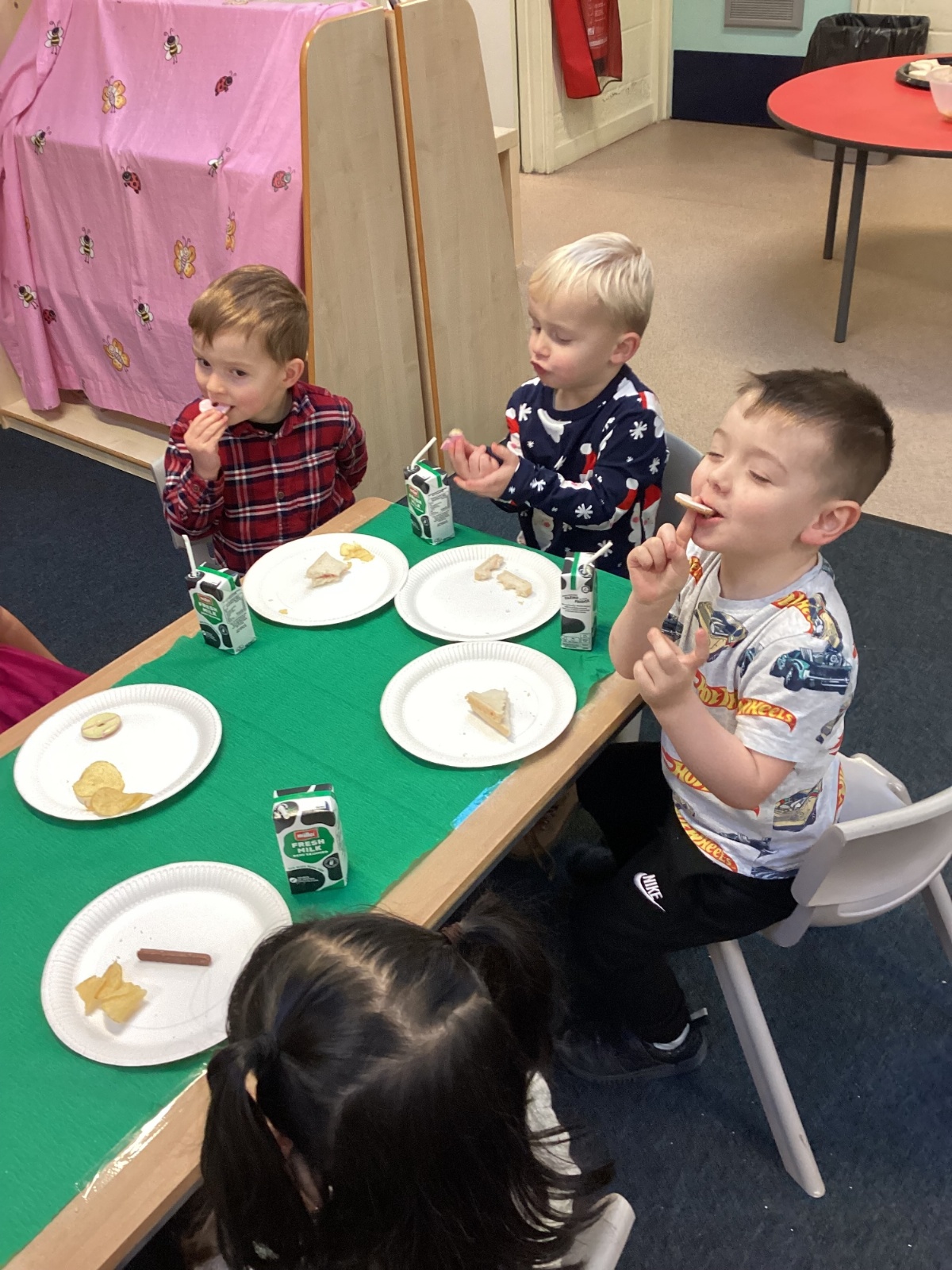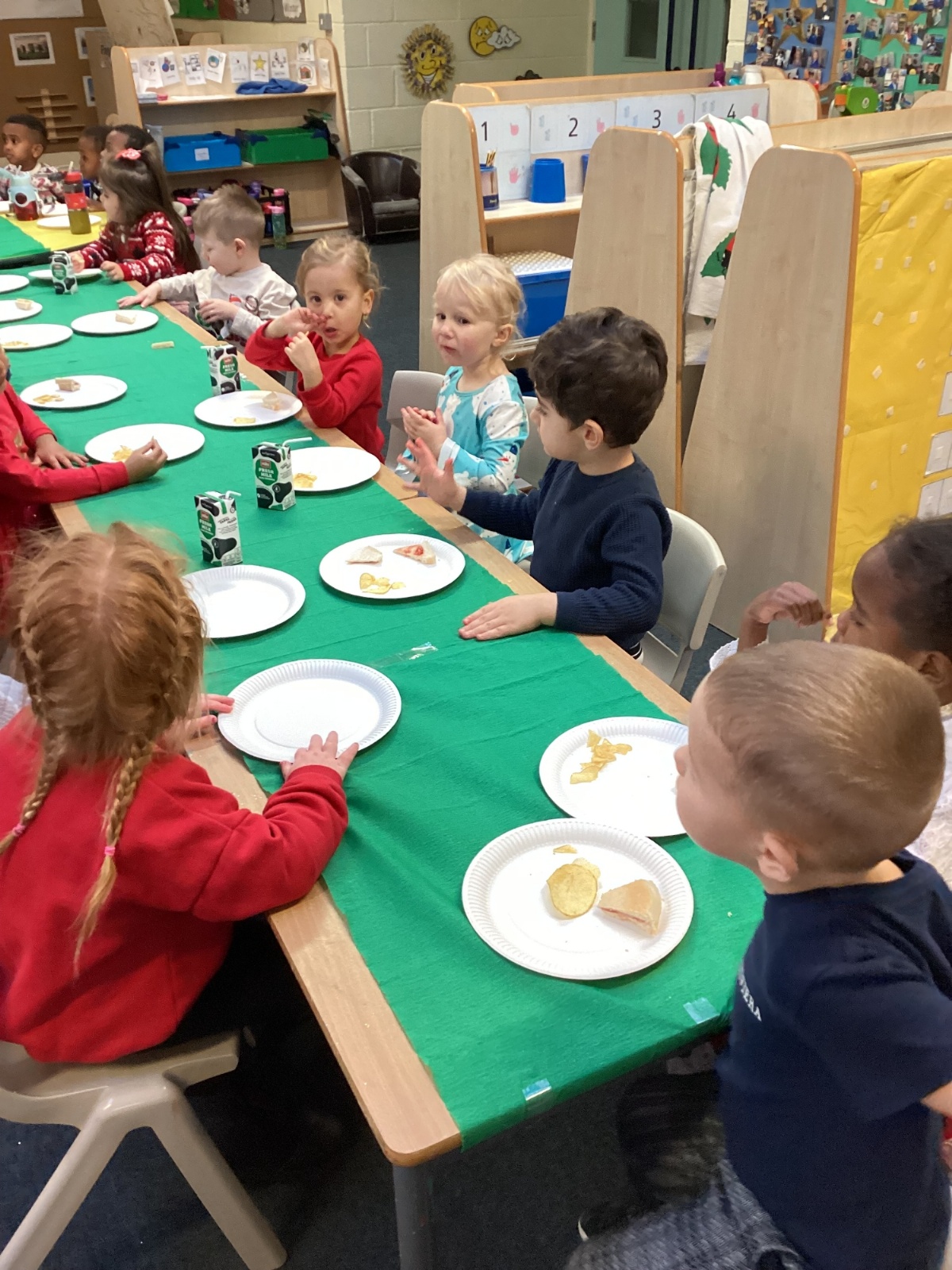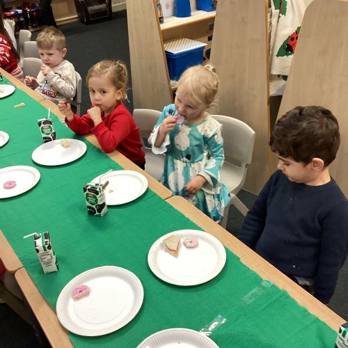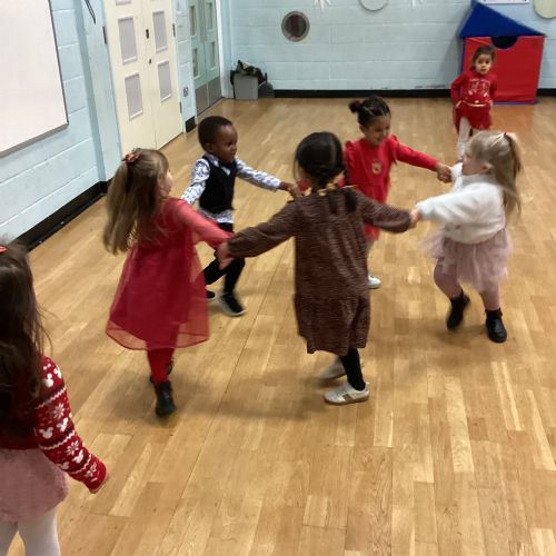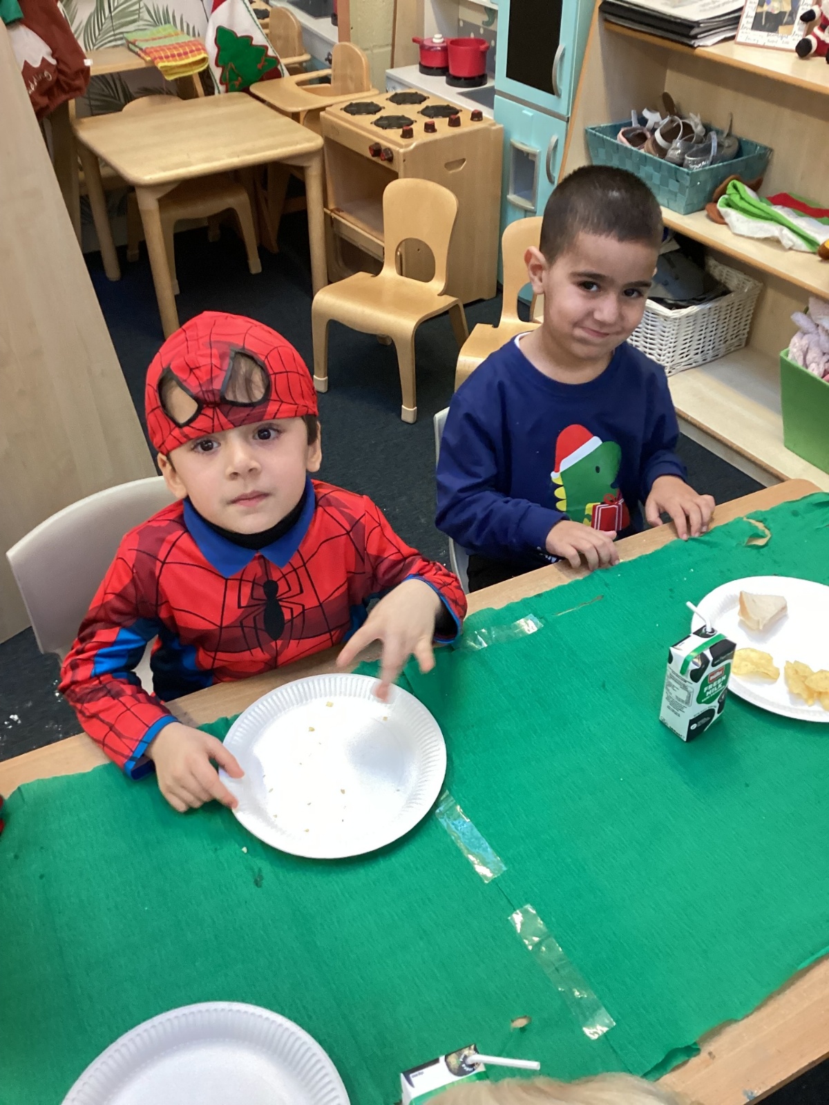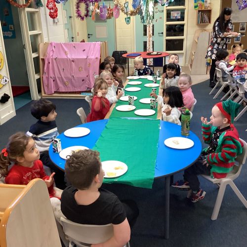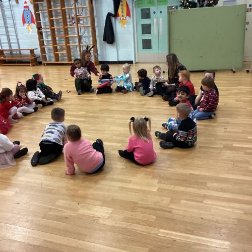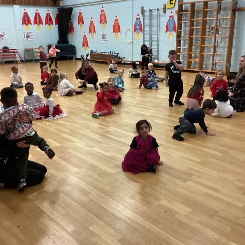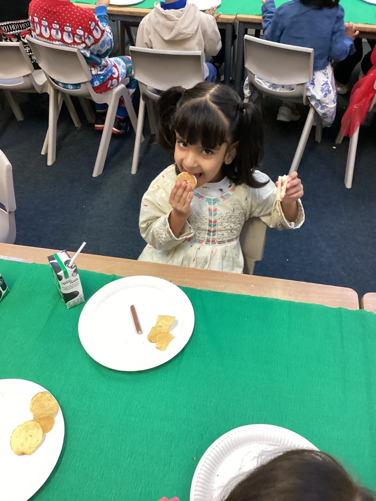 Yesterday was our Nursery Christmas Party and we had a fantastic day! We played pass the parcel, musical bumps and had a disco. We ate some party food all together. The best thing was a surprise visit from Father Christmas who brought us all a present while we were in the hall having fun! He made a bit of a mess in nursery with his snowy footprints, but the teachers didn't mind! What a fun time we had!