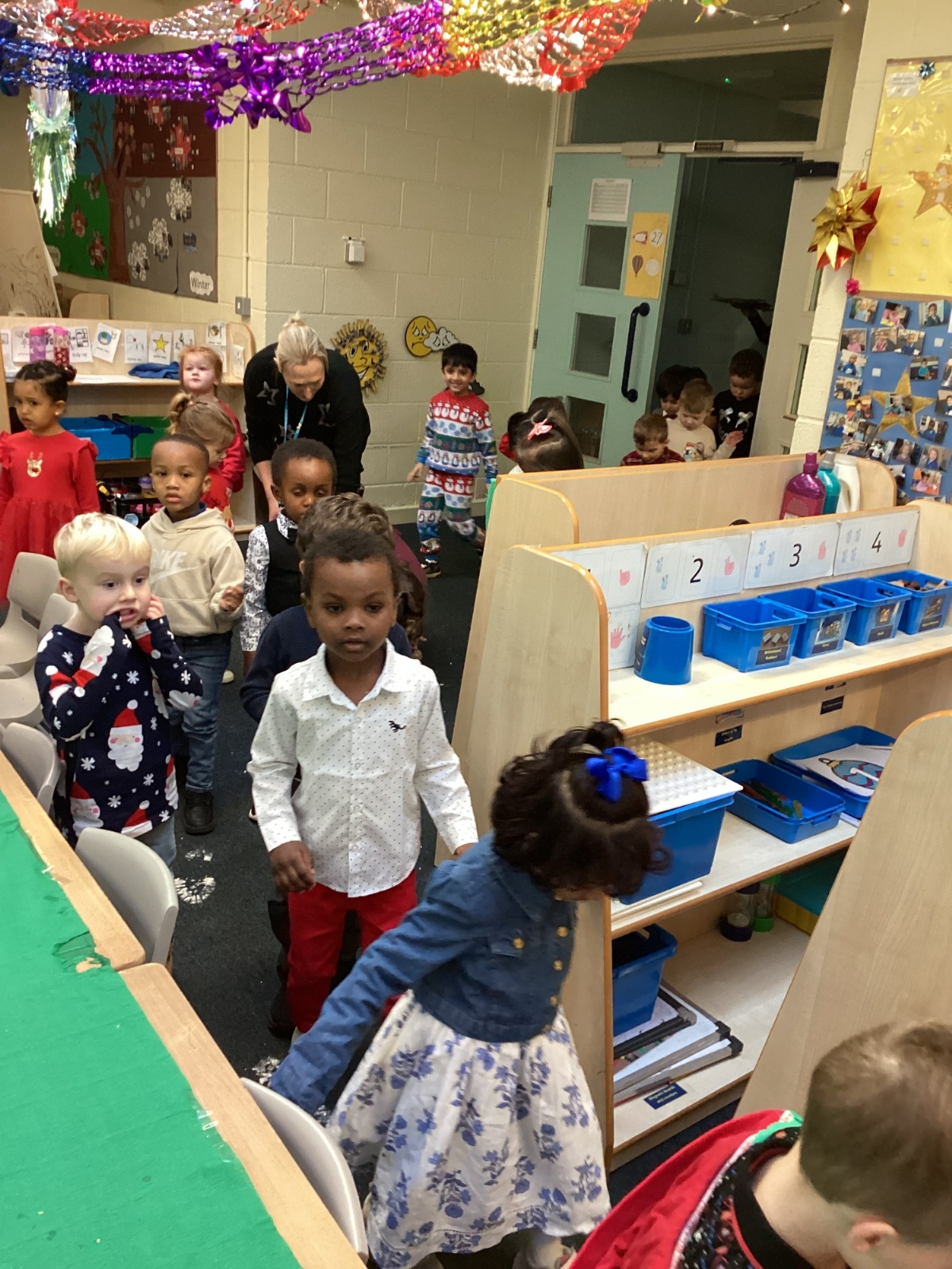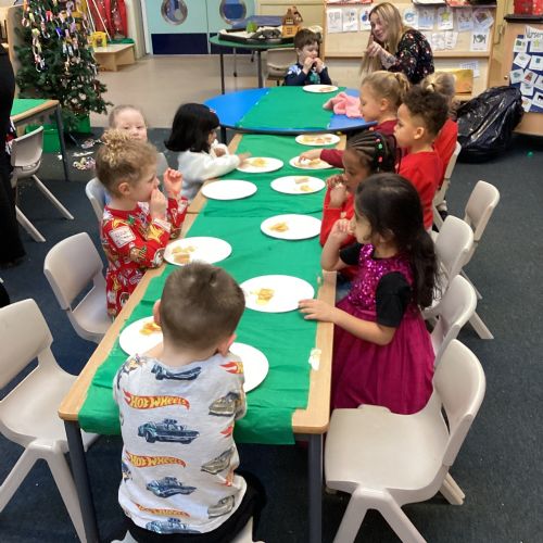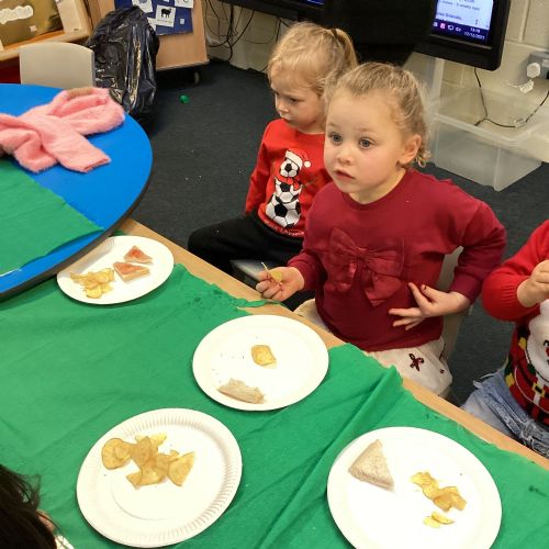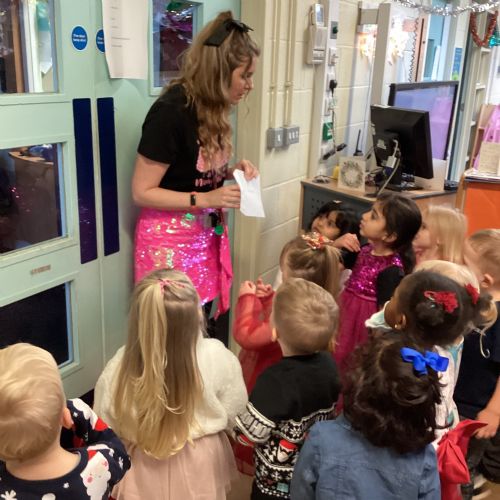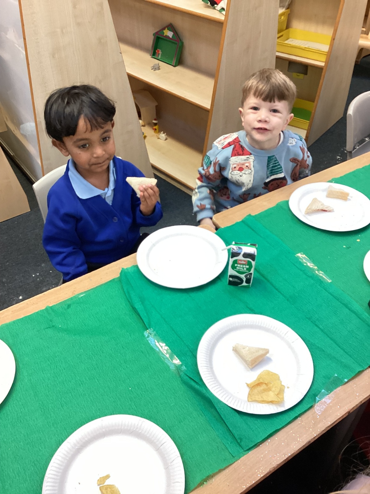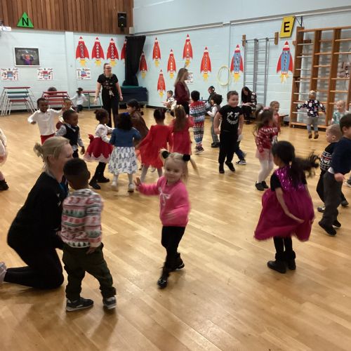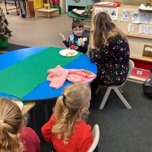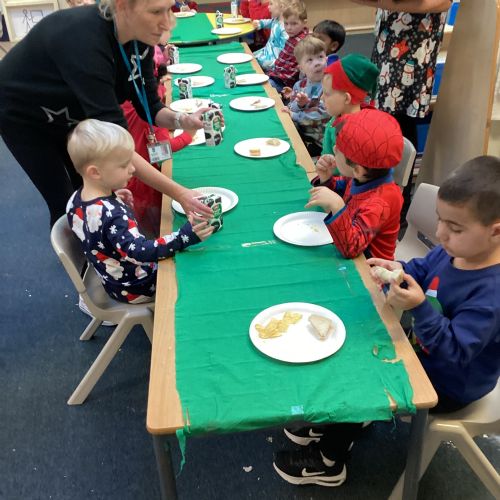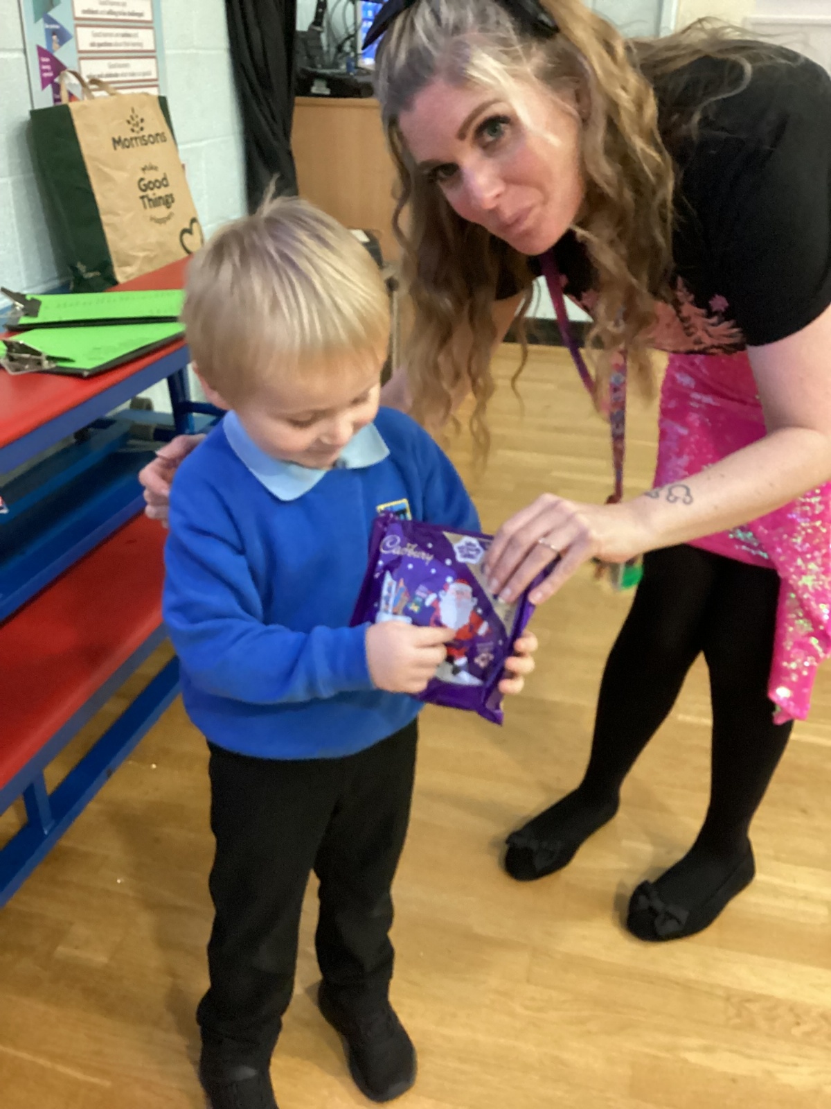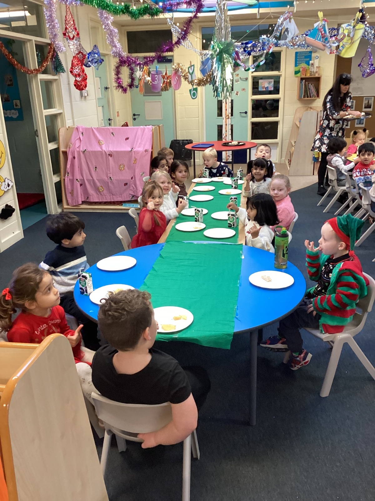 Yesterday was our Nursery Christmas Party and we had a fantastic day! We played pass the parcel, musical bumps and had a disco. We ate some party food all together. The best thing was a surprise visit from Father Christmas who brought us all a present while we were in the hall having fun! He made a bit of a mess in nursery with his snowy footprints, but the teachers didn't mind! What a fun time we had!
