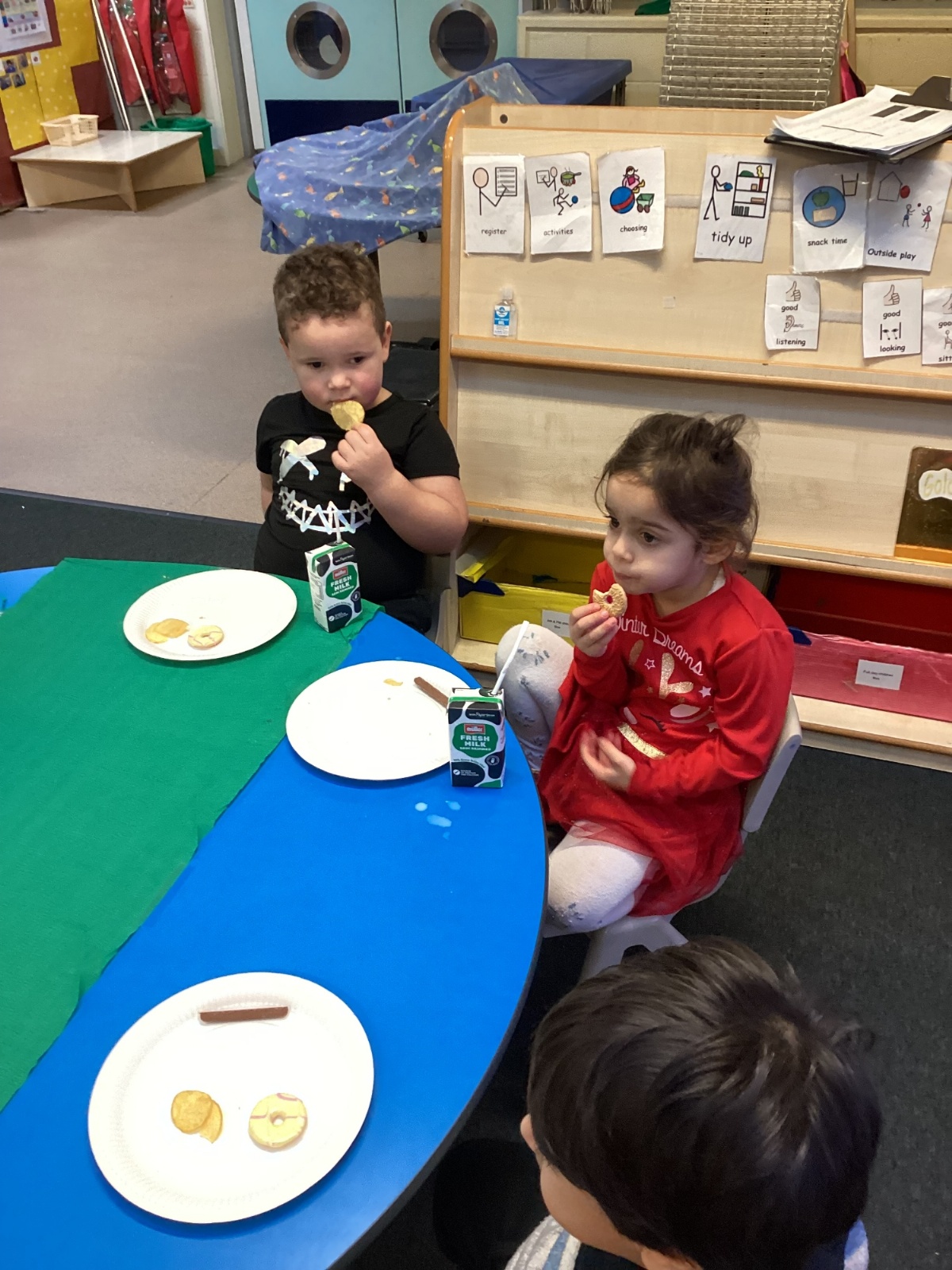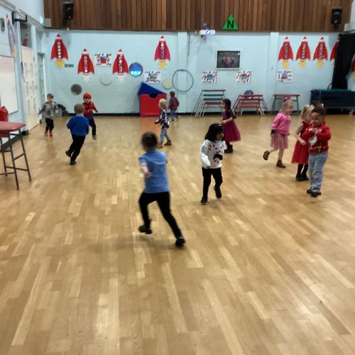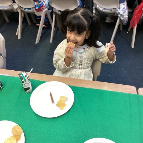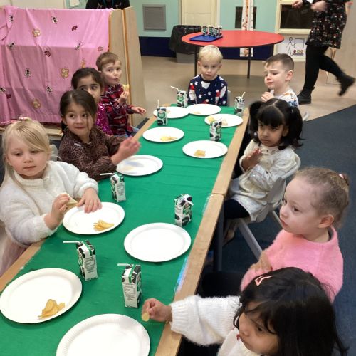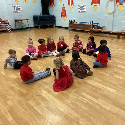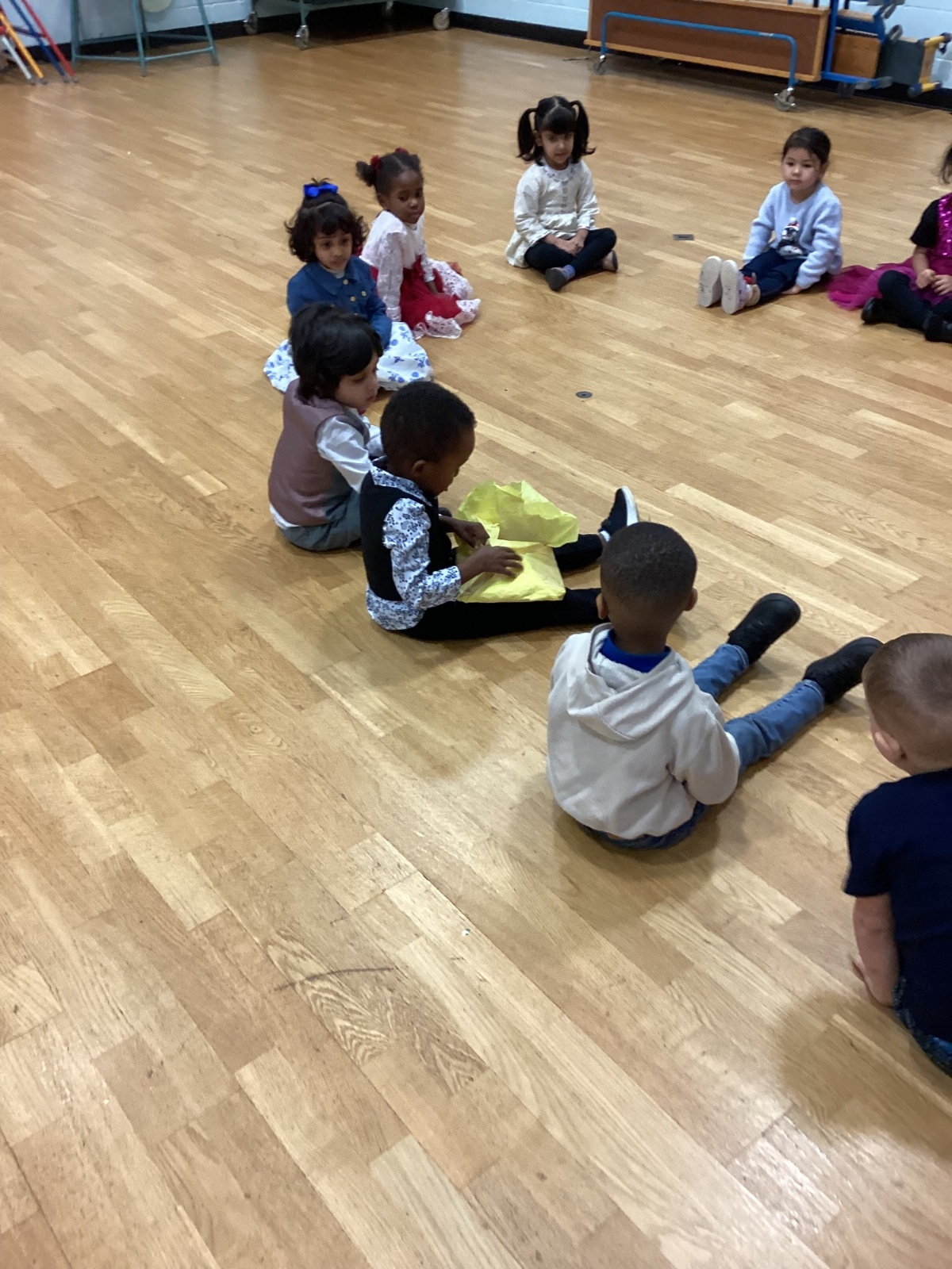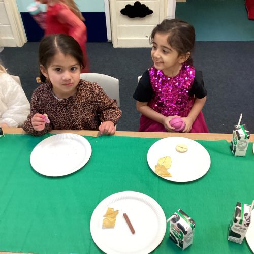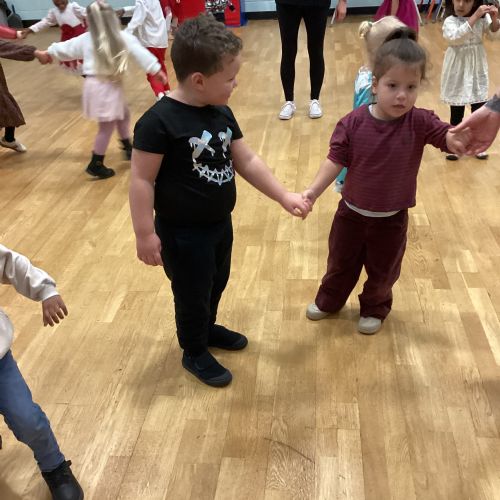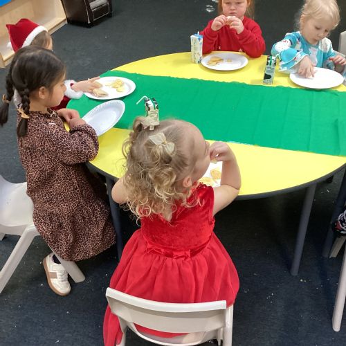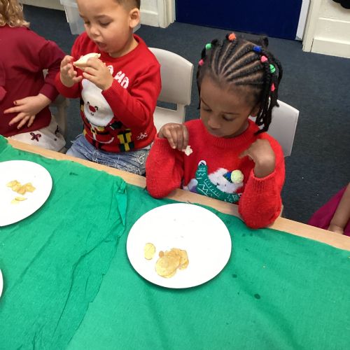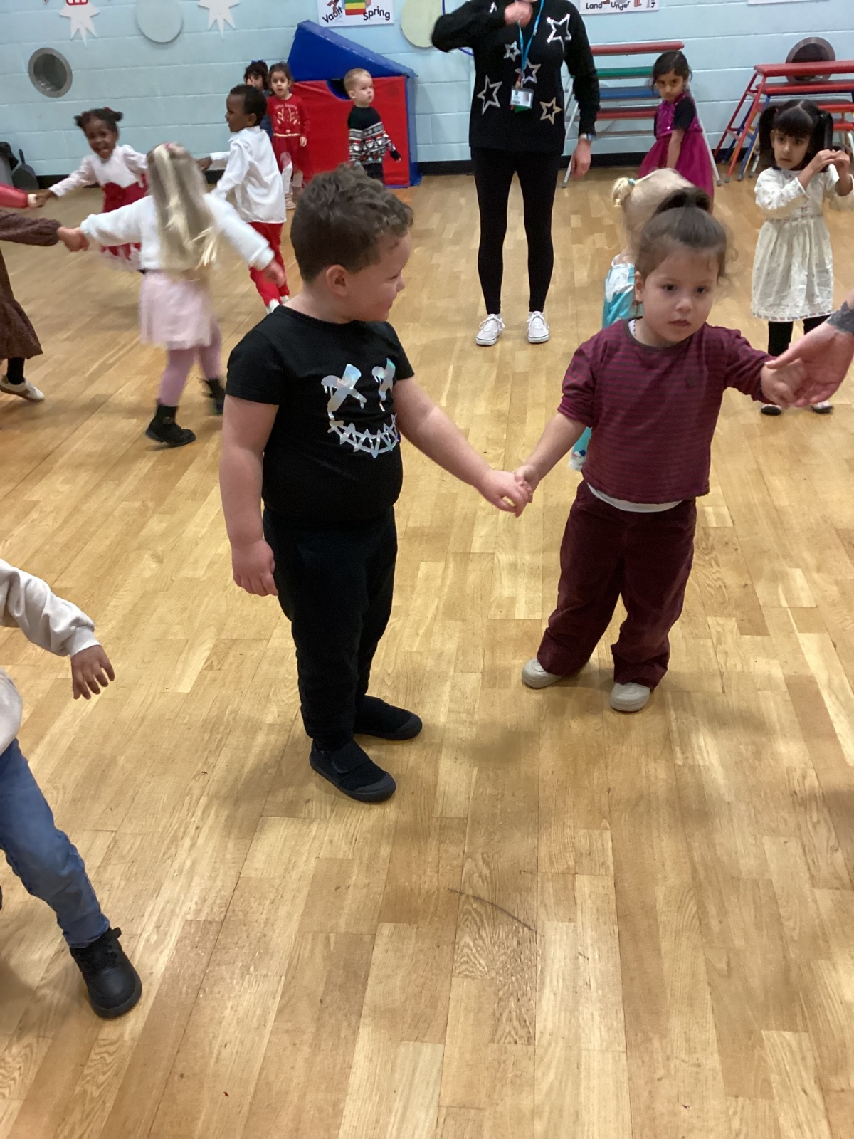 Yesterday was our Nursery Christmas Party and we had a fantastic day! We played pass the parcel, musical bumps and had a disco. We ate some party food all together. The best thing was a surprise visit from Father Christmas who brought us all a present while we were in the hall having fun! He made a bit of a mess in nursery with his snowy footprints, but the teachers didn't mind! What a fun time we had!