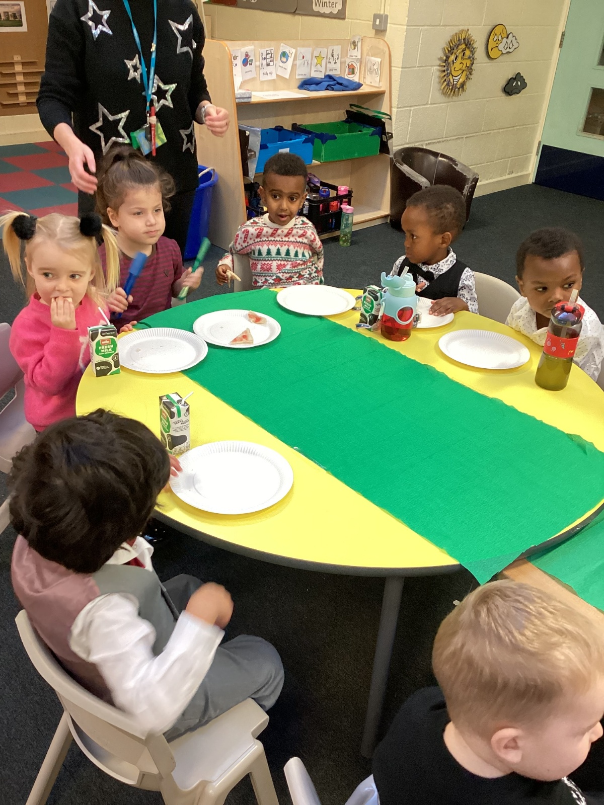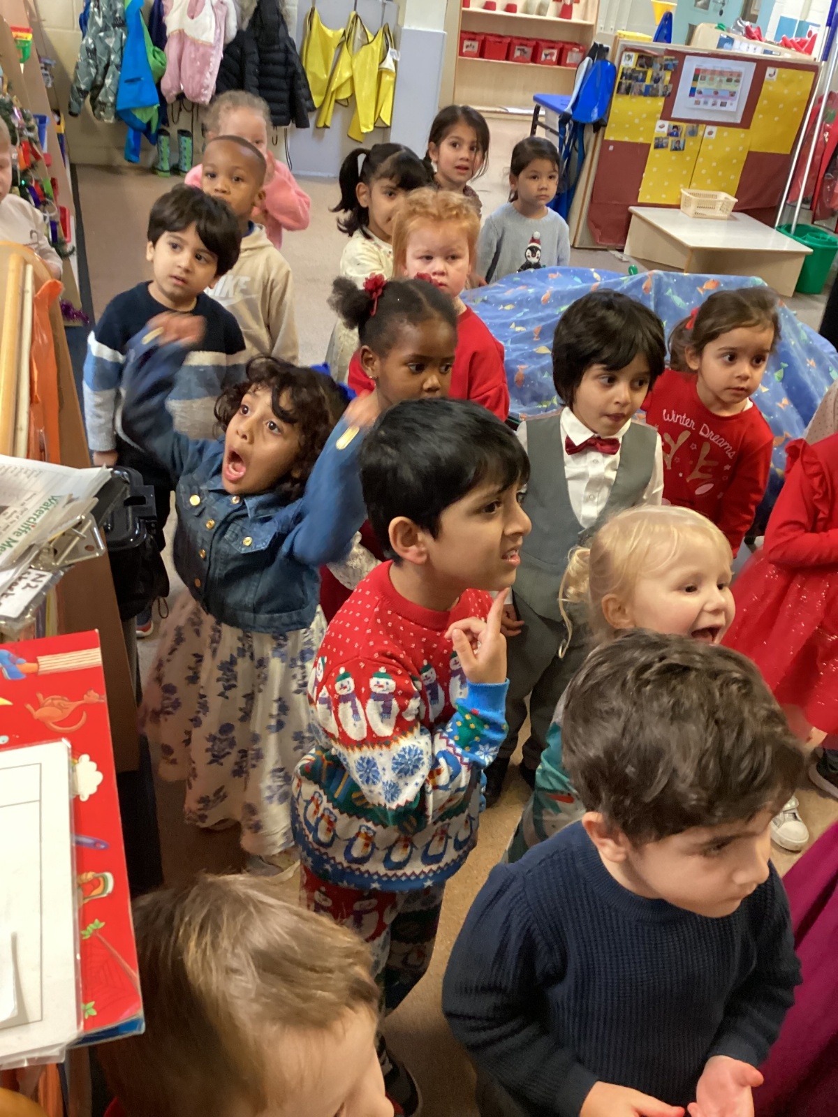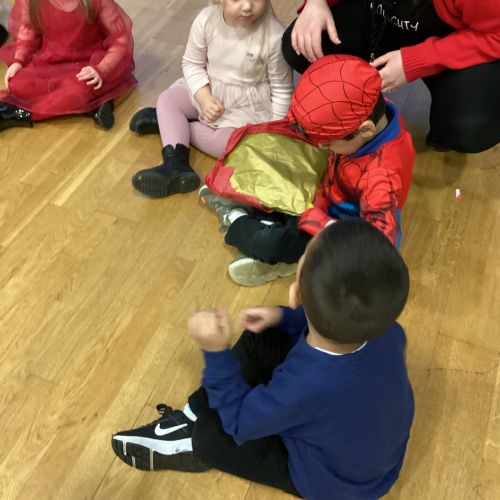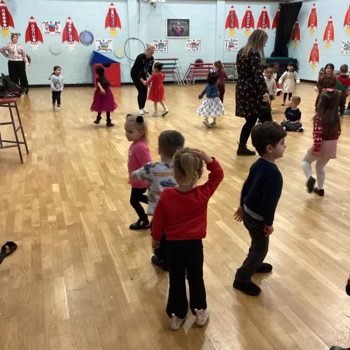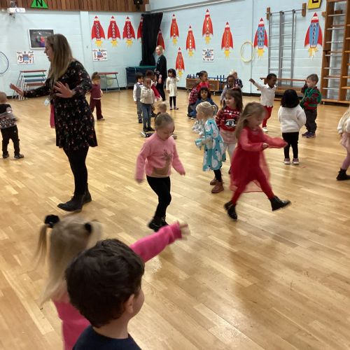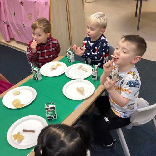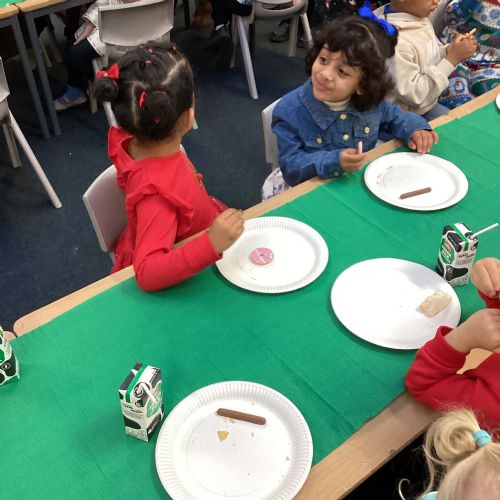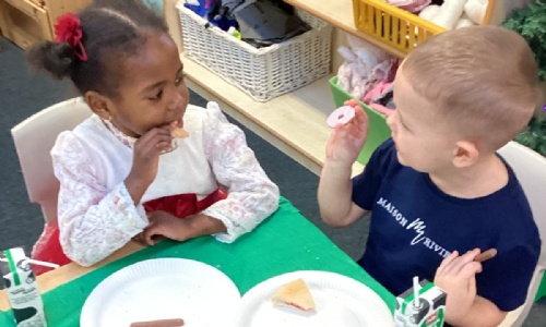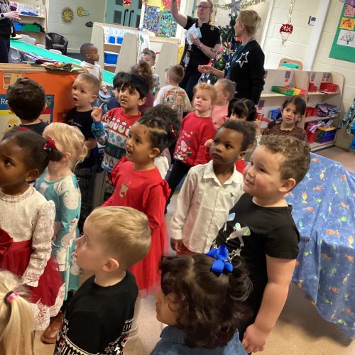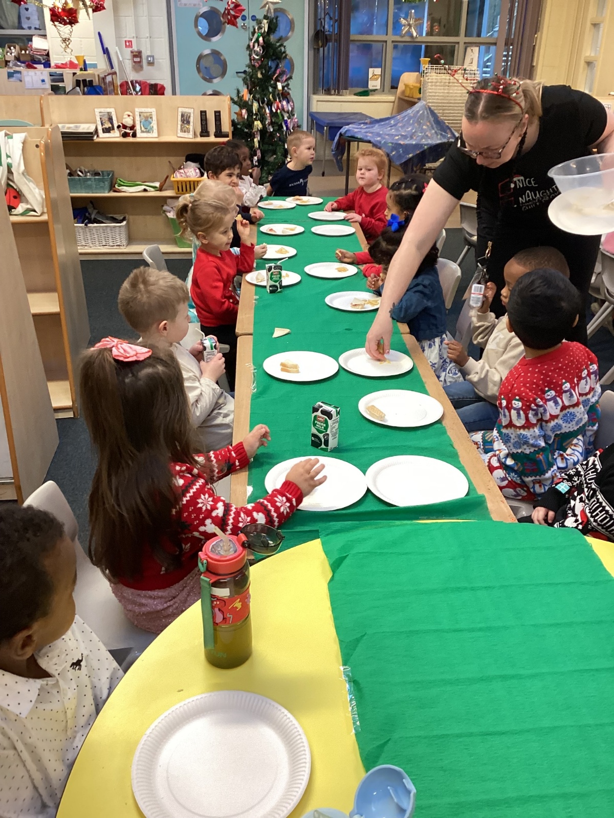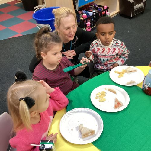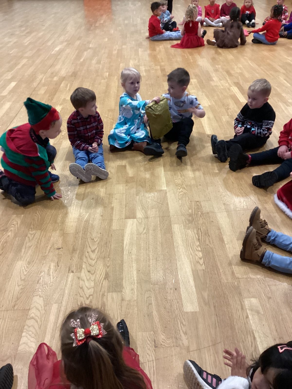 Yesterday was our Nursery Christmas Party and we had a fantastic day! We played pass the parcel, musical bumps and had a disco. We ate some party food all together. The best thing was a surprise visit from Father Christmas who brought us all a present while we were in the hall having fun! He made a bit of a mess in nursery with his snowy footprints, but the teachers didn't mind! What a fun time we had!