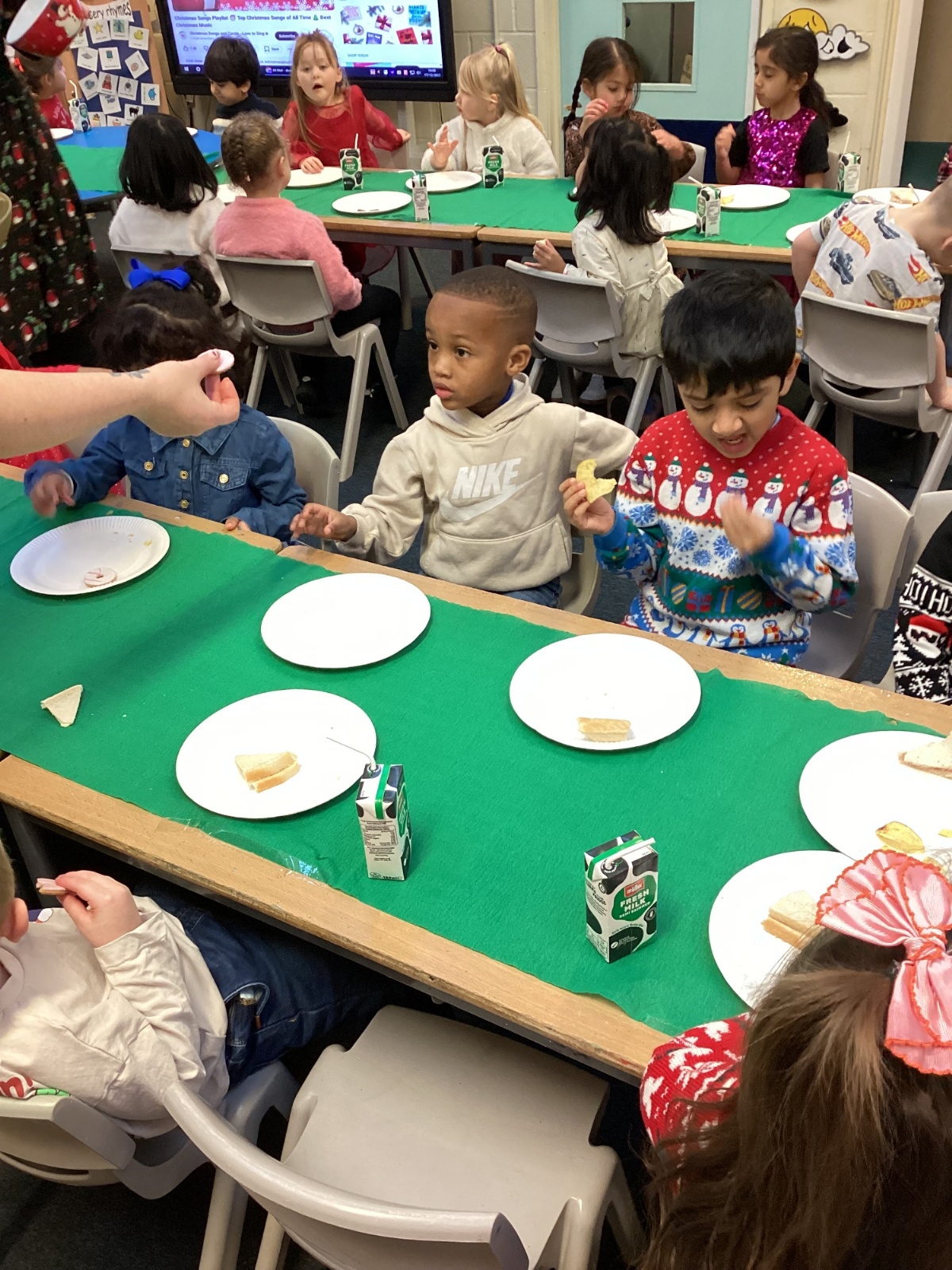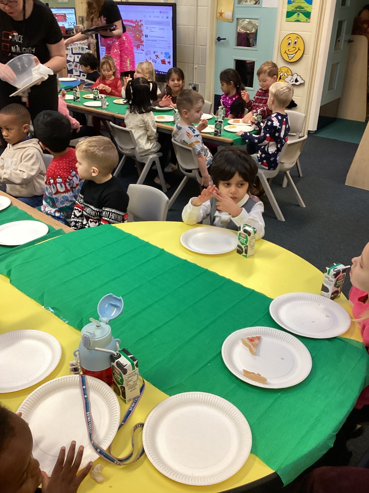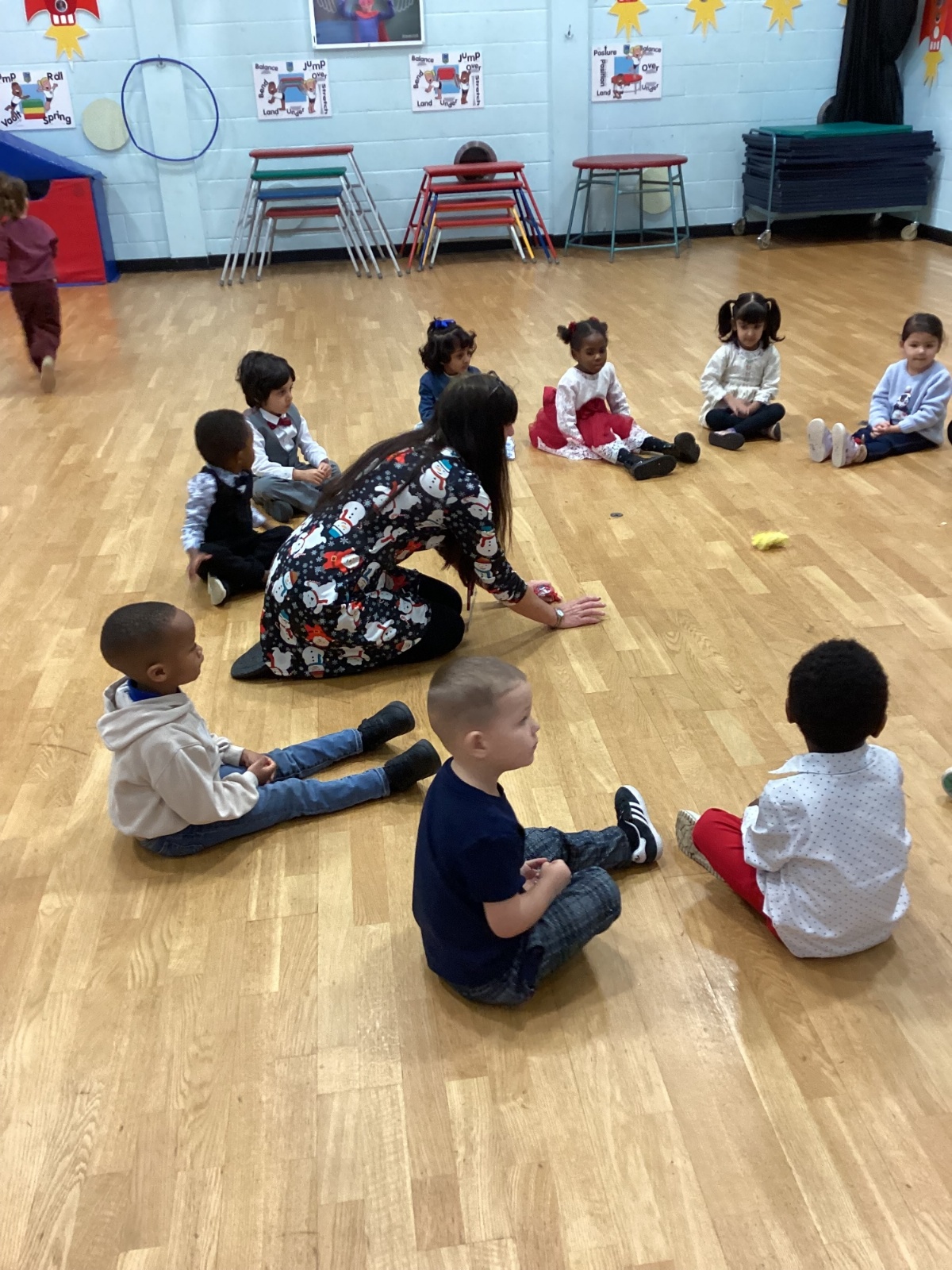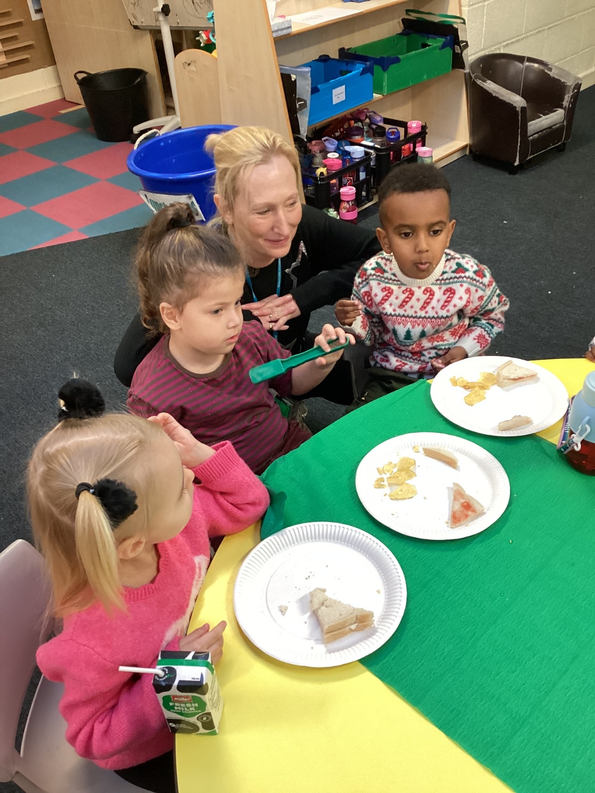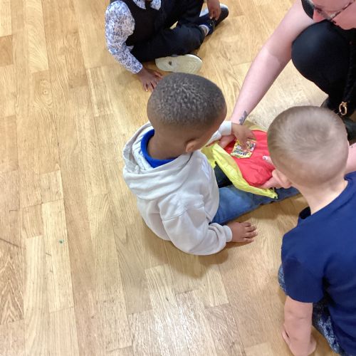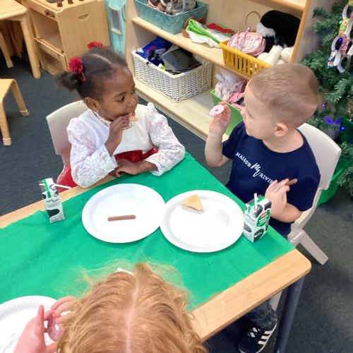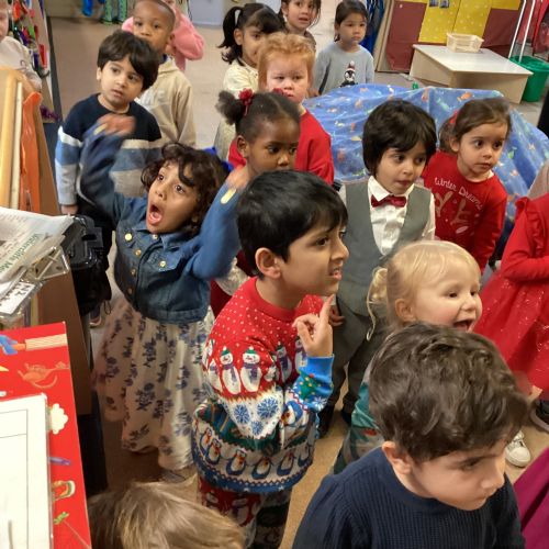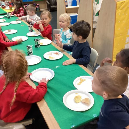 Yesterday was our Nursery Christmas Party and we had a fantastic day! We played pass the parcel, musical bumps and had a disco. We ate some party food all together. The best thing was a surprise visit from Father Christmas who brought us all a present while we were in the hall having fun! He made a bit of a mess in nursery with his snowy footprints, but the teachers didn't mind! What a fun time we had!