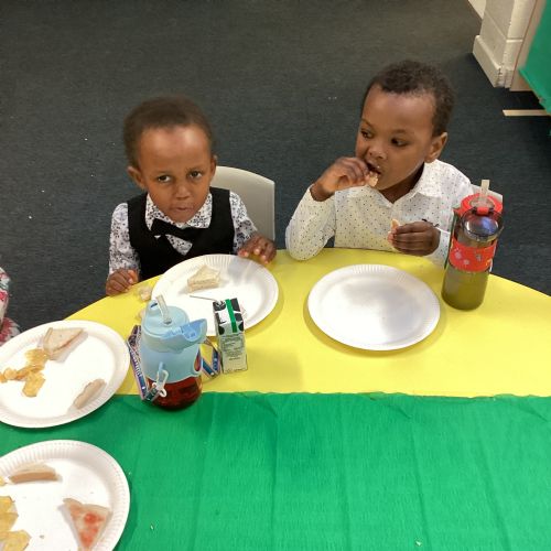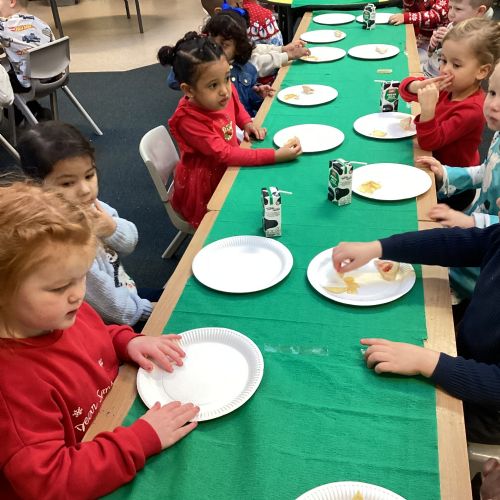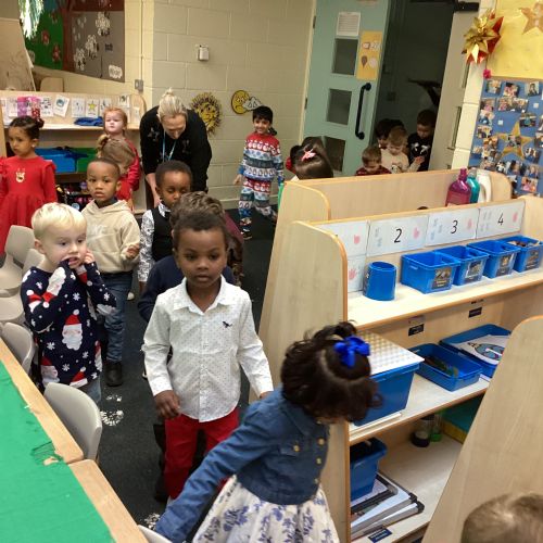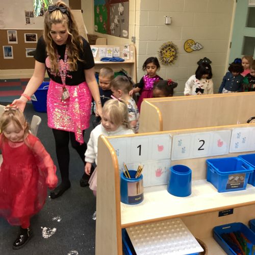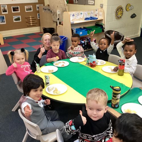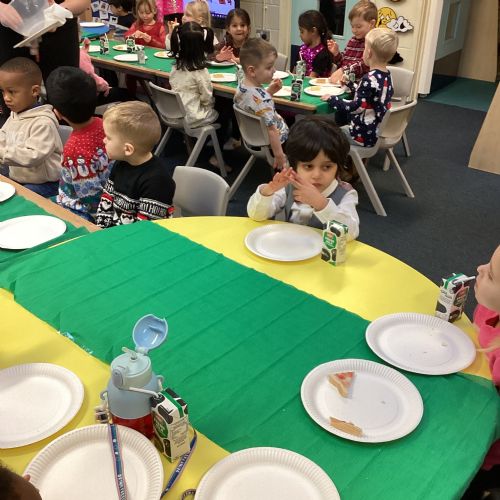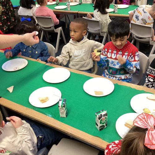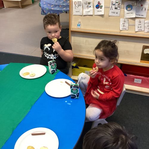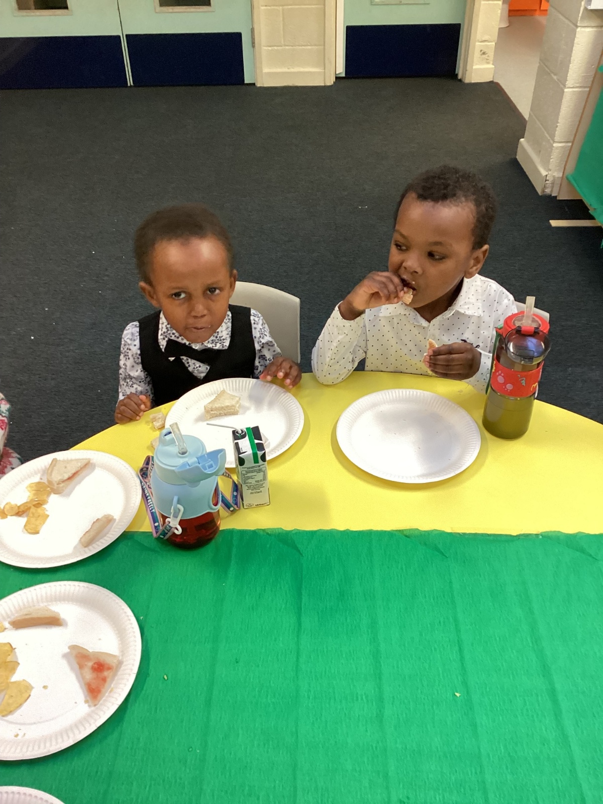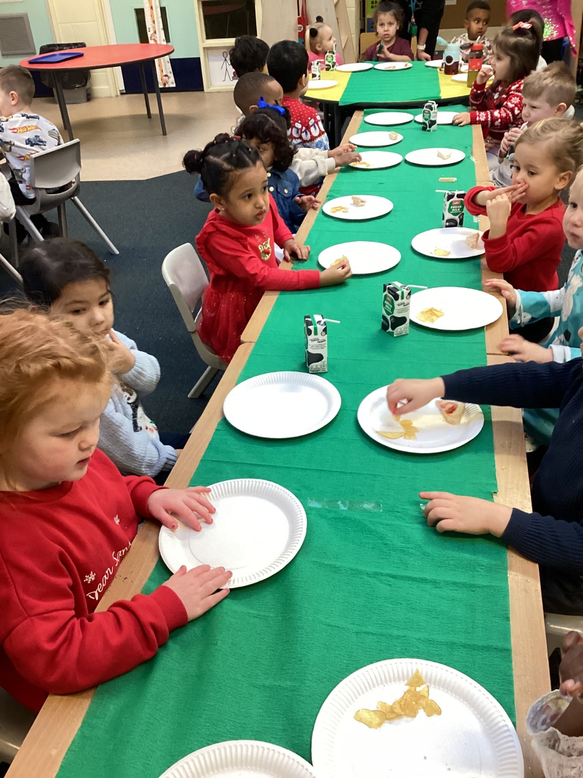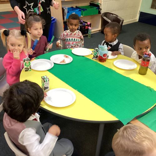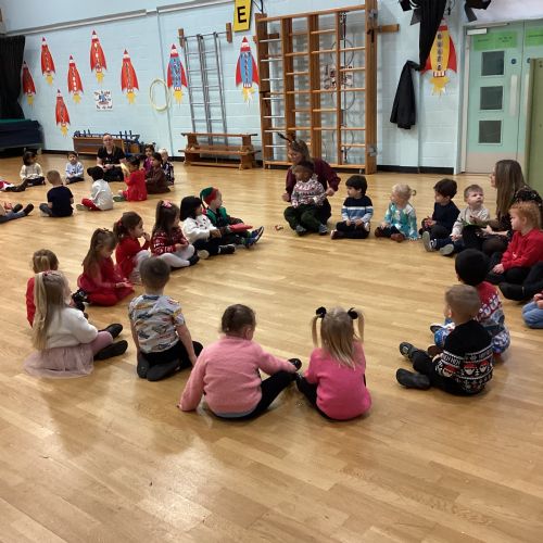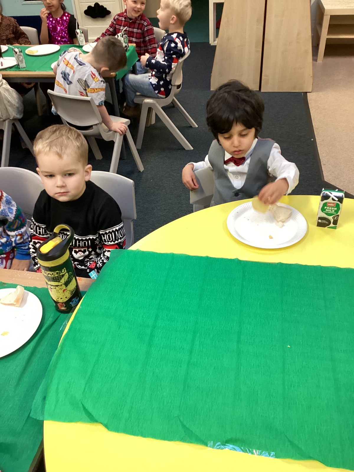 Yesterday was our Nursery Christmas Party and we had a fantastic day! We played pass the parcel, musical bumps and had a disco. We ate some party food all together. The best thing was a surprise visit from Father Christmas who brought us all a present while we were in the hall having fun! He made a bit of a mess in nursery with his snowy footprints, but the teachers didn't mind! What a fun time we had!