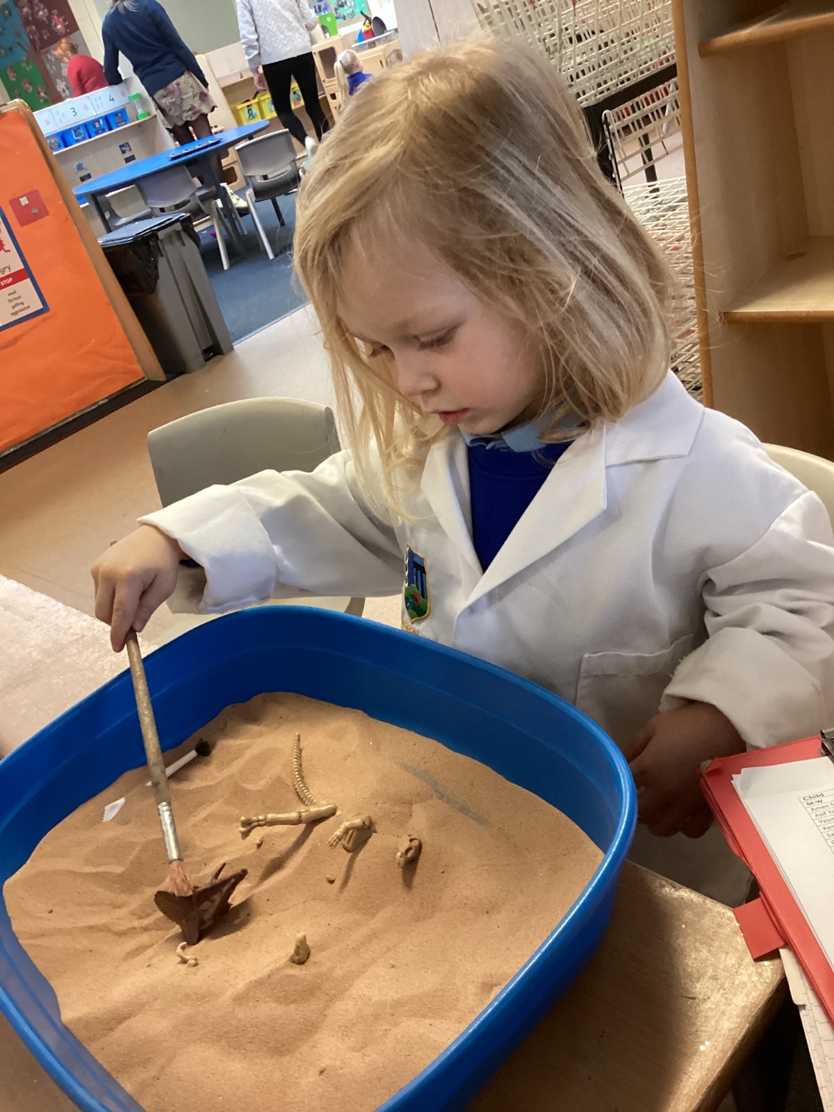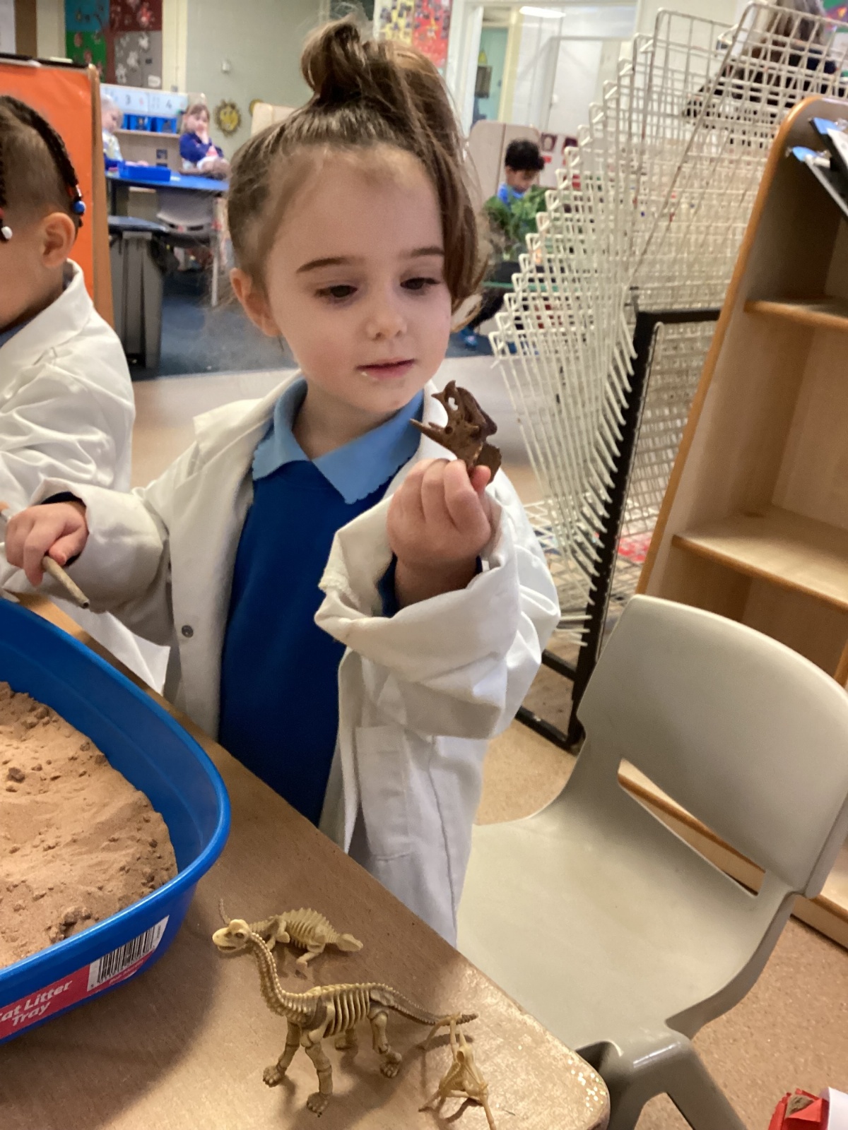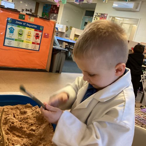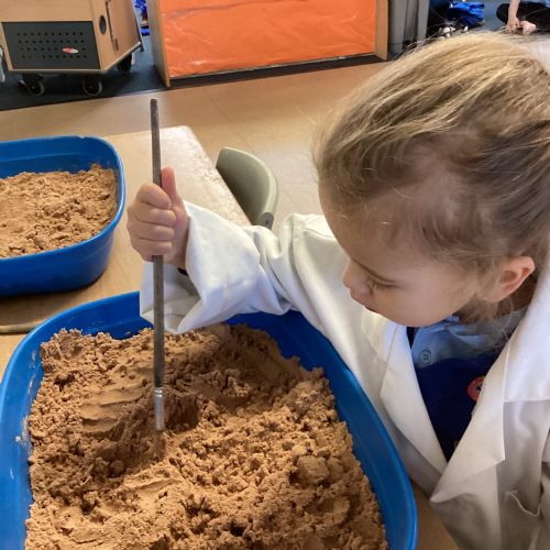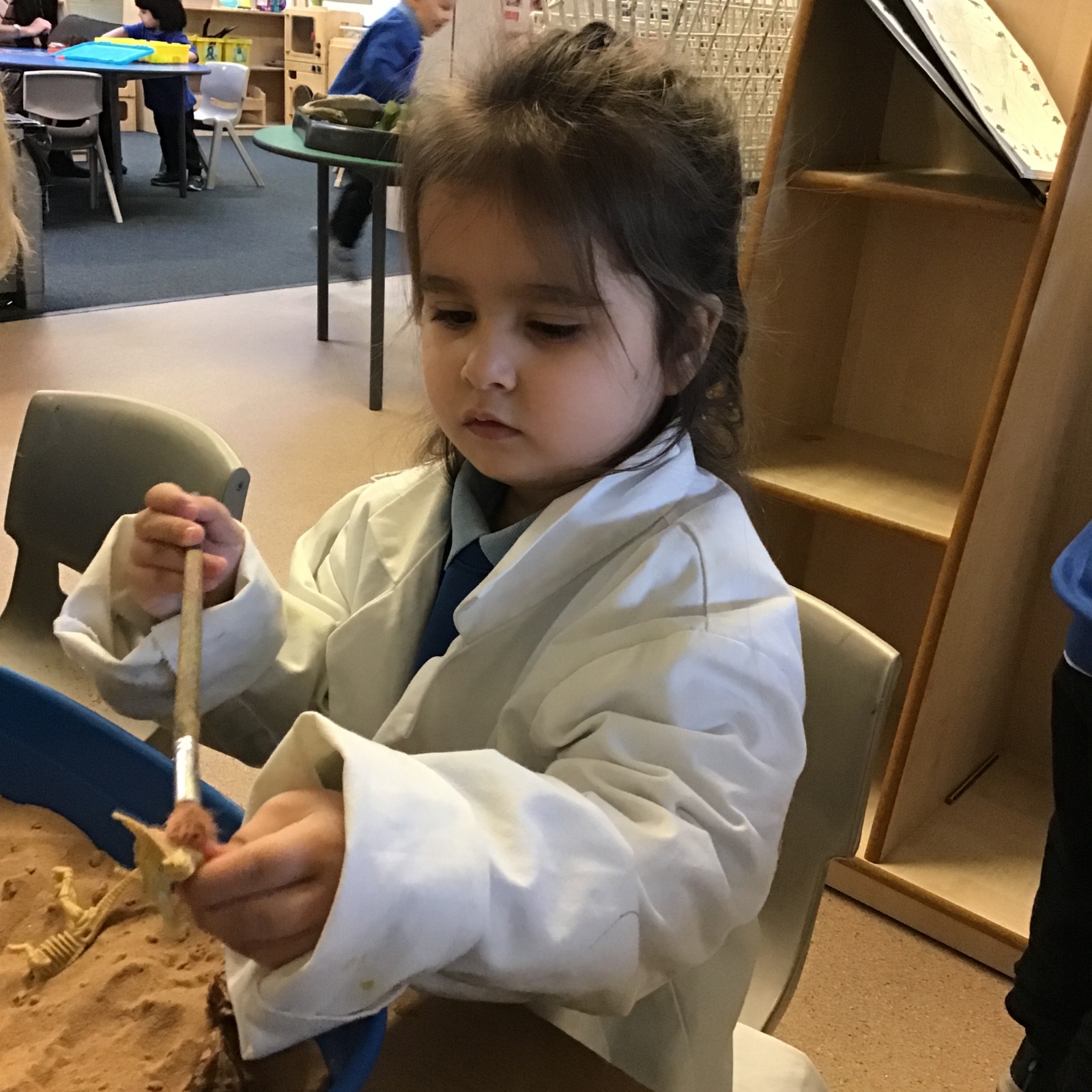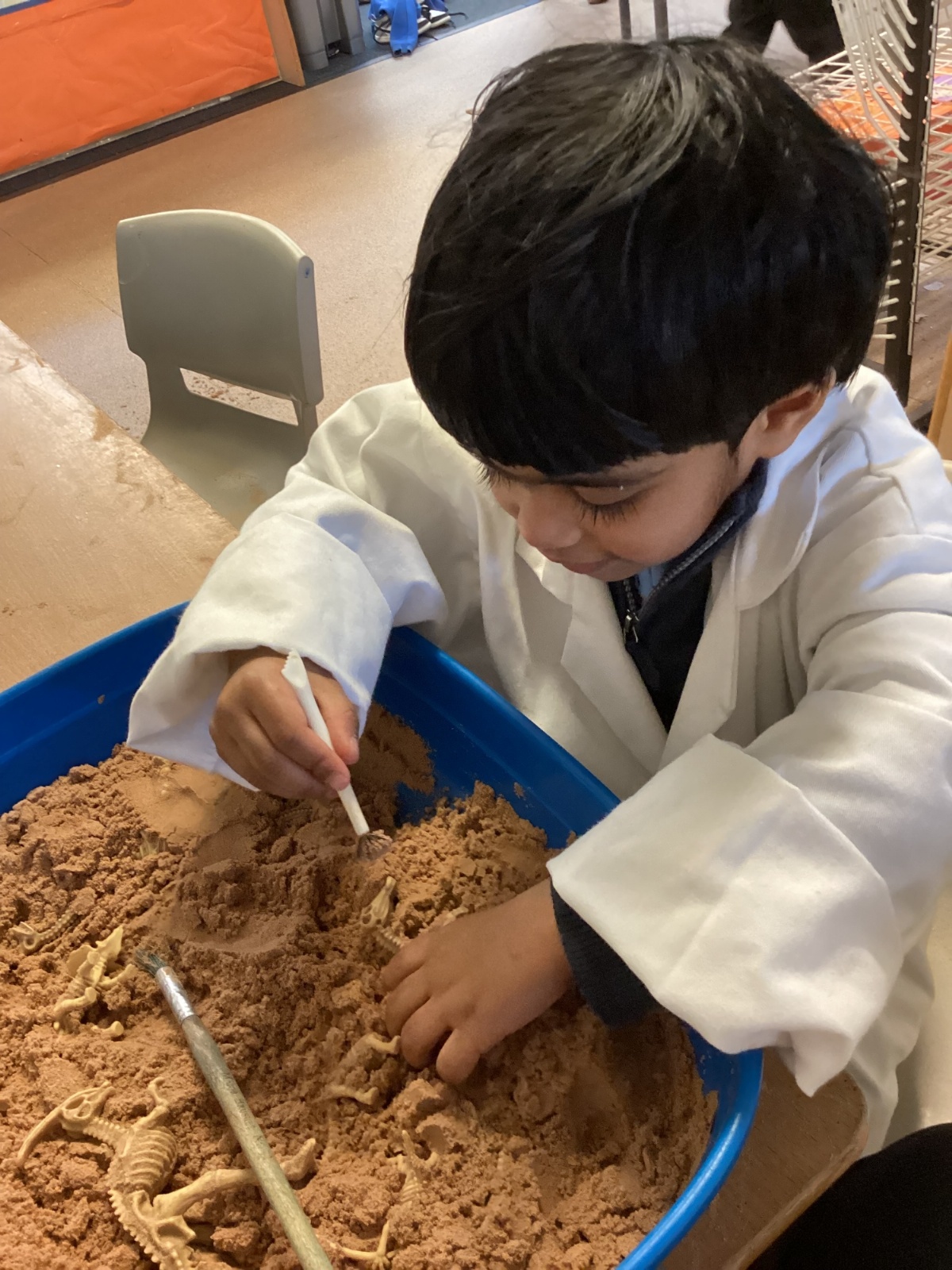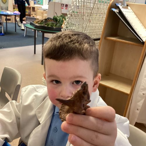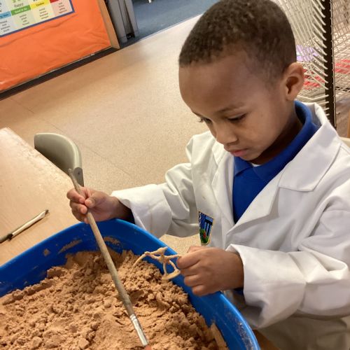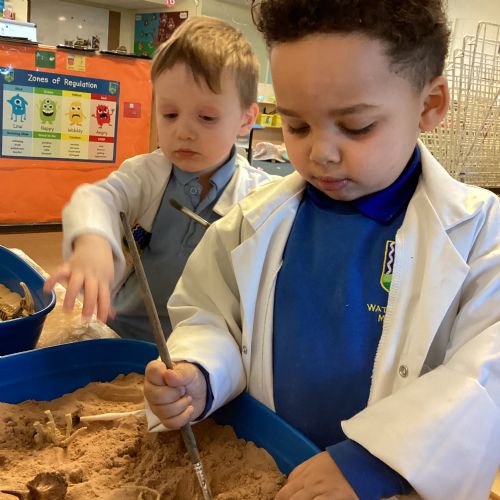 This term in nursery we are learning all about dinosaurs! We have been role playing as palaeontologists, exploring the dino dig, brushing around the sand looking for dinosaur bones!