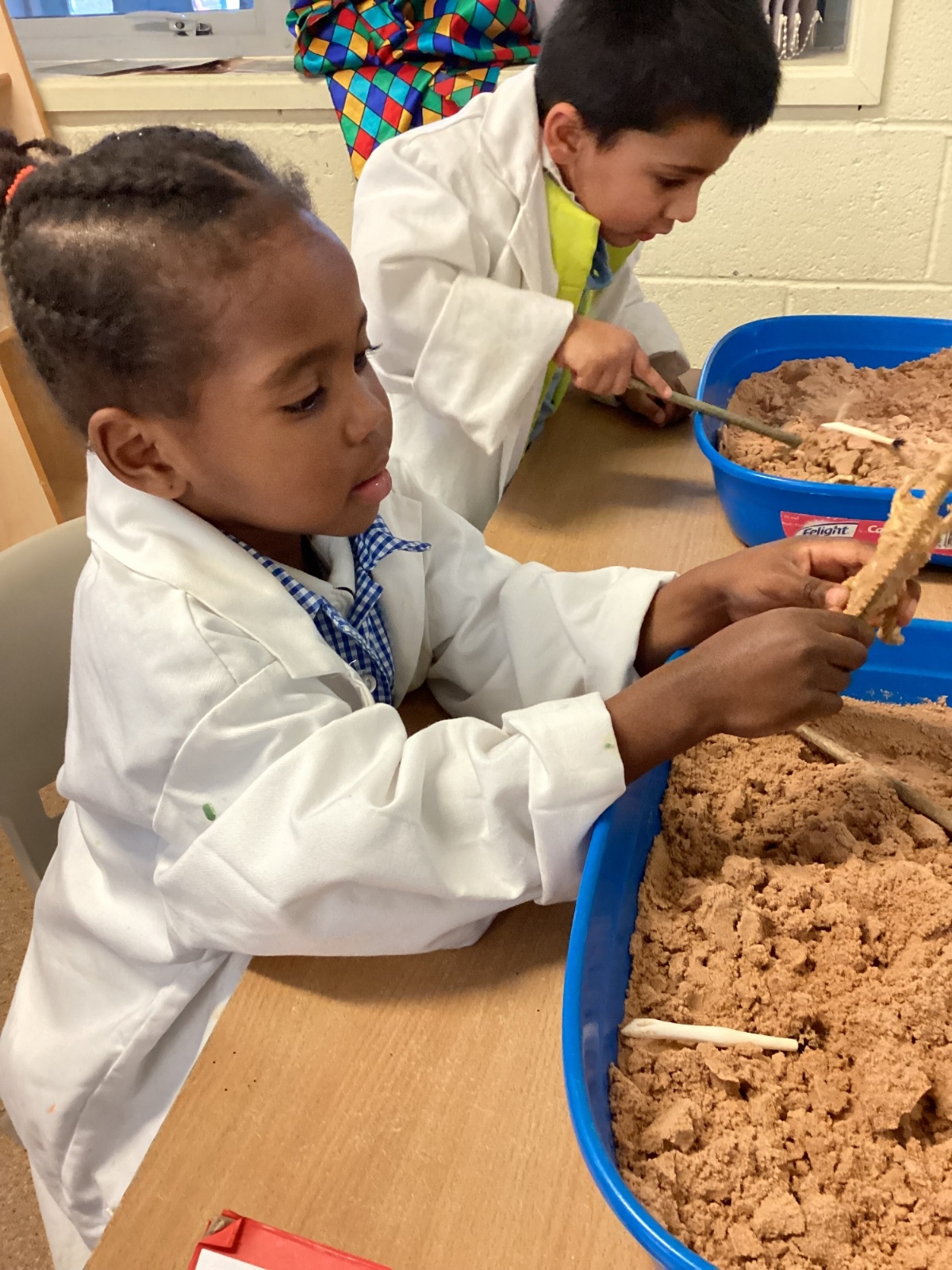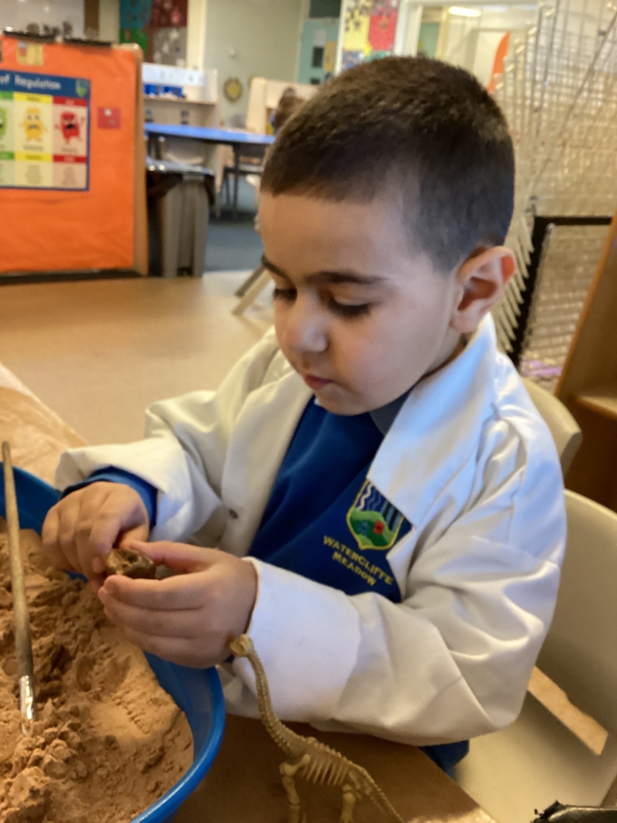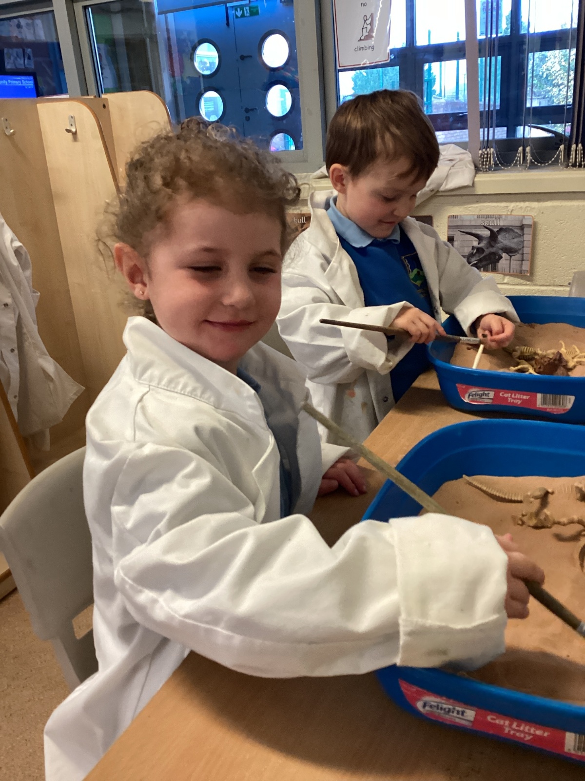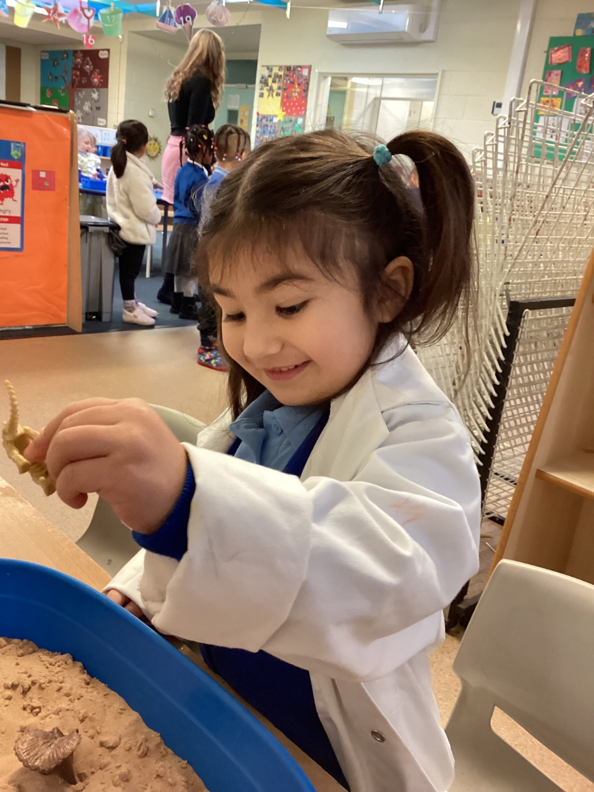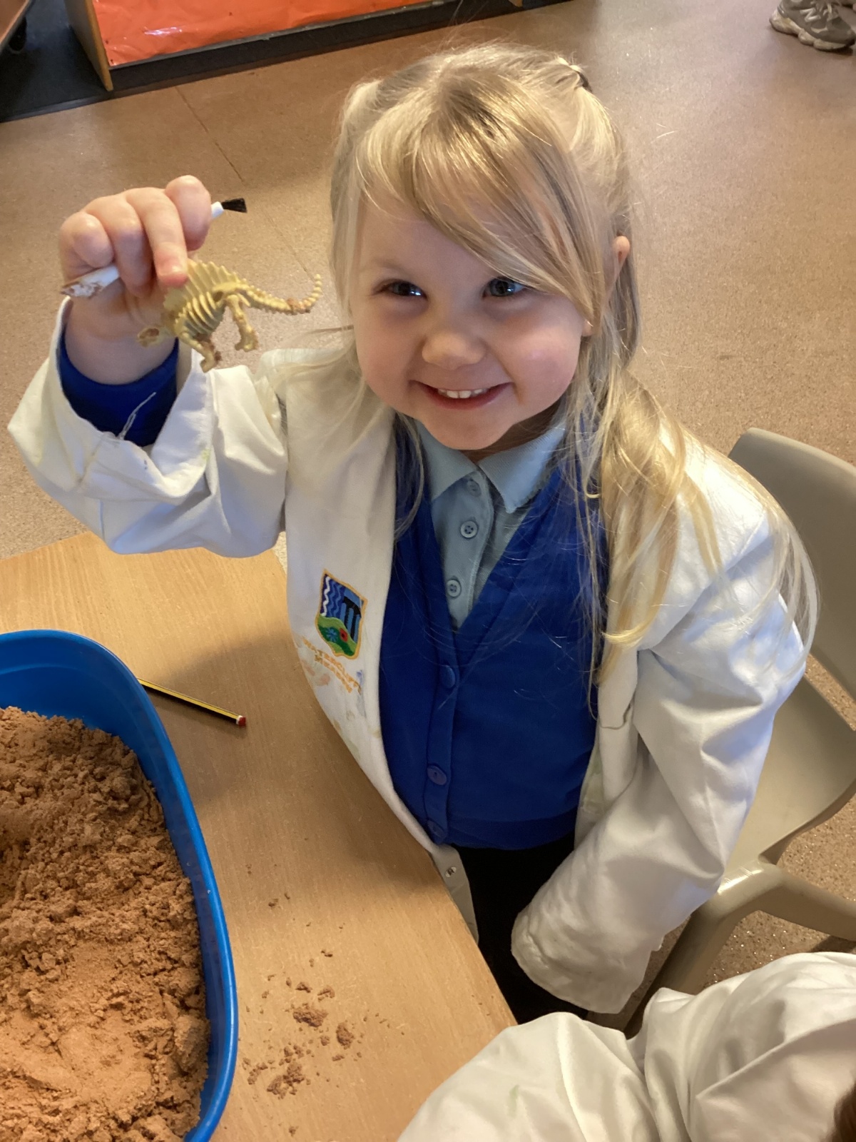 This term in nursery we are learning all about dinosaurs! We have been role playing as palaeontologists, exploring the dino dig, brushing around the sand looking for dinosaur bones!