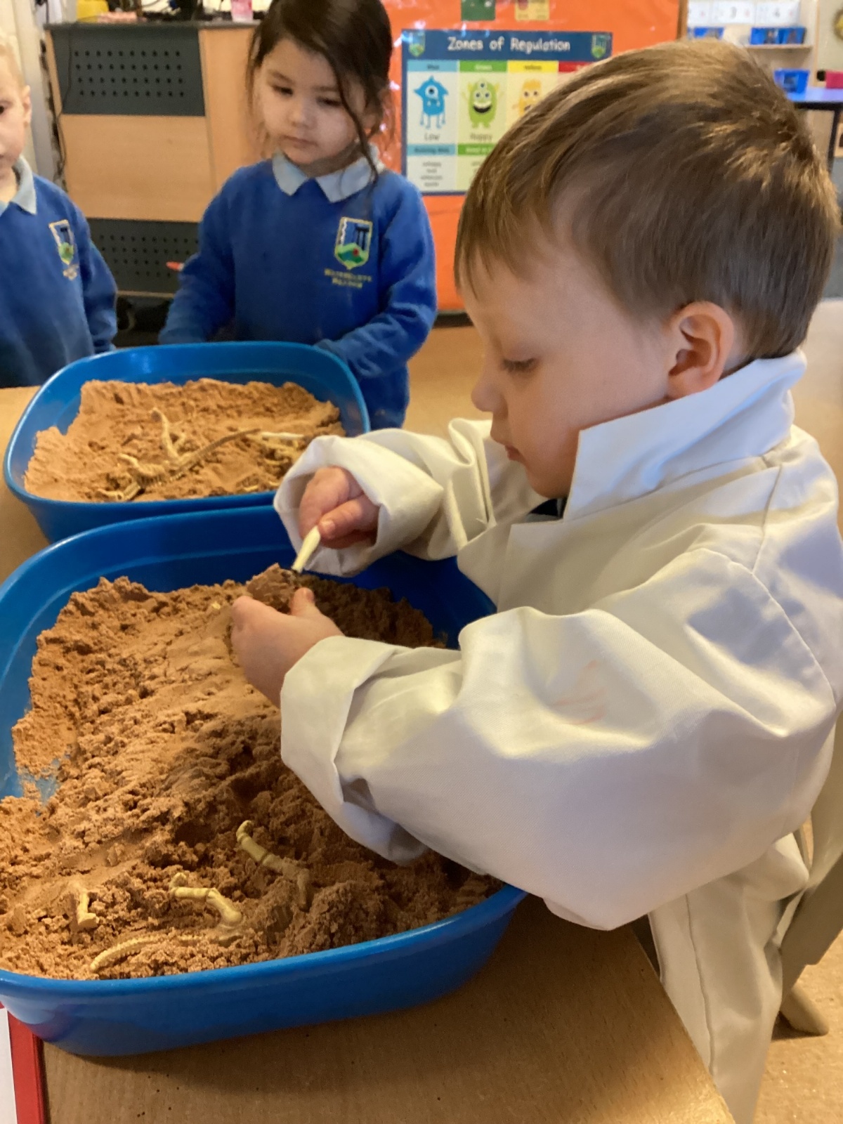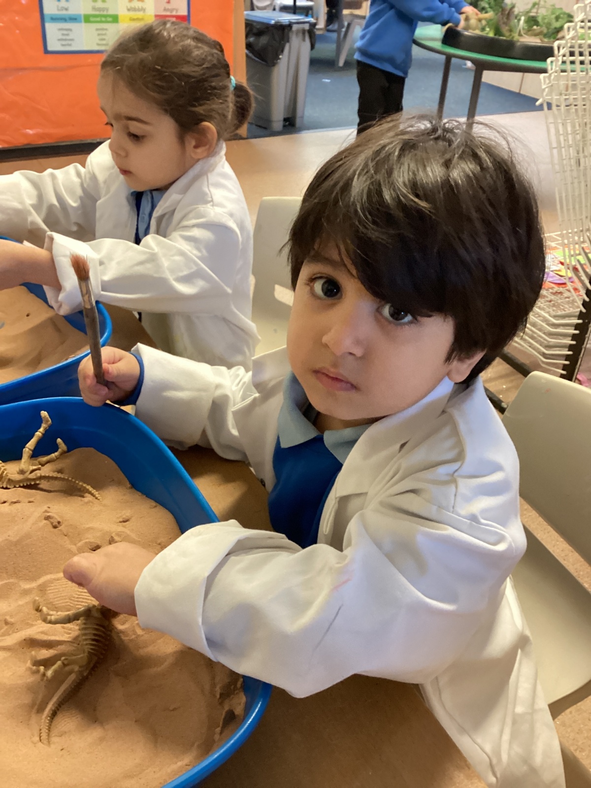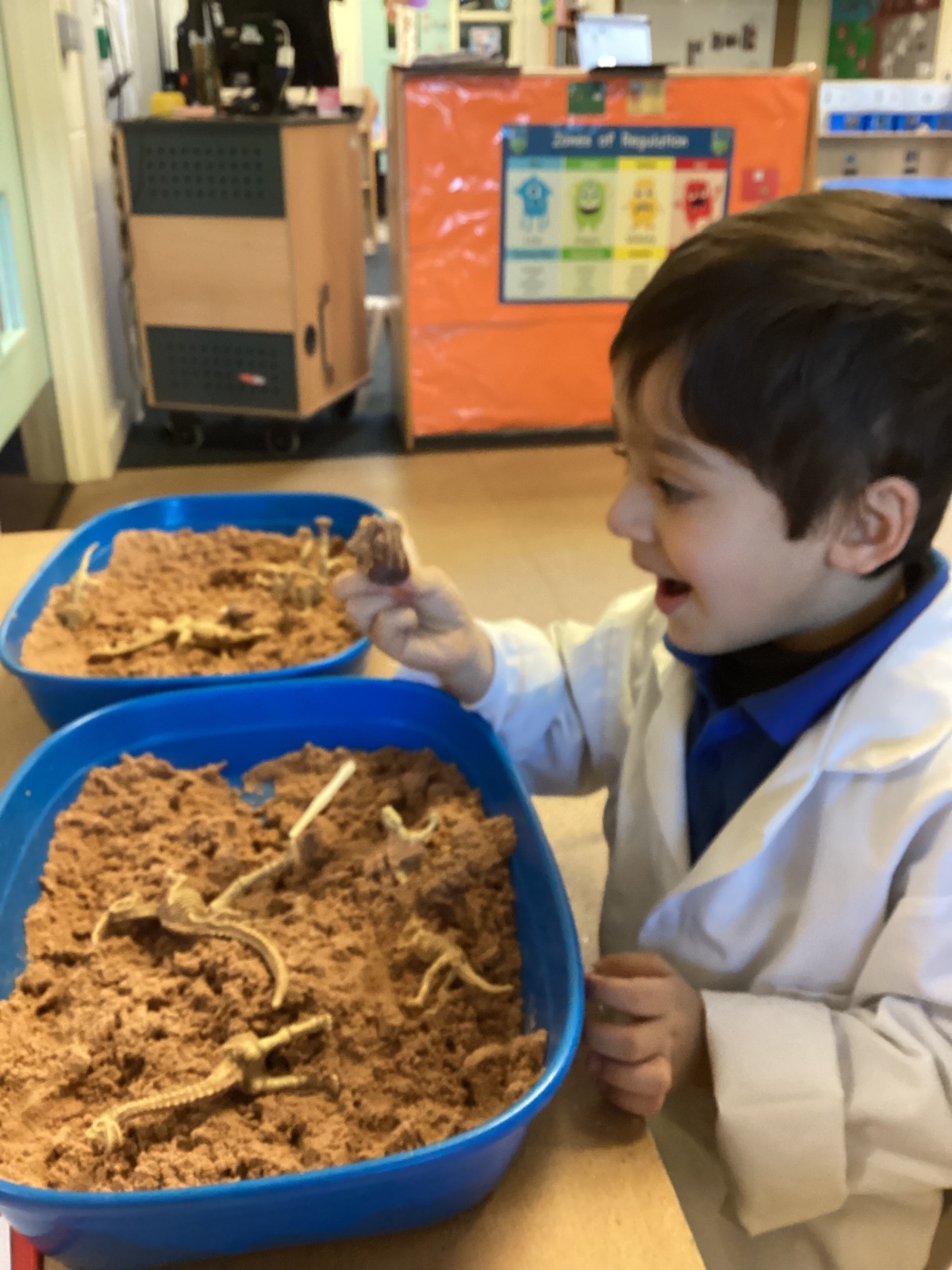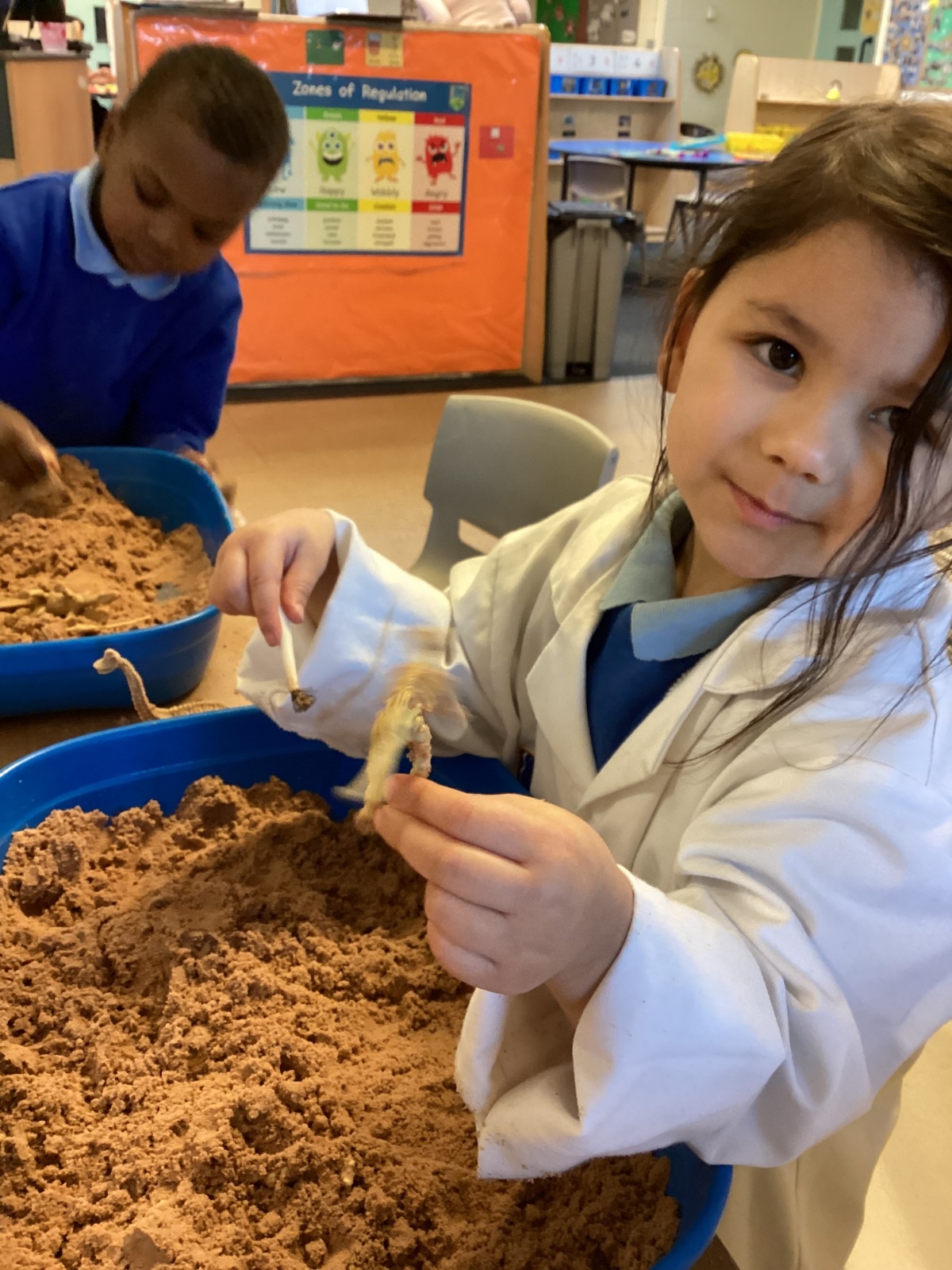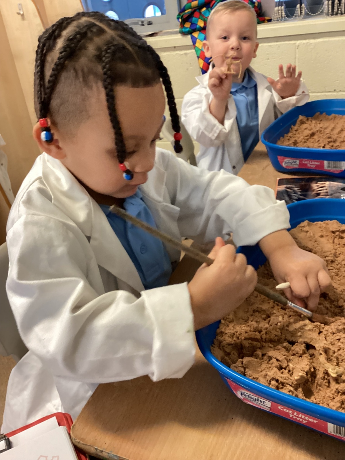 This term in nursery we are learning all about dinosaurs! We have been role playing as palaeontologists, exploring the dino dig, brushing around the sand looking for dinosaur bones!