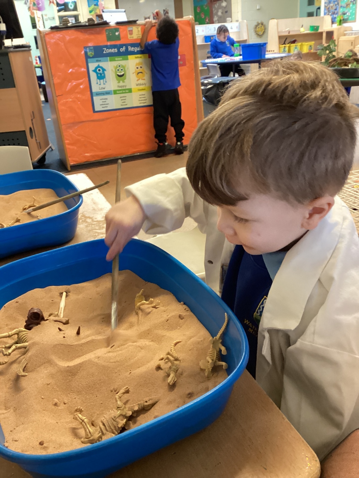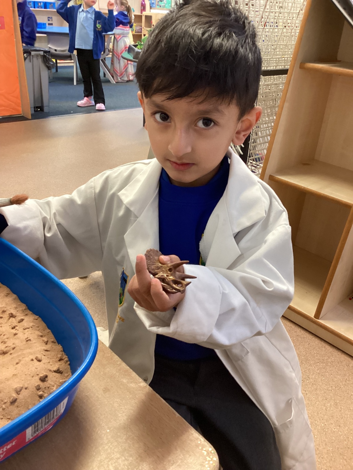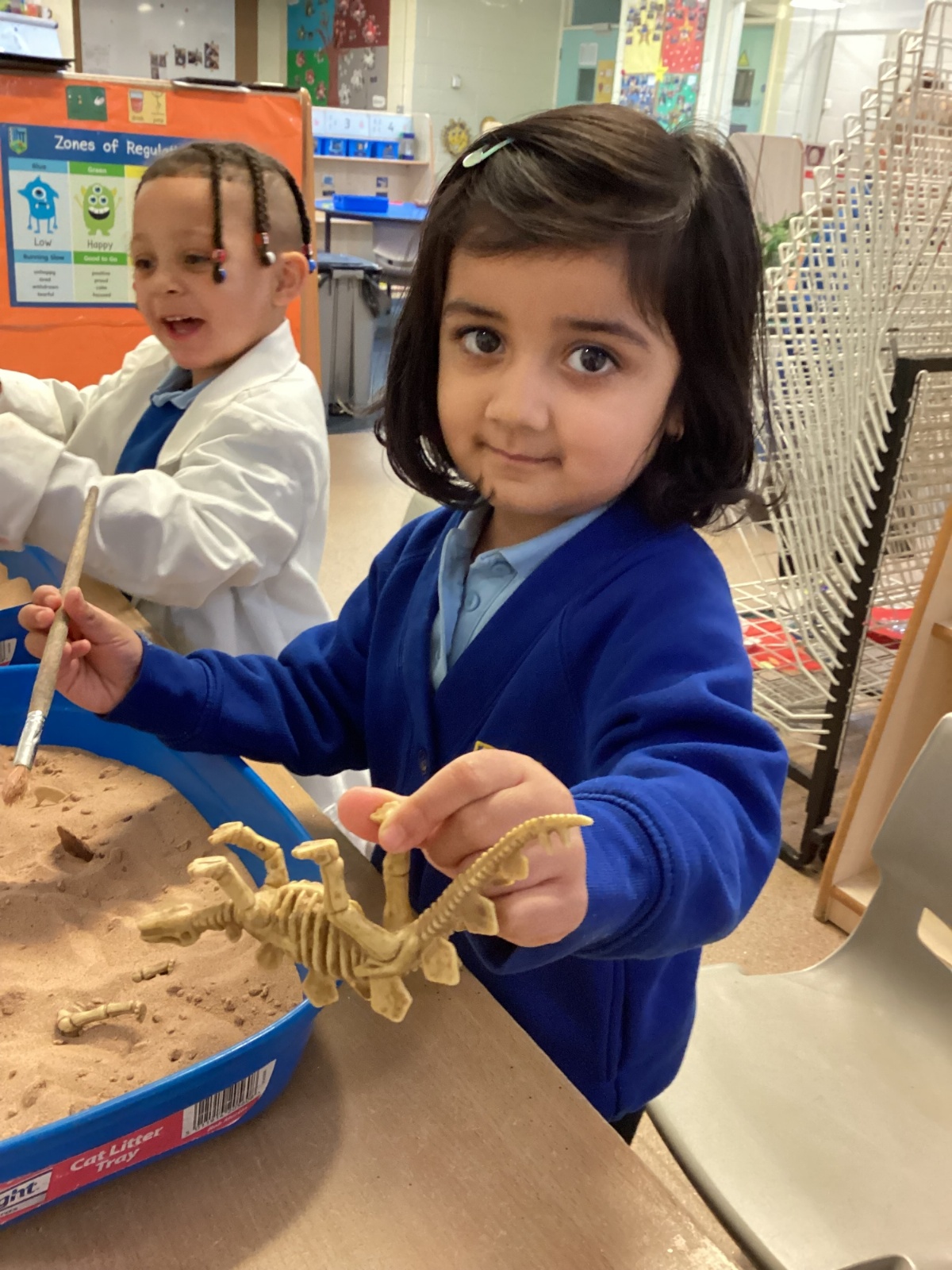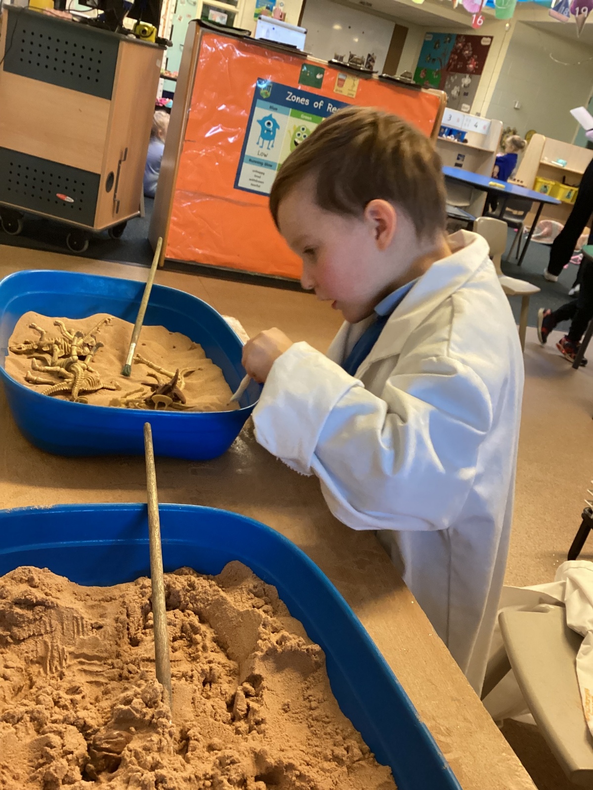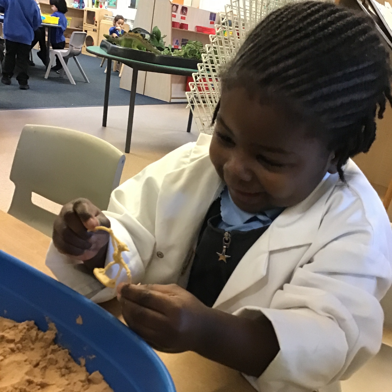 This term in nursery we are learning all about dinosaurs! We have been role playing as palaeontologists, exploring the dino dig, brushing around the sand looking for dinosaur bones!