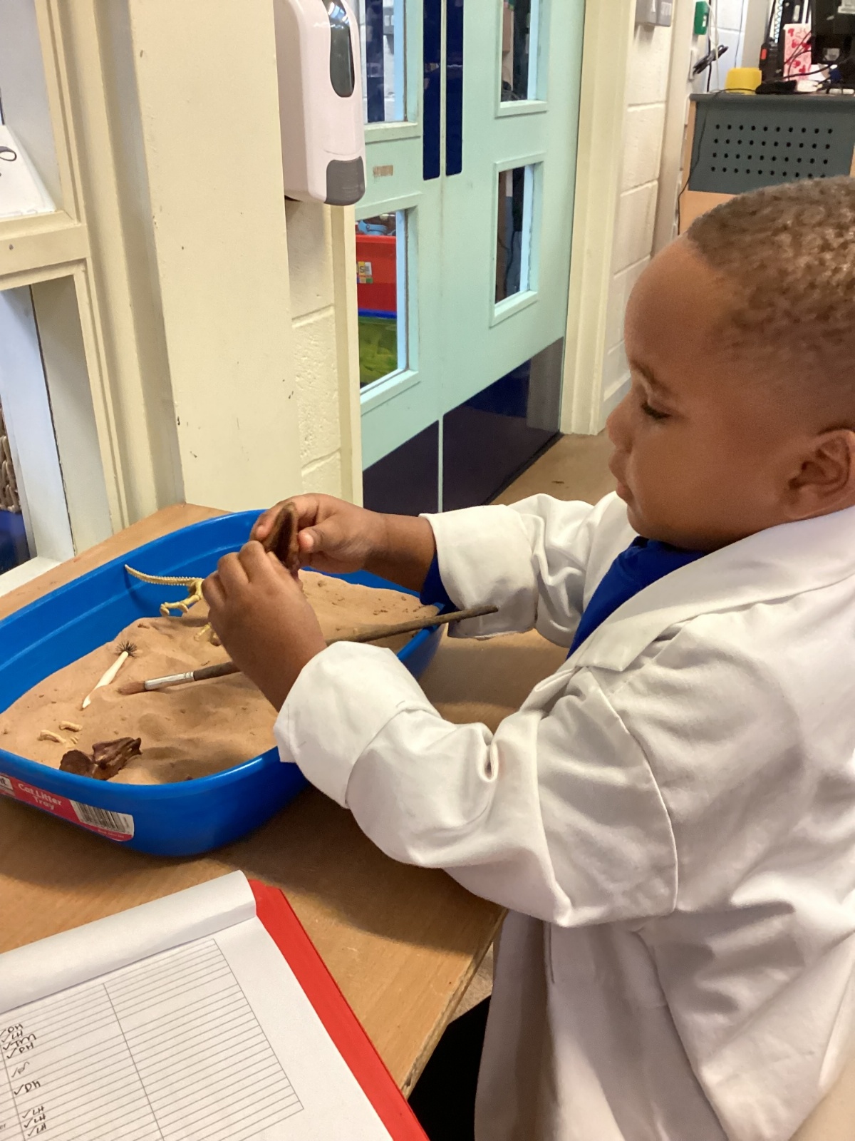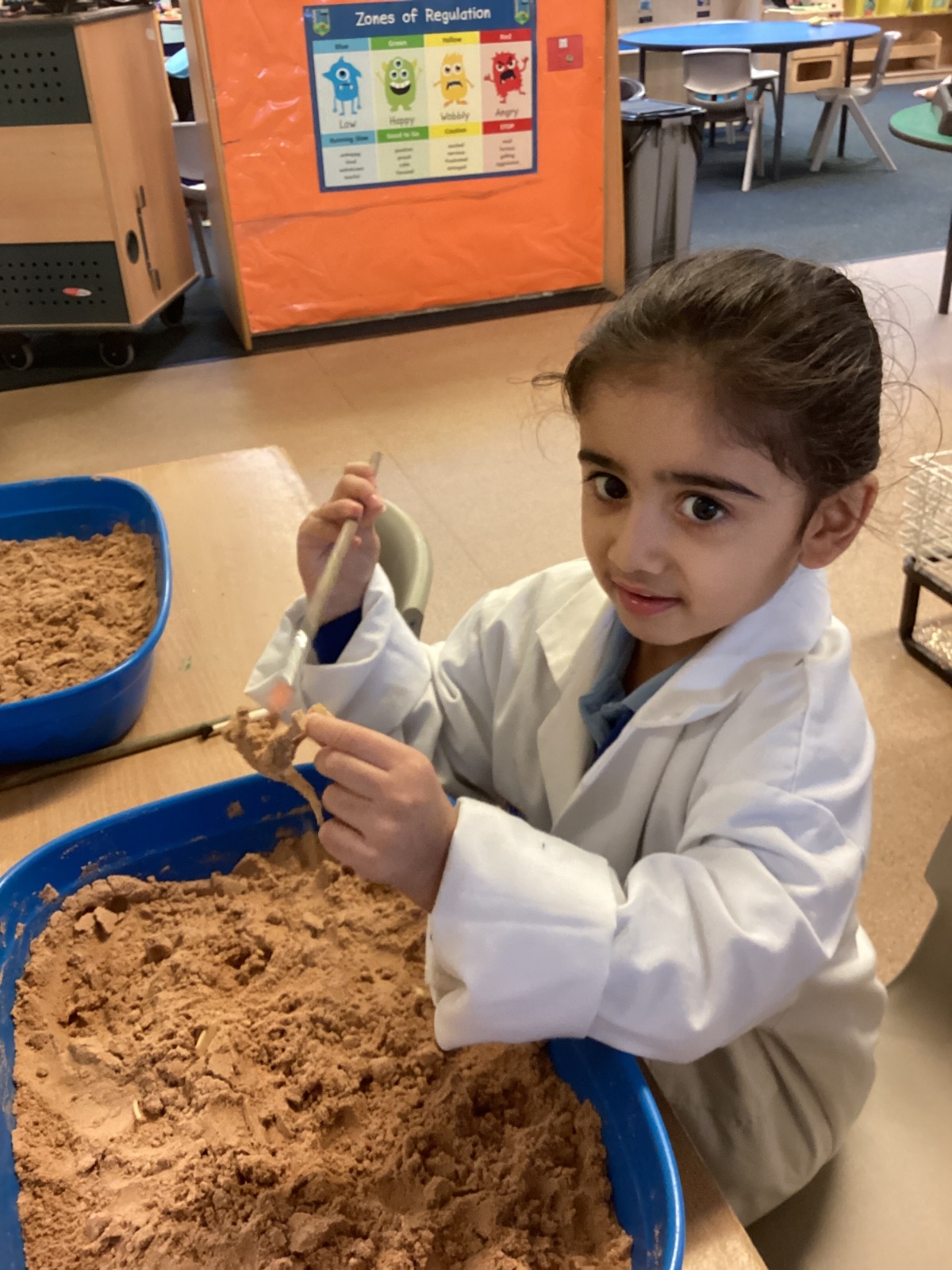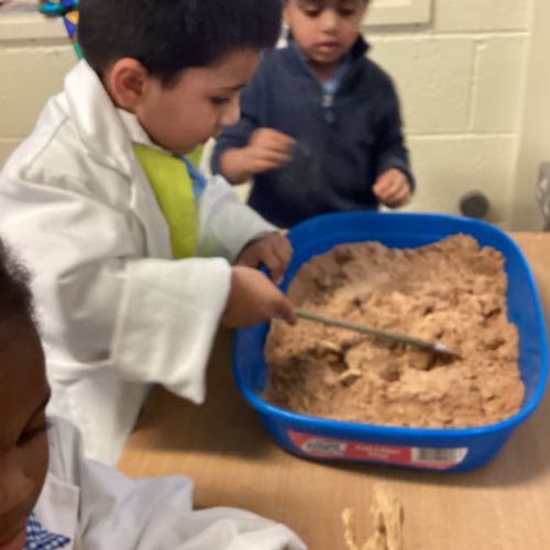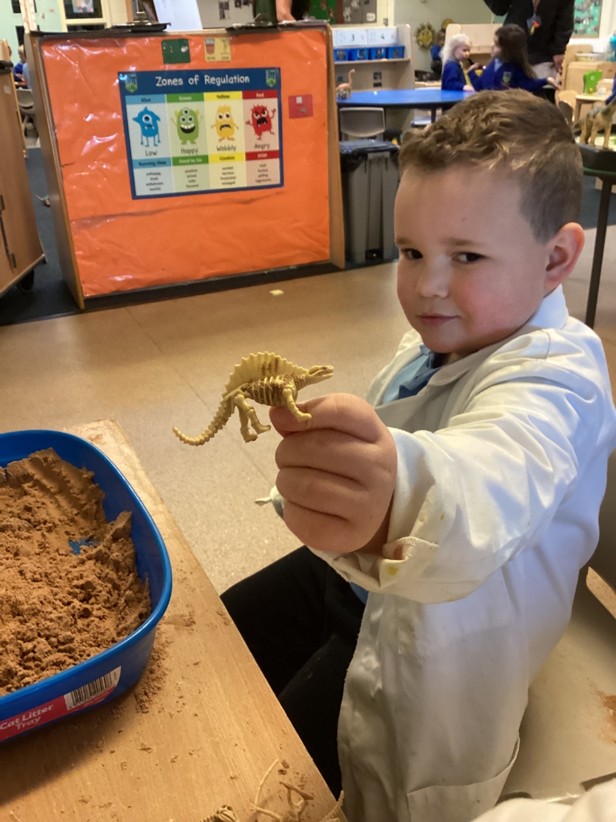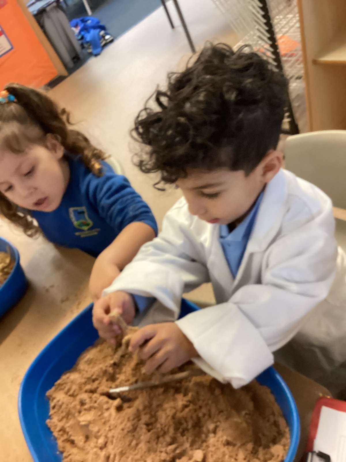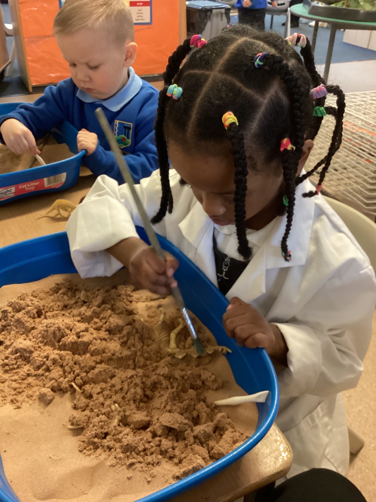 This term in nursery we are learning all about dinosaurs! We have been role playing as palaeontologists, exploring the dino dig, brushing around the sand looking for dinosaur bones!