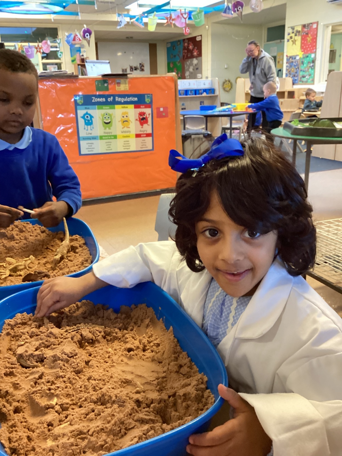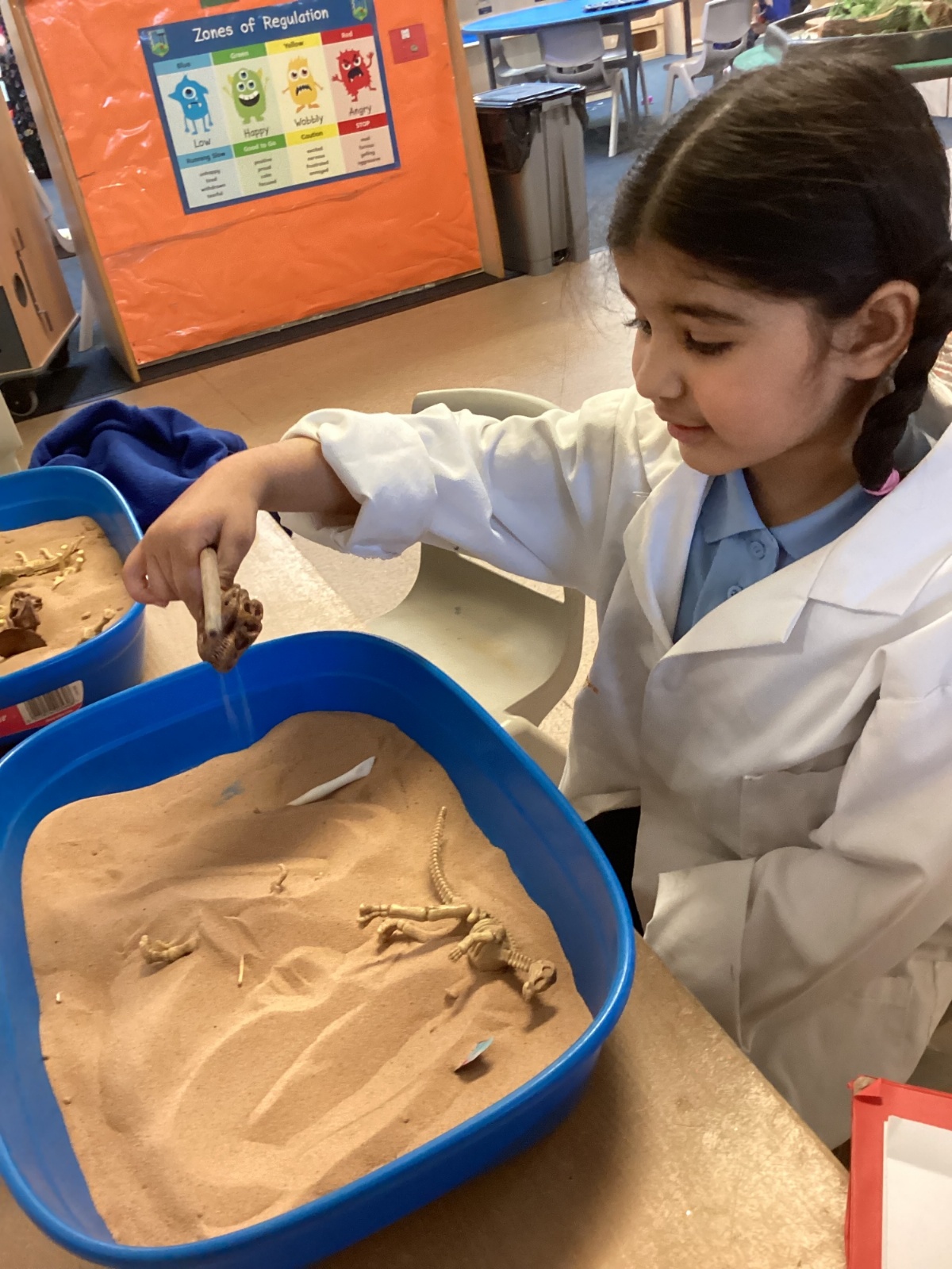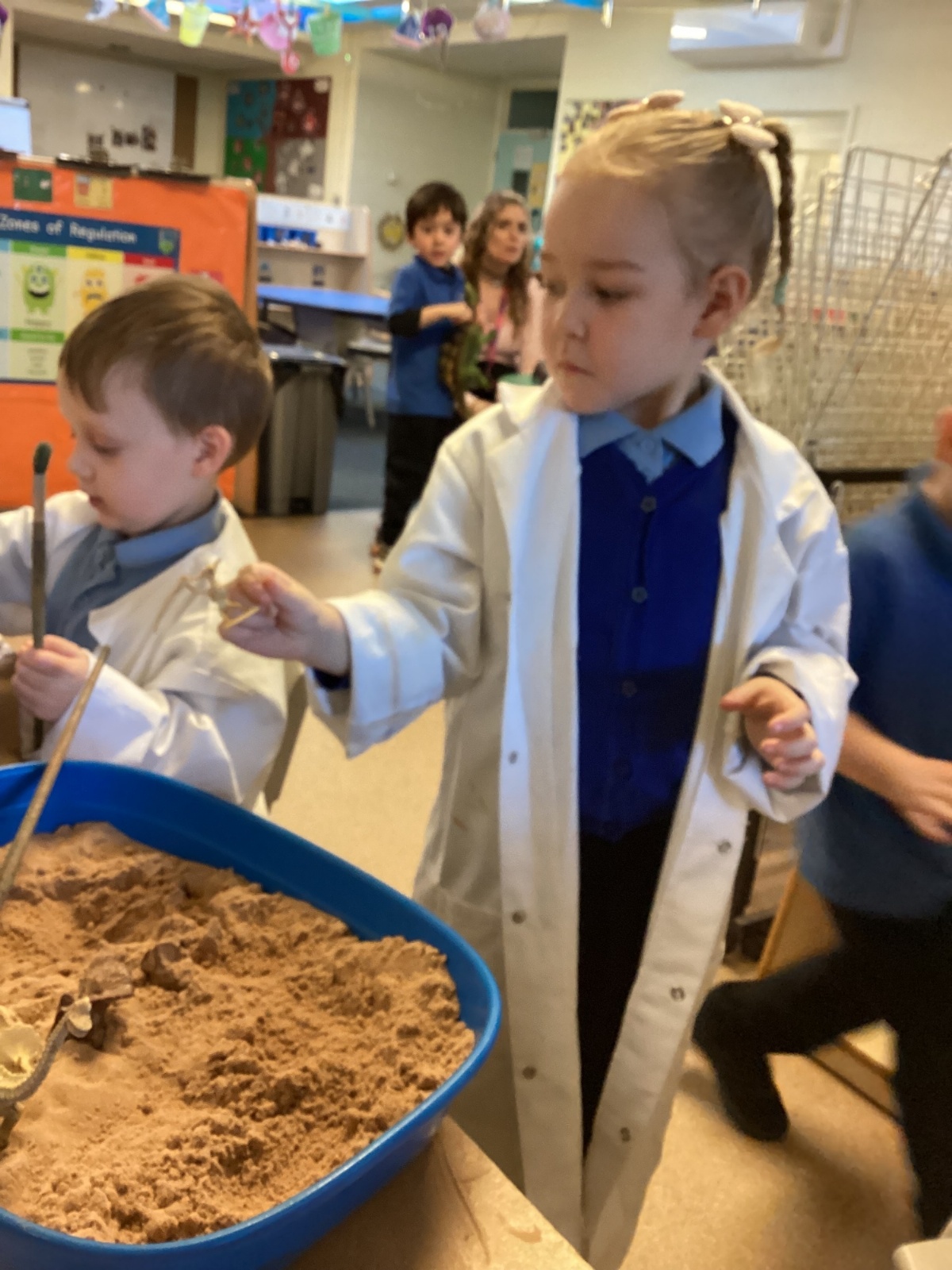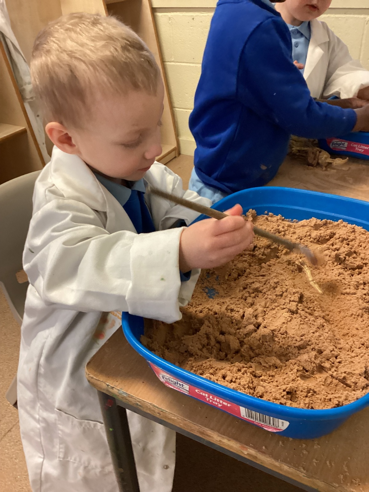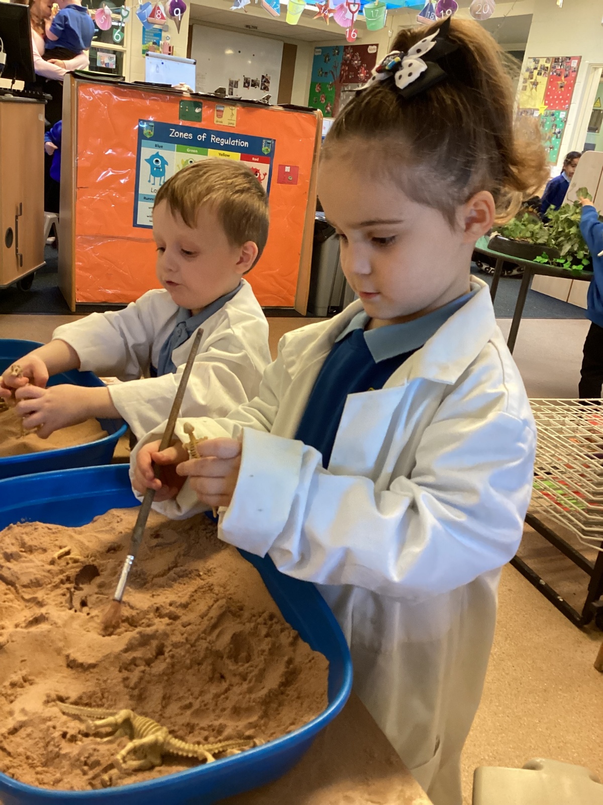 This term in nursery we are learning all about dinosaurs! We have been role playing as palaeontologists, exploring the dino dig, brushing around the sand looking for dinosaur bones!