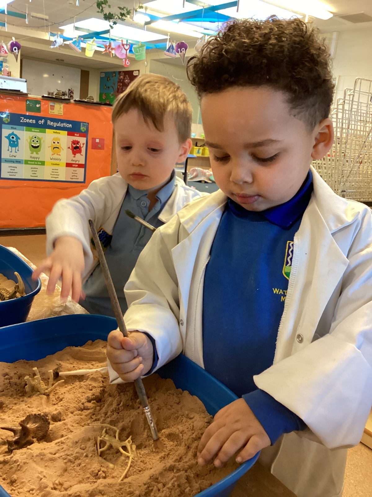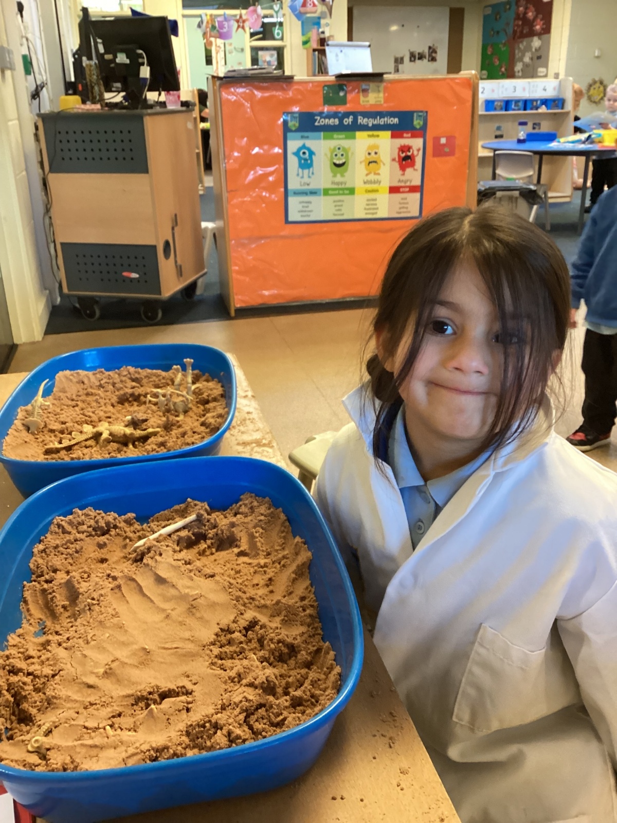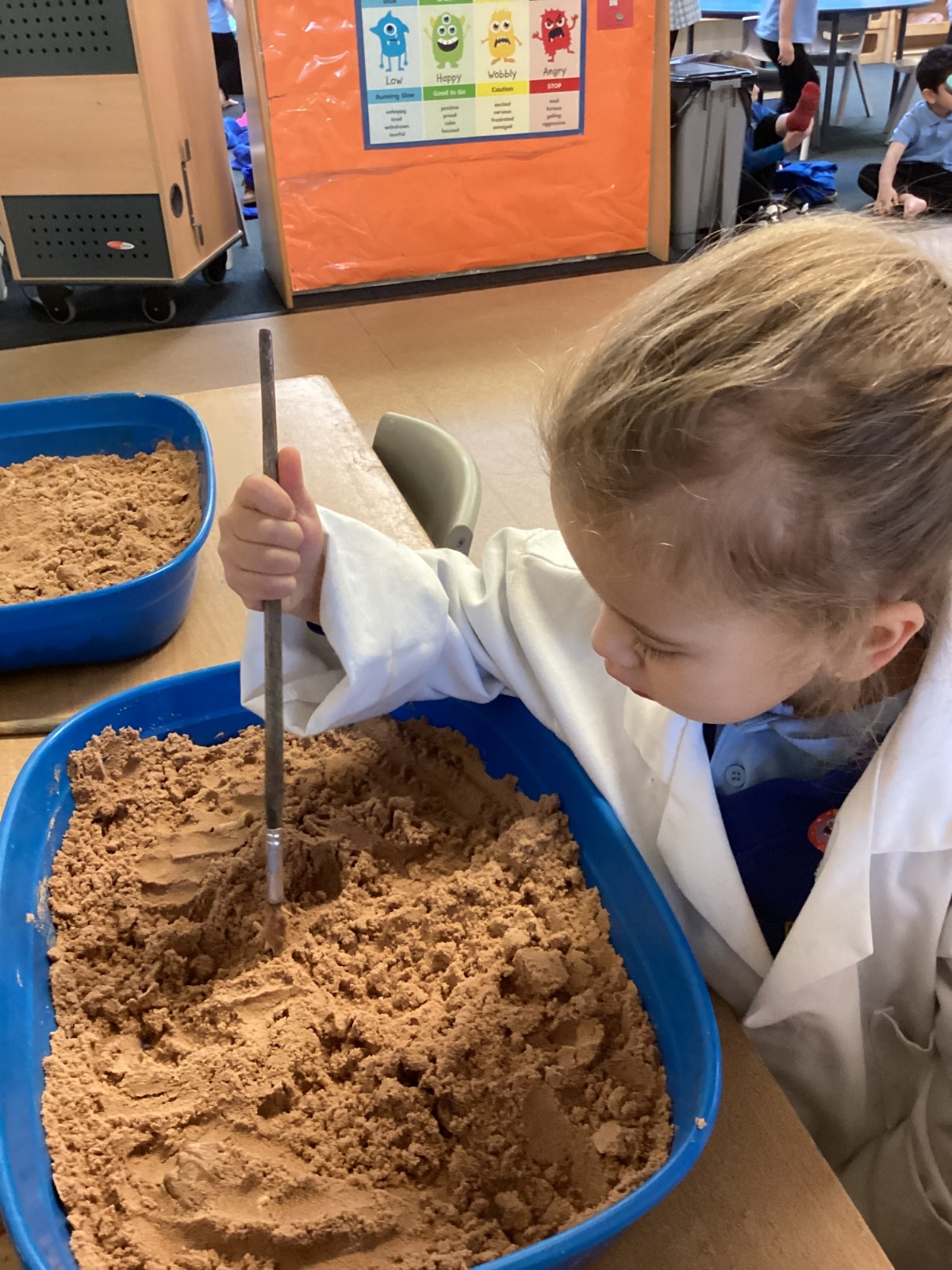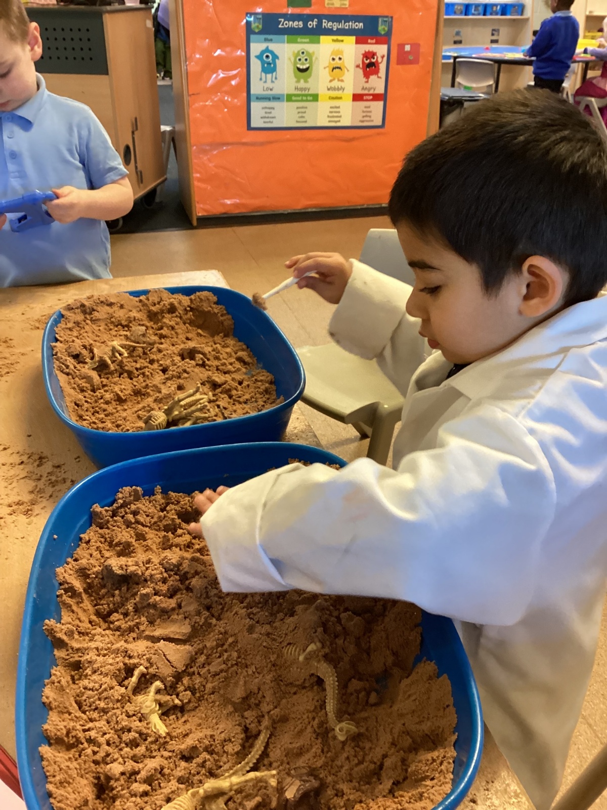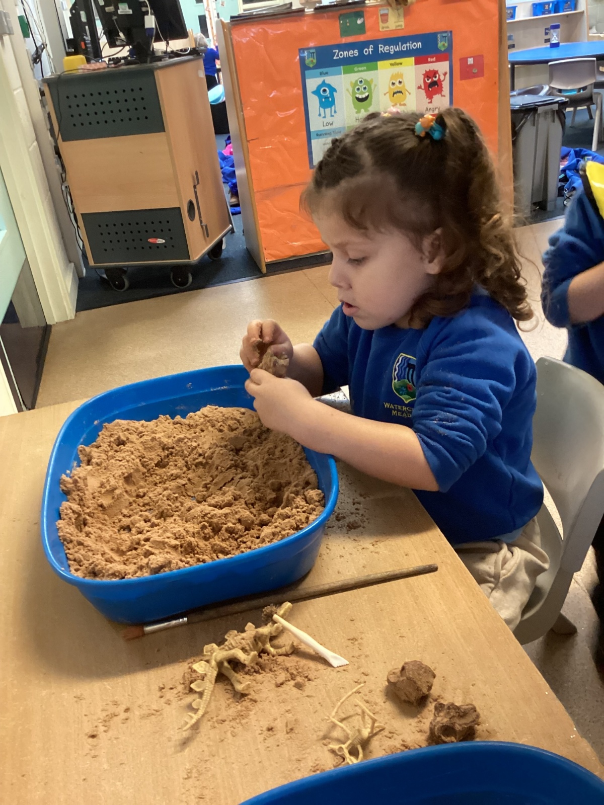 This term in nursery we are learning all about dinosaurs! We have been role playing as palaeontologists, exploring the dino dig, brushing around the sand looking for dinosaur bones!