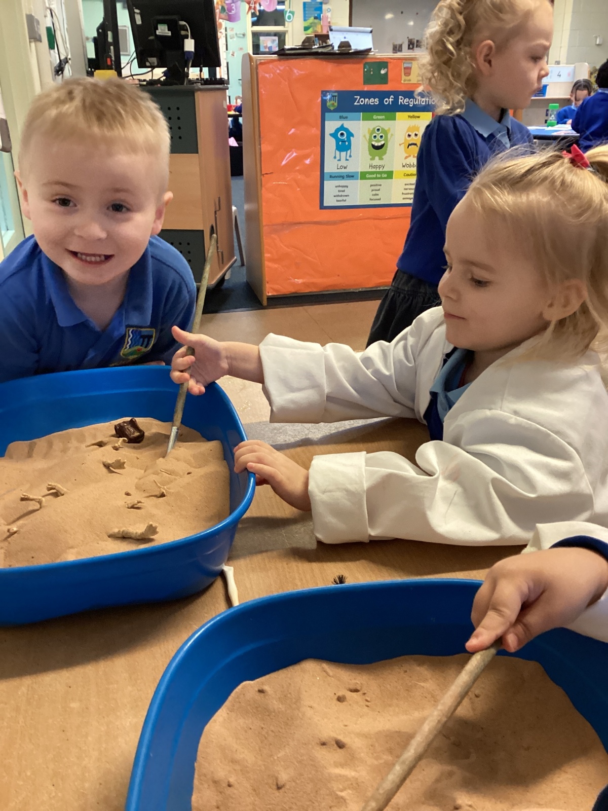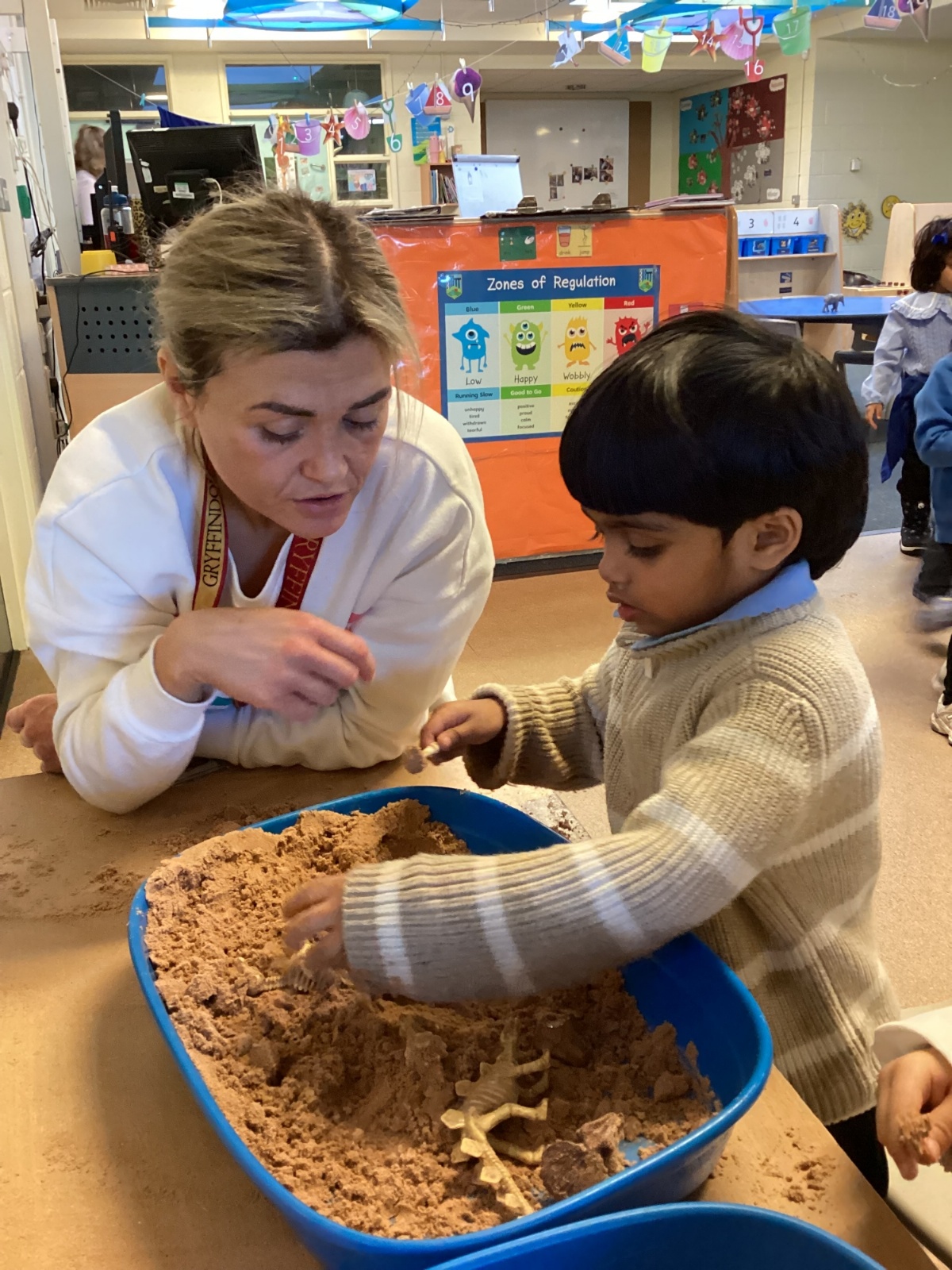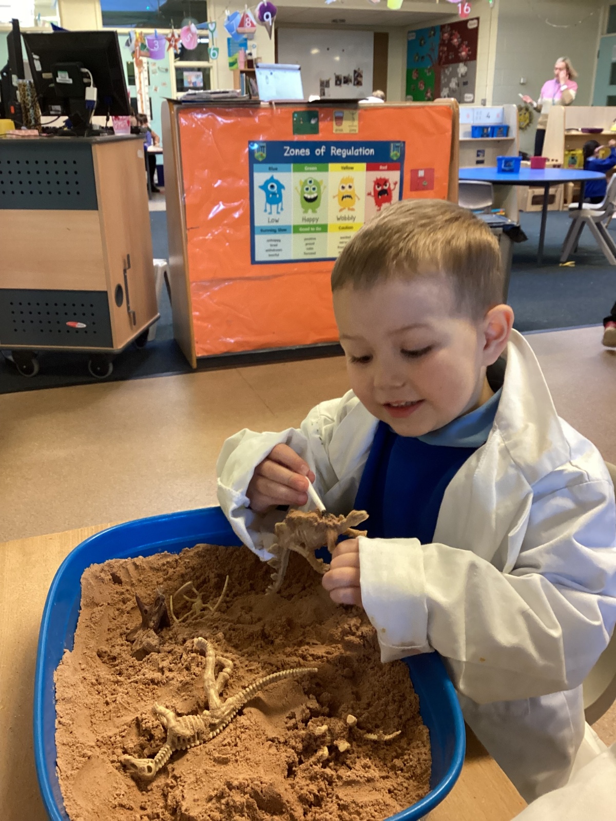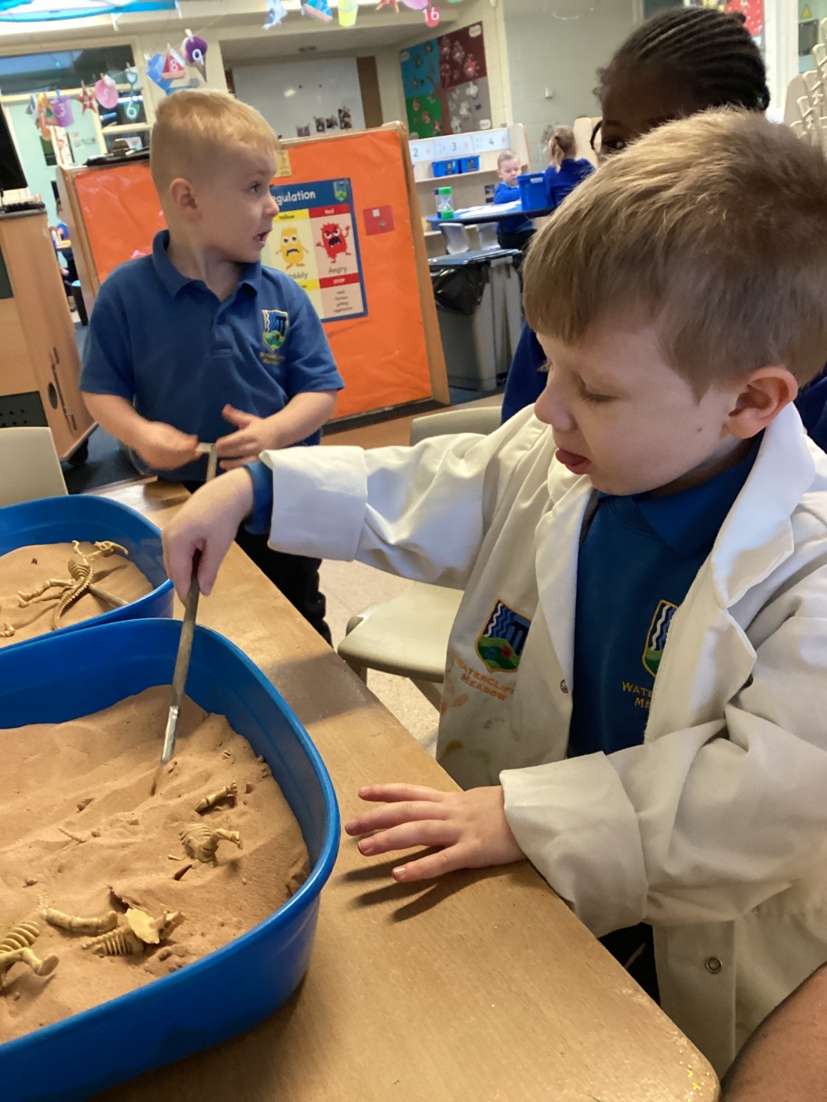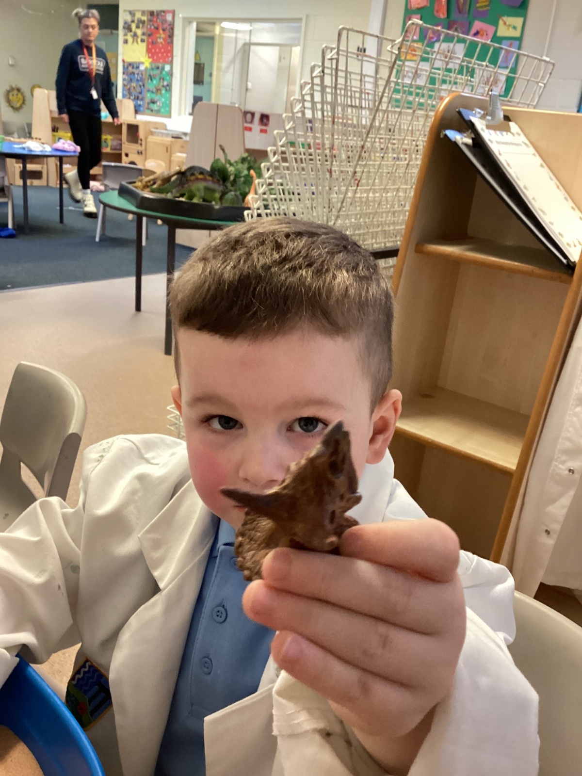 This term in nursery we are learning all about dinosaurs! We have been role playing as palaeontologists, exploring the dino dig, brushing around the sand looking for dinosaur bones!