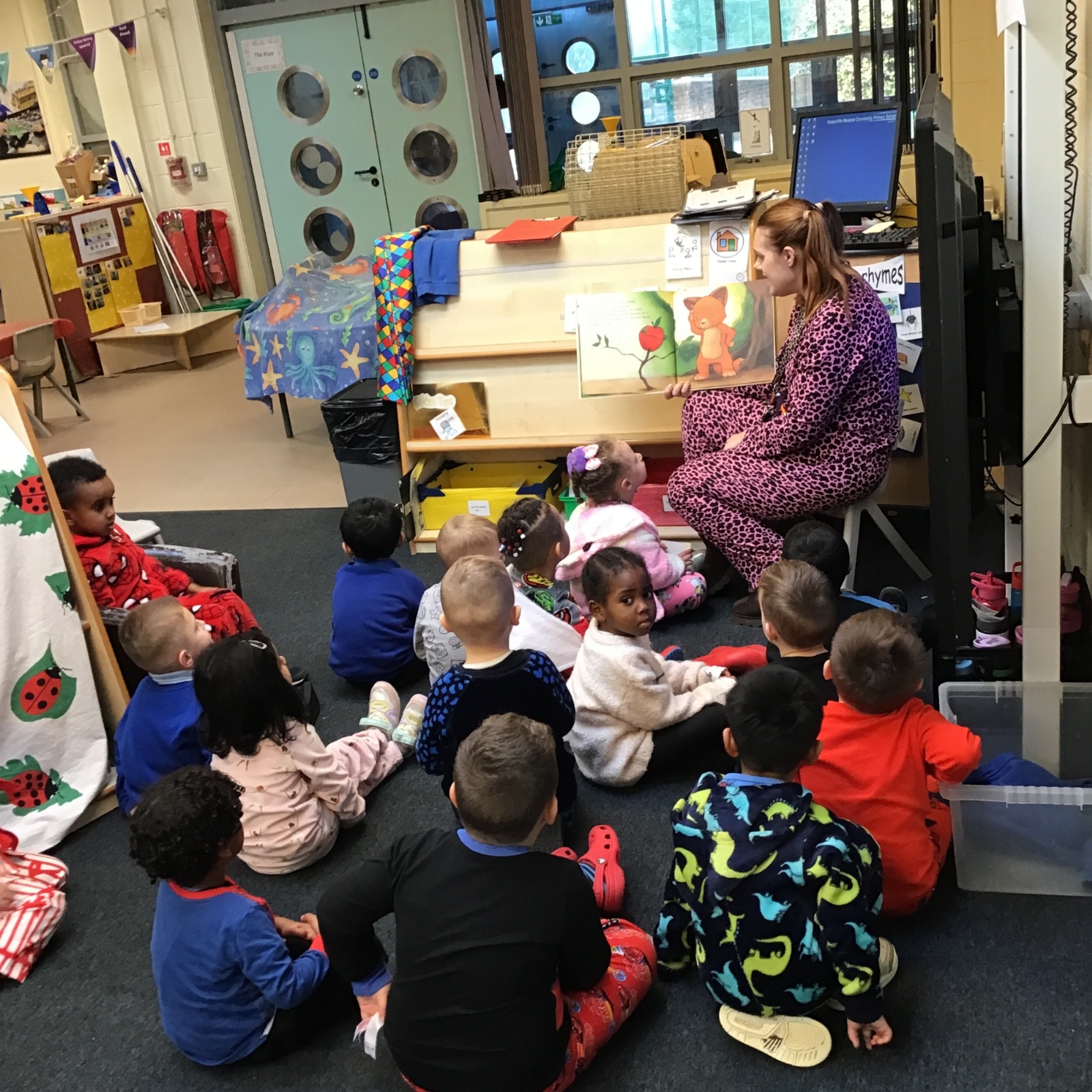 Today we had our pyjama party. Most of us came wearing our pjs, we enjoyed bedtime stories for golden time.