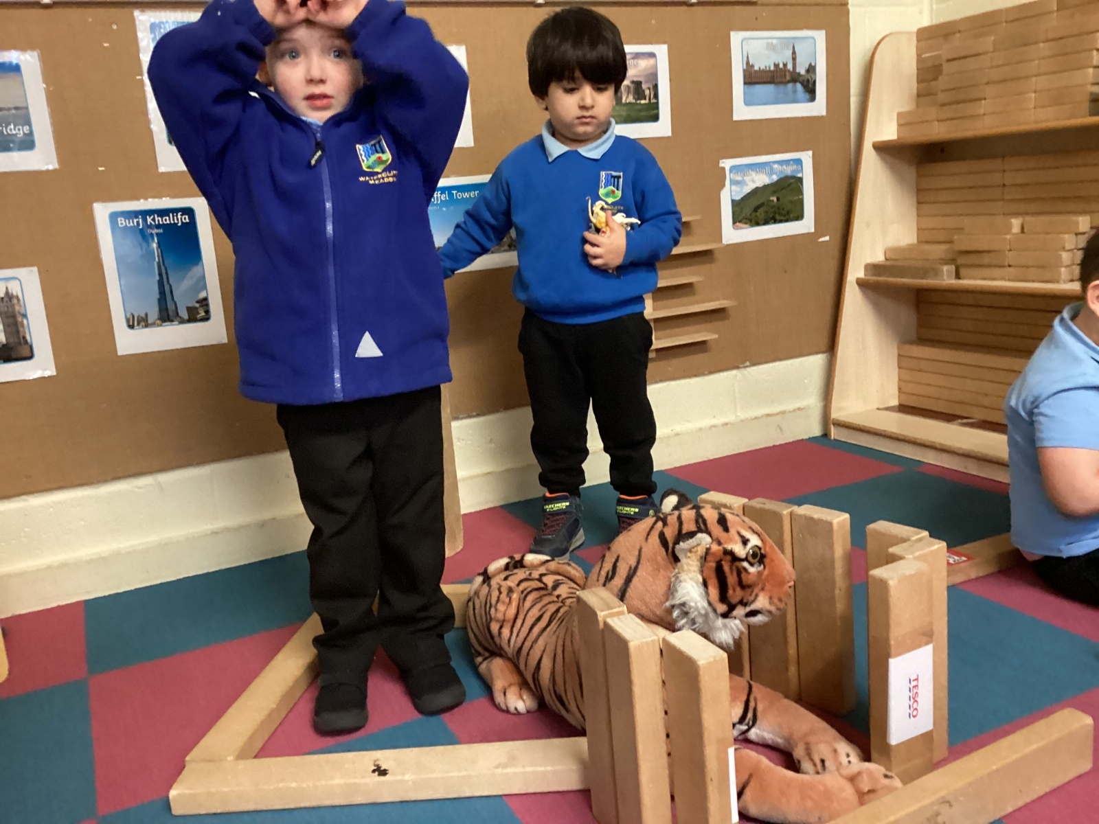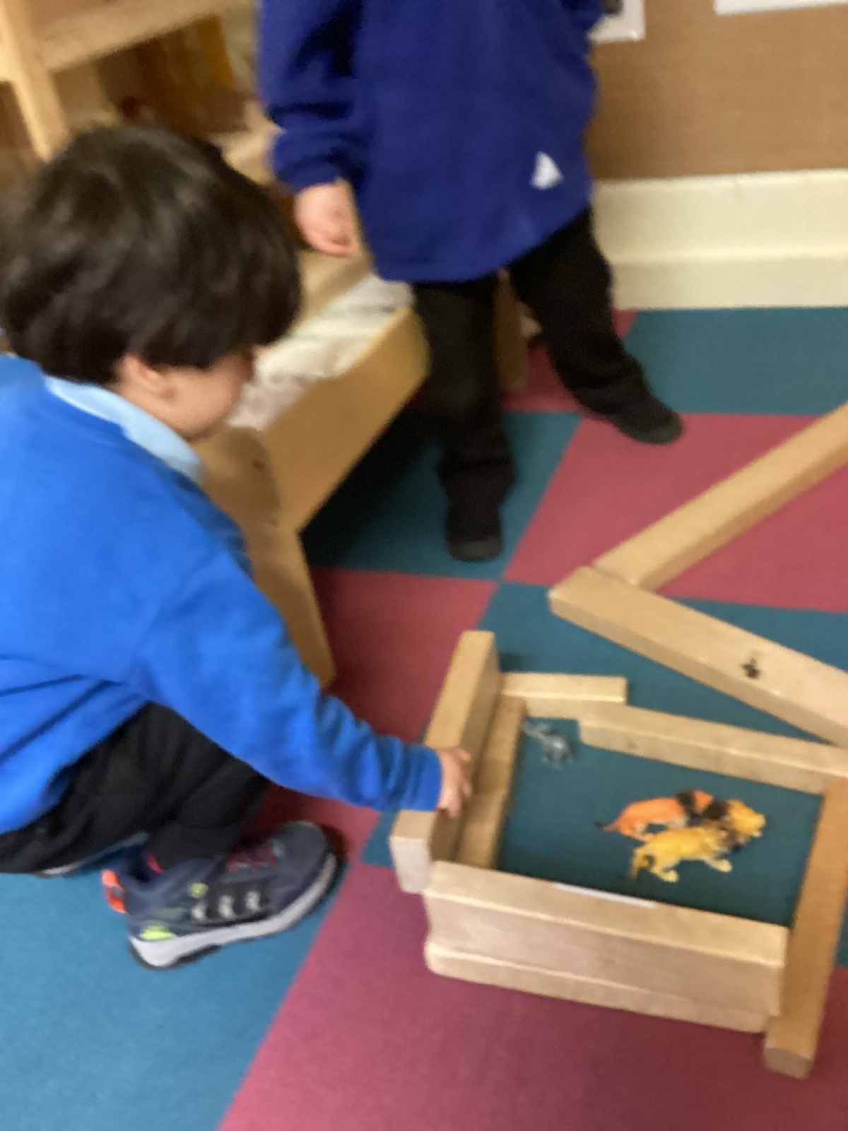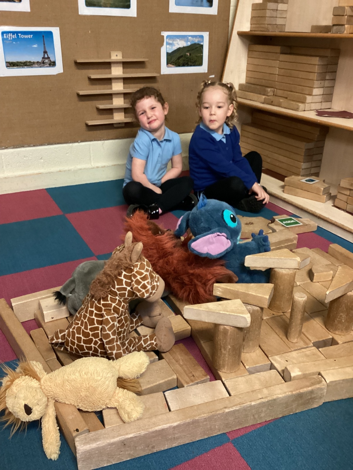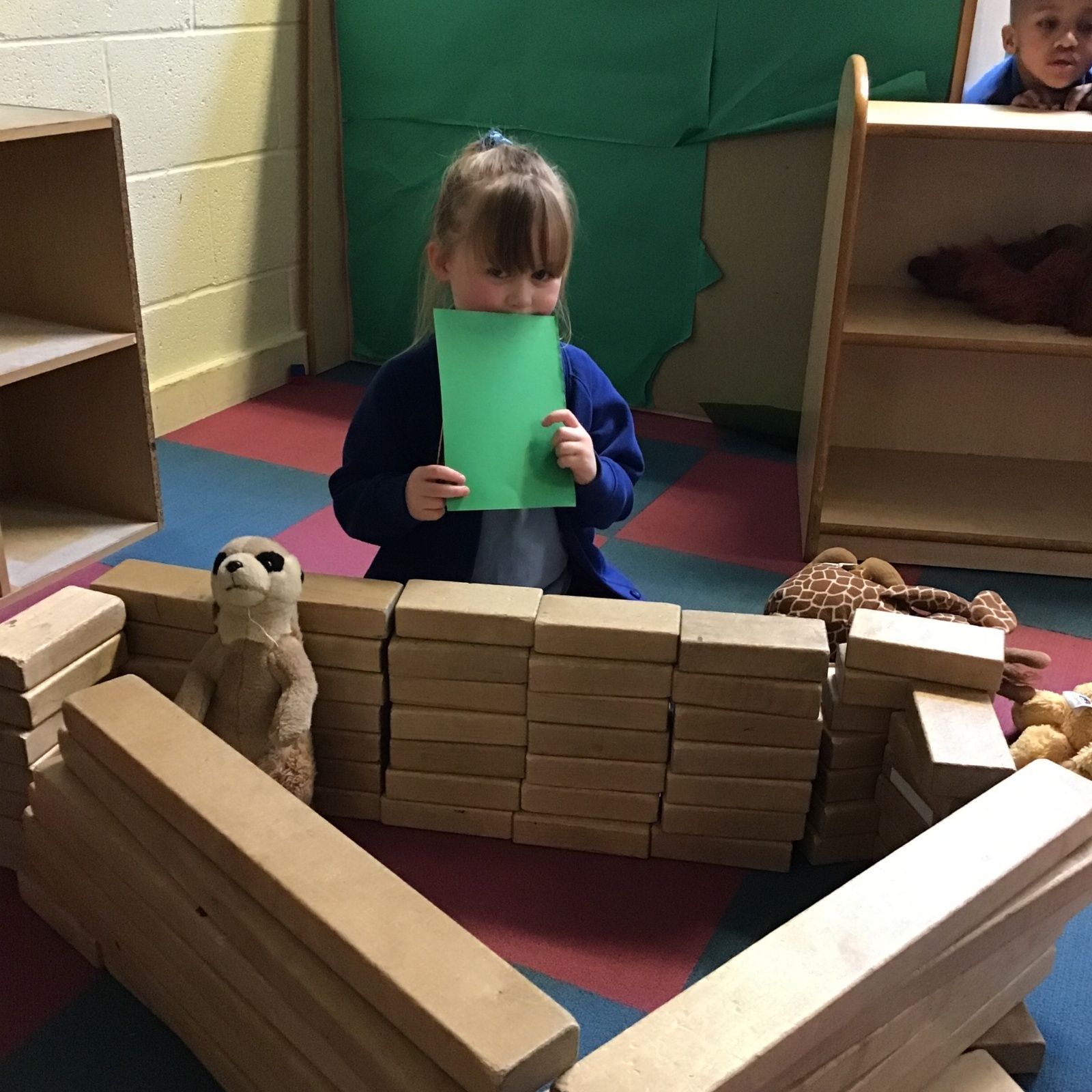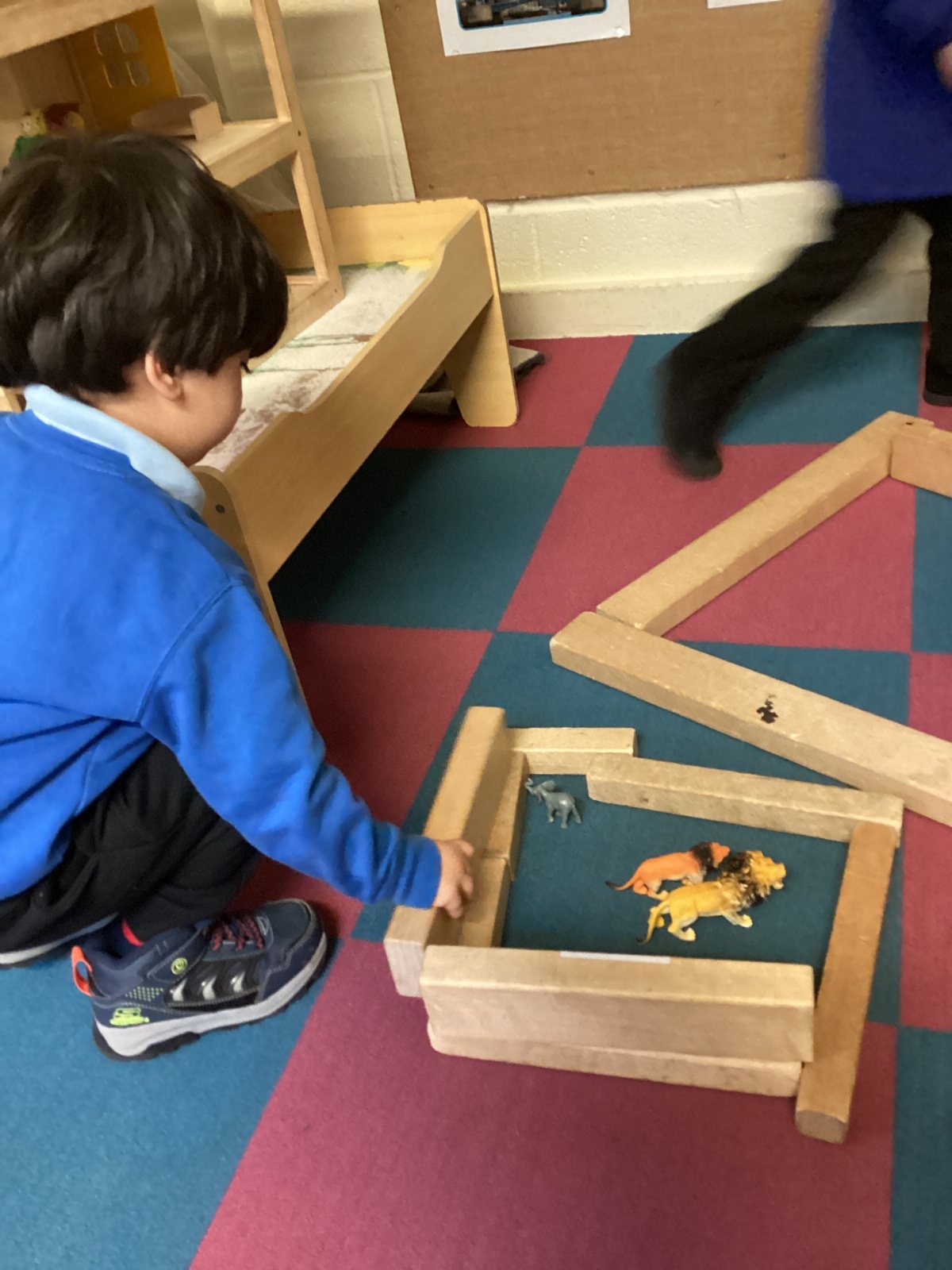 We have been working very hard in our construction area building enclosures for a variety of animals. We have worked together and added lots of things for the animals to do and eat. They have had swings and slides, cheese and lots of drinks. We hope you all have a lovely relaxing half term.