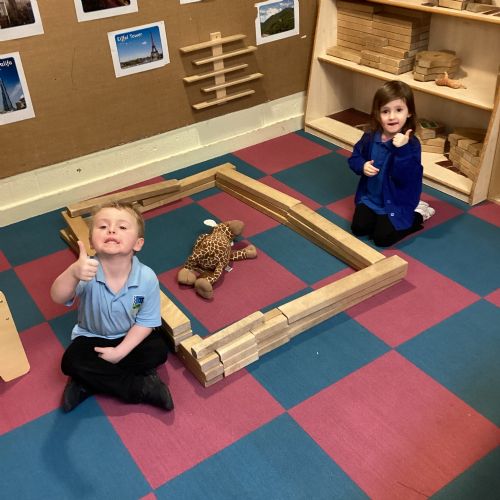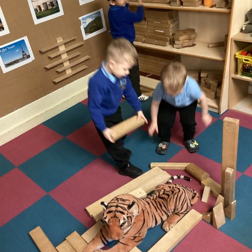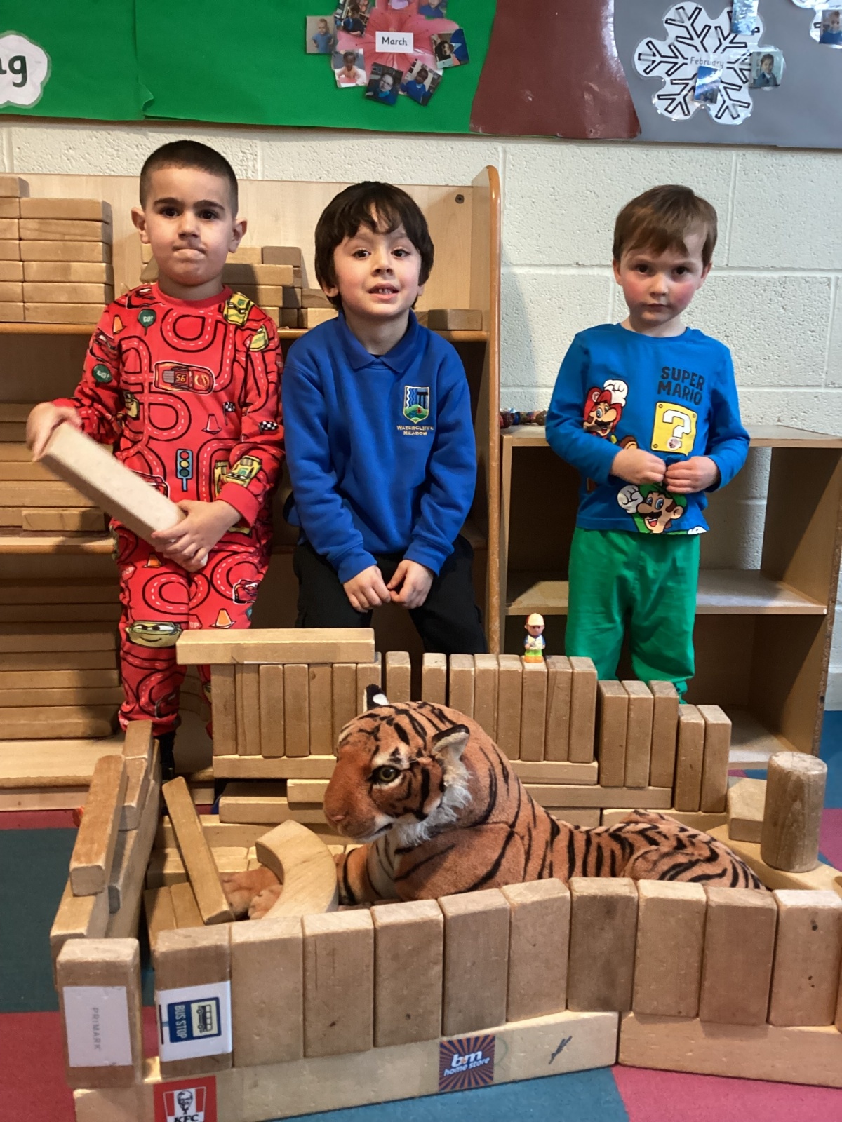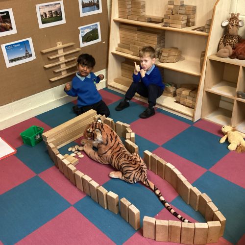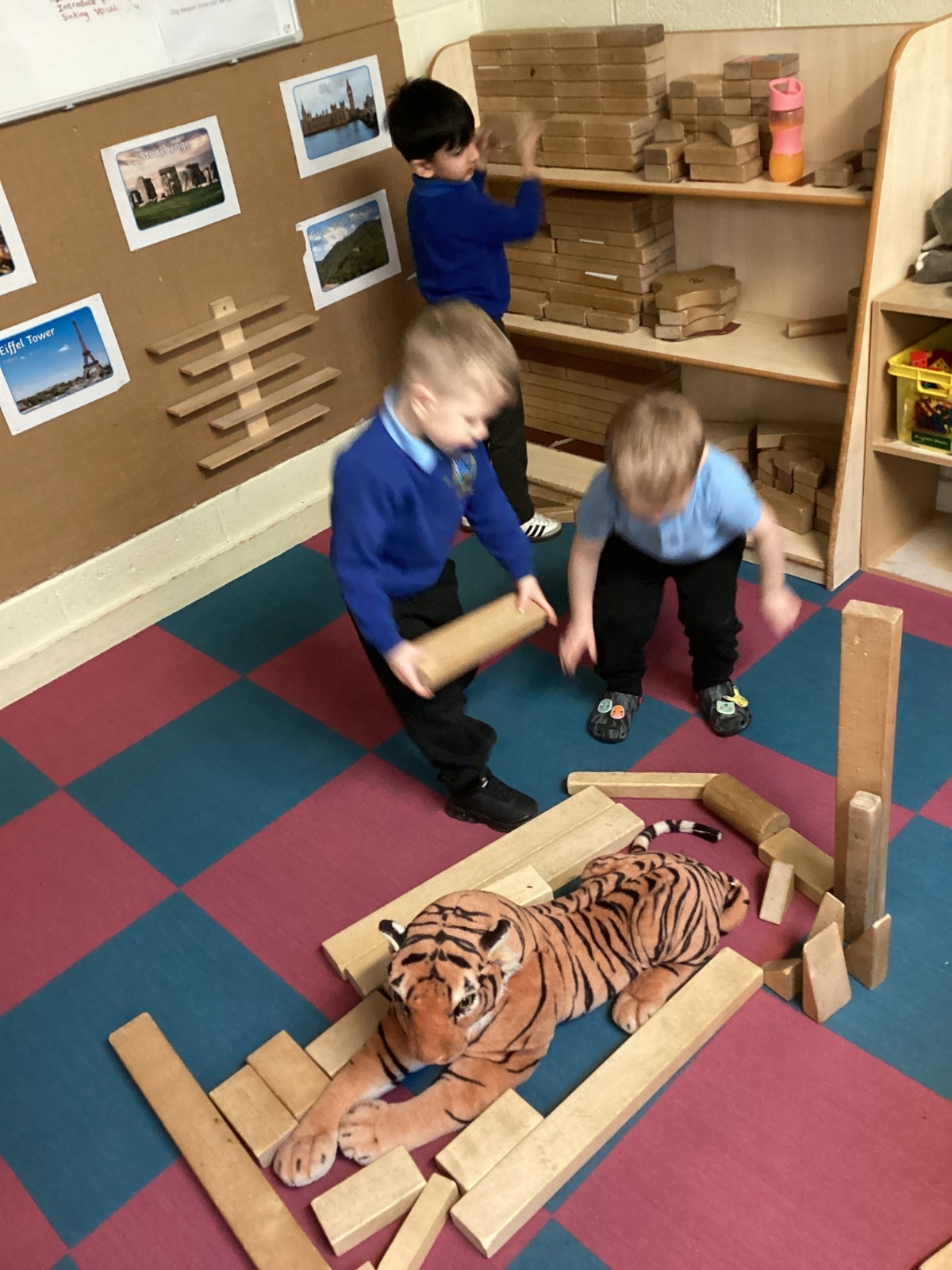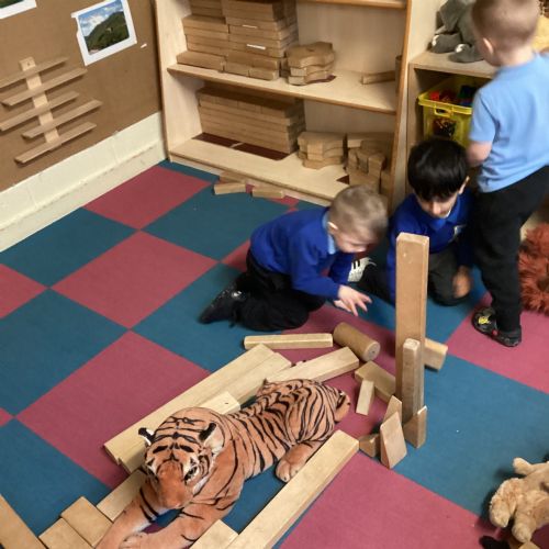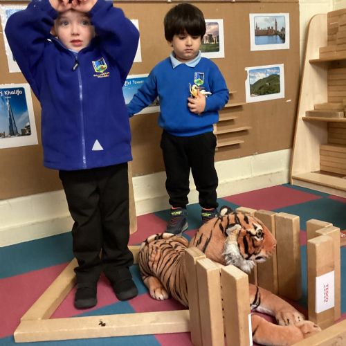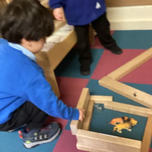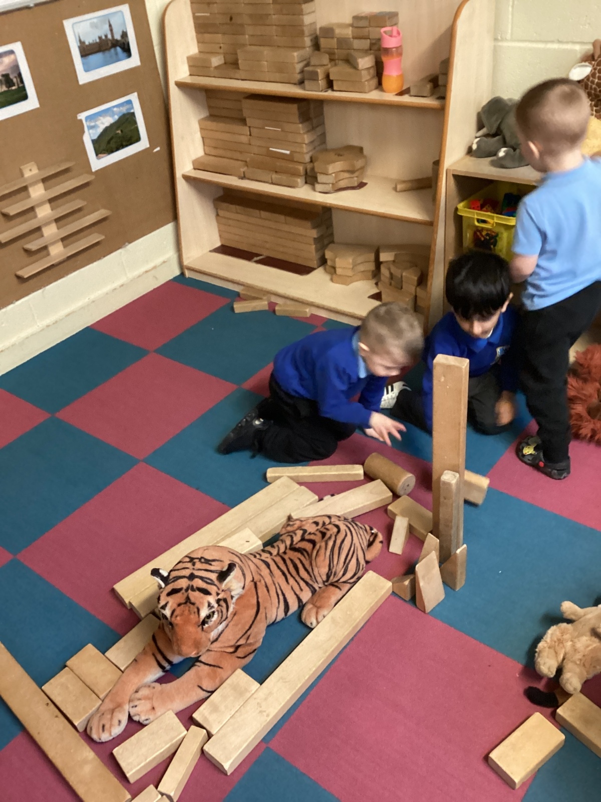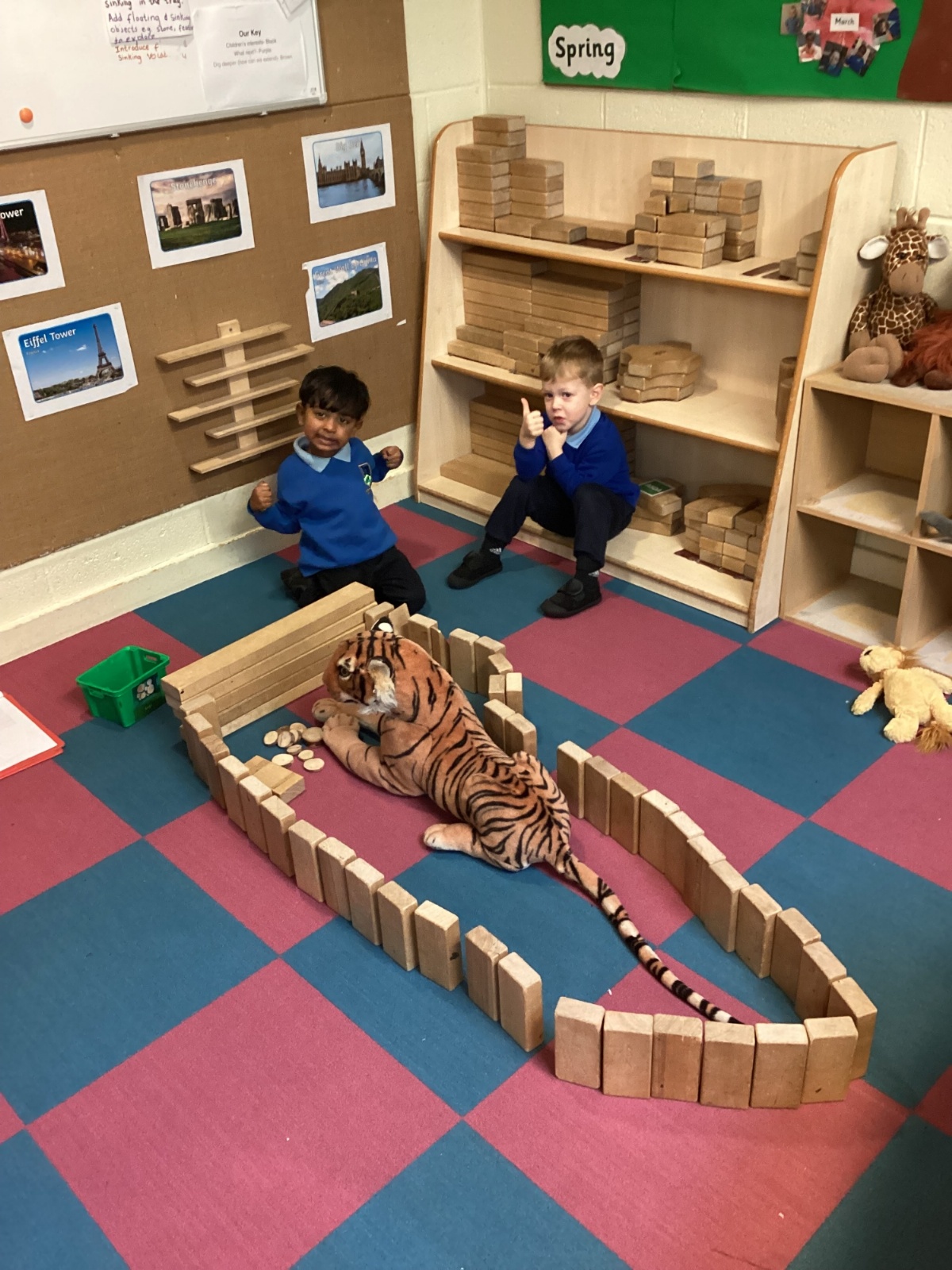 We have been working very hard in our construction area building enclosures for a variety of animals. We have worked together and added lots of things for the animals to do and eat. They have had swings and slides, cheese and lots of drinks. We hope you all have a lovely relaxing half term.