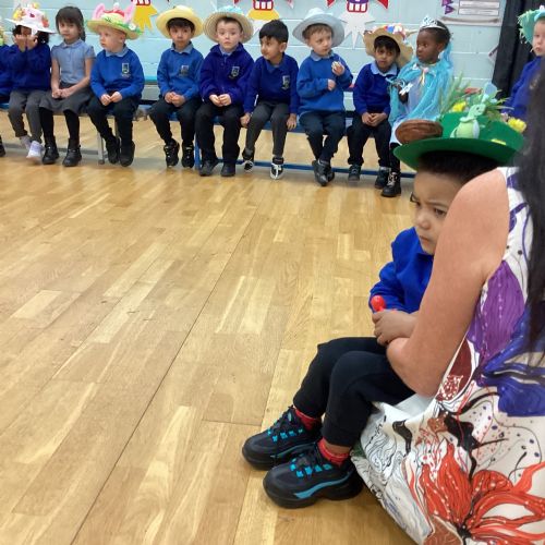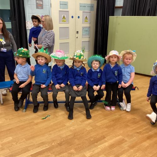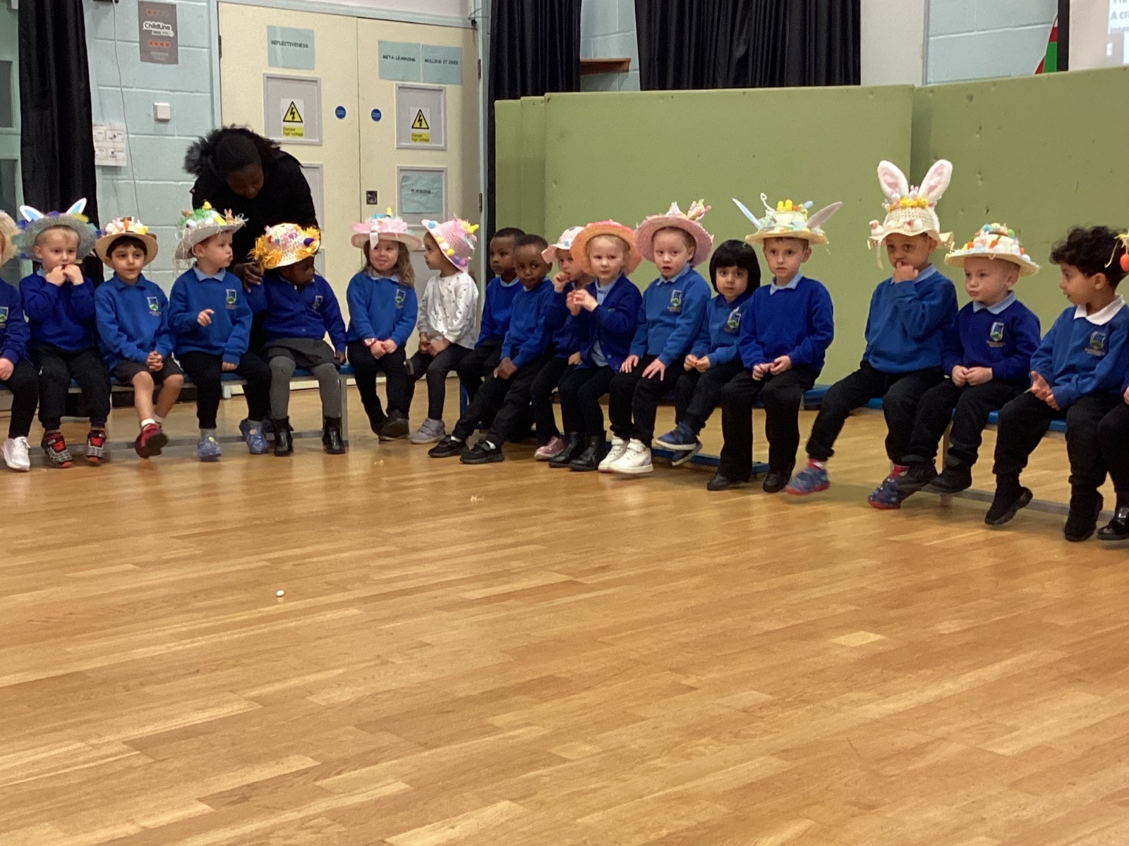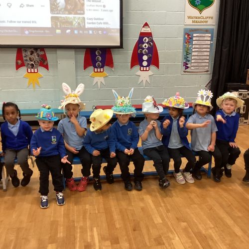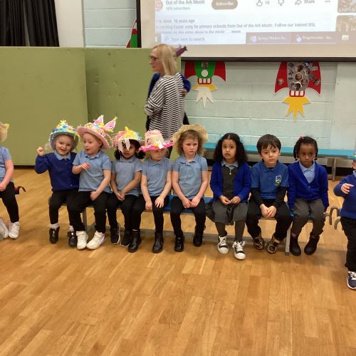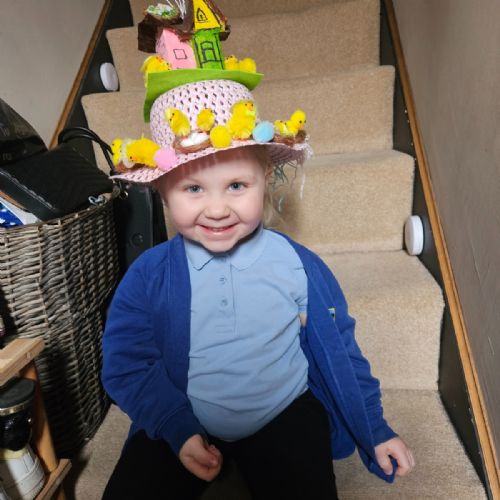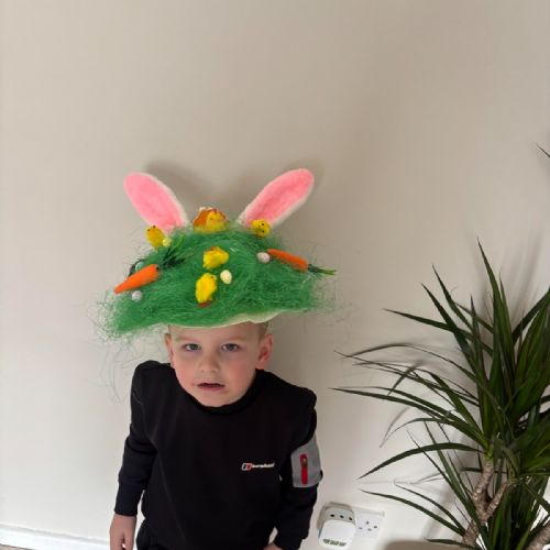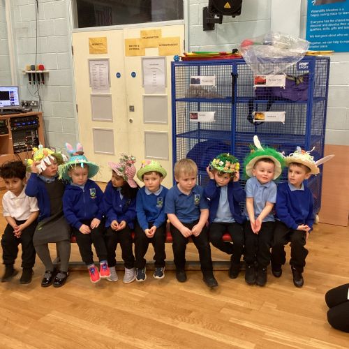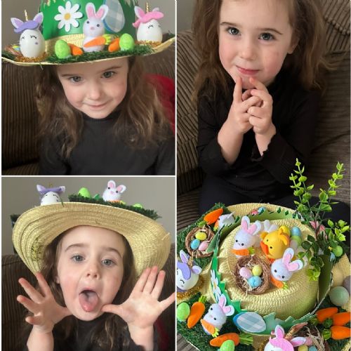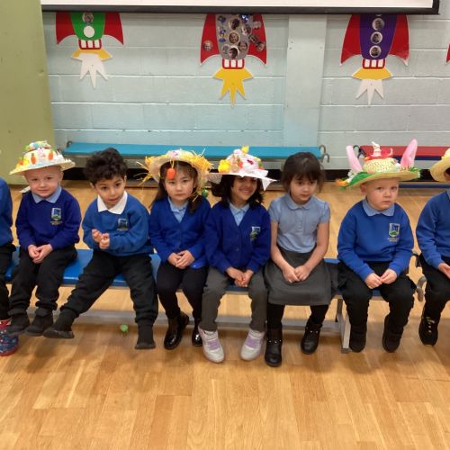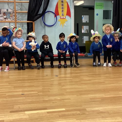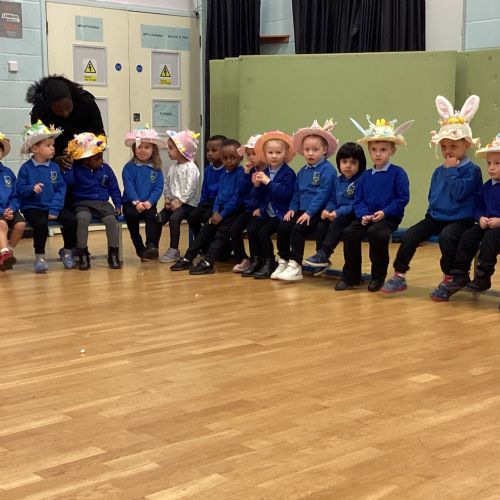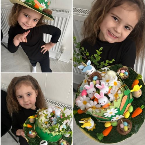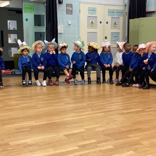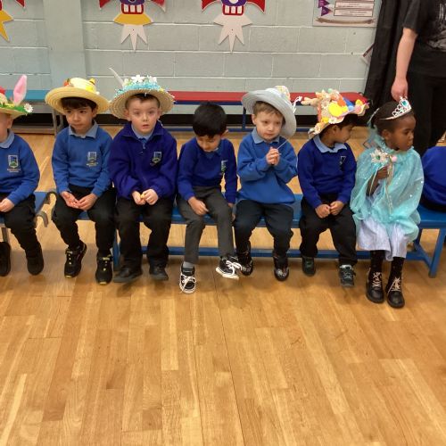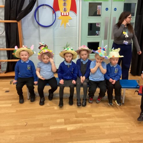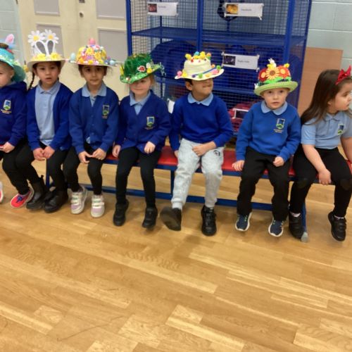 Today was our Easter Bonnet parade. Lots of us made amazing bonnets at home which our teachers were very impressed with! We sang the Spring Chicken song for grown-ups and paraded around the hall wearing our bonnets. We were amazing!