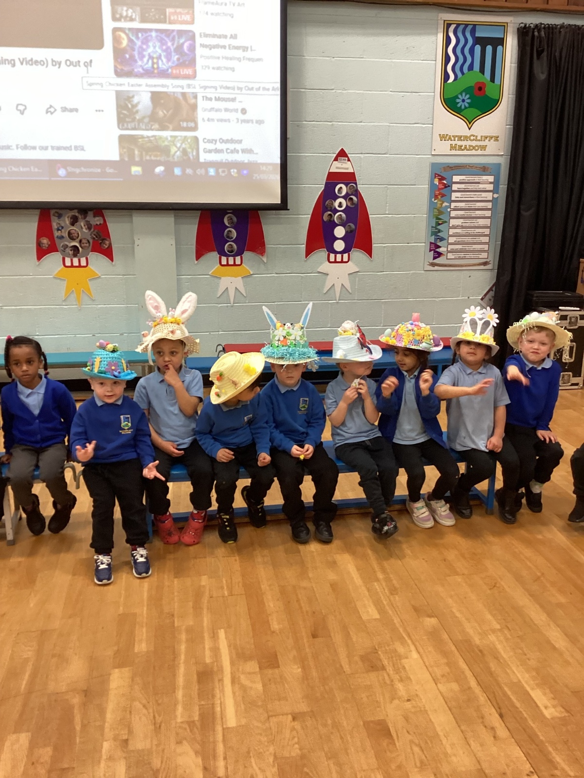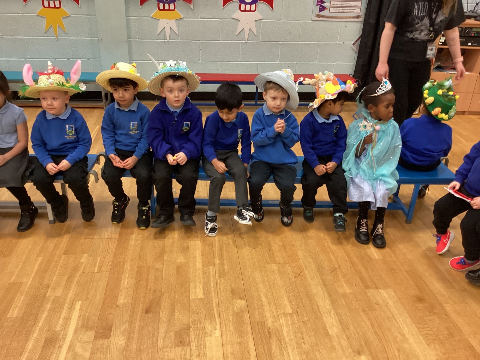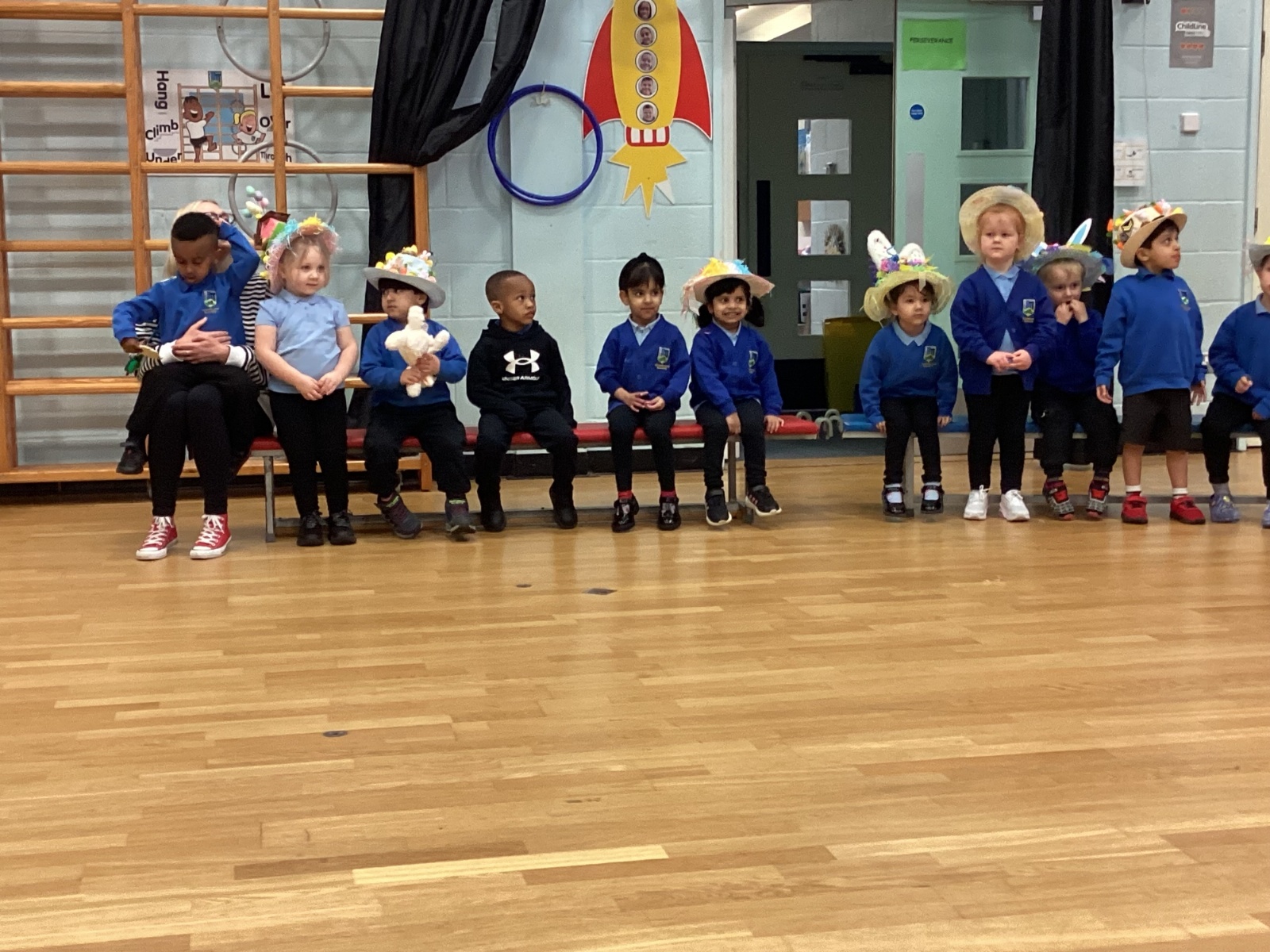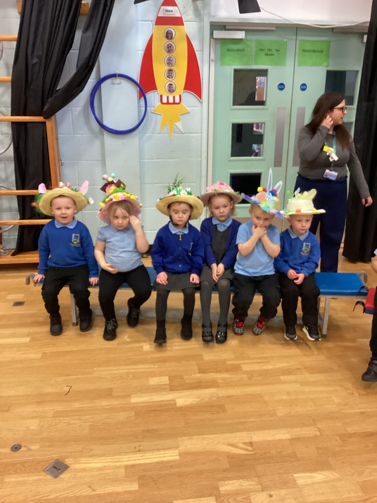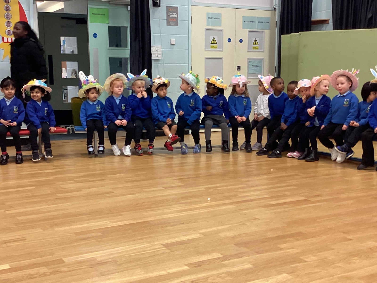 Today was our Easter Bonnet parade. Lots of us made amazing bonnets at home which our teachers were very impressed with! We sang the Spring Chicken song for grown-ups and paraded around the hall wearing our bonnets. We were amazing!