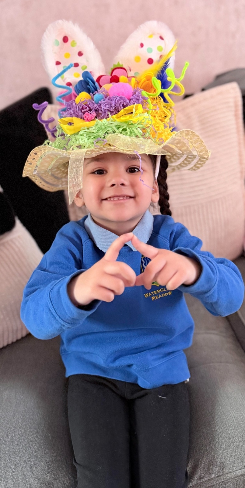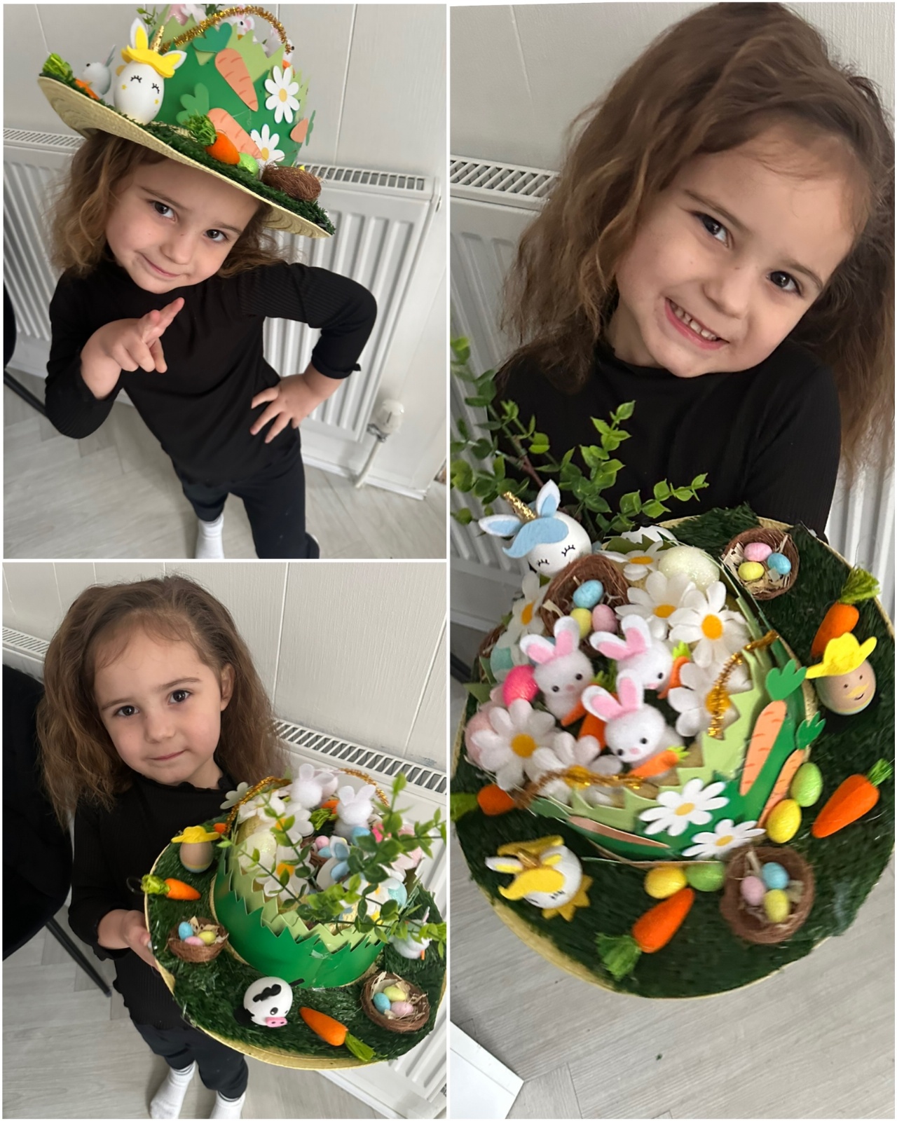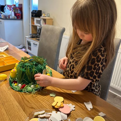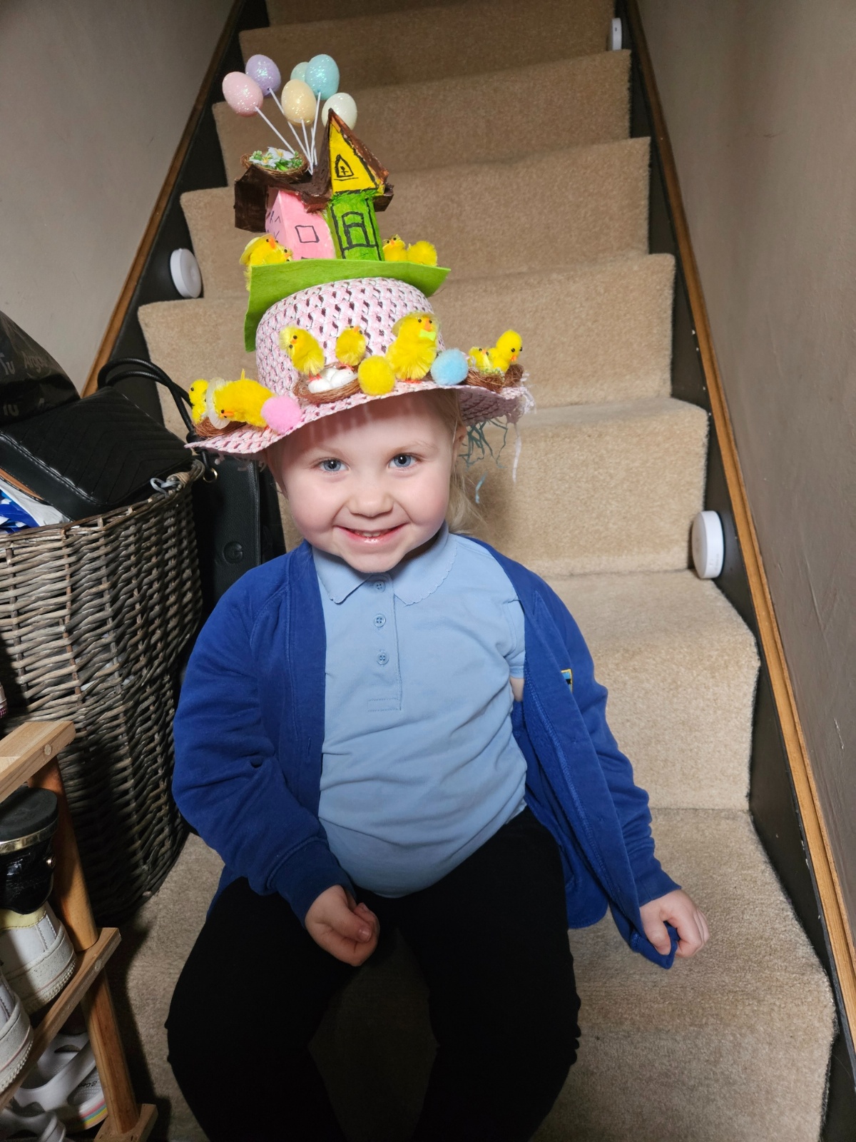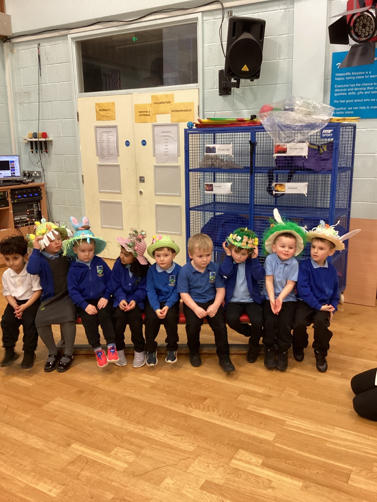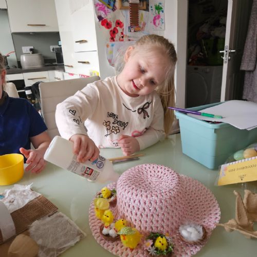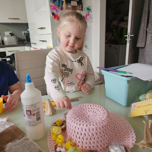 Today was our Easter Bonnet parade. Lots of us made amazing bonnets at home which our teachers were very impressed with! We sang the Spring Chicken song for grown-ups and paraded around the hall wearing our bonnets. We were amazing!