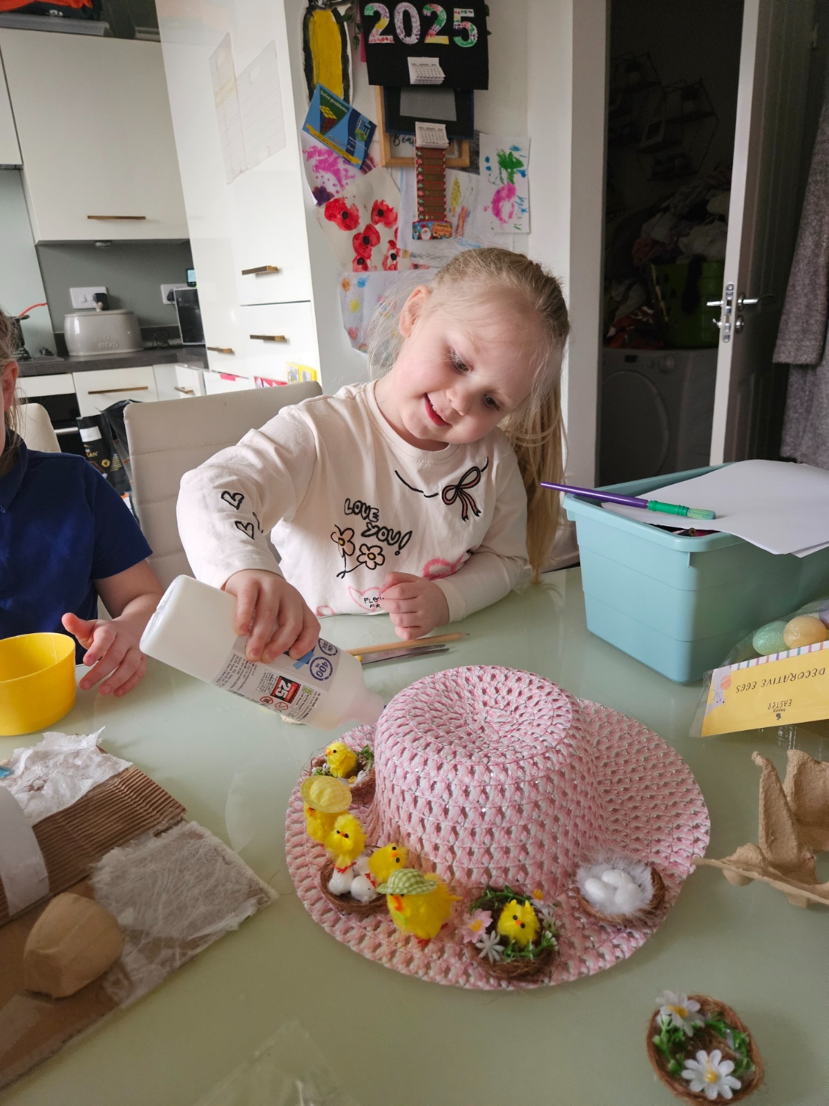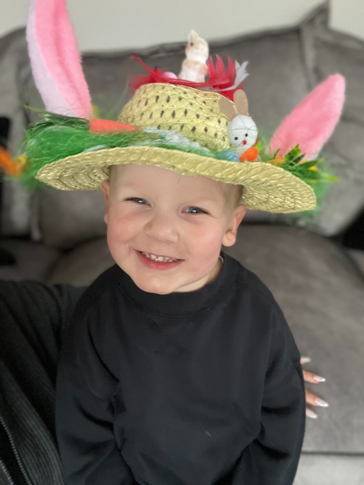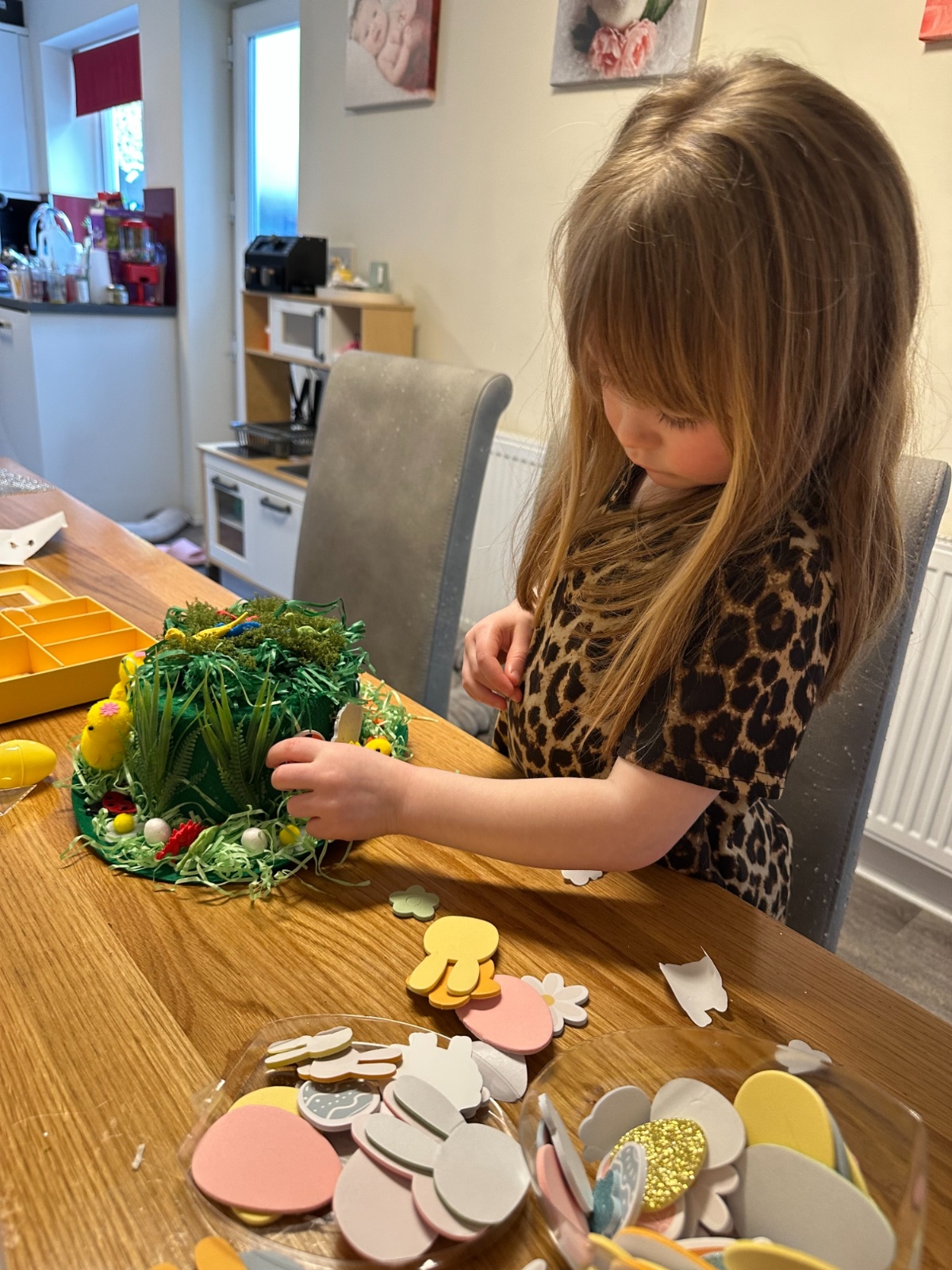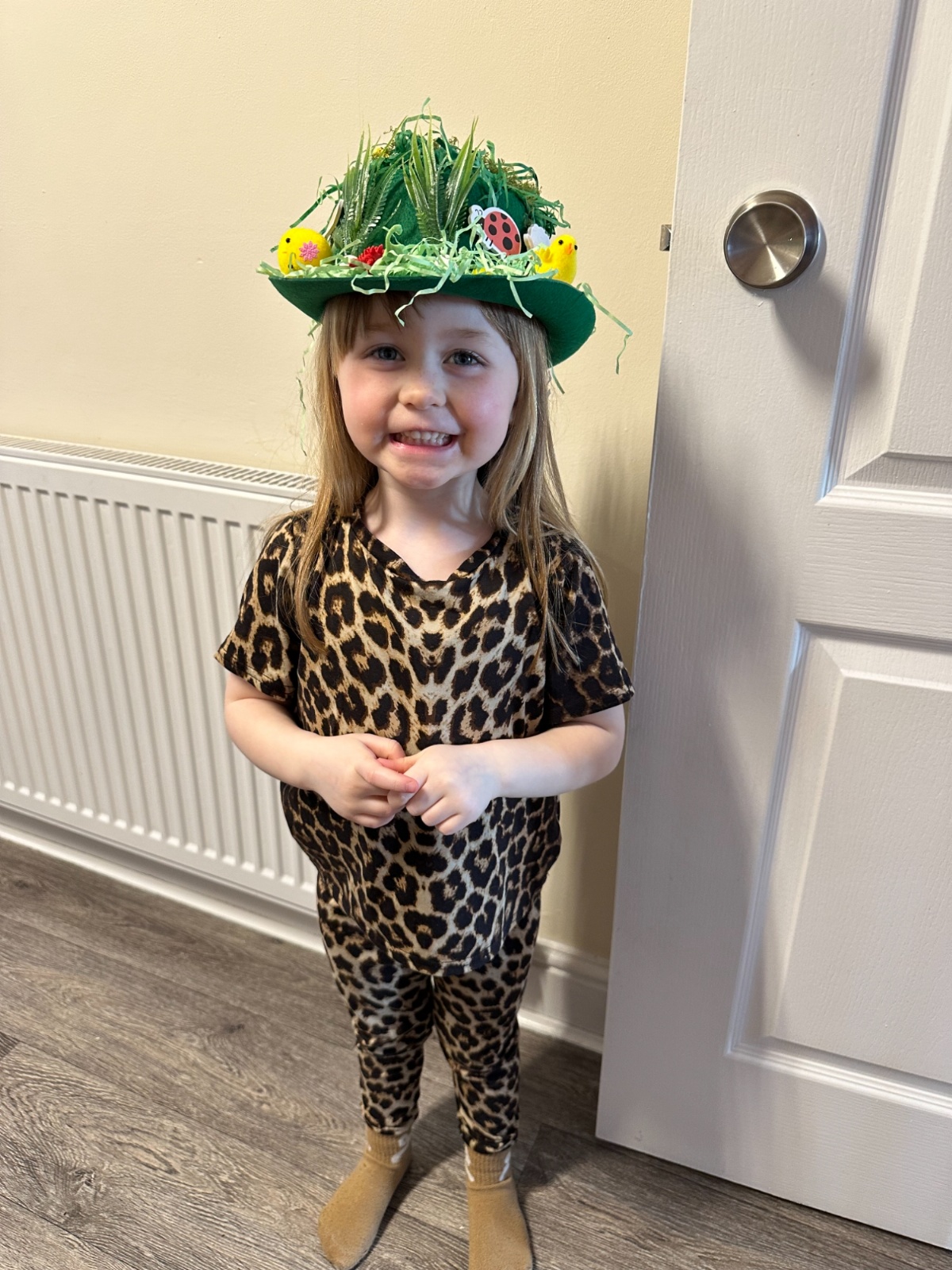 Today was our Easter Bonnet parade. Lots of us made amazing bonnets at home which our teachers were very impressed with! We sang the Spring Chicken song for grown-ups and paraded around the hall wearing our bonnets. We were amazing!