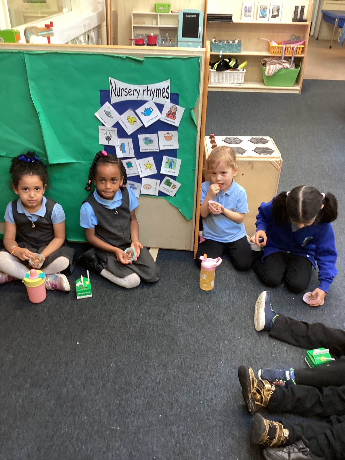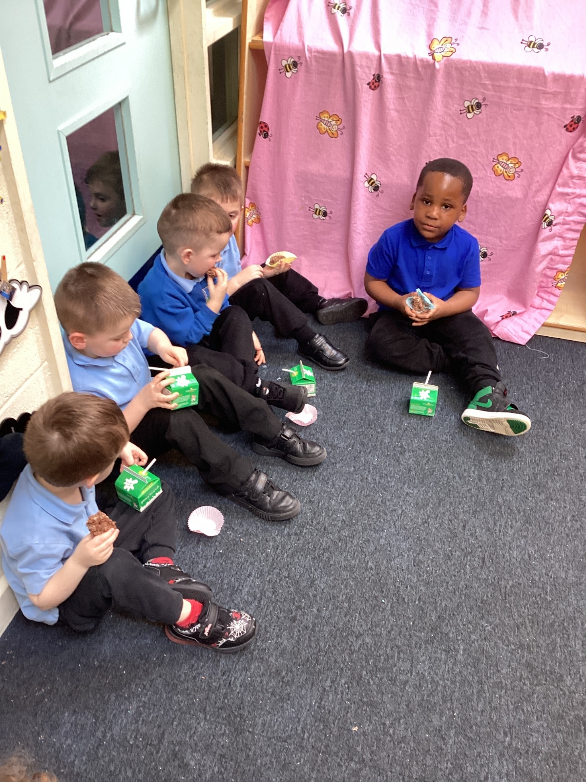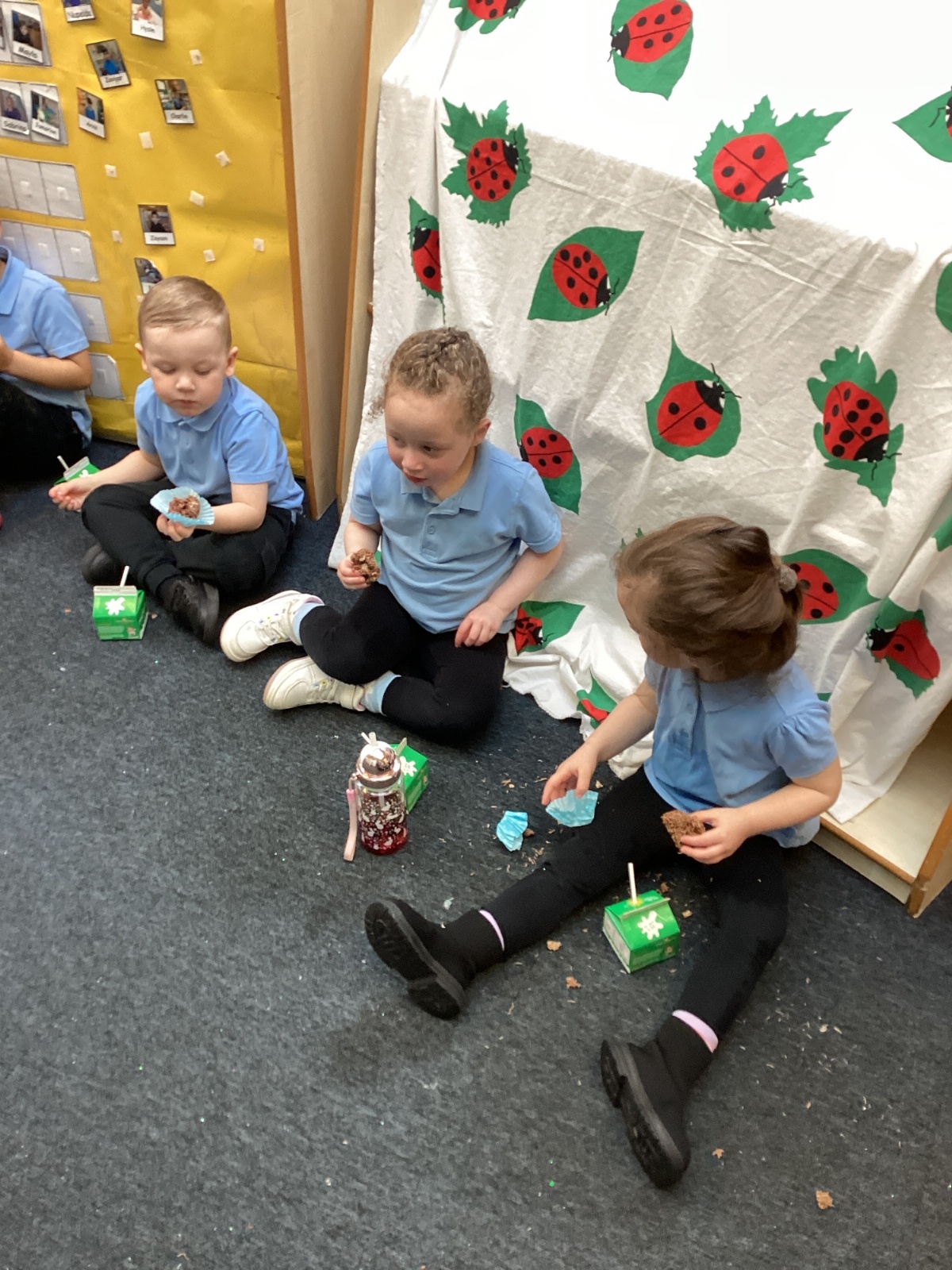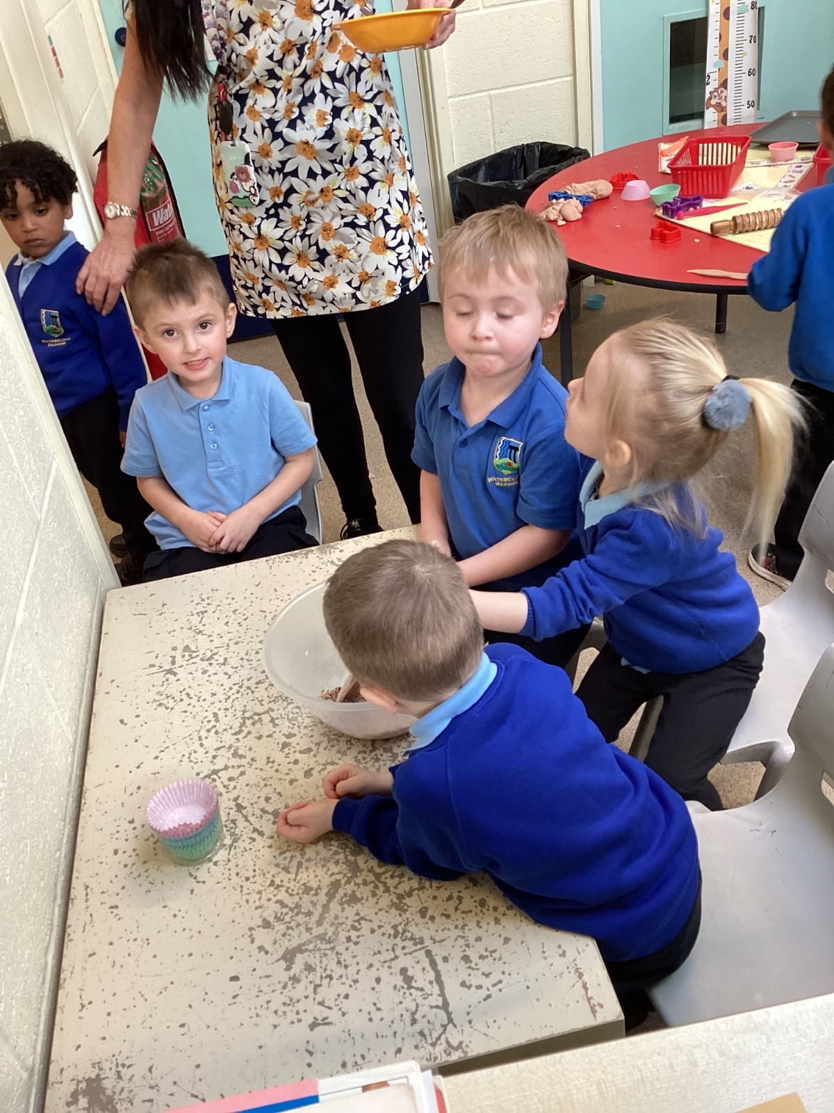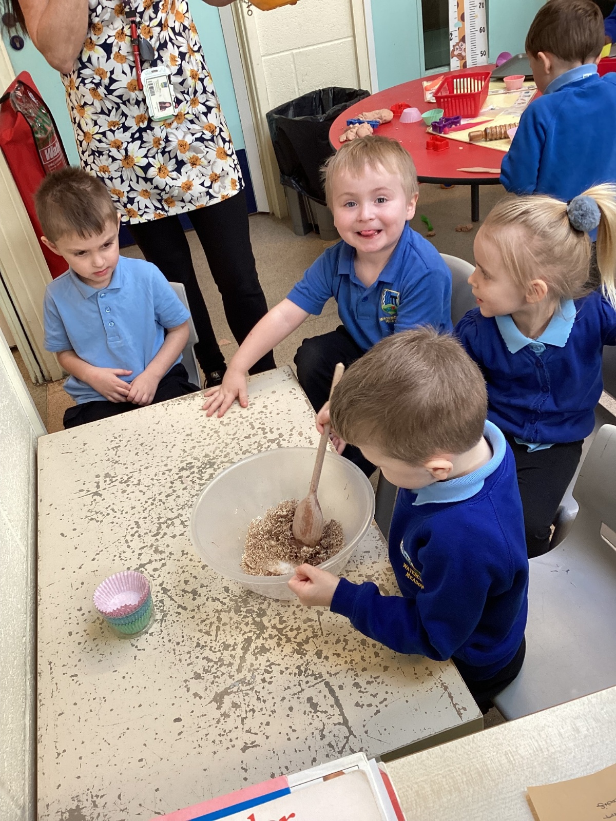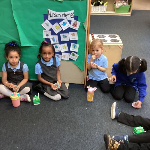 We have been making and eating delicious chocolate nests for Easter in Nursery. The children did such a good job working together to crunch and squish up the shredded cereal, melt the chocolate and stir together the mixture.