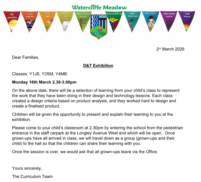 Y1JS D&T exhibition Monday 16th March 2.30-3.00pm