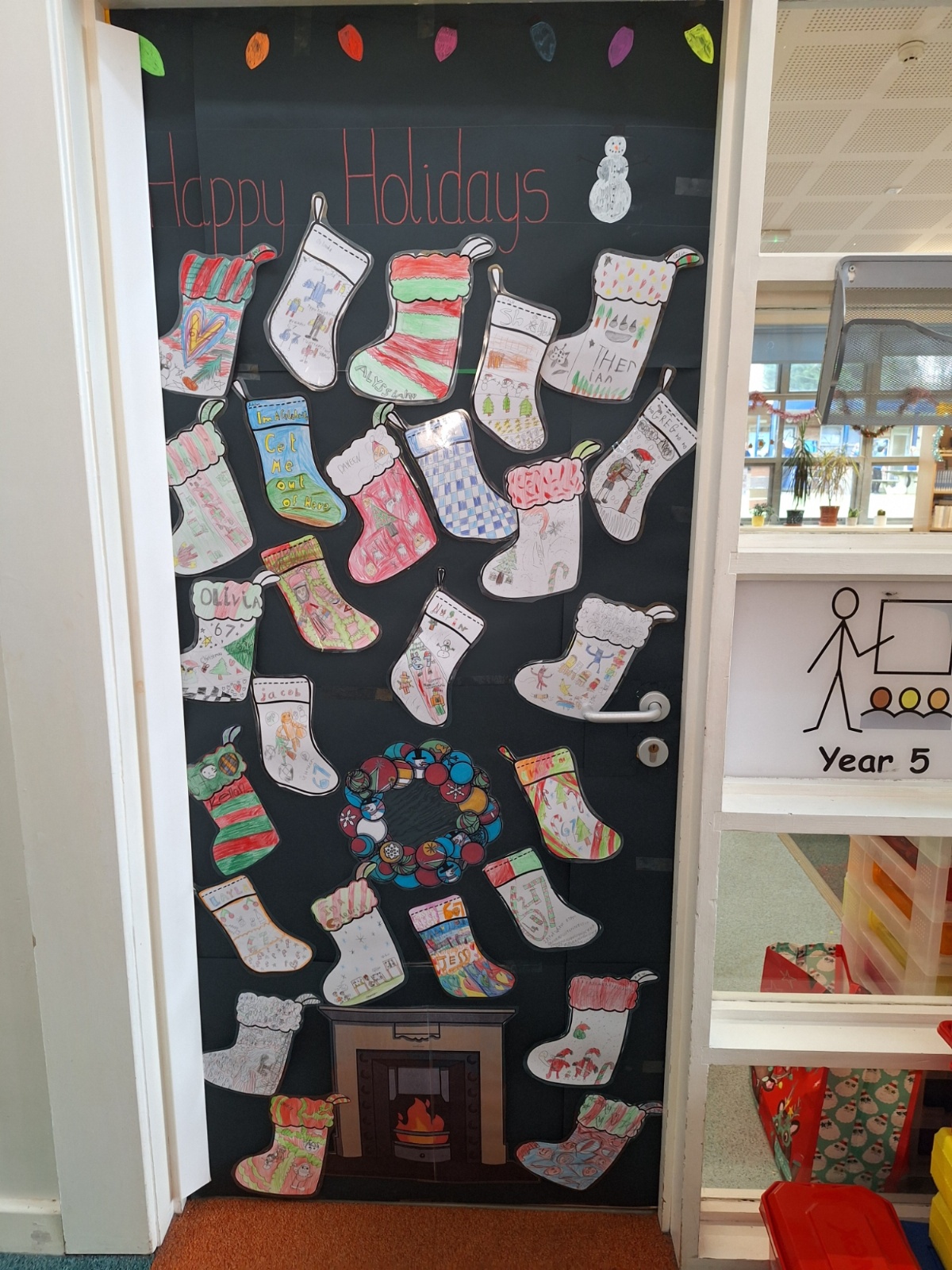 Lots of the doors around school have been decorated by the Christmas Elves. Here are pictures of the doors.  Which door is your favourite?