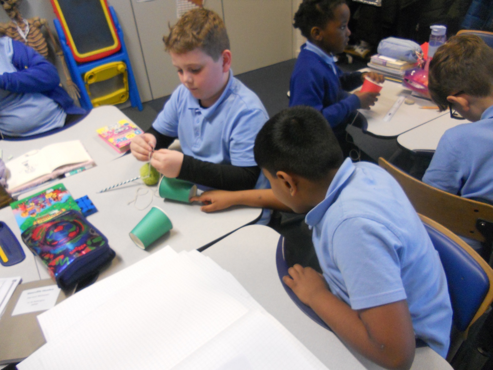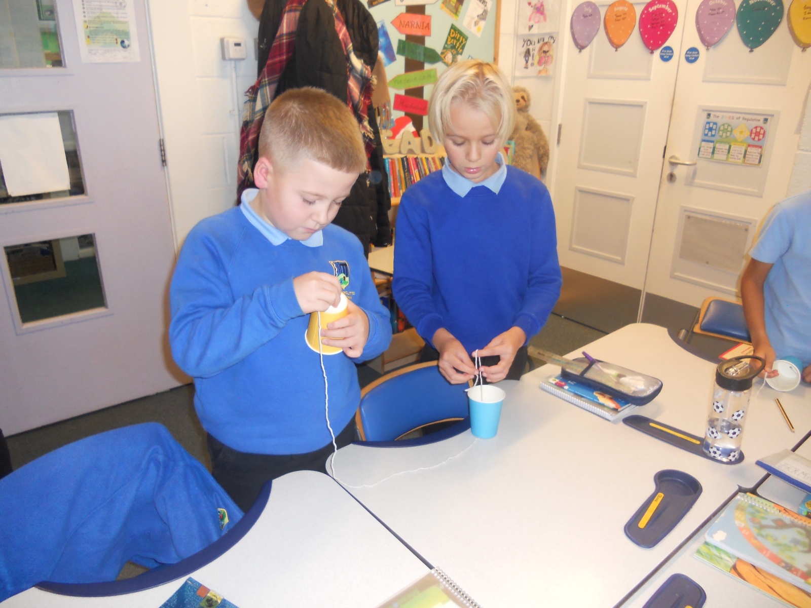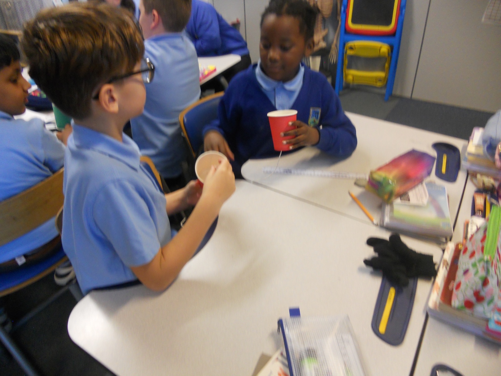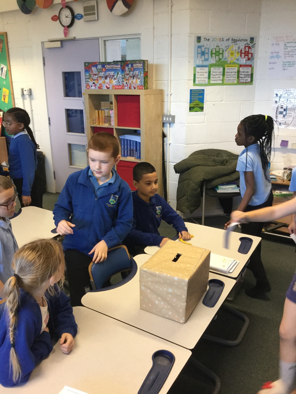 Our photos this week show description gathering in writing, decorating our treat boxes, creating cup telephones, investigating pitch in science and voting in our ballot boxes as a part of UK Parliament Week.