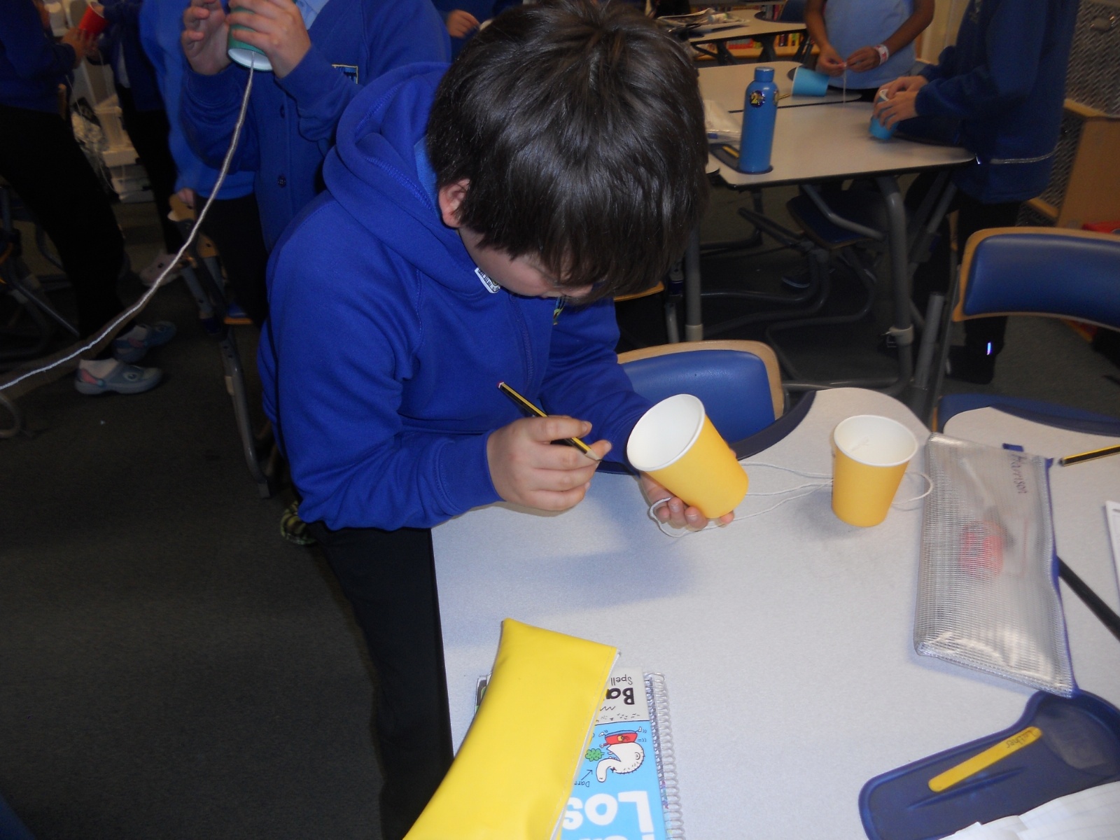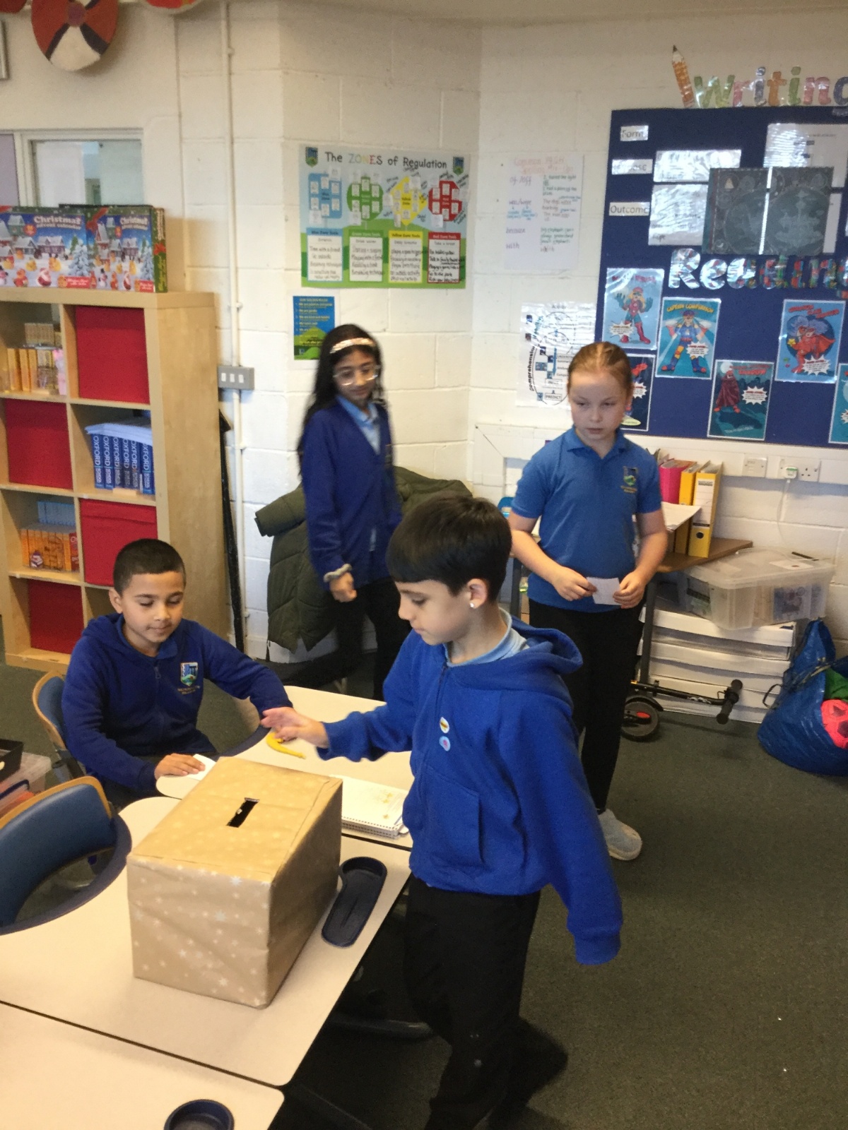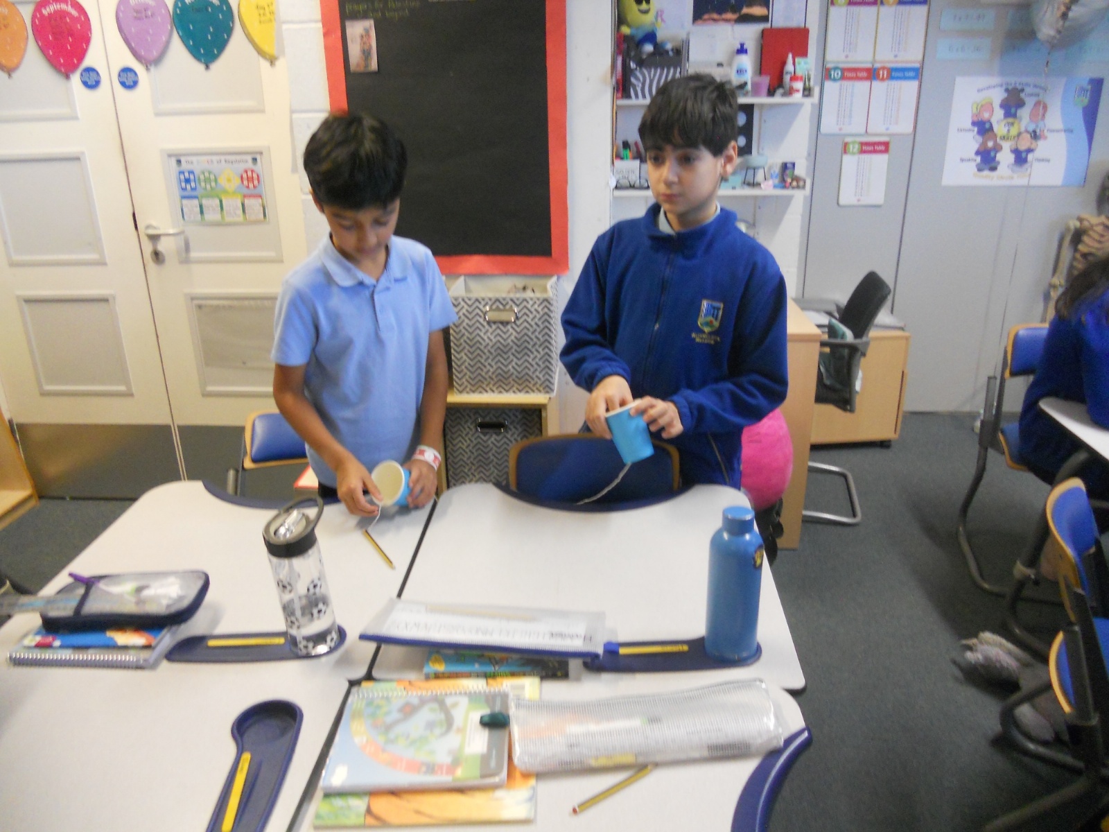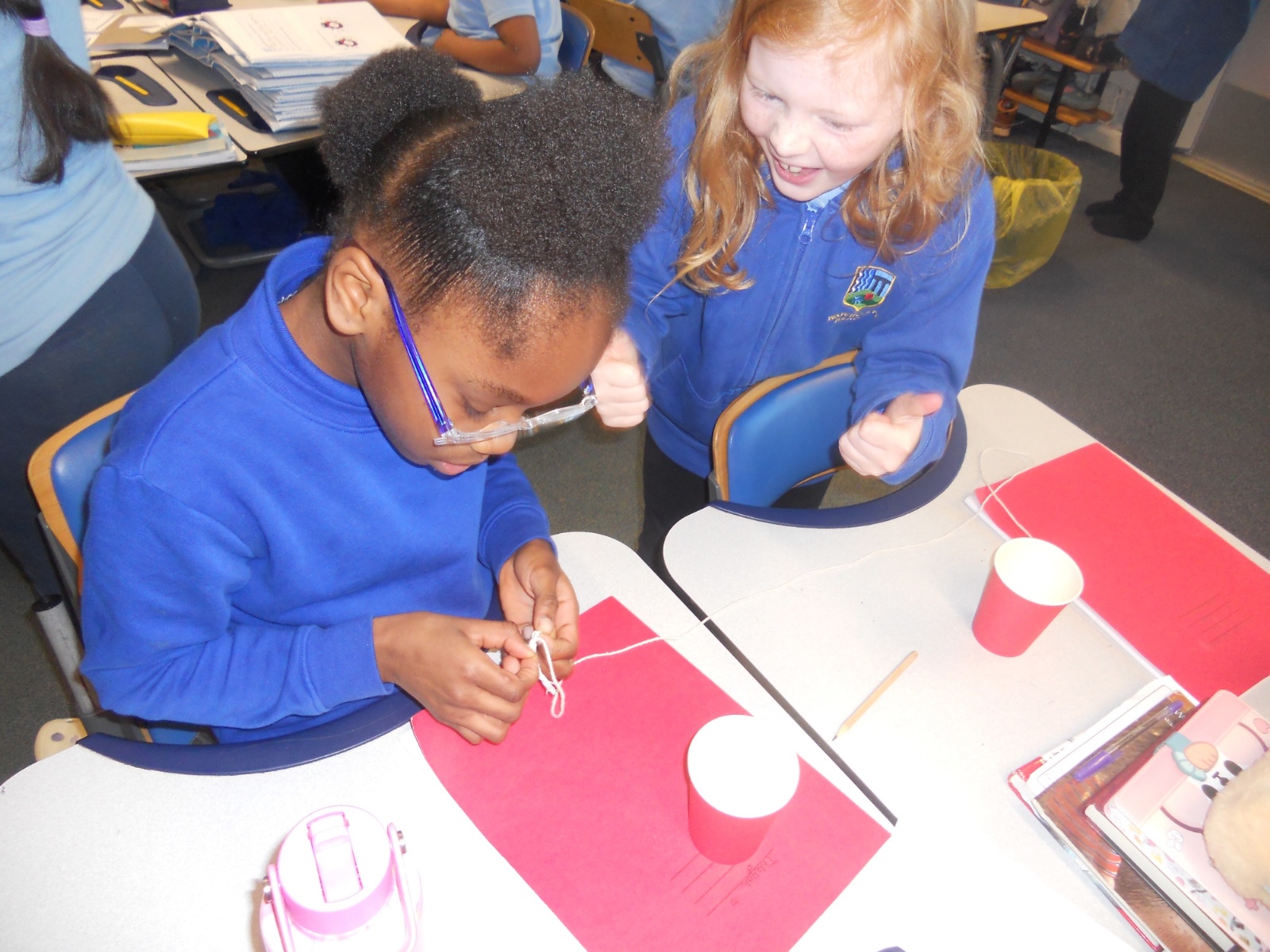 Our photos this week show description gathering in writing, decorating our treat boxes, creating cup telephones, investigating pitch in science and voting in our ballot boxes as a part of UK Parliament Week.